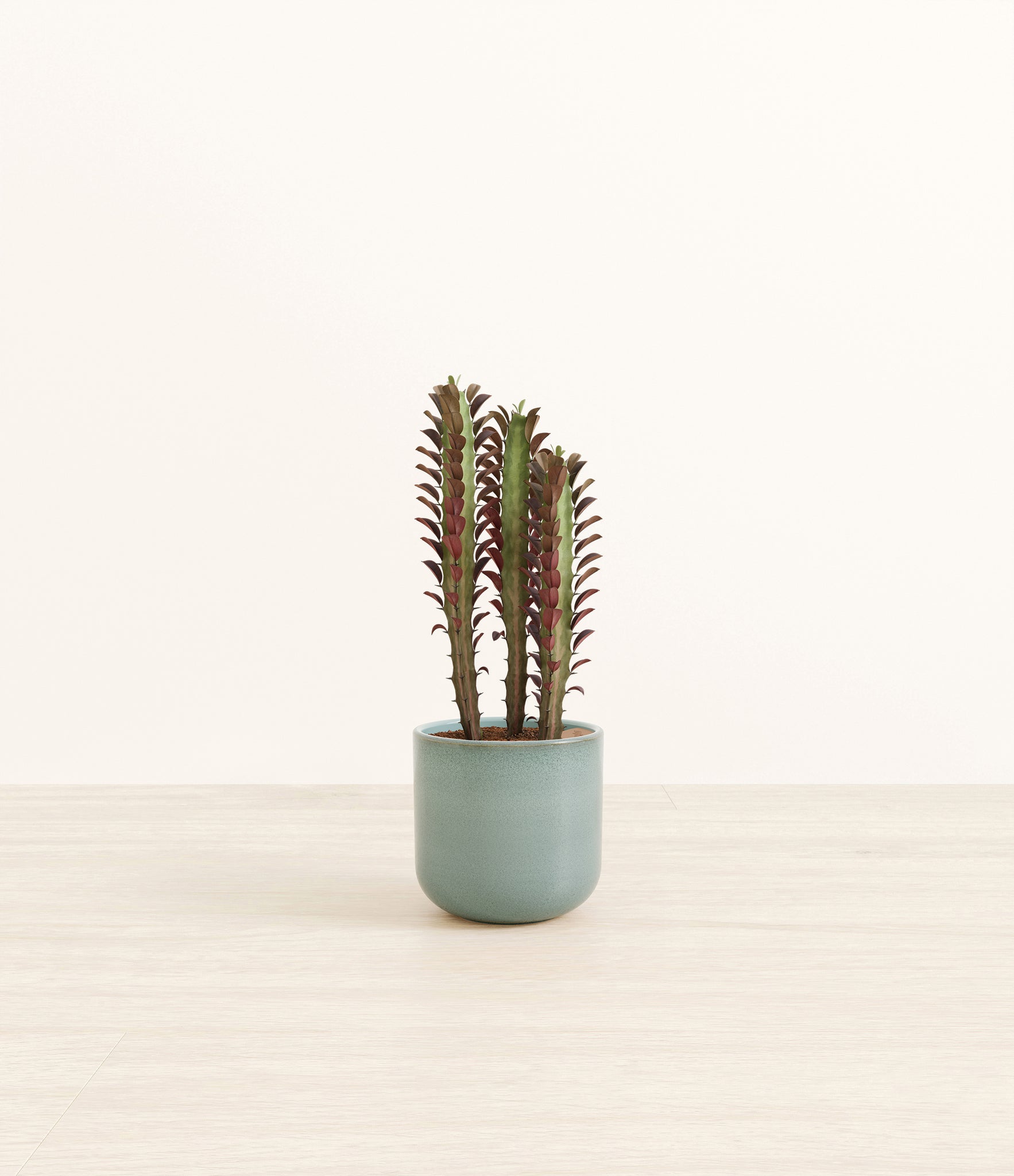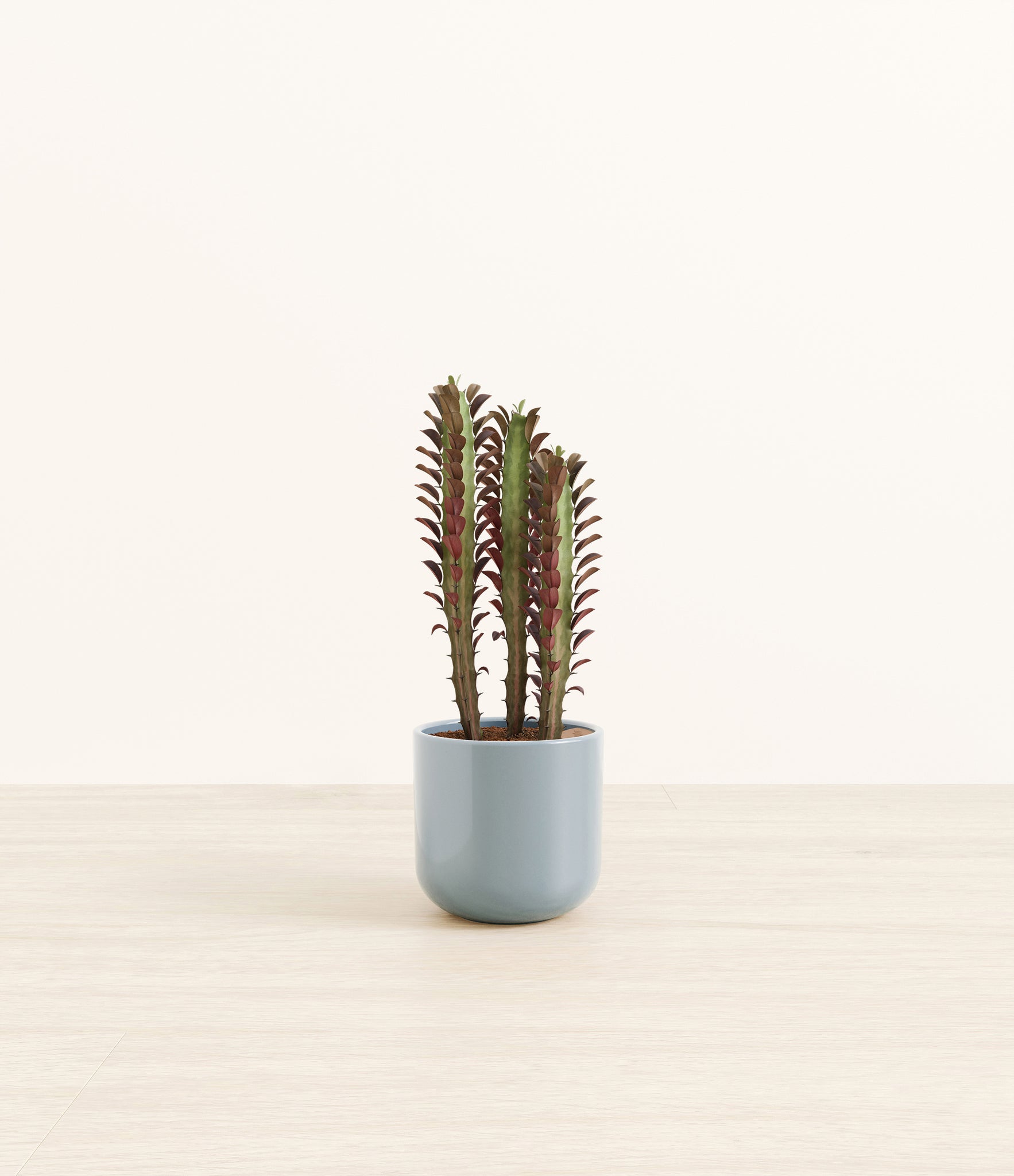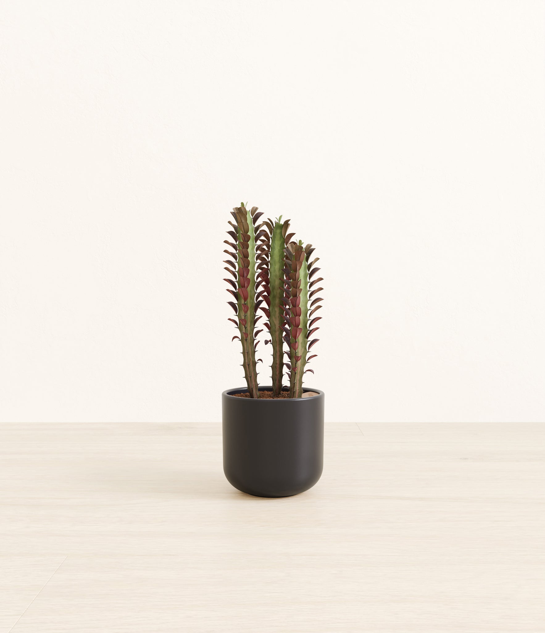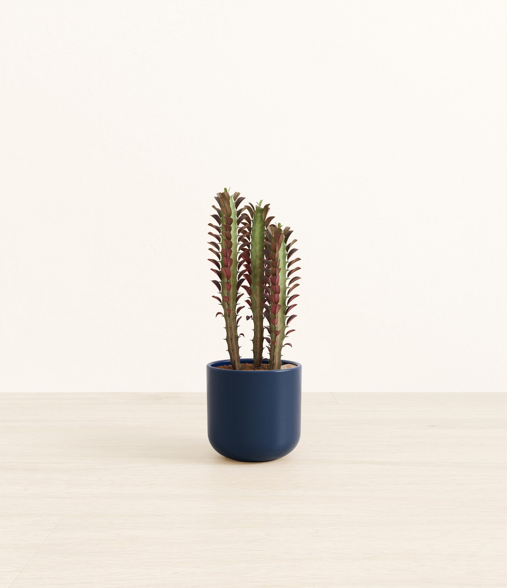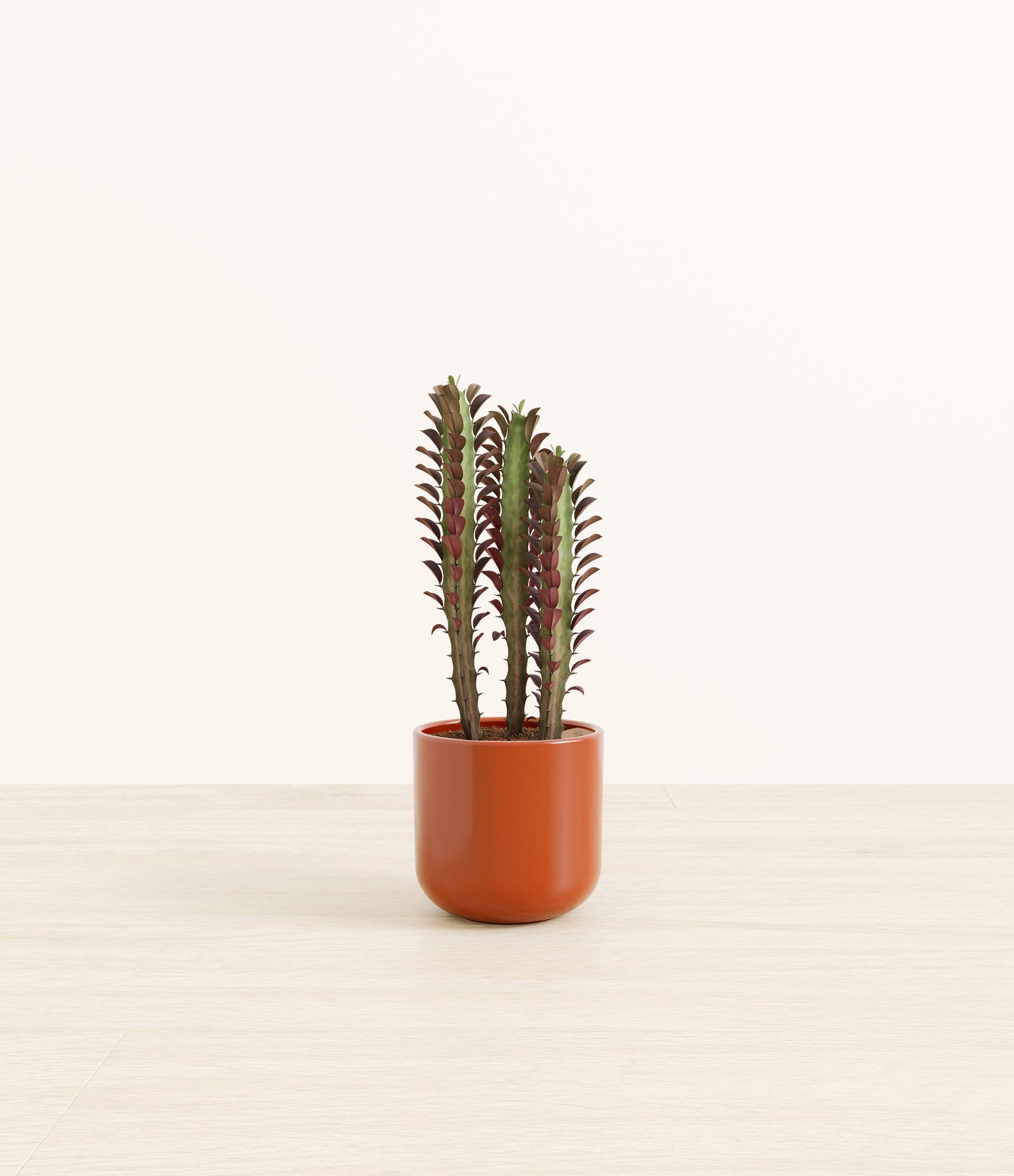 Native to the arid landscapes of Central Africa, African Milk Tree, or Euphorbia trigona, is a sculptural succulent known for its tall, upright stems and geometric charm. Its spiny ridges and tiny green leaves create a candelabra-like silhouette that adds bold vertical presence to any space. Fast-growing and drought-tolerant, it brings structure, strength, and striking texture to bright indoor spots.