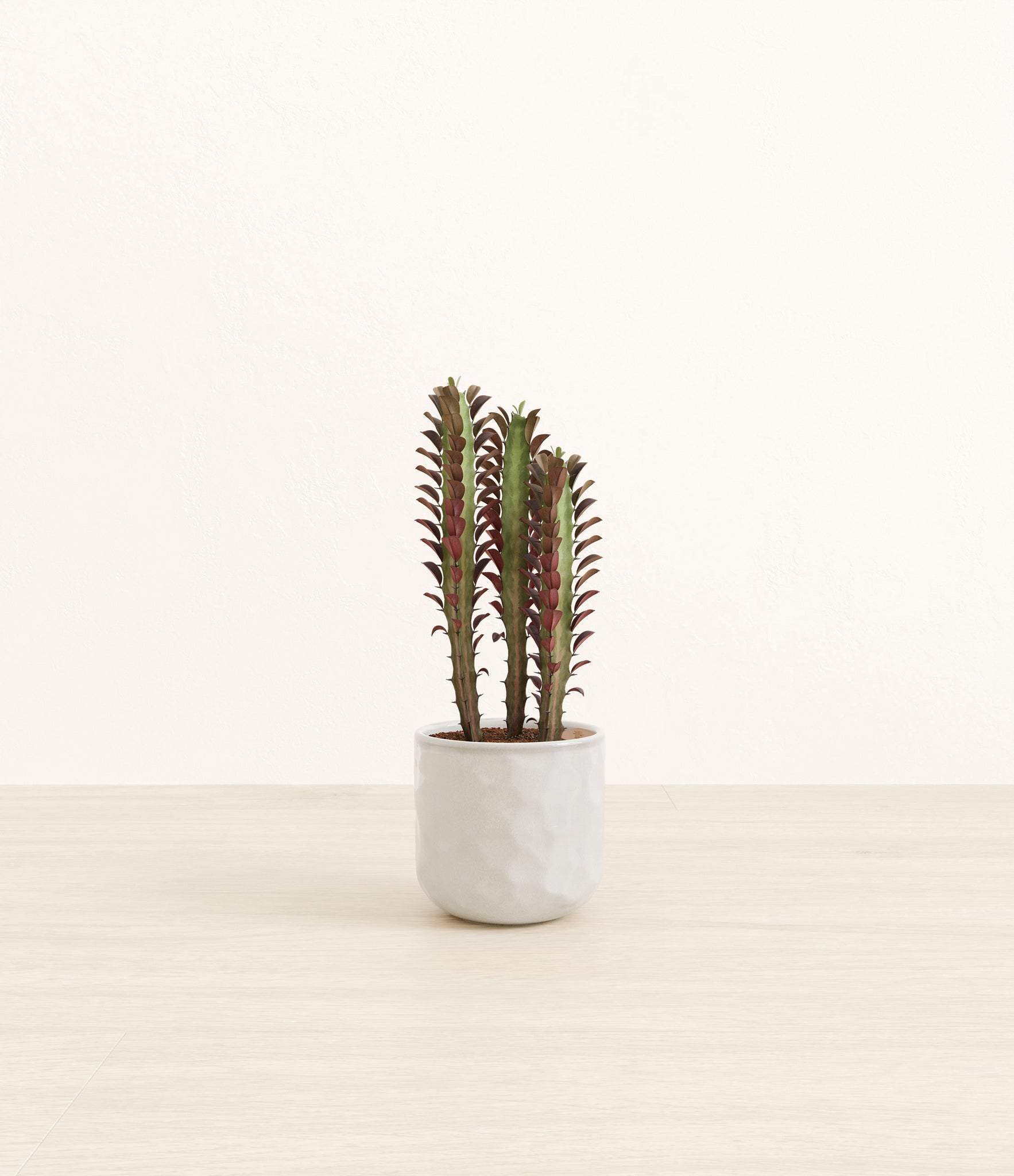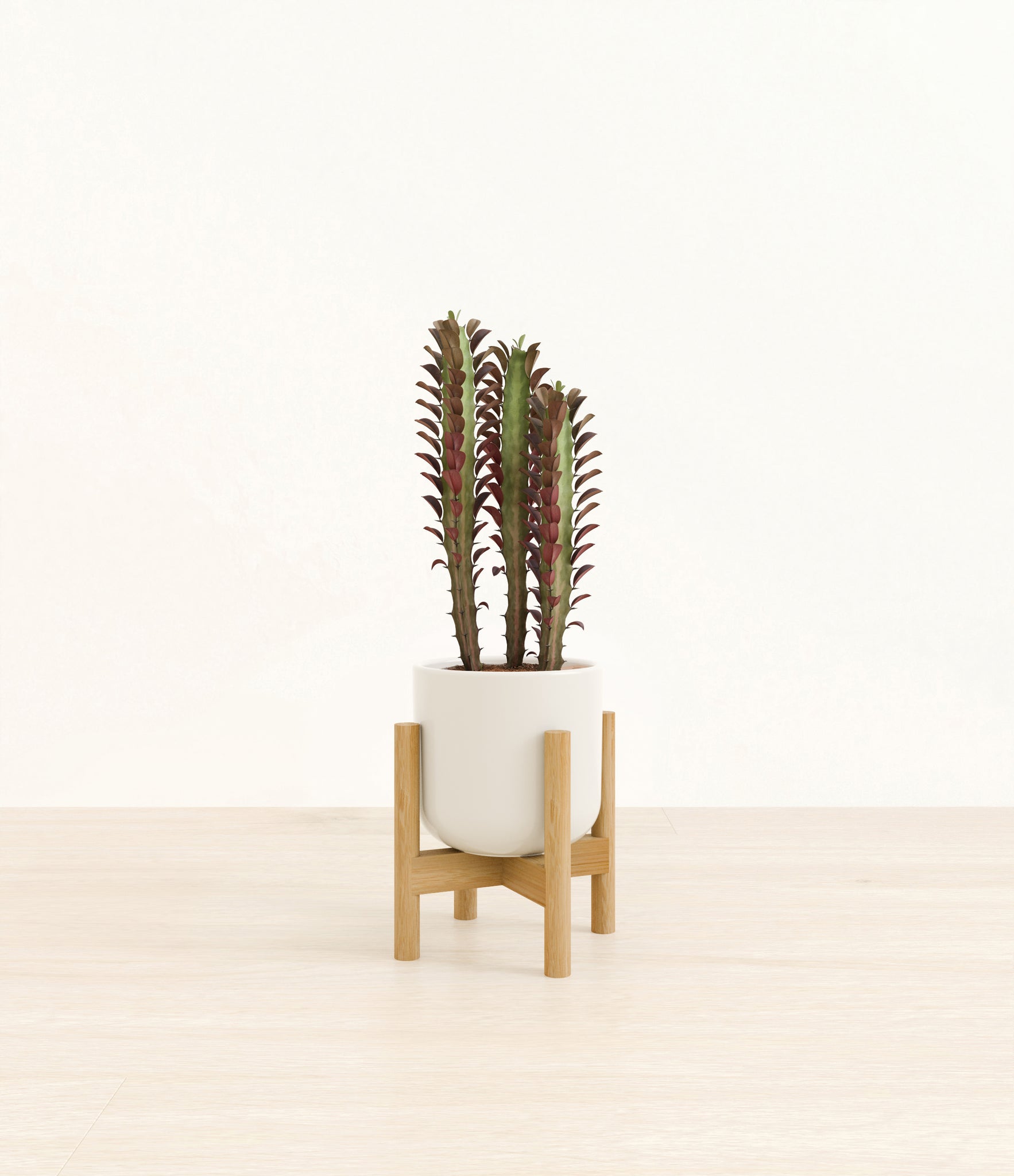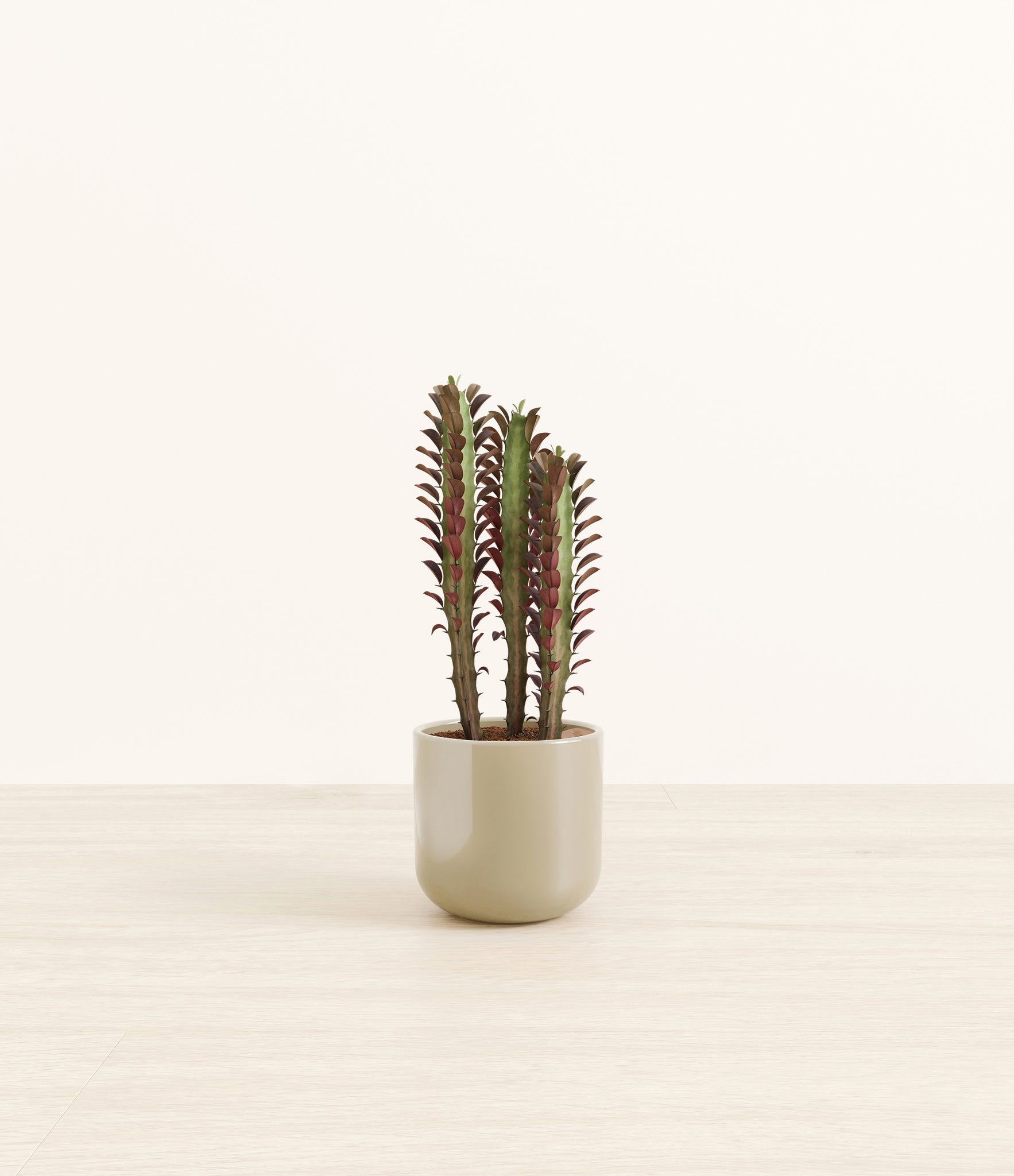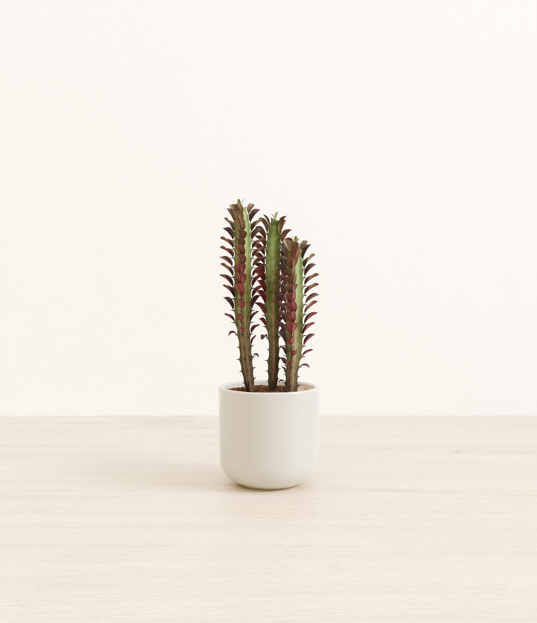 Native to the arid landscapes of Central Africa, African Milk Tree, or Euphorbia trigona, is a sculptural succulent known for its tall, upright stems and geometric charm. Its spiny ridges and tiny green leaves create a candelabra-like silhouette that adds bold vertical presence to any space. Fast-growing and drought-tolerant, it brings structure, strength, and striking texture to bright indoor spots.