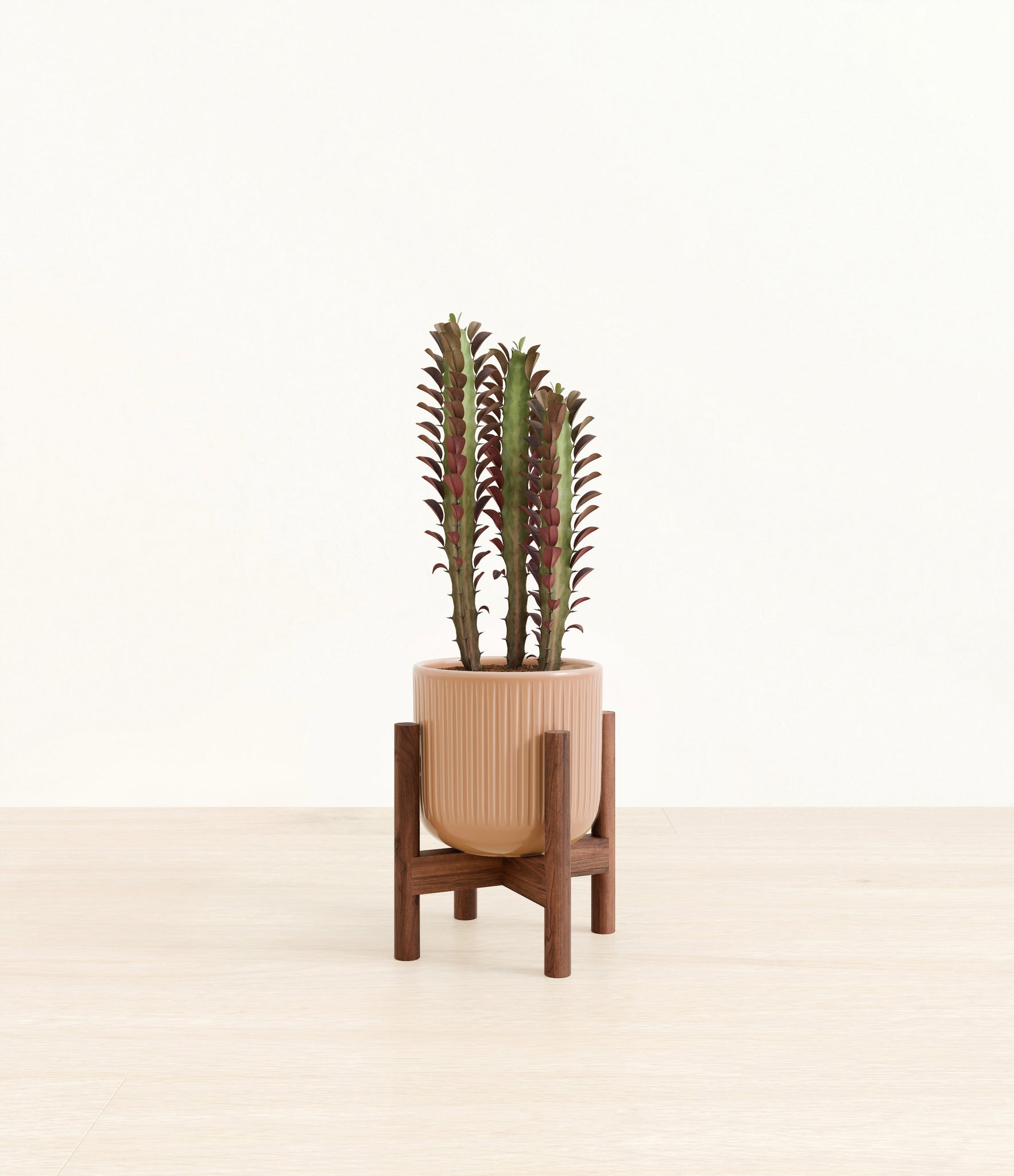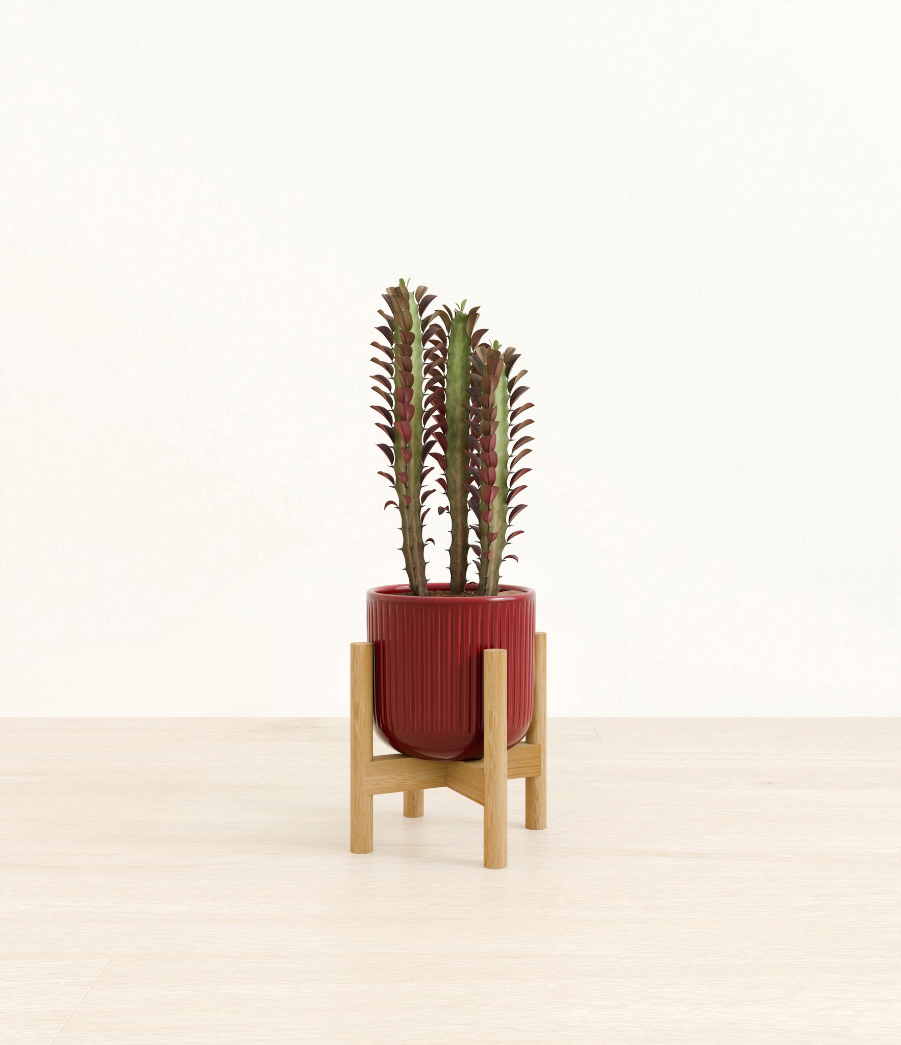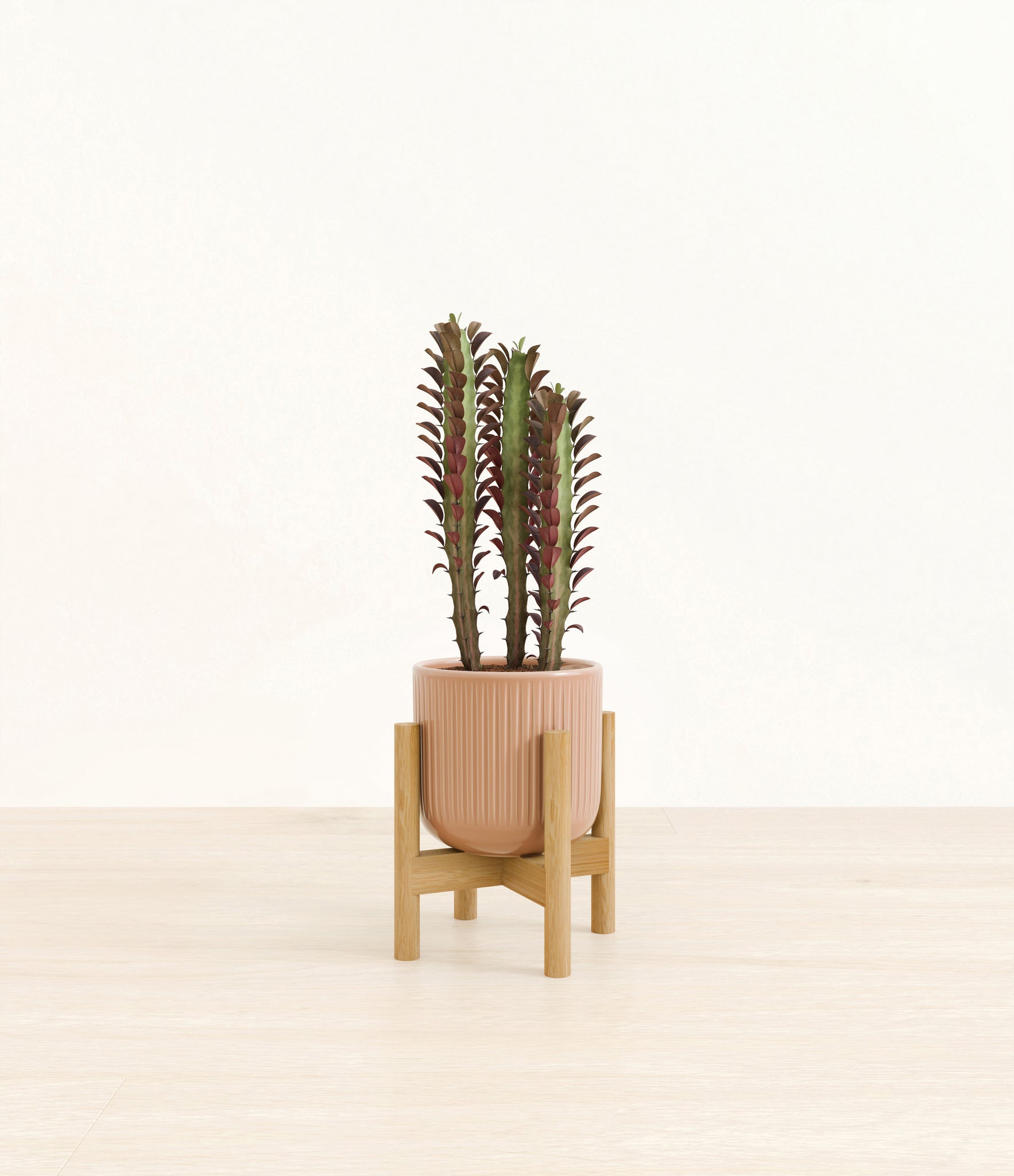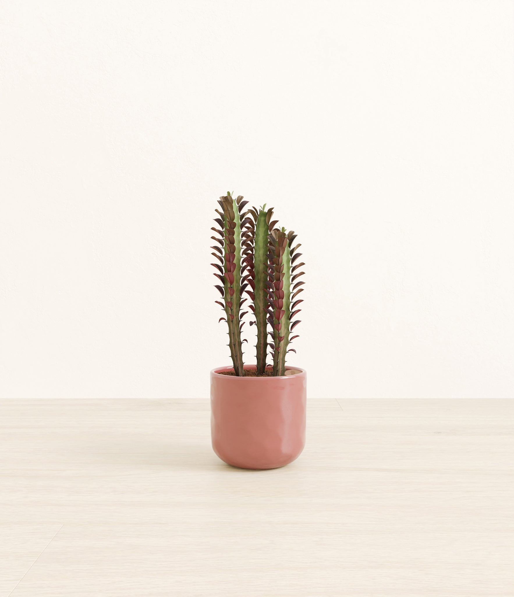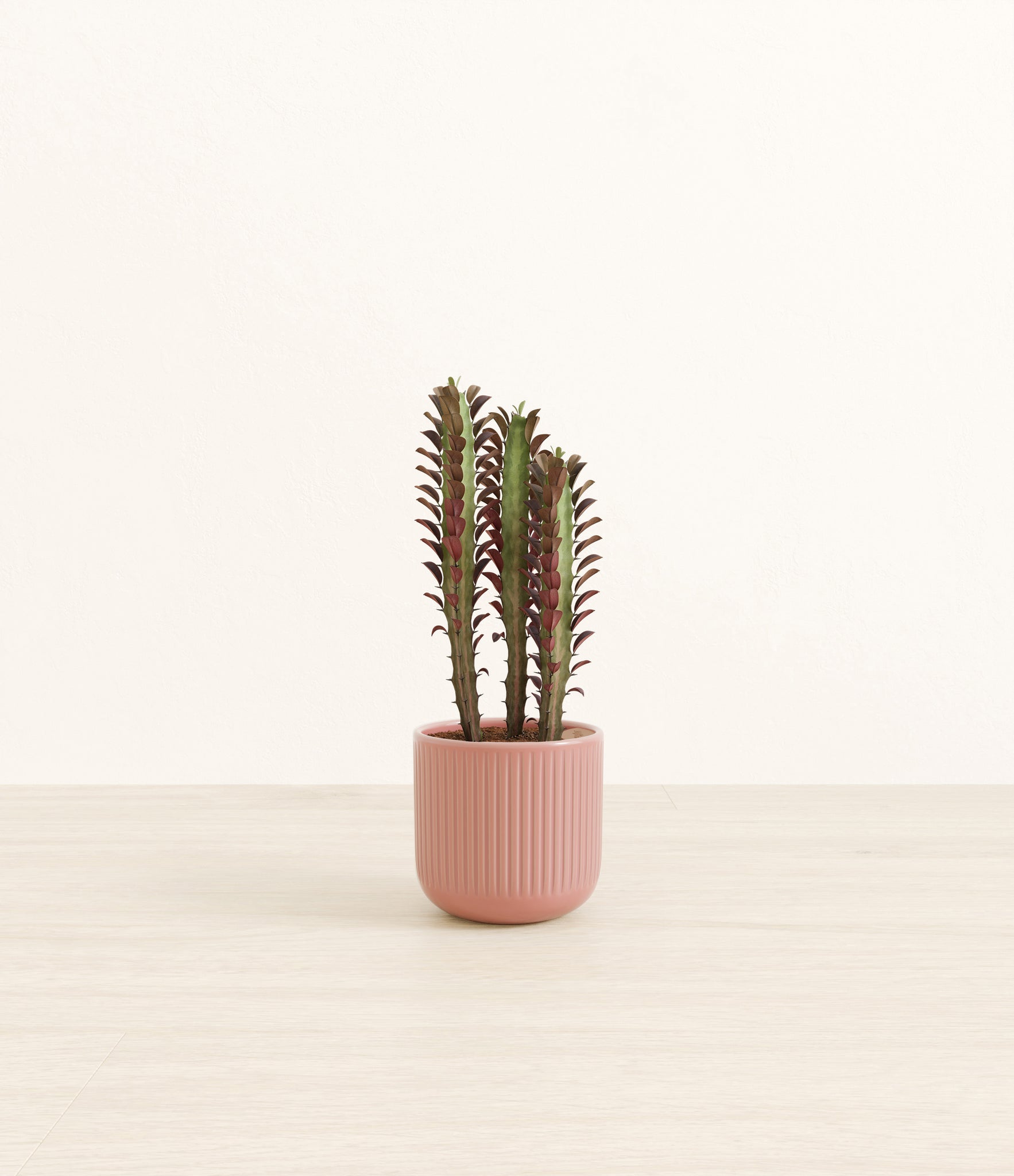 Native to the arid landscapes of Central Africa, African Milk Tree, or Euphorbia trigona, is a sculptural succulent known for its tall, upright stems and geometric charm. Its spiny ridges and tiny green leaves create a candelabra-like silhouette that adds bold vertical presence to any space. Fast-growing and drought-tolerant, it brings structure, strength, and striking texture to bright indoor spots.