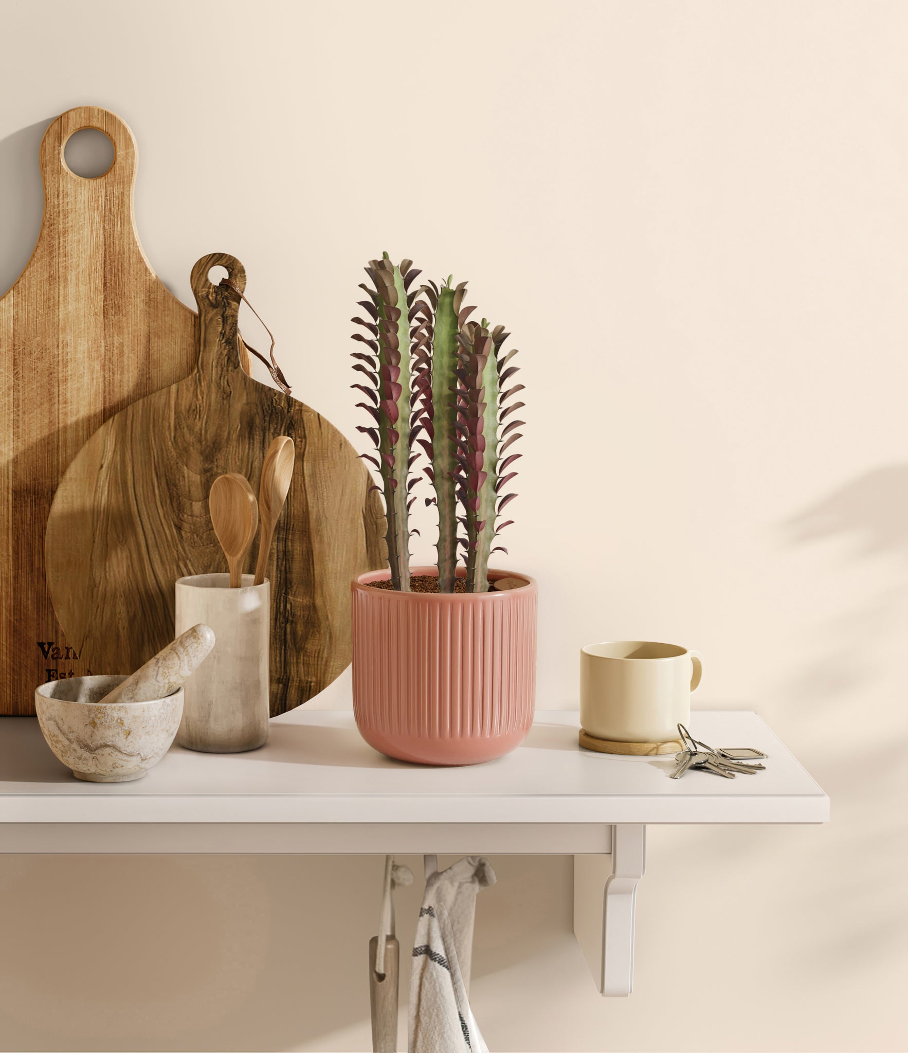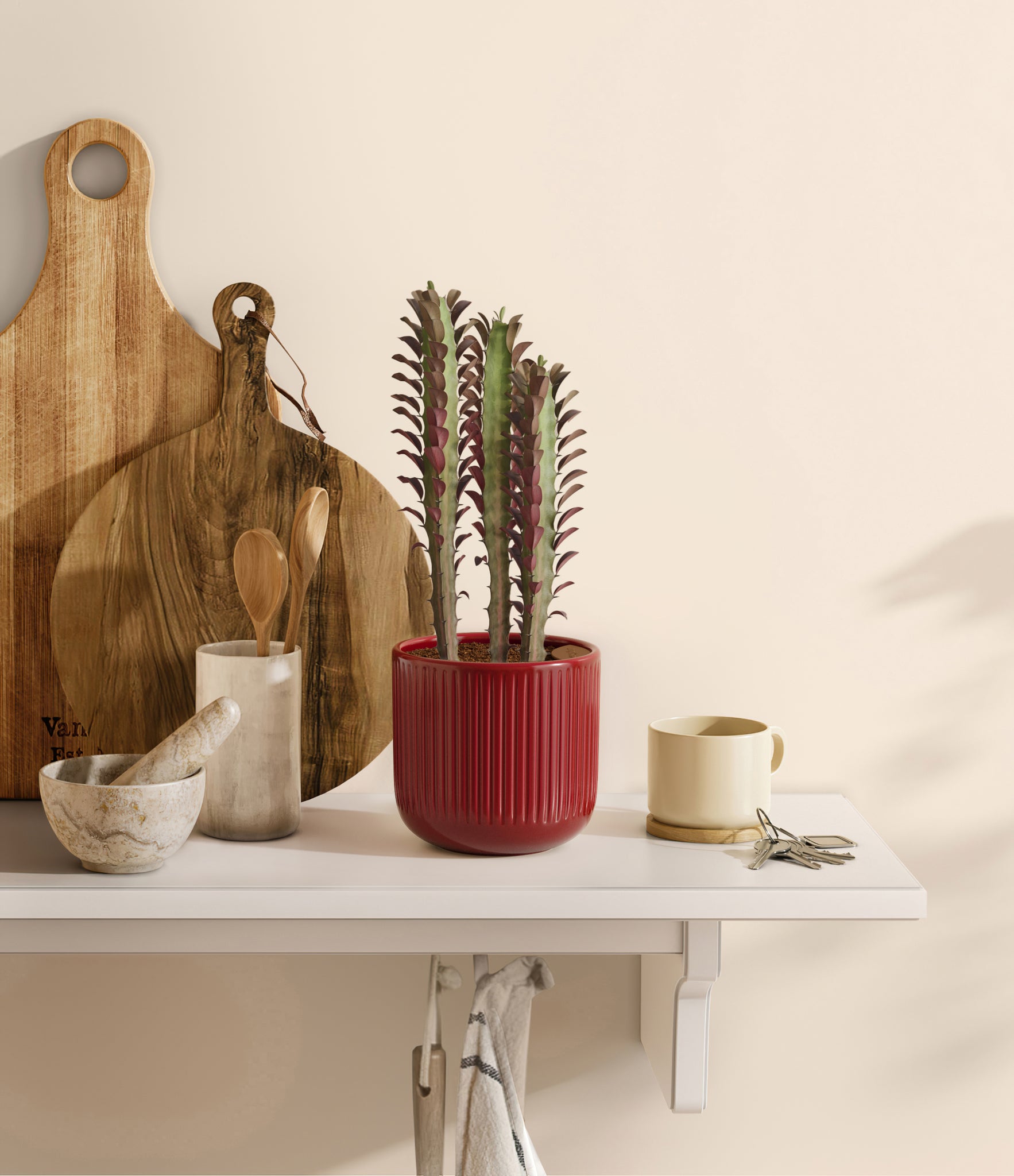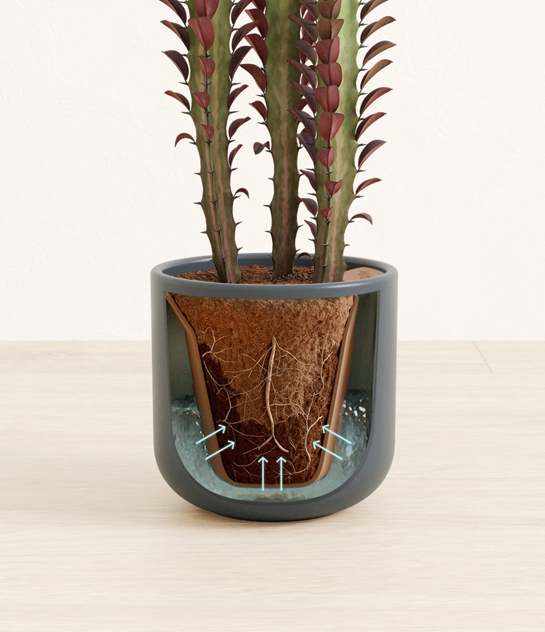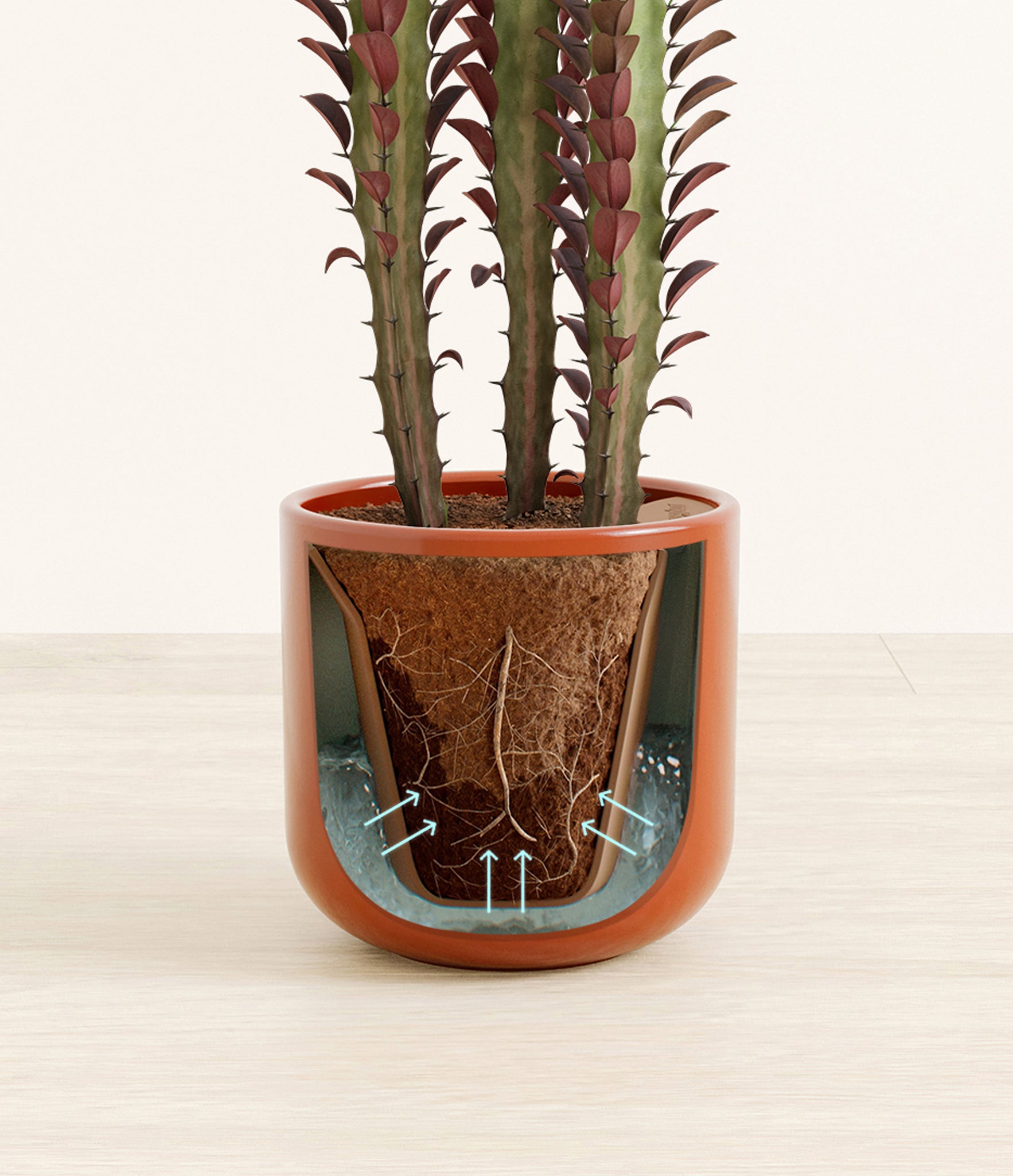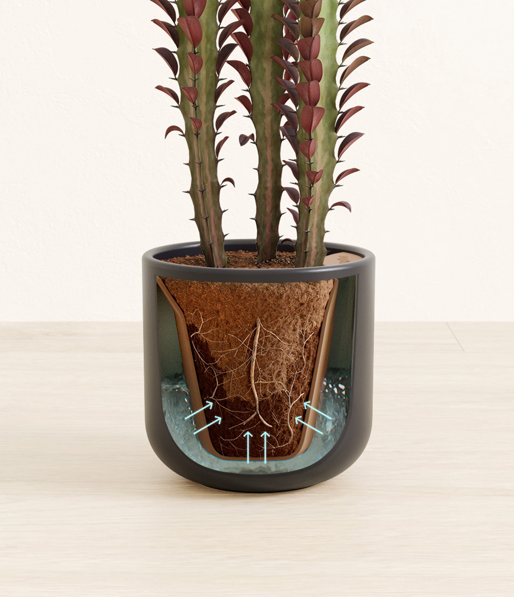 Native to the arid landscapes of Central Africa, African Milk Tree, or Euphorbia trigona, is a sculptural succulent known for its tall, upright stems and geometric charm. Its spiny ridges and tiny green leaves create a candelabra-like silhouette that adds bold vertical presence to any space. Fast-growing and drought-tolerant, it brings structure, strength, and striking texture to bright indoor spots.
