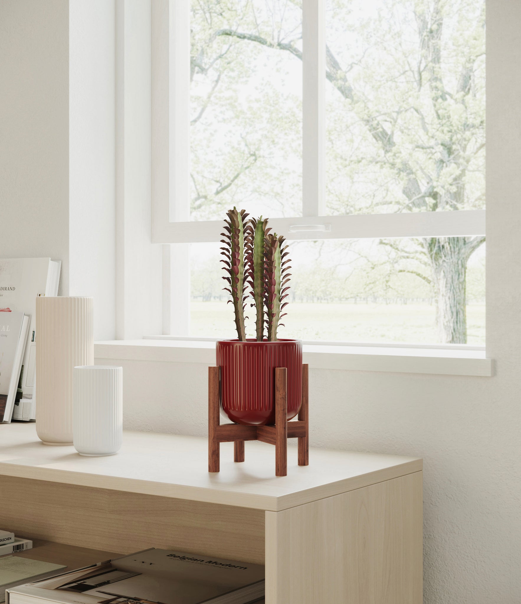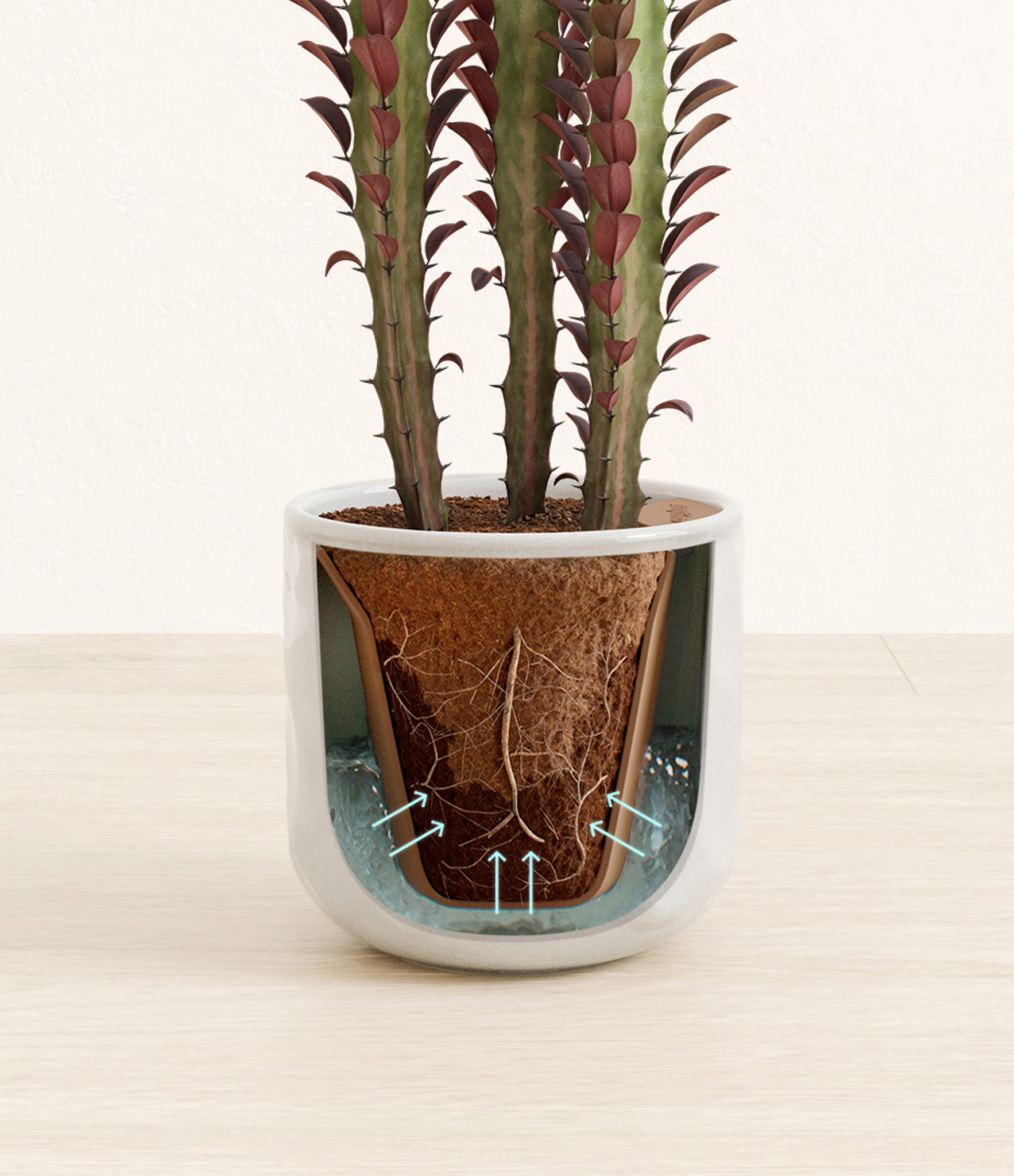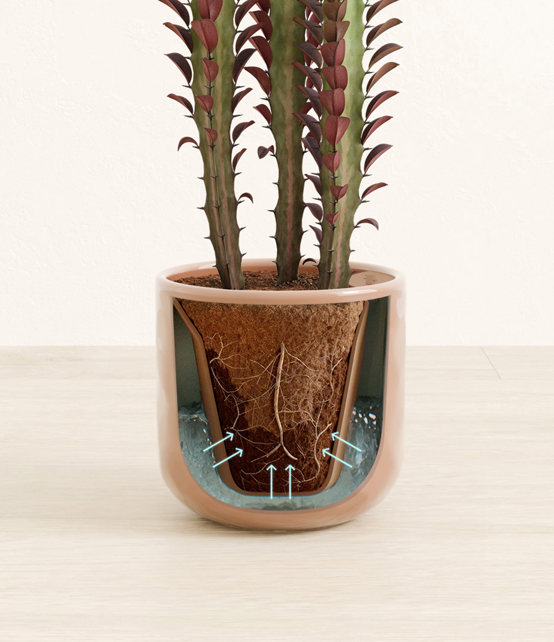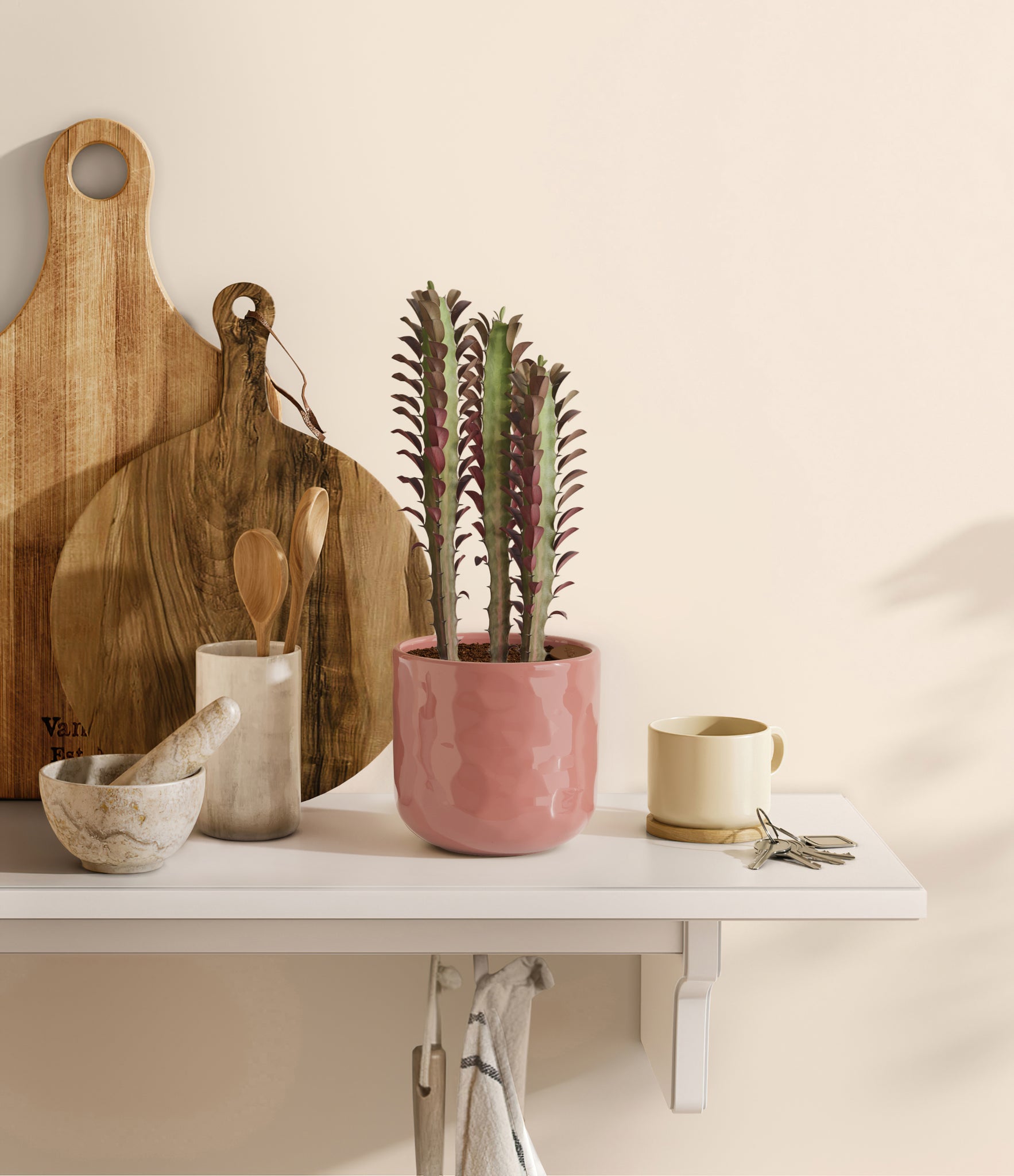 Native to the arid landscapes of Central Africa, African Milk Tree, or Euphorbia trigona, is a sculptural succulent known for its tall, upright stems and geometric charm. Its spiny ridges and tiny green leaves create a candelabra-like silhouette that adds bold vertical presence to any space. Fast-growing and drought-tolerant, it brings structure, strength, and striking texture to bright indoor spots.