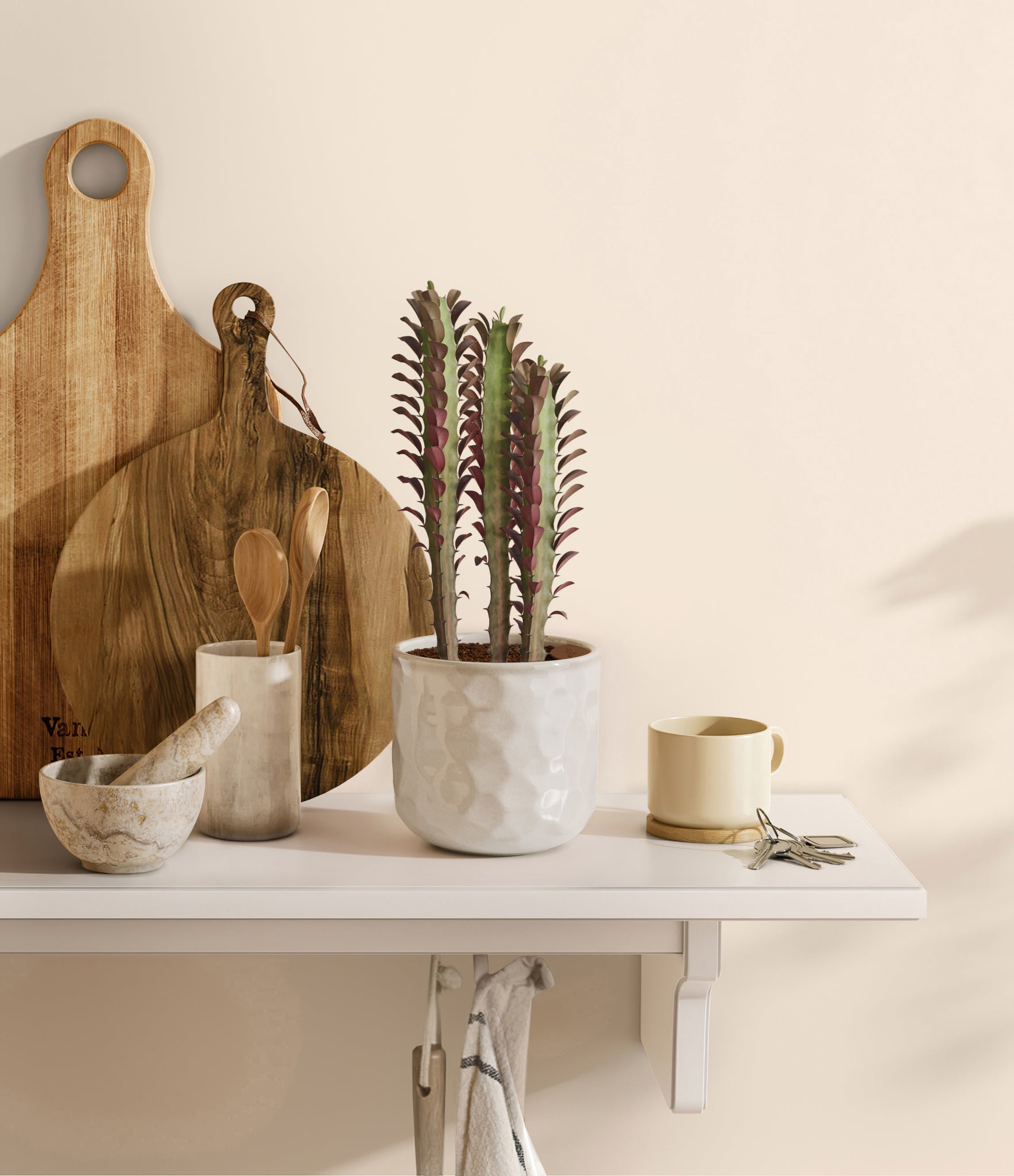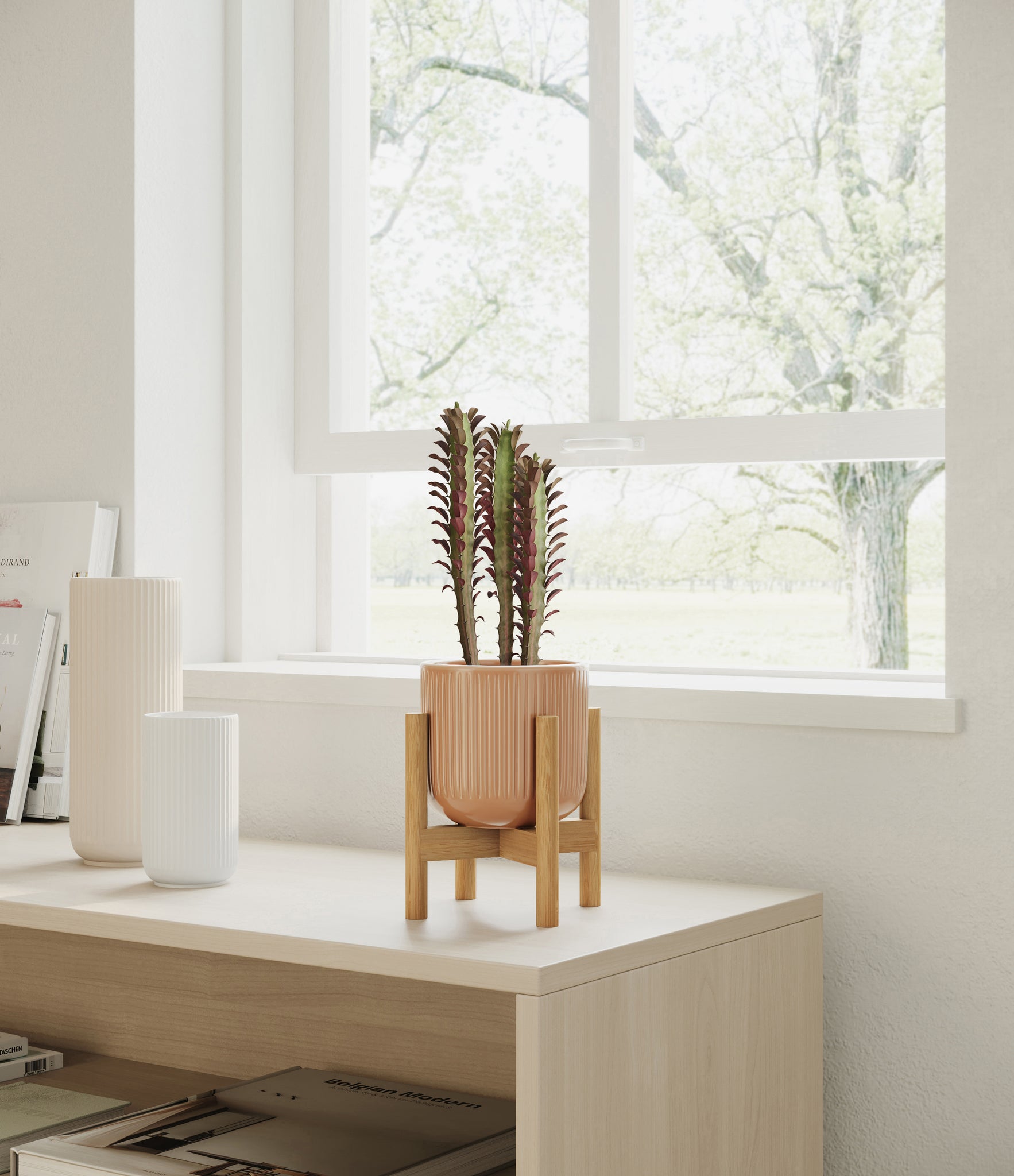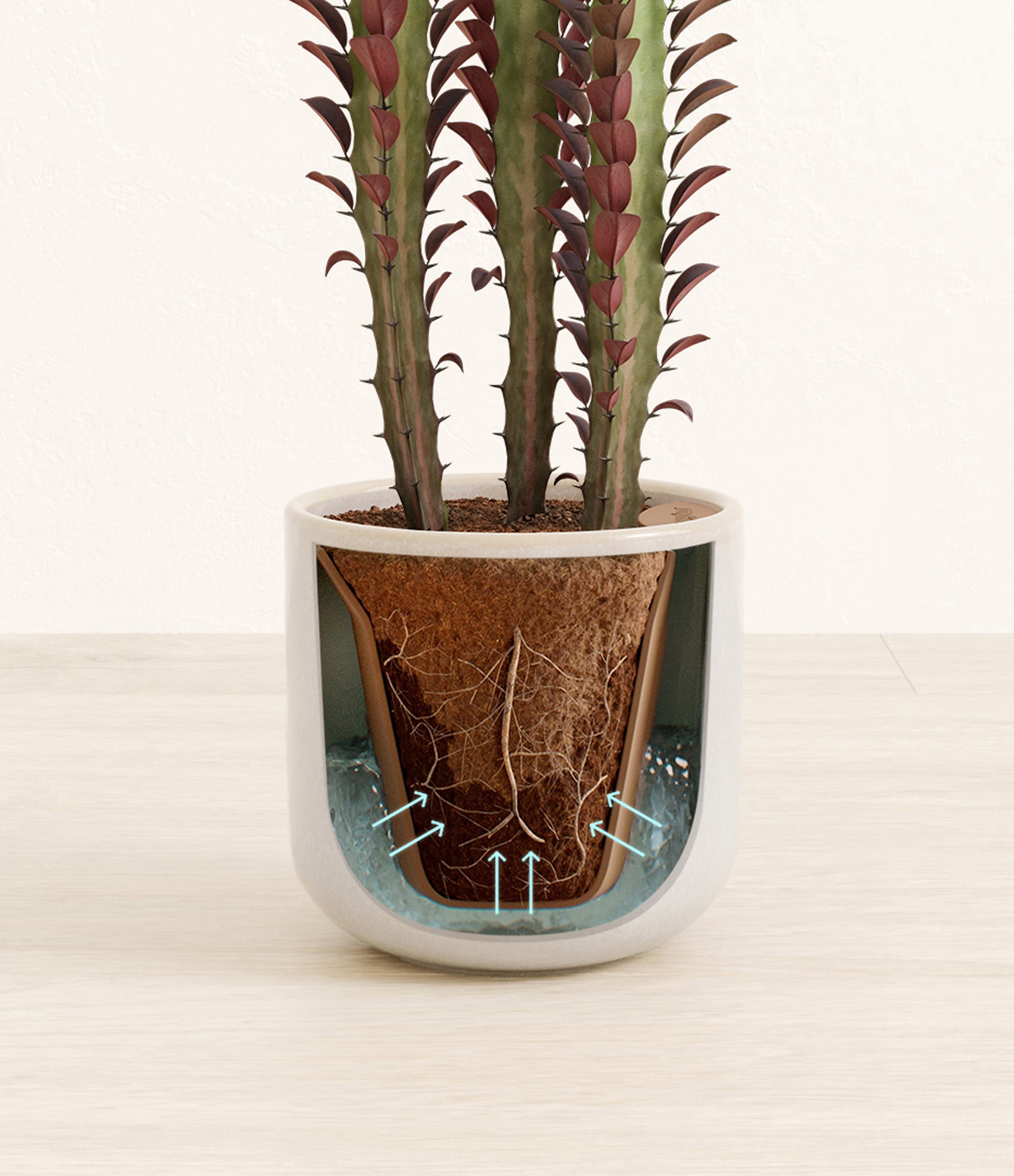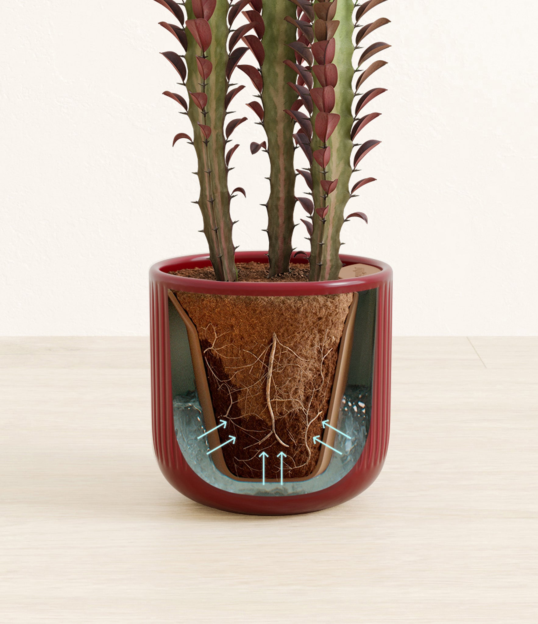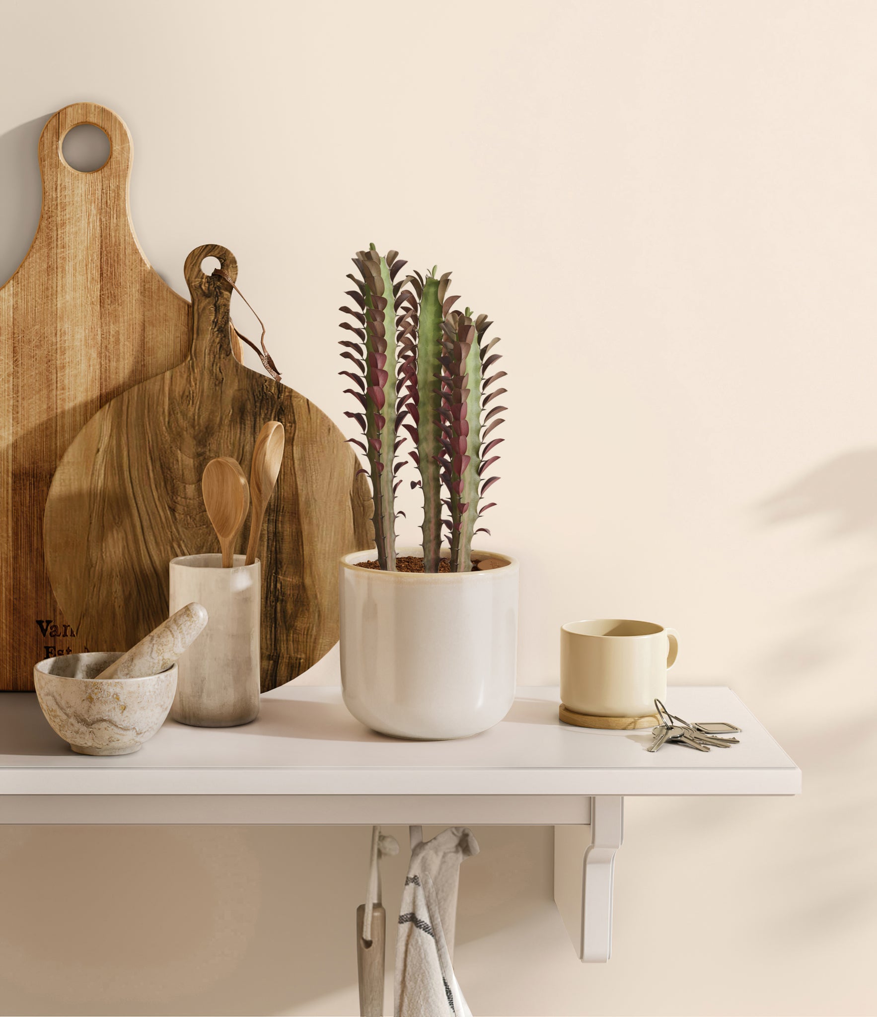 Native to the arid landscapes of Central Africa, African Milk Tree, or Euphorbia trigona, is a sculptural succulent known for its tall, upright stems and geometric charm. Its spiny ridges and tiny green leaves create a candelabra-like silhouette that adds bold vertical presence to any space. Fast-growing and drought-tolerant, it brings structure, strength, and striking texture to bright indoor spots.