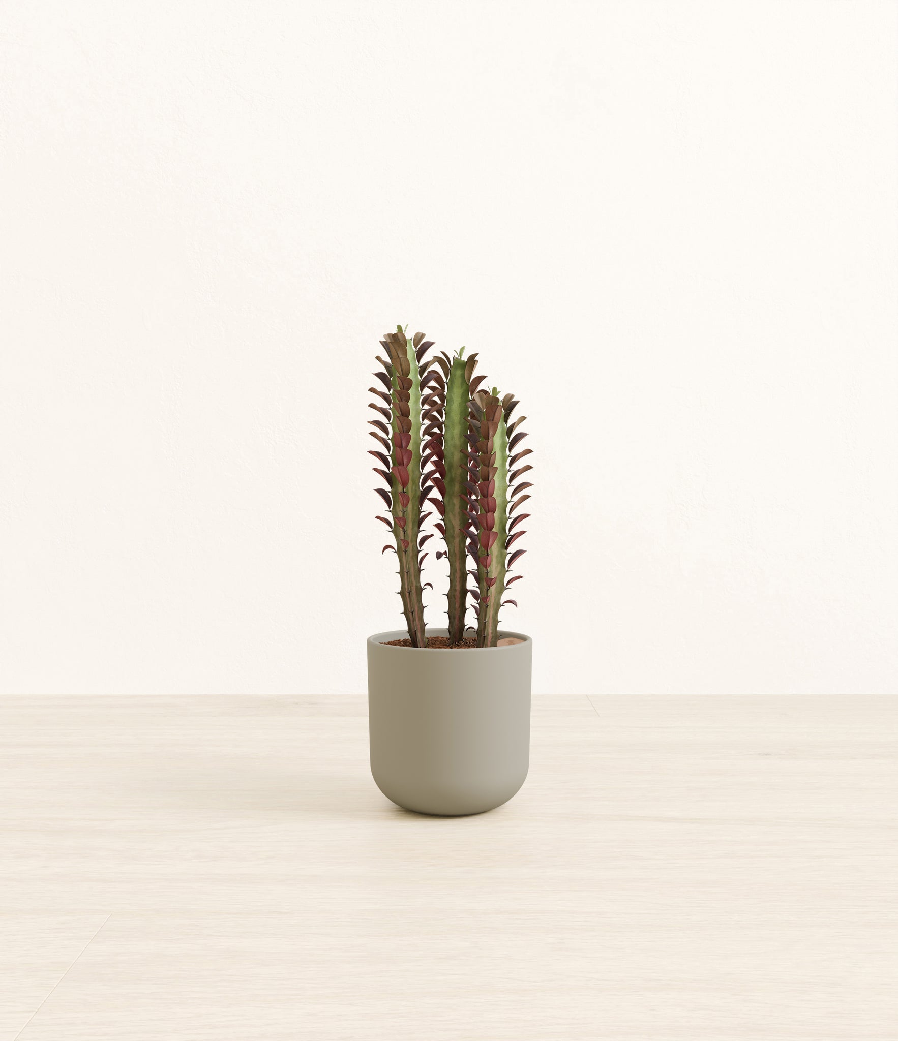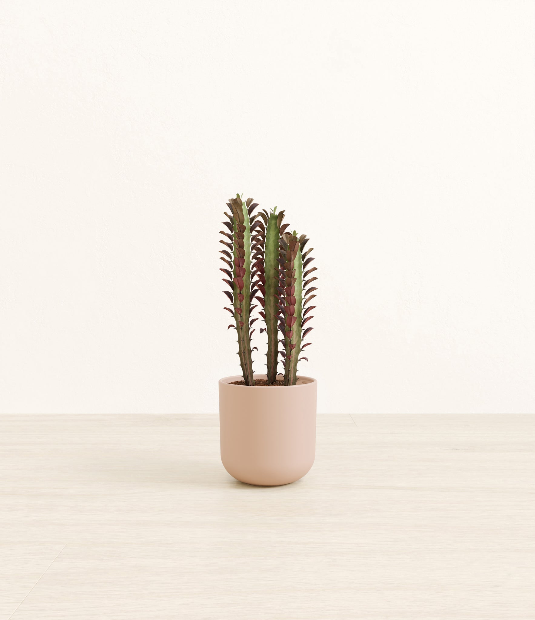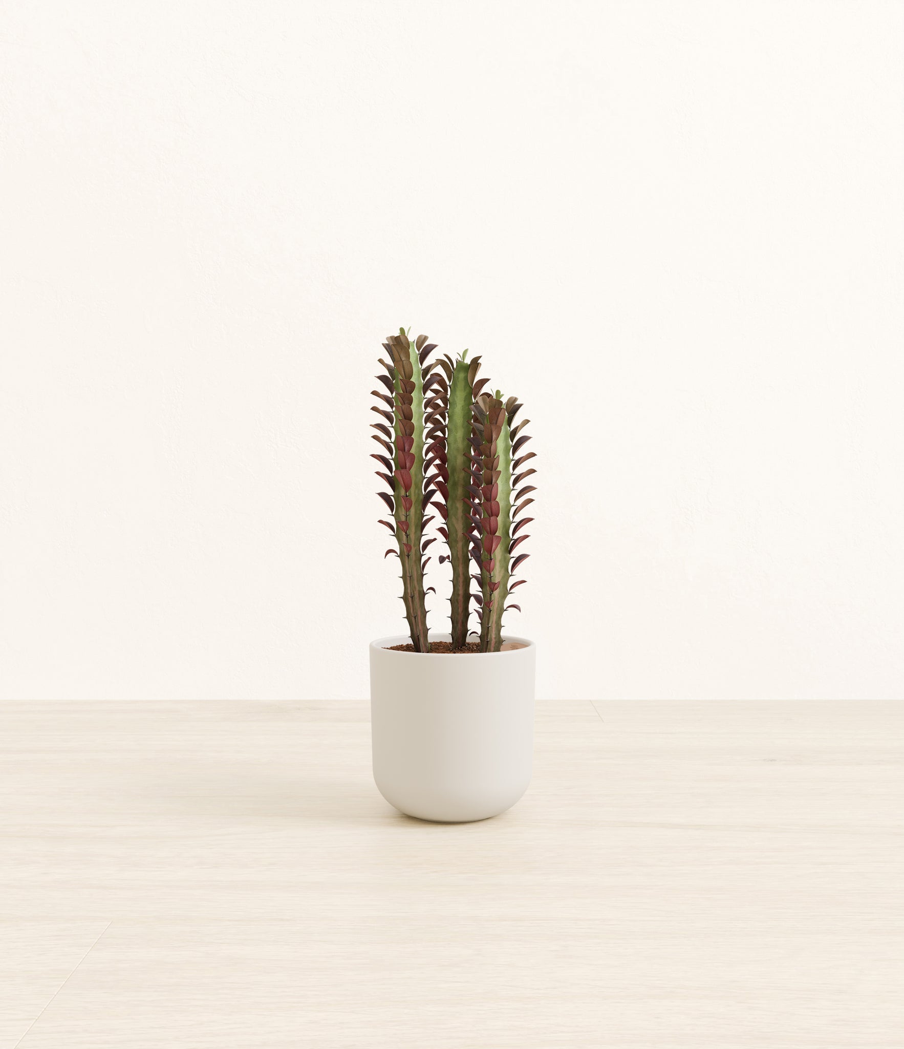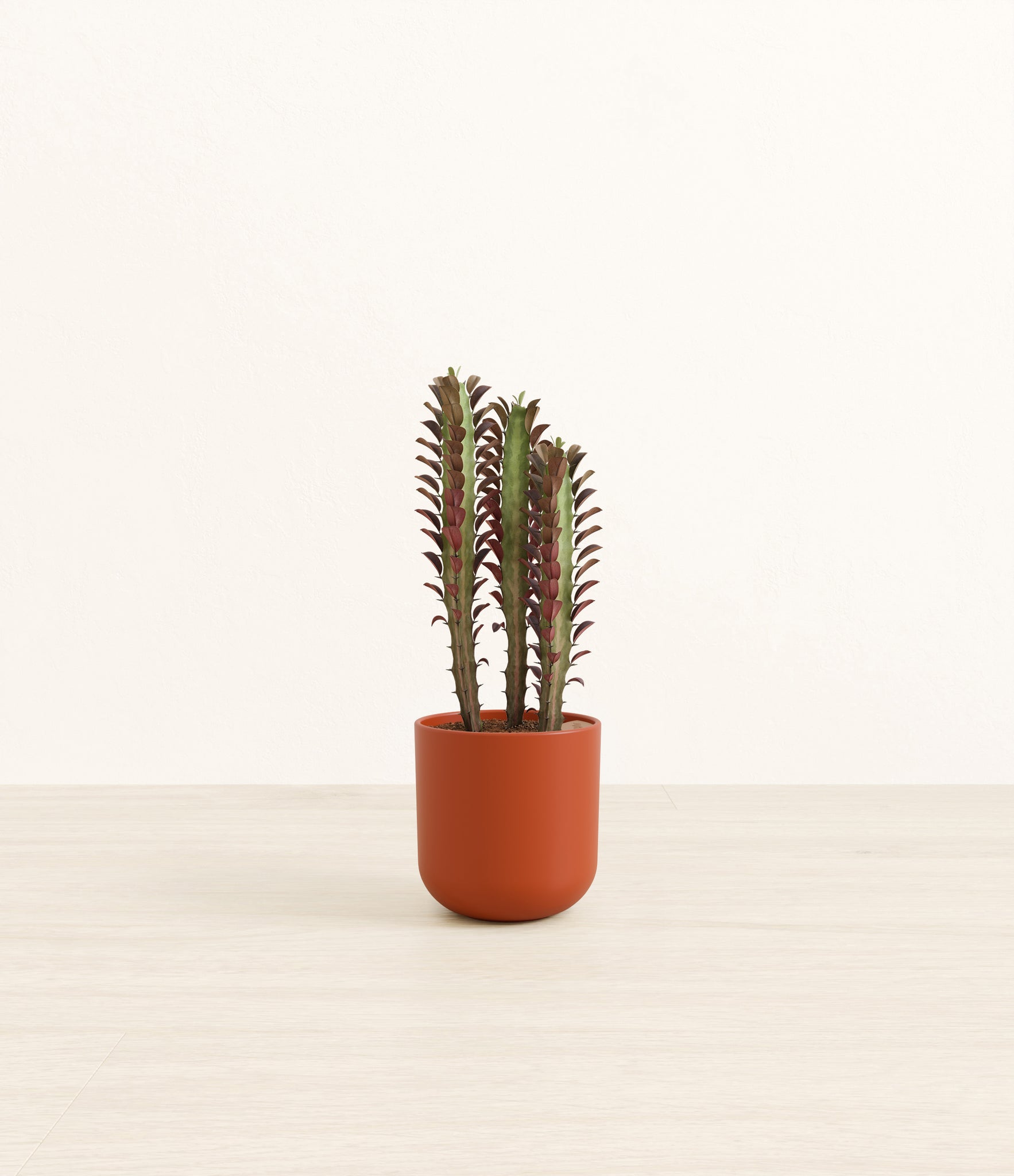 Native to the arid landscapes of Central Africa, African Milk Tree, or Euphorbia trigona, is a sculptural succulent known for its tall, upright stems and geometric charm. Its spiny ridges and tiny green leaves create a candelabra-like silhouette that adds bold vertical presence to any space. Fast-growing and drought-tolerant, it brings structure, strength, and striking texture to bright indoor spots.