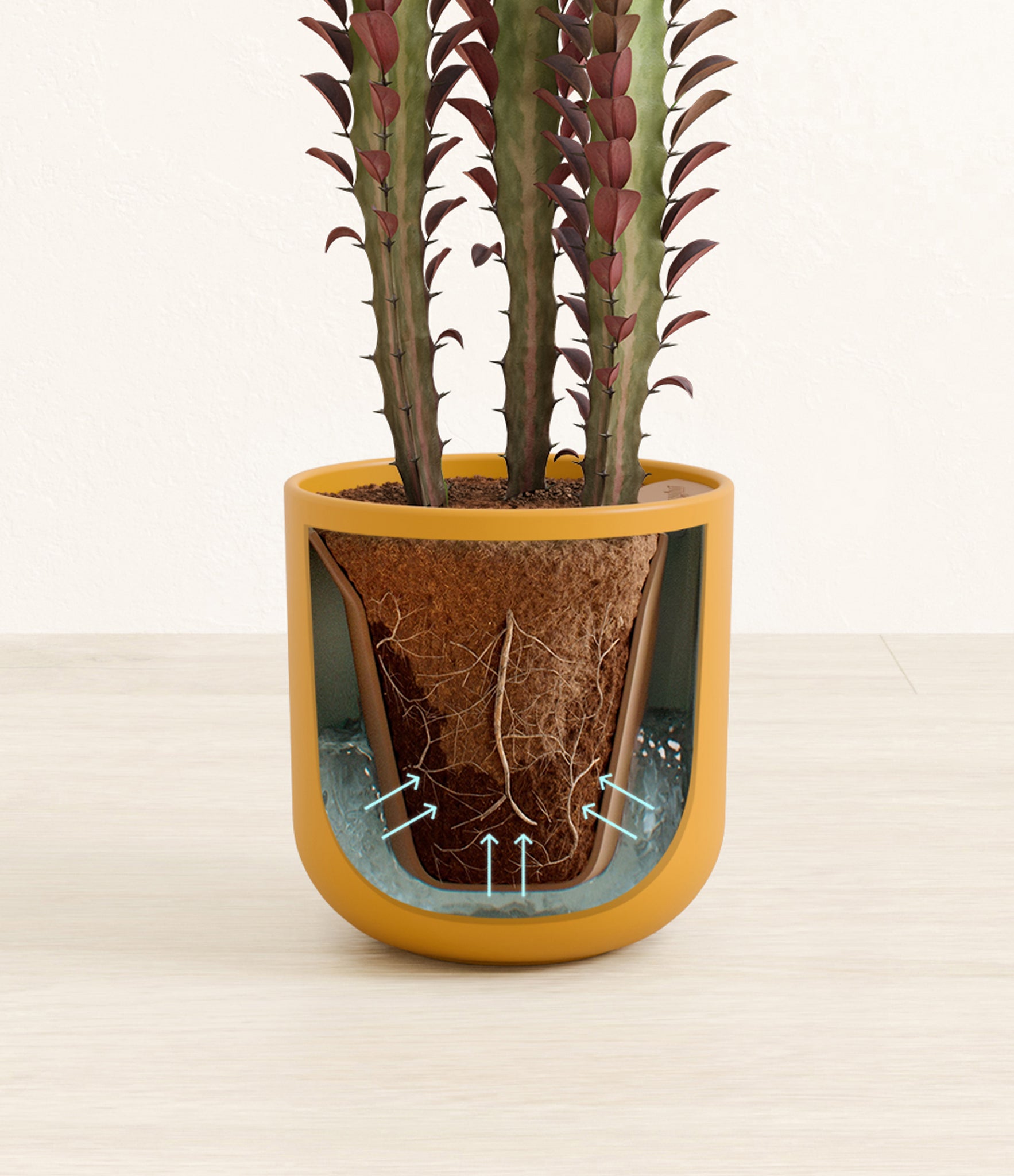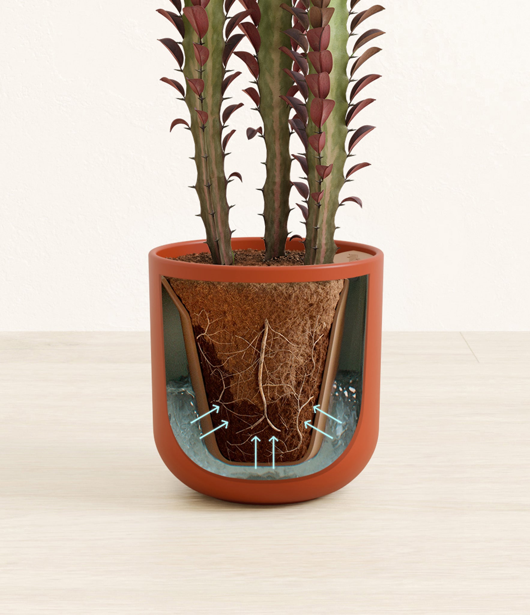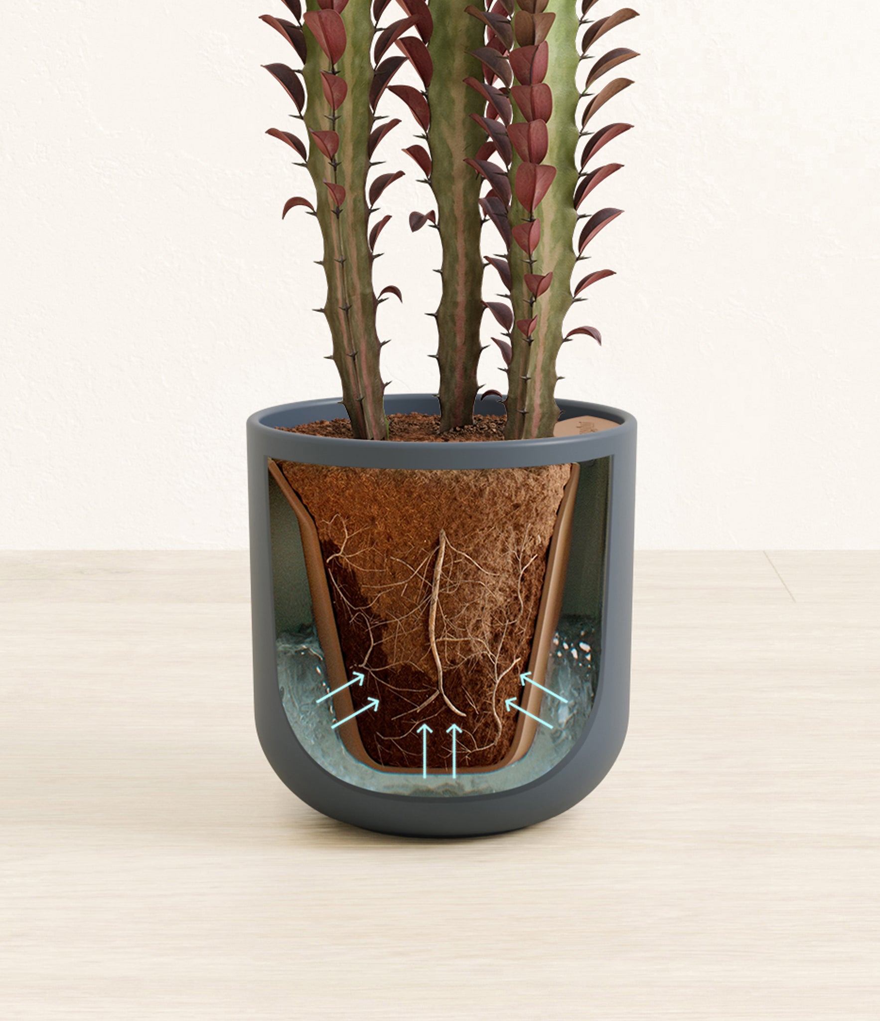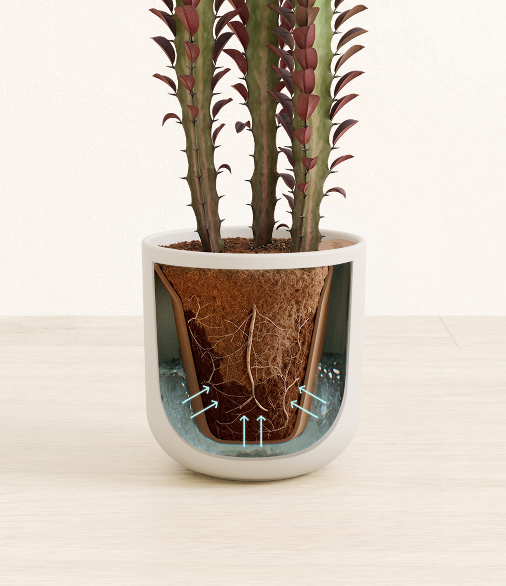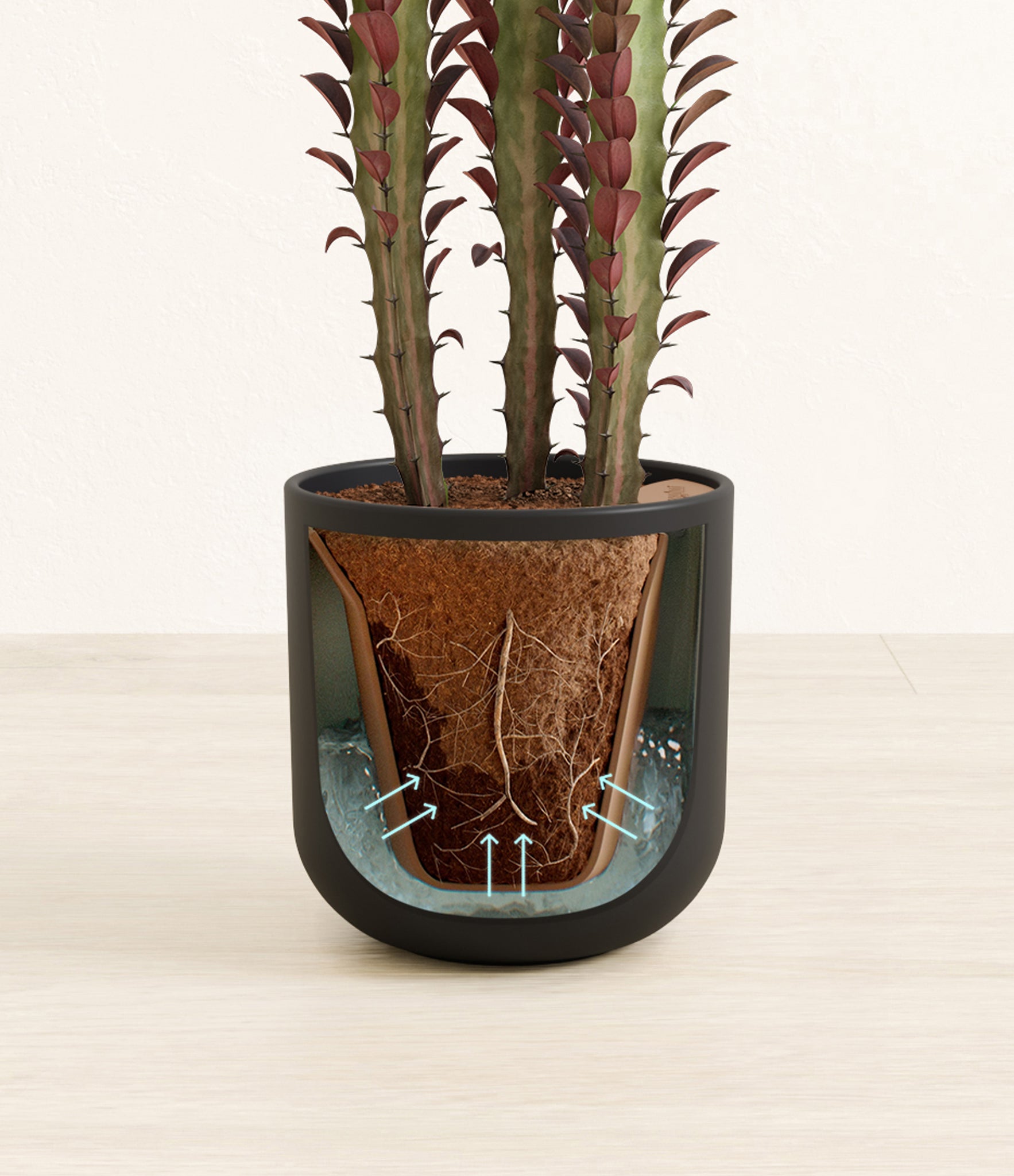 Native to the arid landscapes of Central Africa, African Milk Tree, or Euphorbia trigona, is a sculptural succulent known for its tall, upright stems and geometric charm. Its spiny ridges and tiny green leaves create a candelabra-like silhouette that adds bold vertical presence to any space. Fast-growing and drought-tolerant, it brings structure, strength, and striking texture to bright indoor spots.