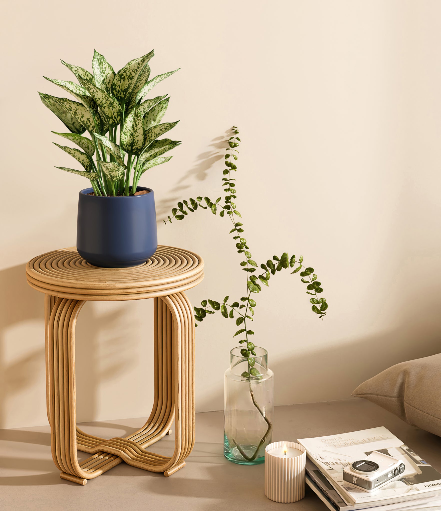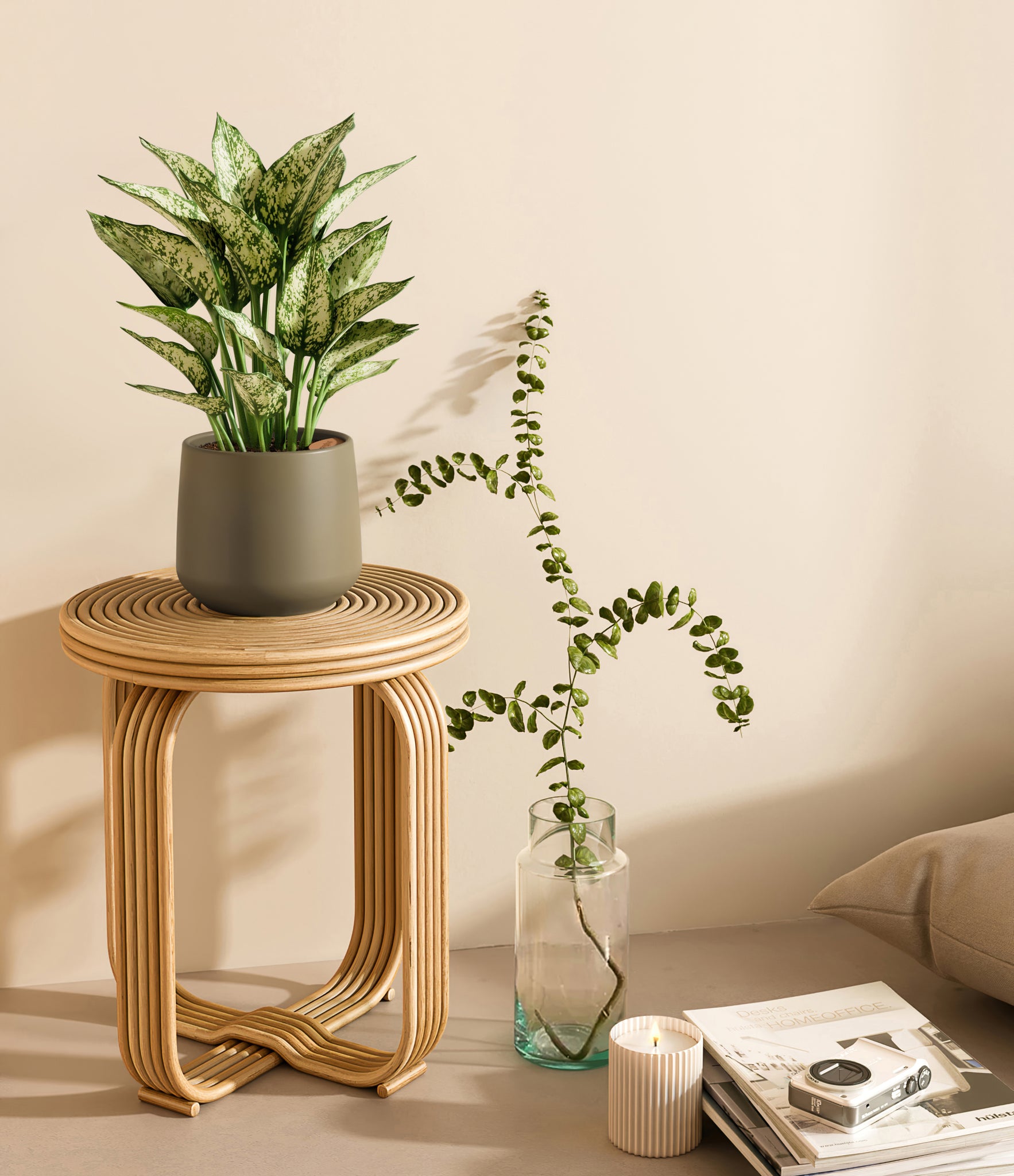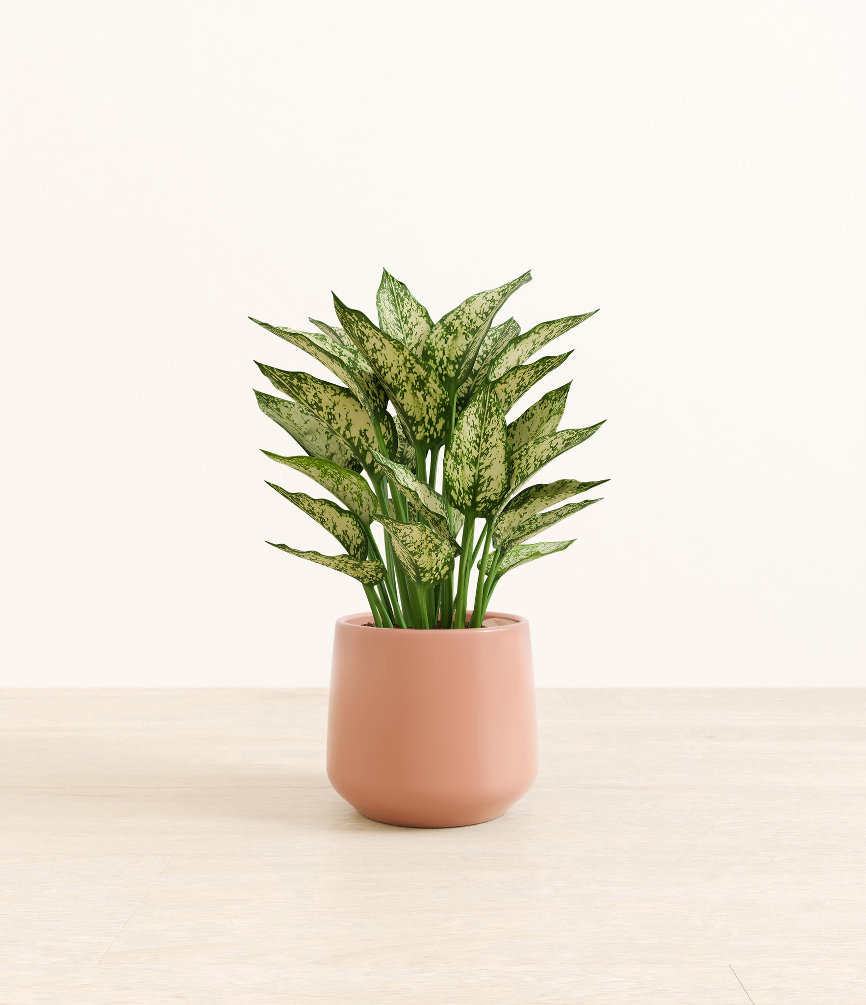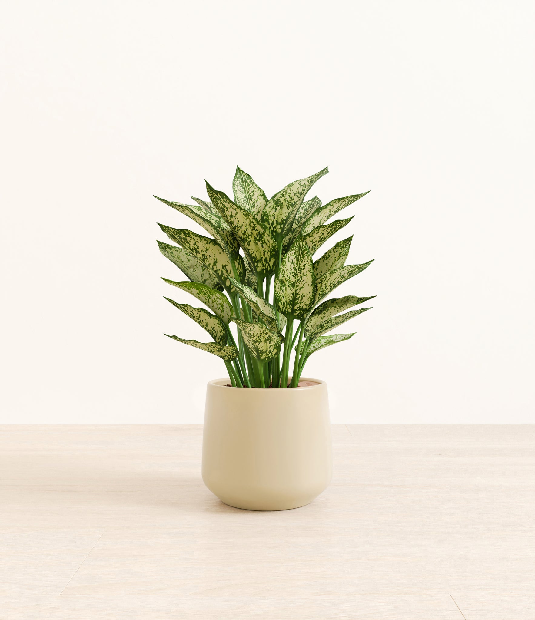 Native to the lush tropical forests of Asia, Aglaonema Snow White is a stunning evergreen known for its striking variegated foliage. Its leaves are splashed with vibrant green and creamy white patterns, creating a captivating contrast that brightens any interior space. The unique marbled look gives it a cool, fresh presence reminiscent of snow-dusted leaves, making it one of the most decorative varieties in the Aglaonema family.