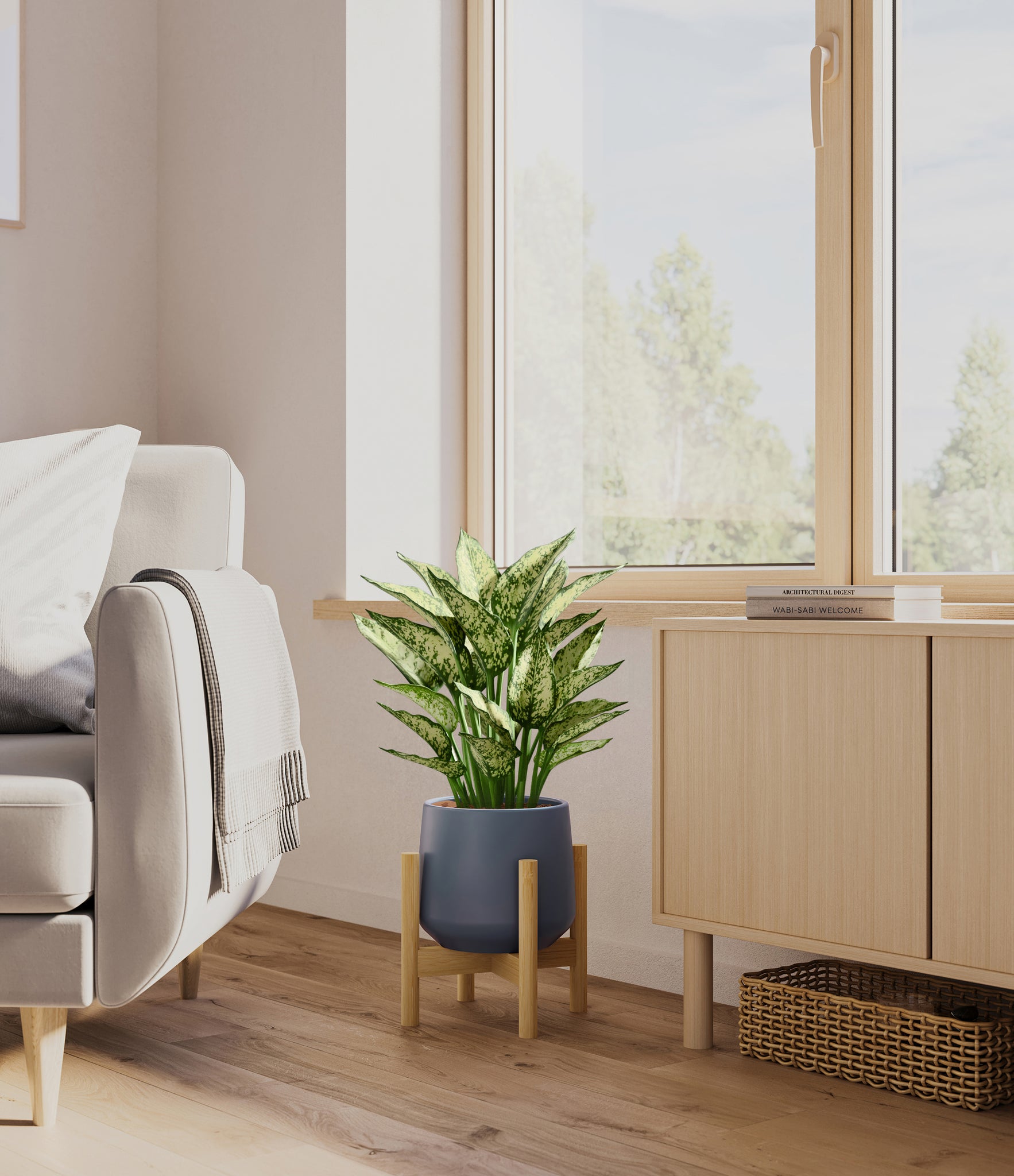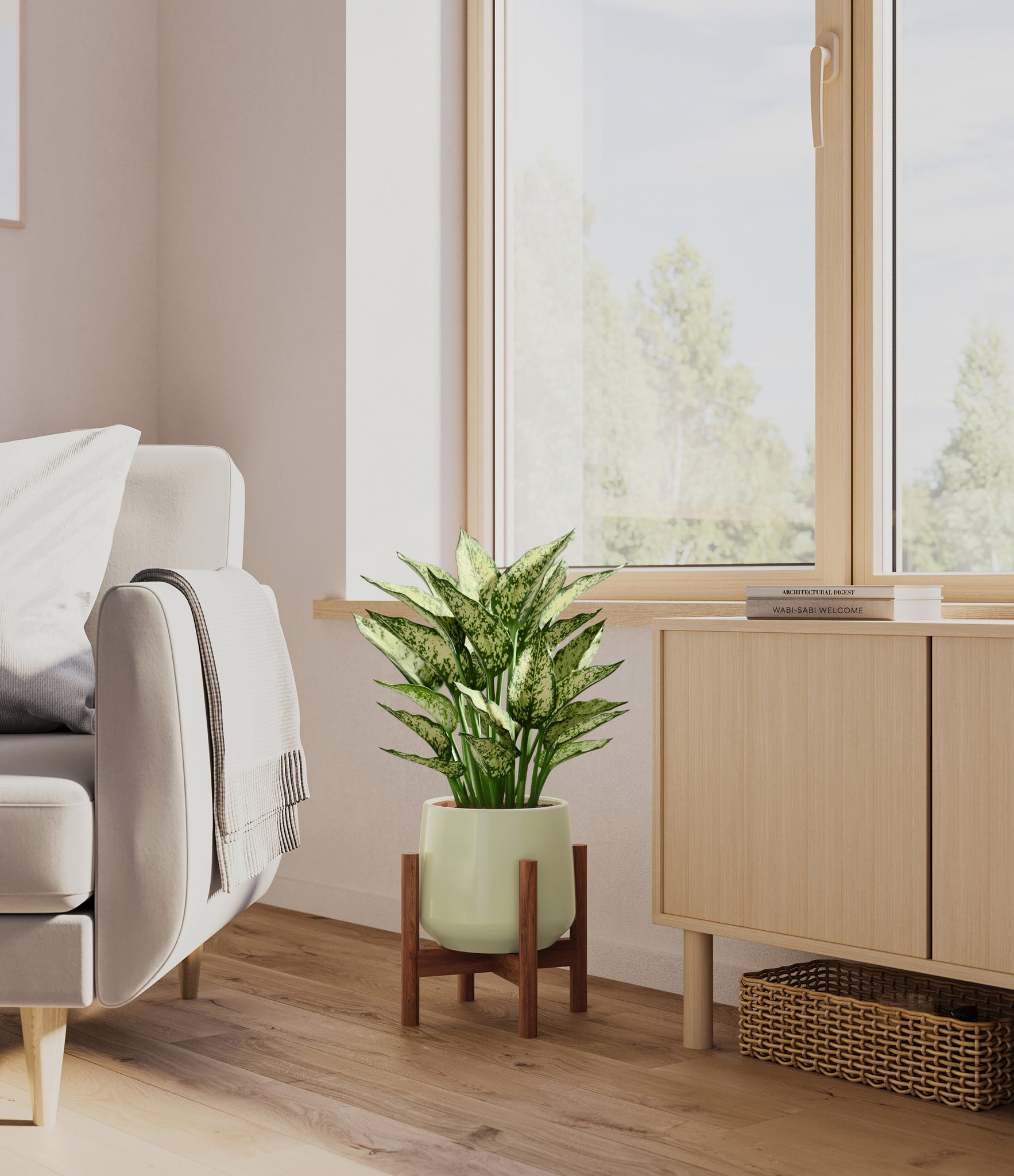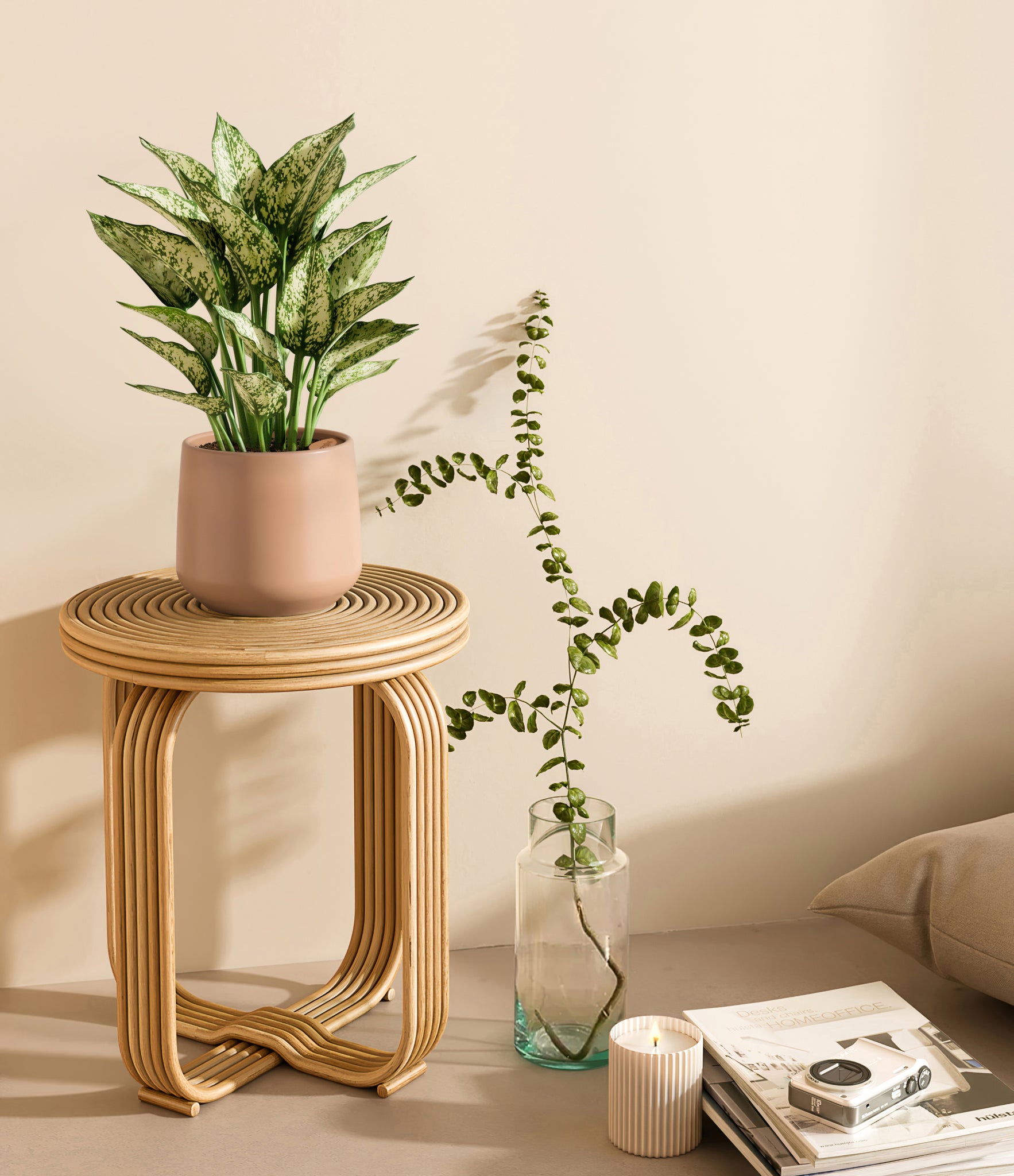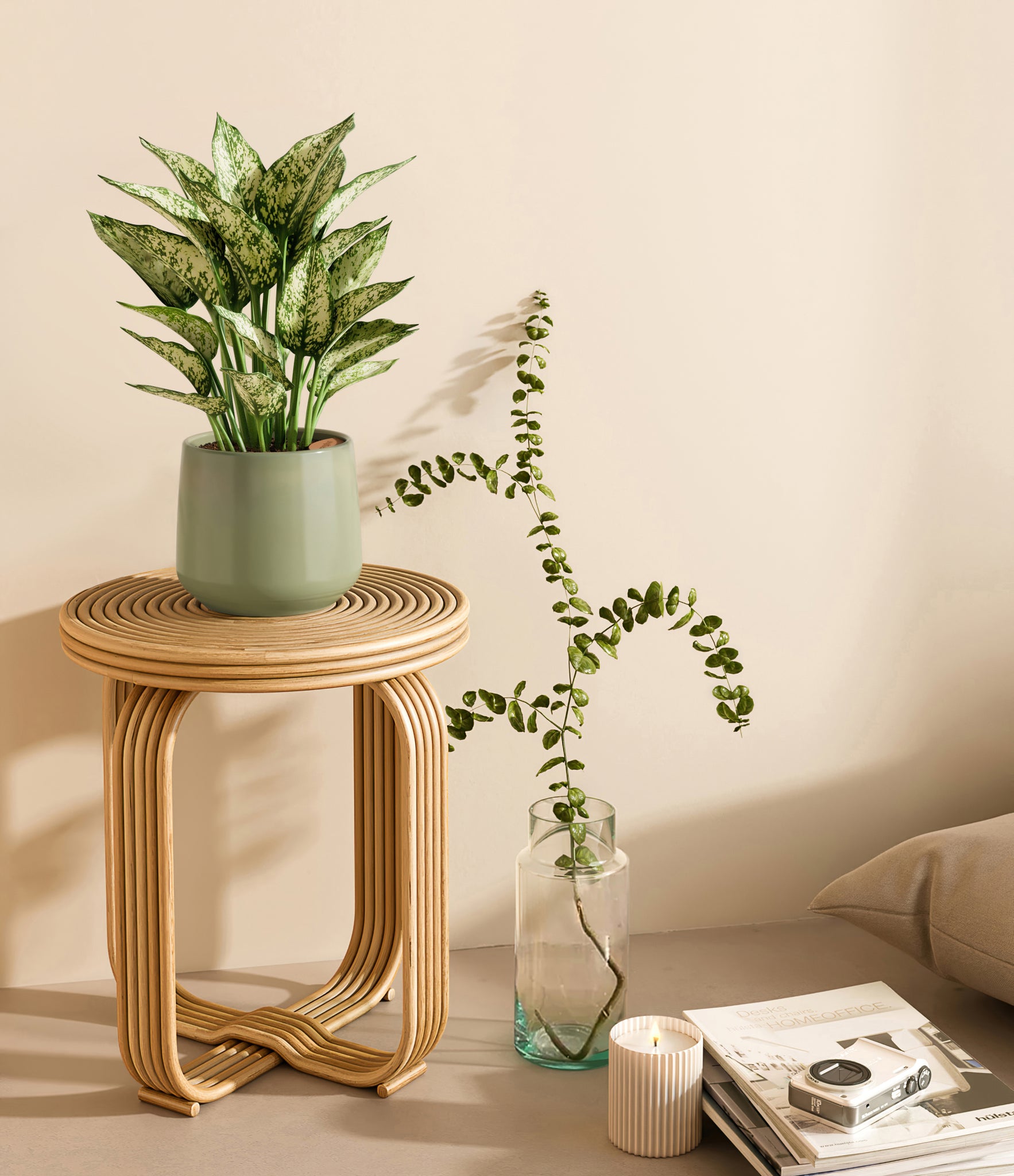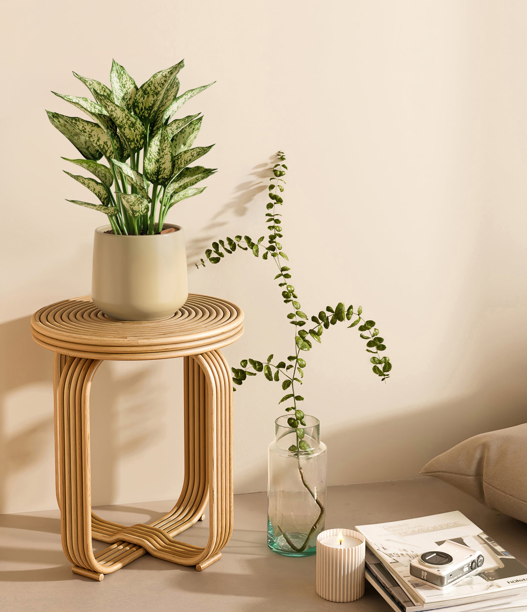 Native to the lush tropical forests of Asia, Aglaonema Snow White is a stunning evergreen known for its striking variegated foliage. Its leaves are splashed with vibrant green and creamy white patterns, creating a captivating contrast that brightens any interior space. The unique marbled look gives it a cool, fresh presence reminiscent of snow-dusted leaves, making it one of the most decorative varieties in the Aglaonema family.