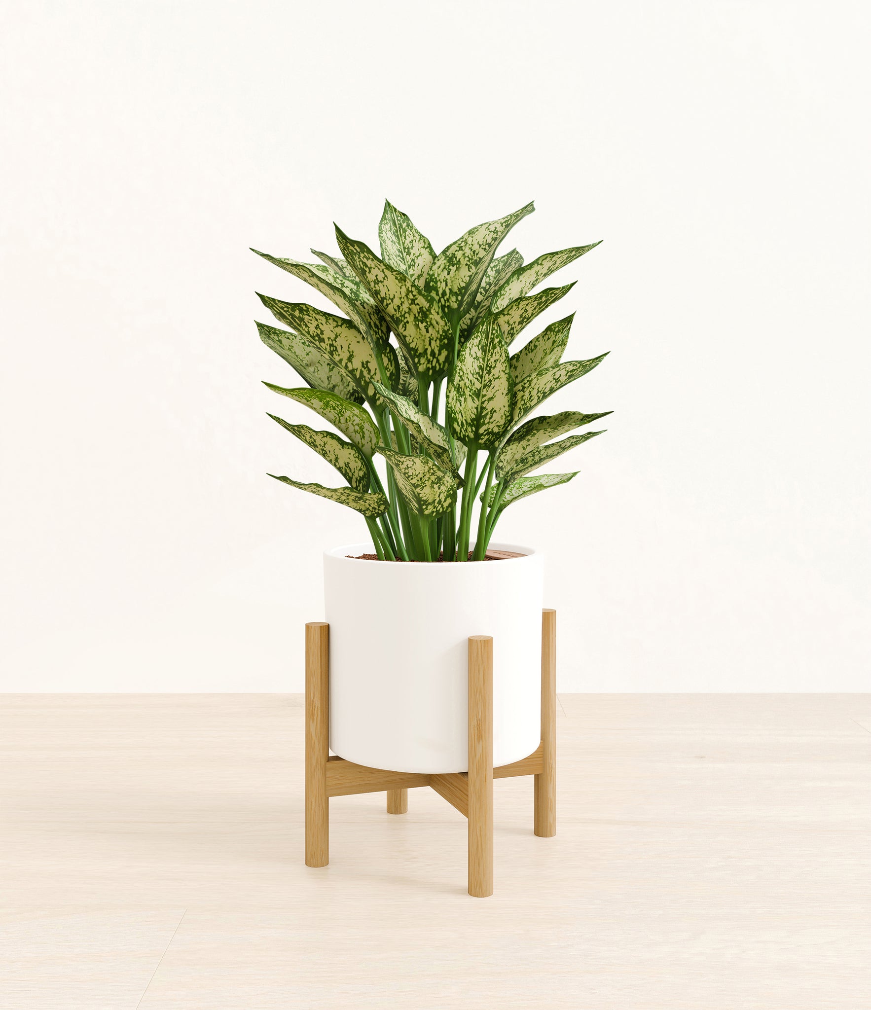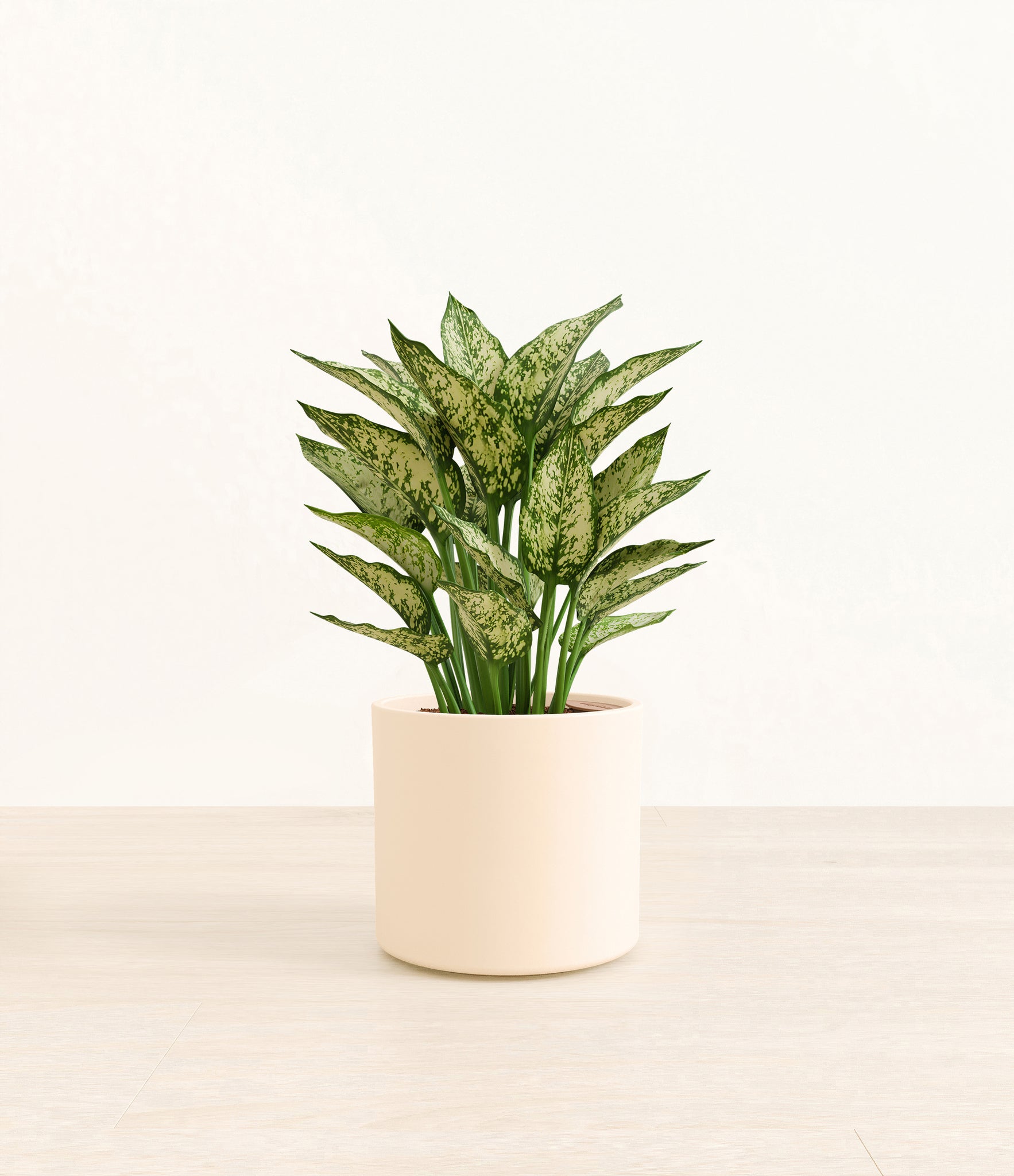 Native to the lush tropical forests of Asia, Aglaonema Snow White is a stunning evergreen known for its striking variegated foliage. Its leaves are splashed with vibrant green and creamy white patterns, creating a captivating contrast that brightens any interior space. The unique marbled look gives it a cool, fresh presence reminiscent of snow-dusted leaves, making it one of the most decorative varieties in the Aglaonema family.