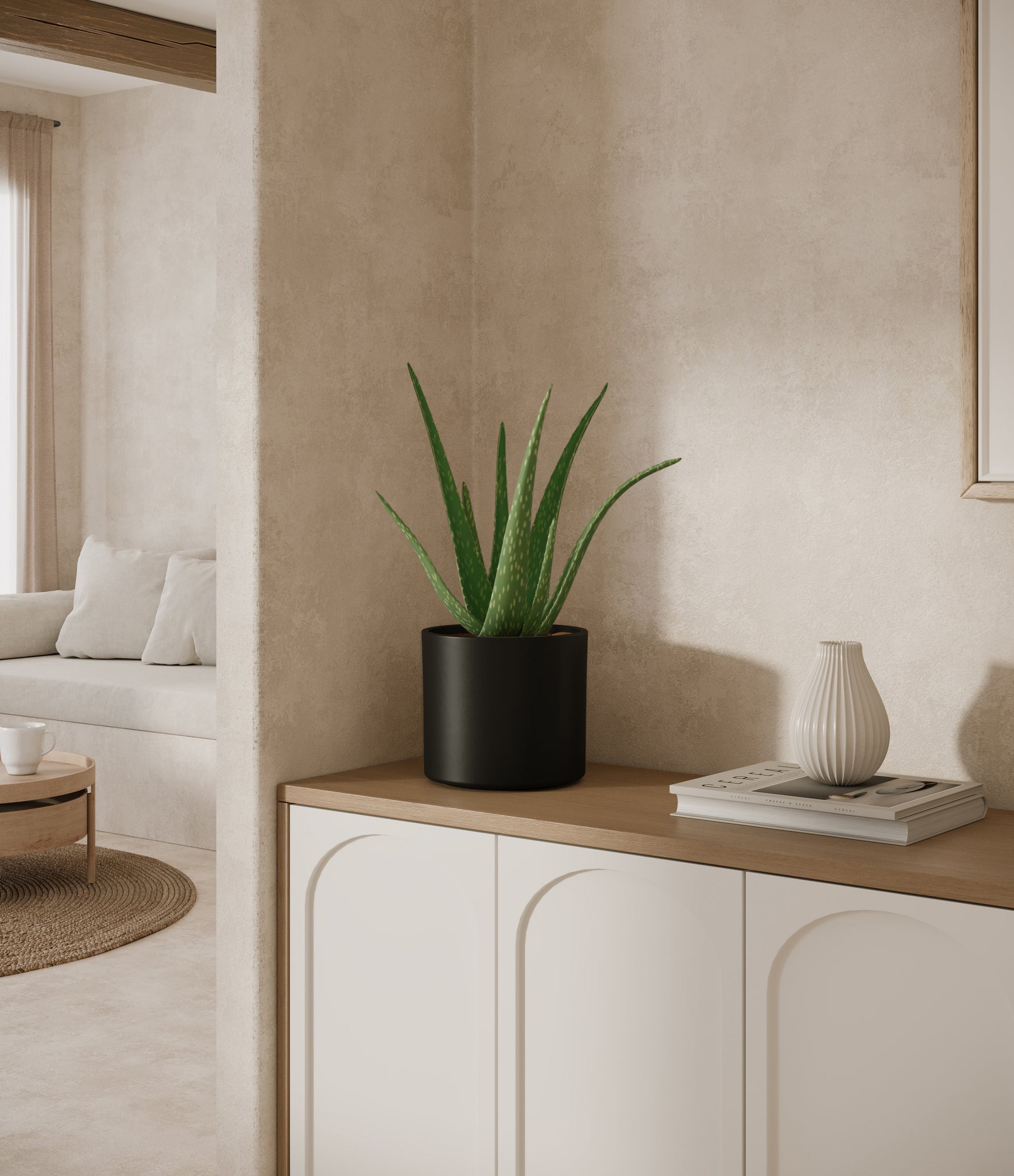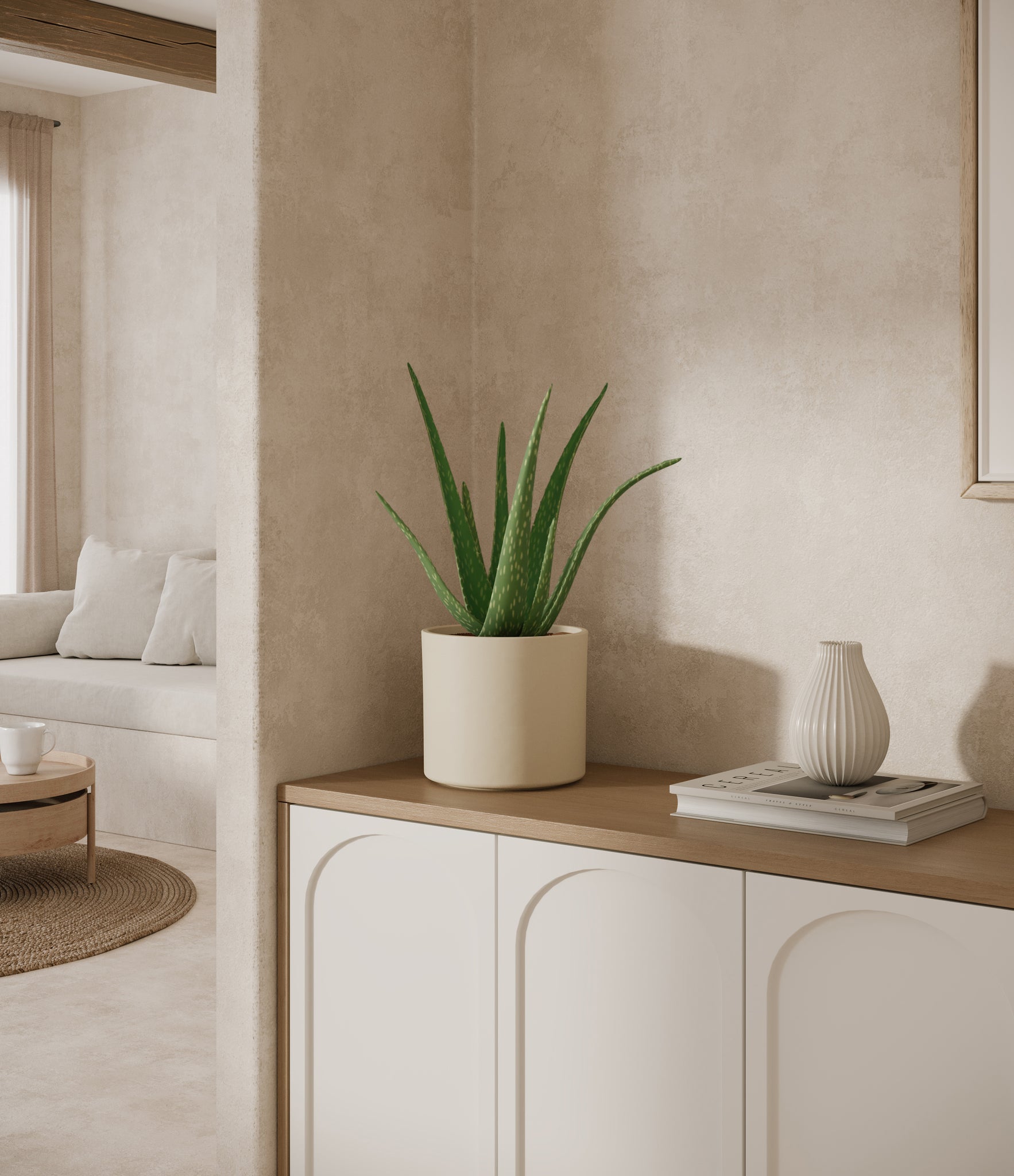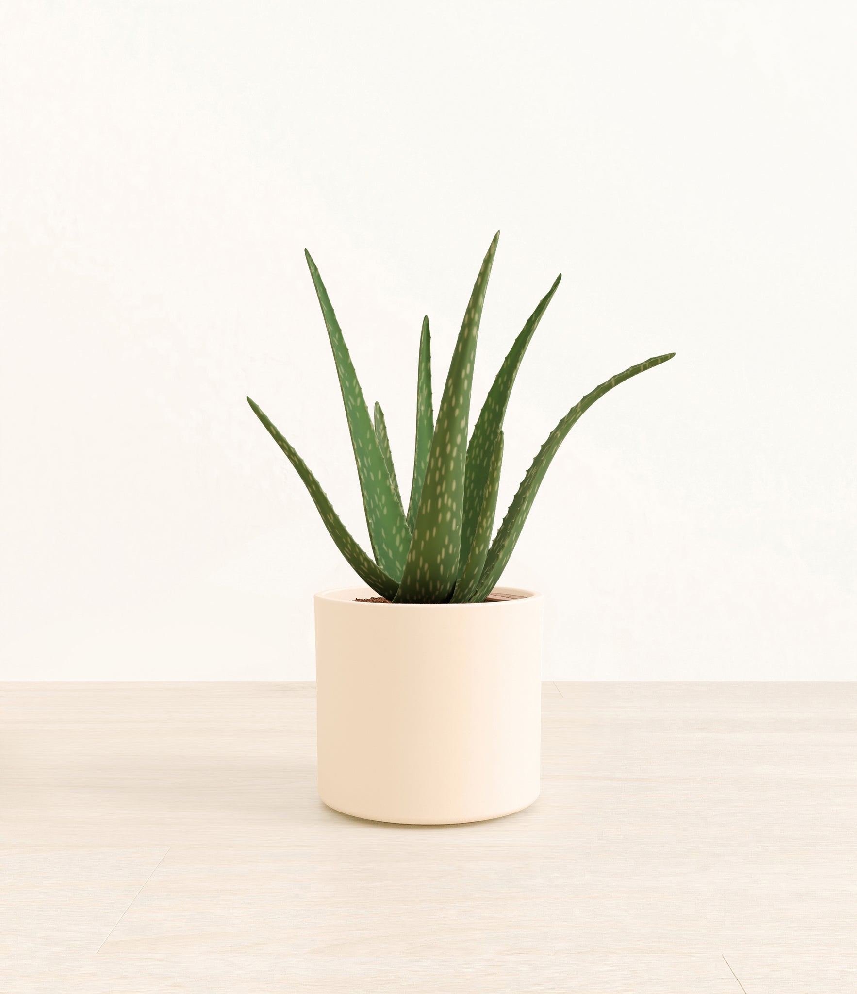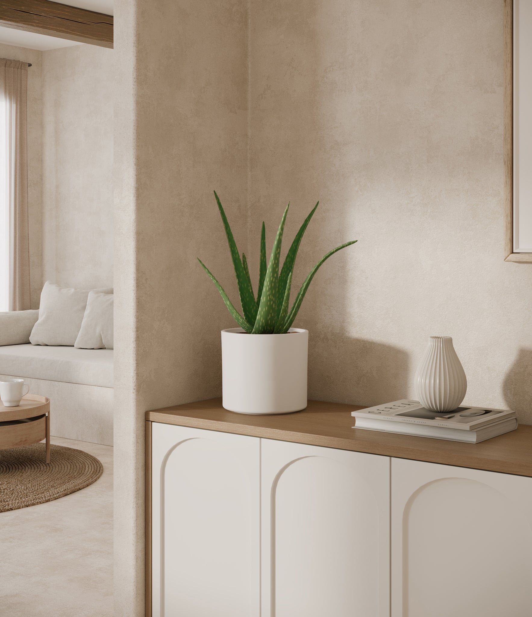Native to the Arabian Peninsula and widely naturalized across tropical and arid regions, Aloe Vera is a timeless botanical known for its fleshy, upright leaves and soothing qualities. Its thick, lance-shaped foliage grows in a graceful rosette and stores a clear gel traditionally used for skin care and wellness rituals. With its sculptural shape and soft green hue, Aloe Vera adds calm presence and a sense of healing to any room. Subtle and self-contained, it’s a natural companion for spaces that call for both style and simplicity.