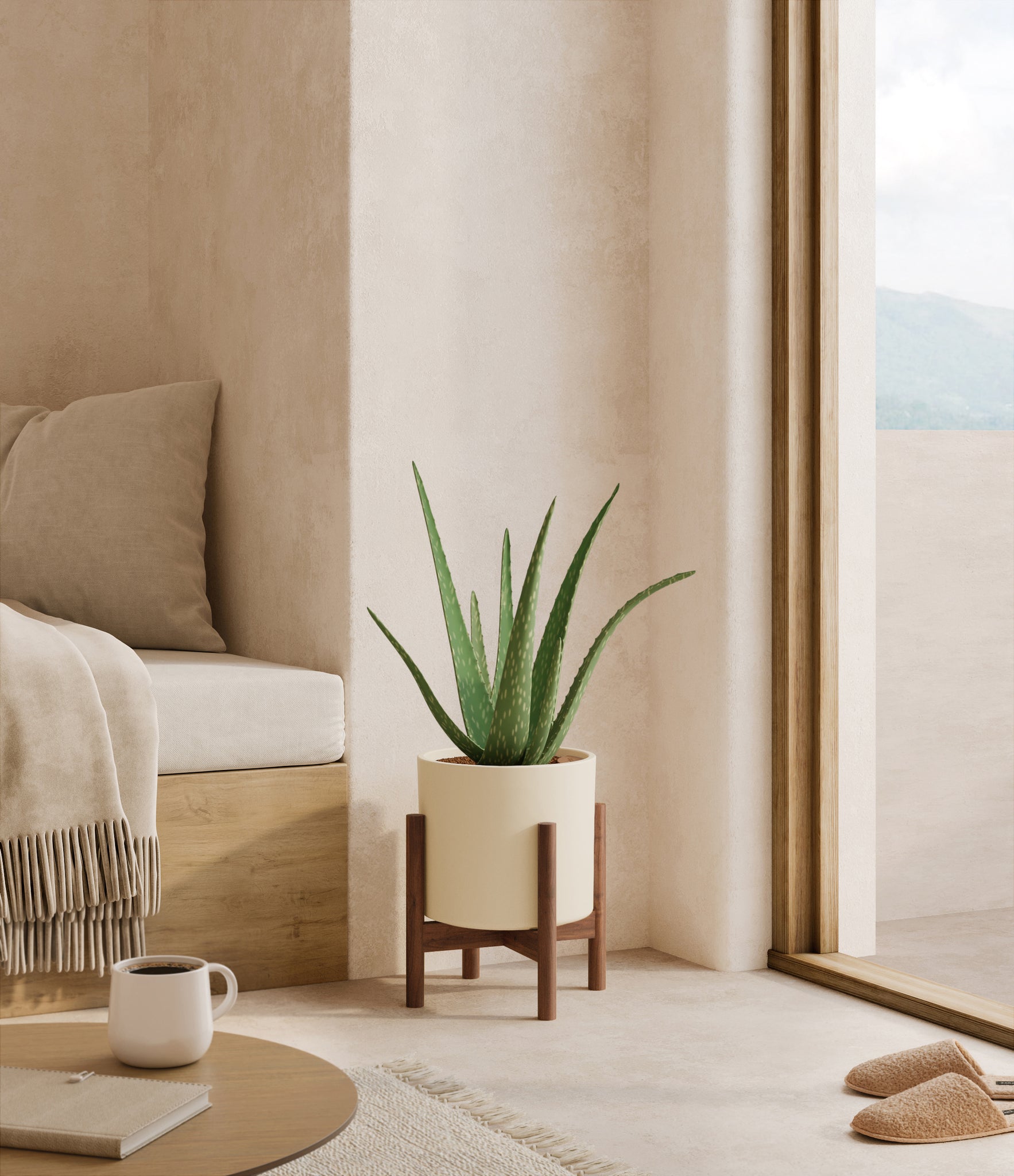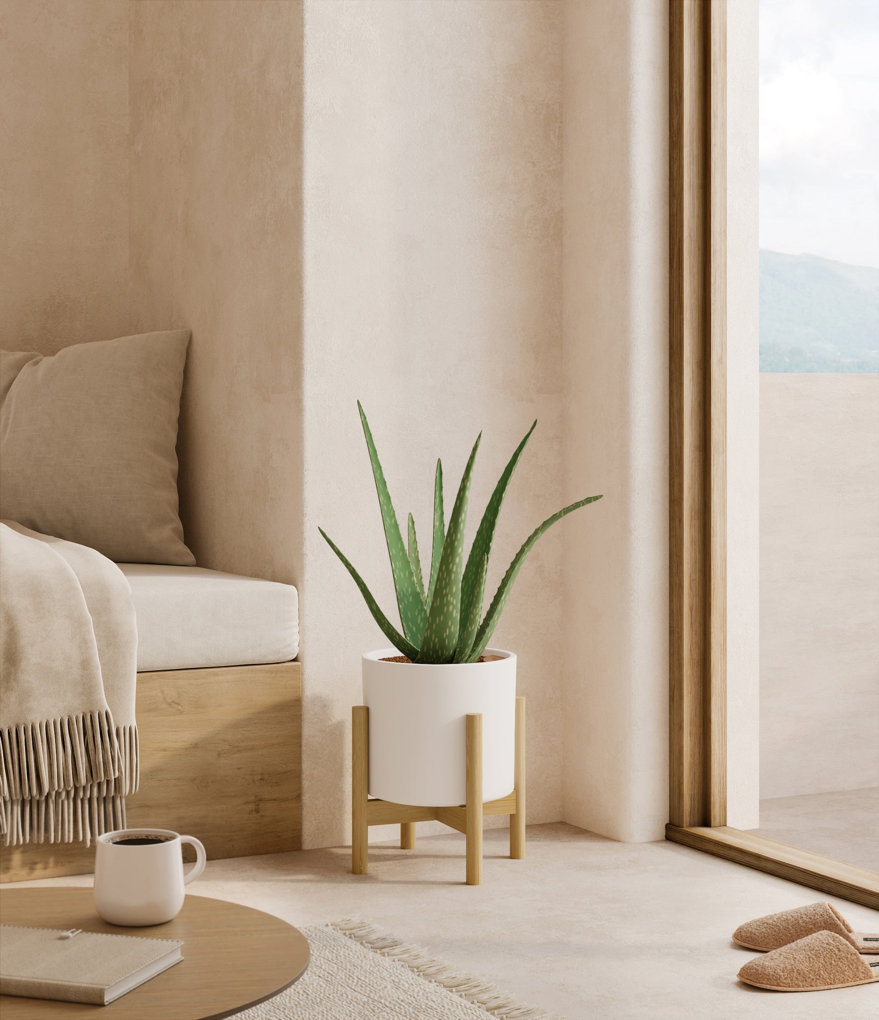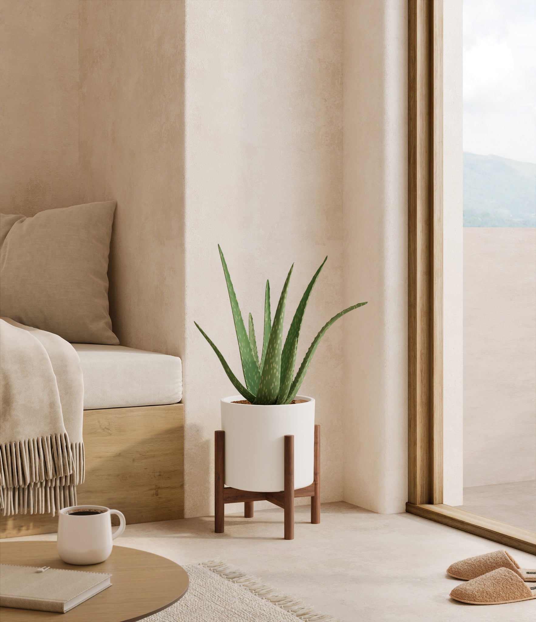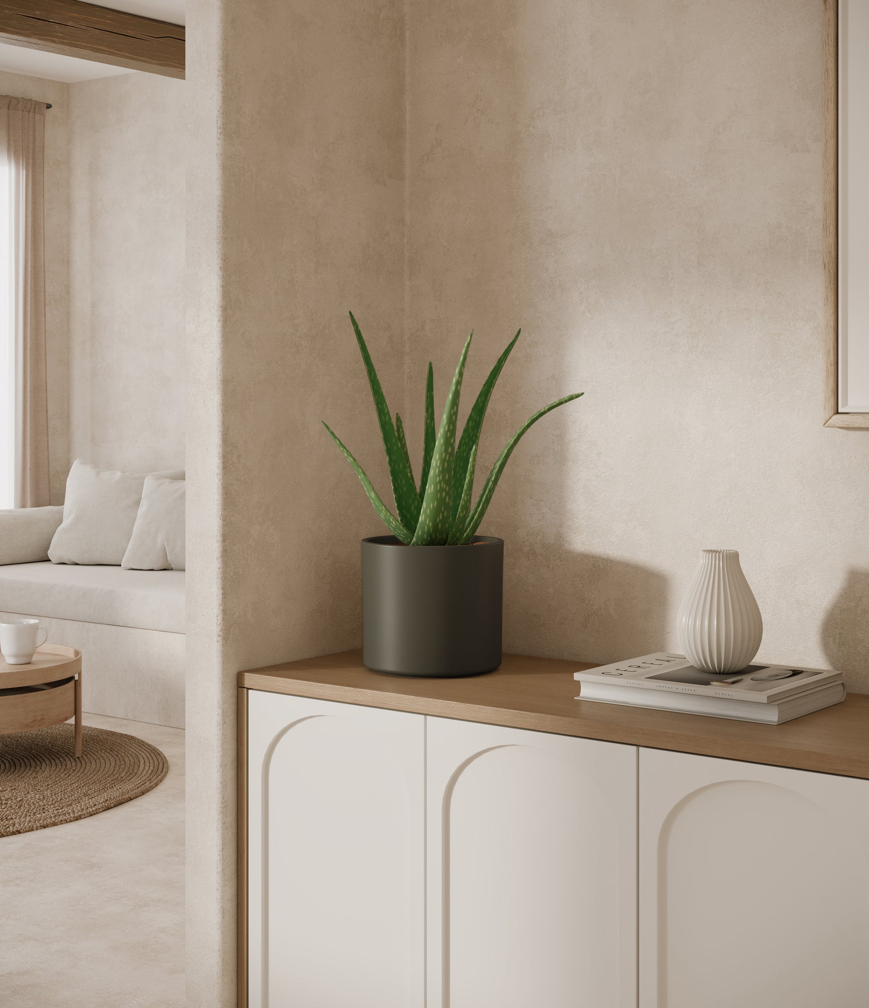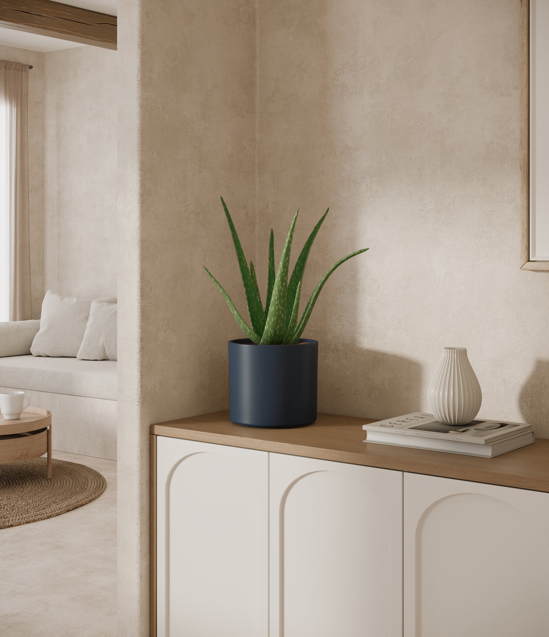 Native to the Arabian Peninsula and widely naturalized across tropical and arid regions, Aloe Vera is a timeless botanical known for its fleshy, upright leaves and soothing qualities. Its thick, lance-shaped foliage grows in a graceful rosette and stores a clear gel traditionally used for skin care and wellness rituals. With its sculptural shape and soft green hue, Aloe Vera adds calm presence and a sense of healing to any room. Subtle and self-contained, it’s a natural companion for spaces that call for both style and simplicity.