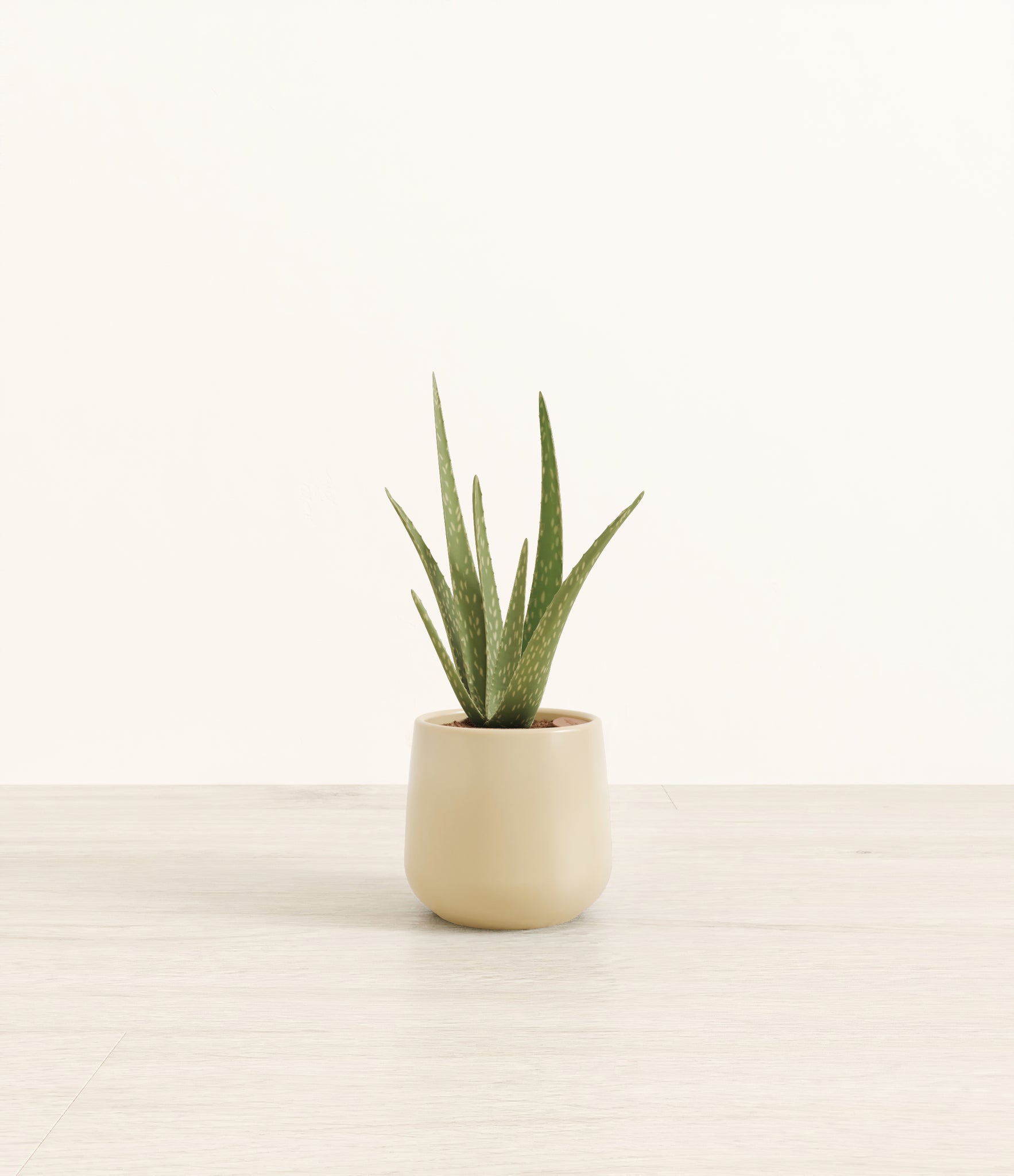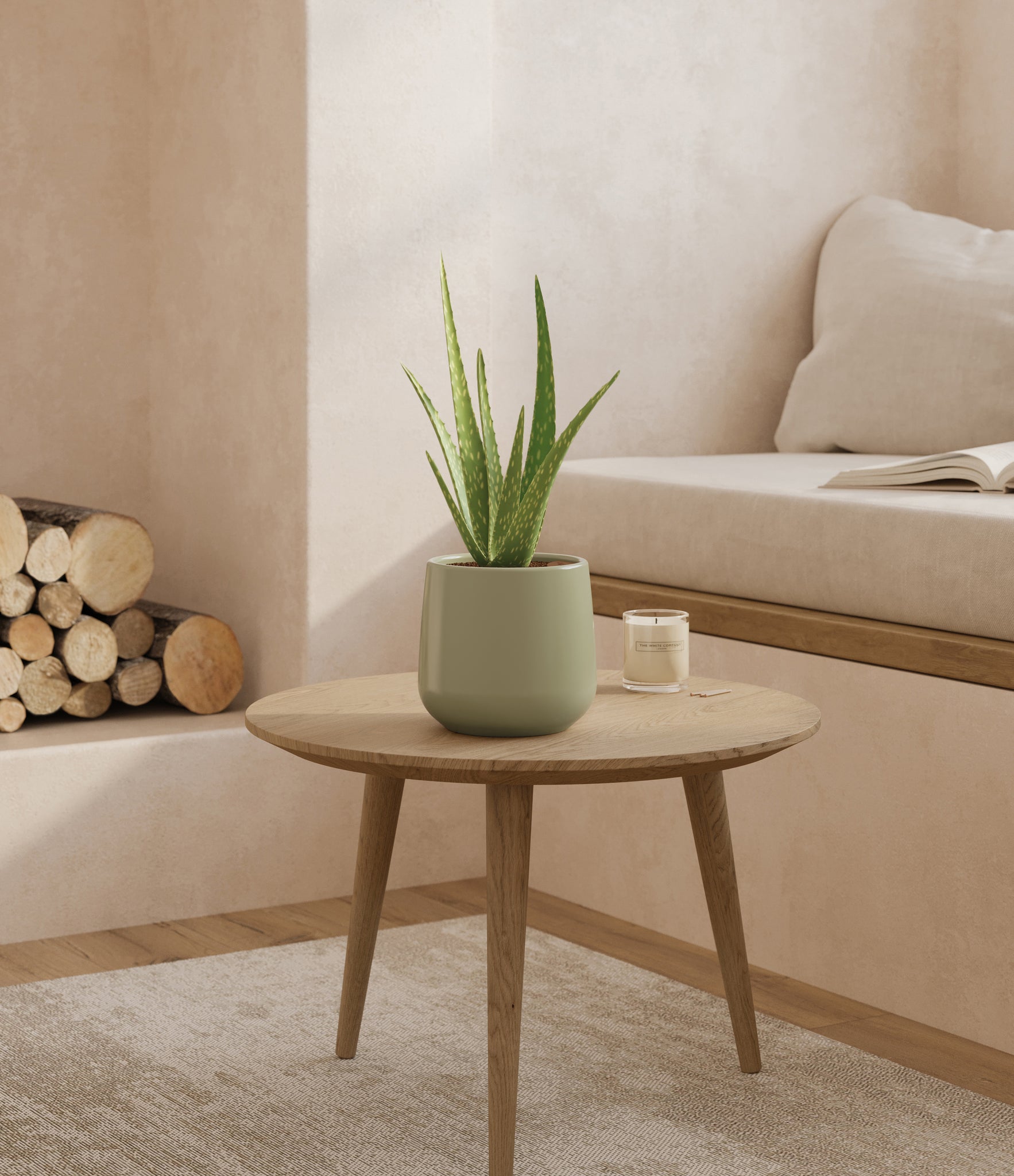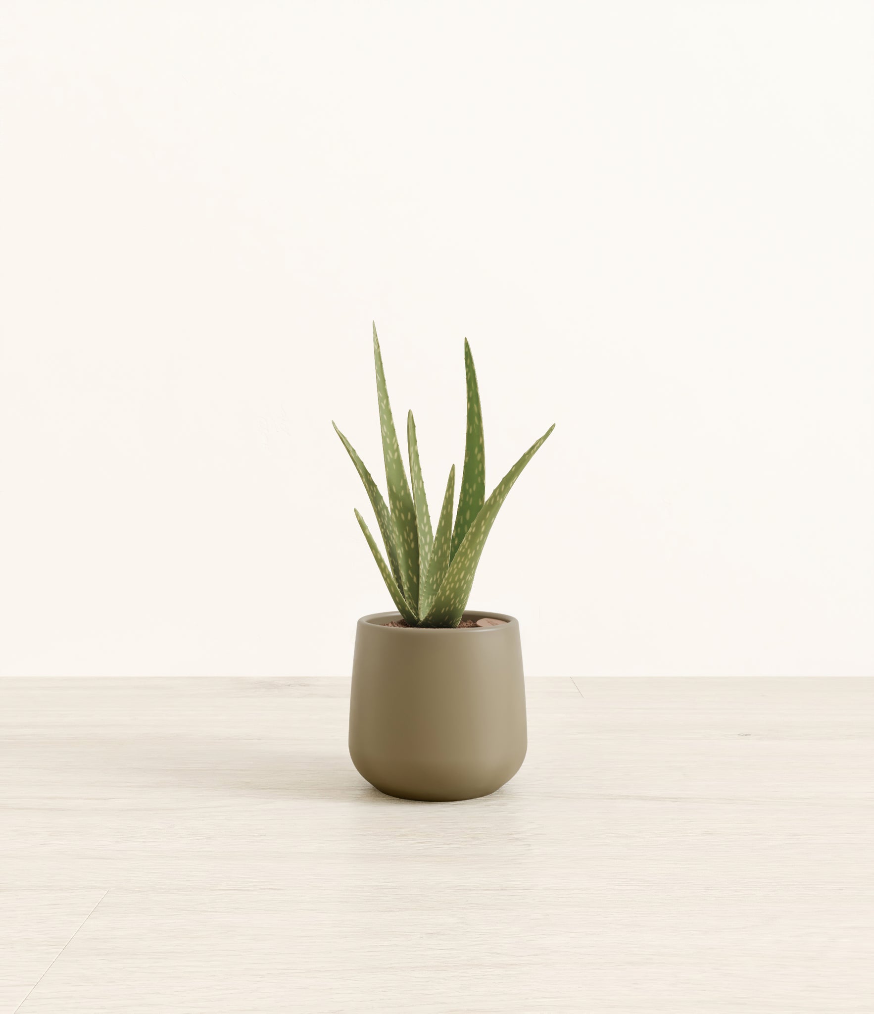 Native to the Arabian Peninsula and widely naturalized across tropical and arid regions, Aloe Vera is a timeless botanical known for its fleshy, upright leaves and soothing qualities. Its thick, lance-shaped foliage grows in a graceful rosette and stores a clear gel traditionally used for skin care and wellness rituals. With its sculptural shape and soft green hue, Aloe Vera adds calm presence and a sense of healing to any room. Subtle and self-contained, it’s a natural companion for spaces that call for both style and simplicity.