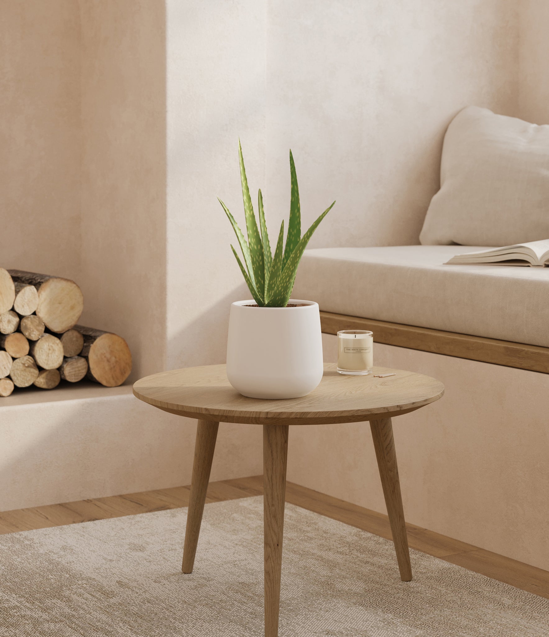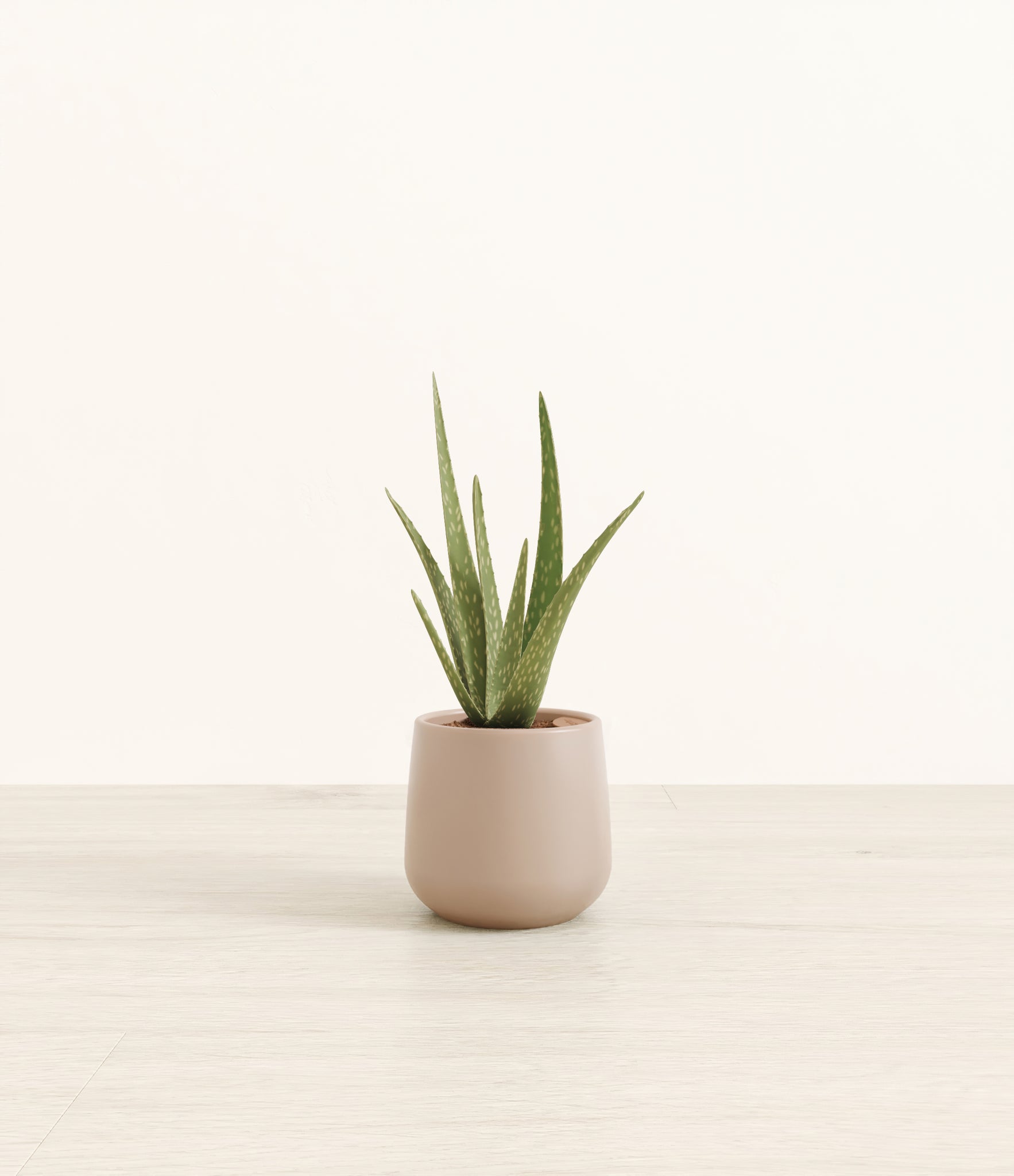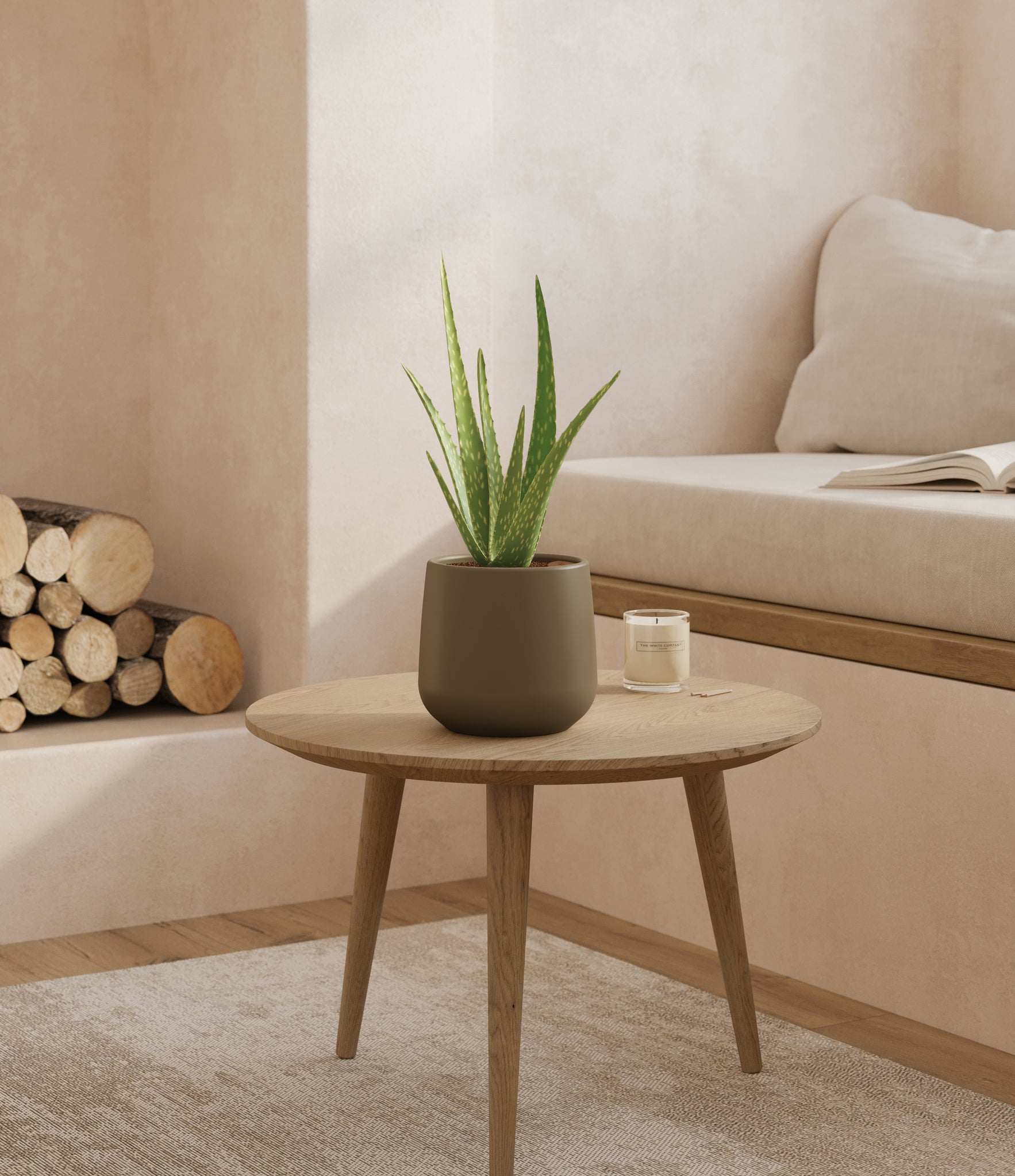 Native to the Arabian Peninsula and widely naturalized across tropical and arid regions, Aloe Vera is a timeless botanical known for its fleshy, upright leaves and soothing qualities. Its thick, lance-shaped foliage grows in a graceful rosette and stores a clear gel traditionally used for skin care and wellness rituals. With its sculptural shape and soft green hue, Aloe Vera adds calm presence and a sense of healing to any room. Subtle and self-contained, it’s a natural companion for spaces that call for both style and simplicity.