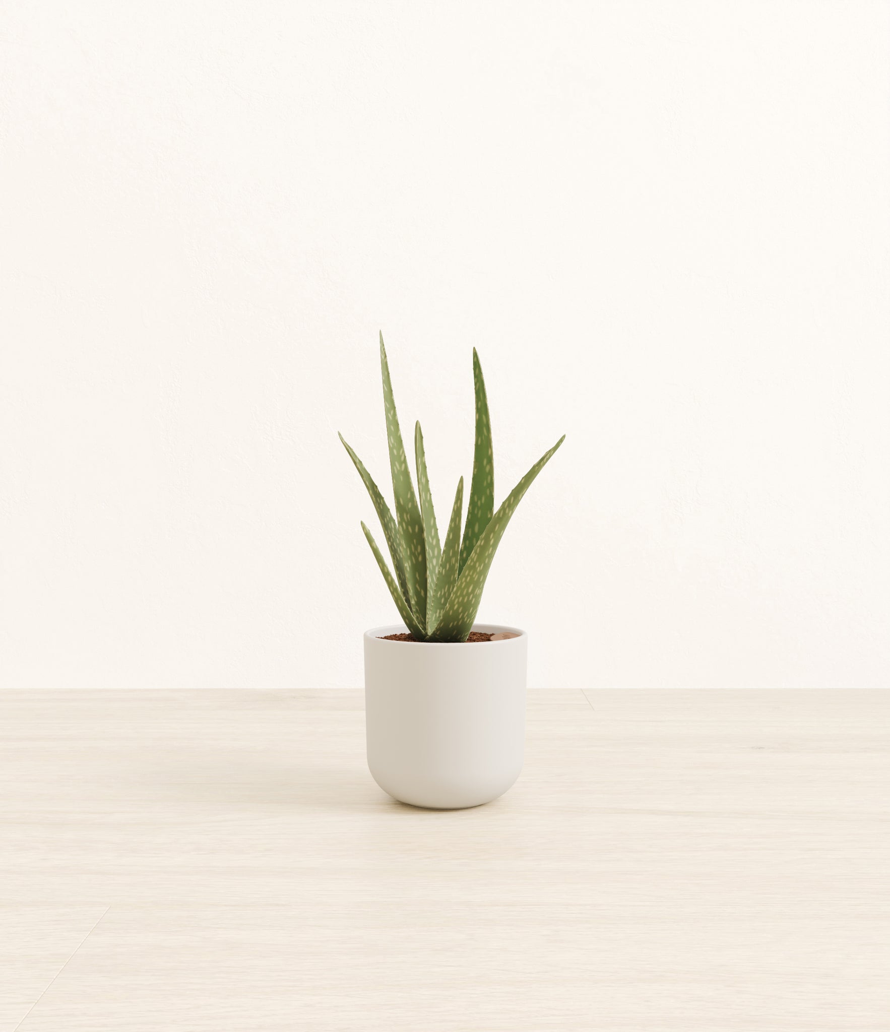 Native to the Arabian Peninsula and widely naturalized across tropical and arid regions, Aloe Vera is a timeless botanical known for its fleshy, upright leaves and soothing qualities. Its thick, lance-shaped foliage grows in a graceful rosette and stores a clear gel traditionally used for skin care and wellness rituals. With its sculptural shape and soft green hue, Aloe Vera adds calm presence and a sense of healing to any room. Subtle and self-contained, it’s a natural companion for spaces that call for both style and simplicity.