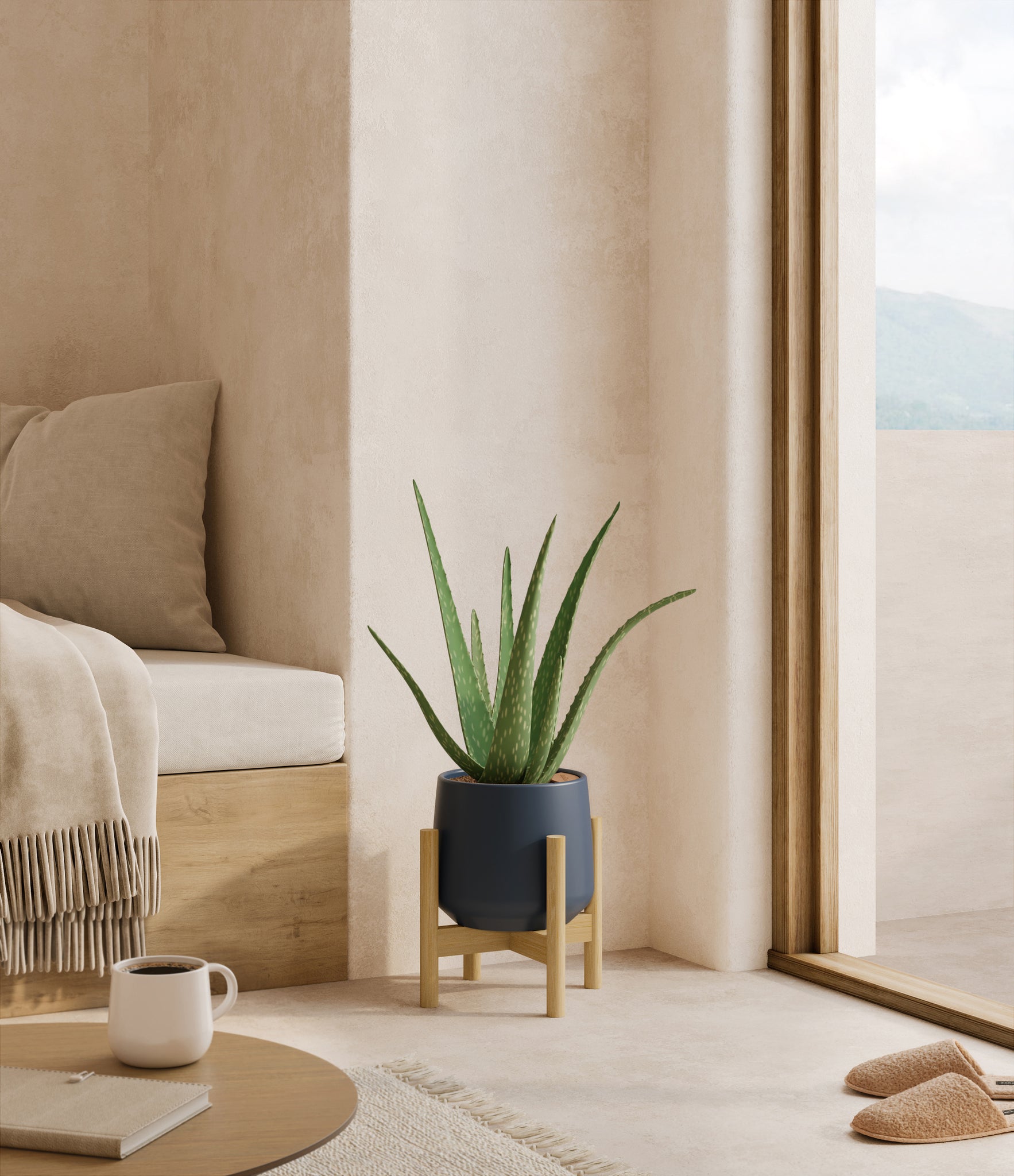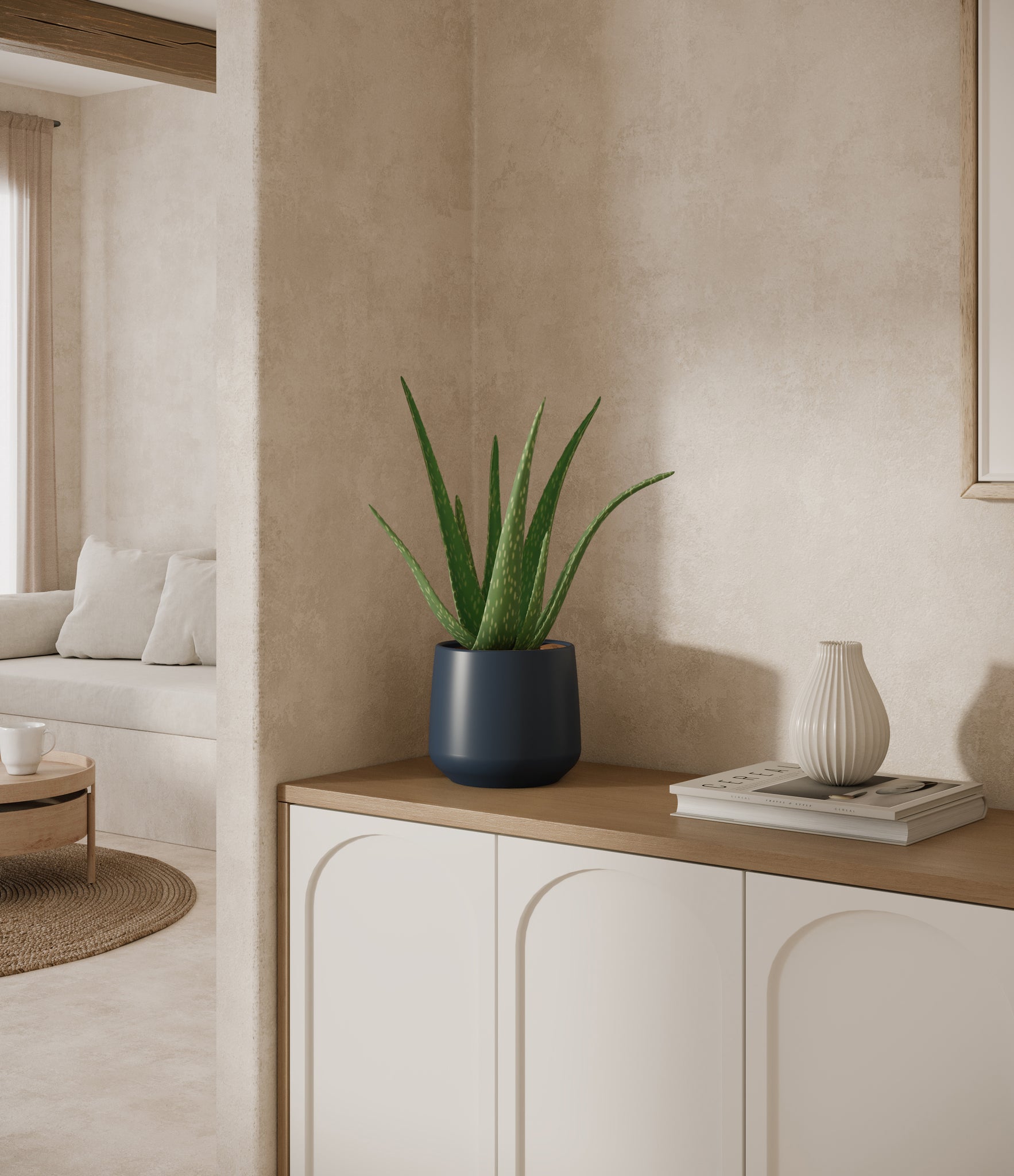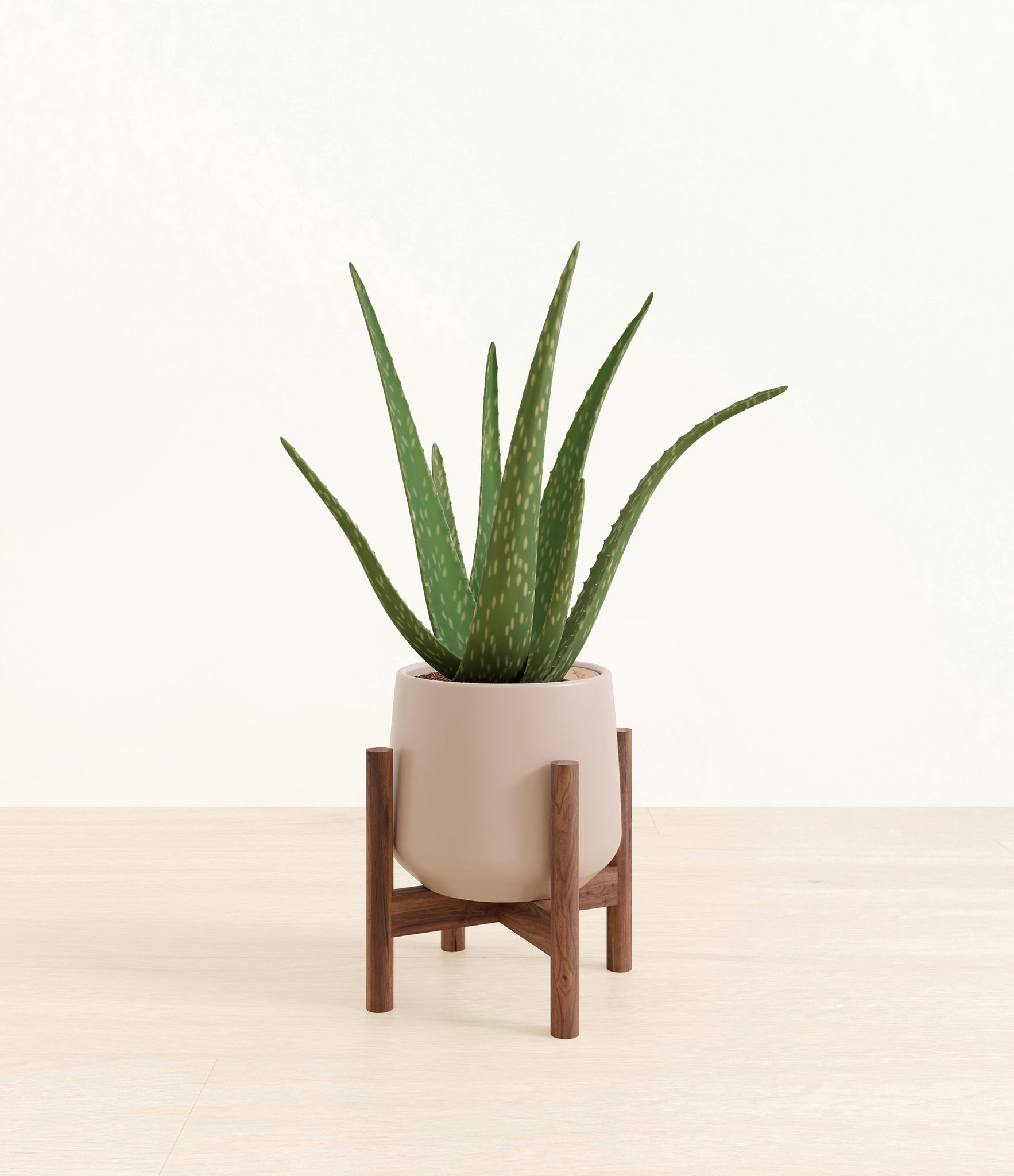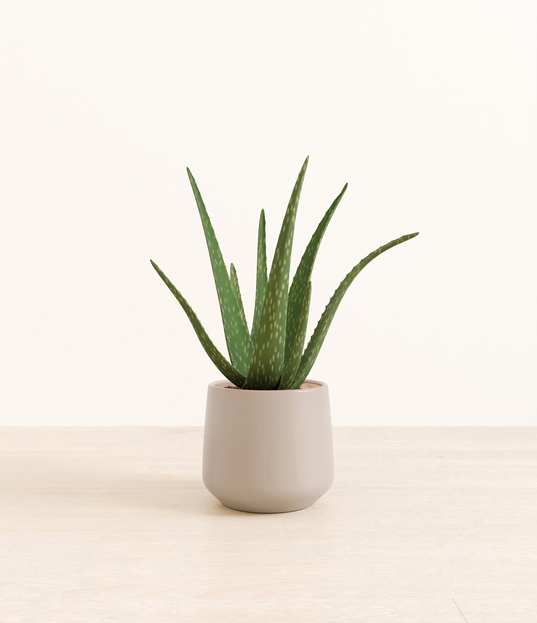 Native to the Arabian Peninsula and widely naturalized across tropical and arid regions, Aloe Vera is a timeless botanical known for its fleshy, upright leaves and soothing qualities. Its thick, lance-shaped foliage grows in a graceful rosette and stores a clear gel traditionally used for skin care and wellness rituals. With its sculptural shape and soft green hue, Aloe Vera adds calm presence and a sense of healing to any room. Subtle and self-contained, it’s a natural companion for spaces that call for both style and simplicity.