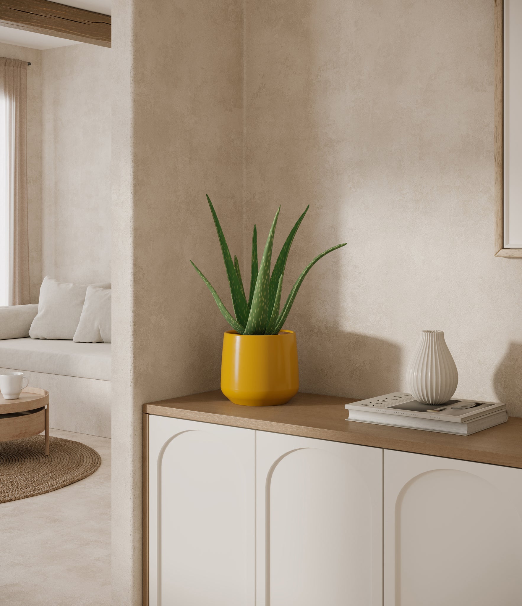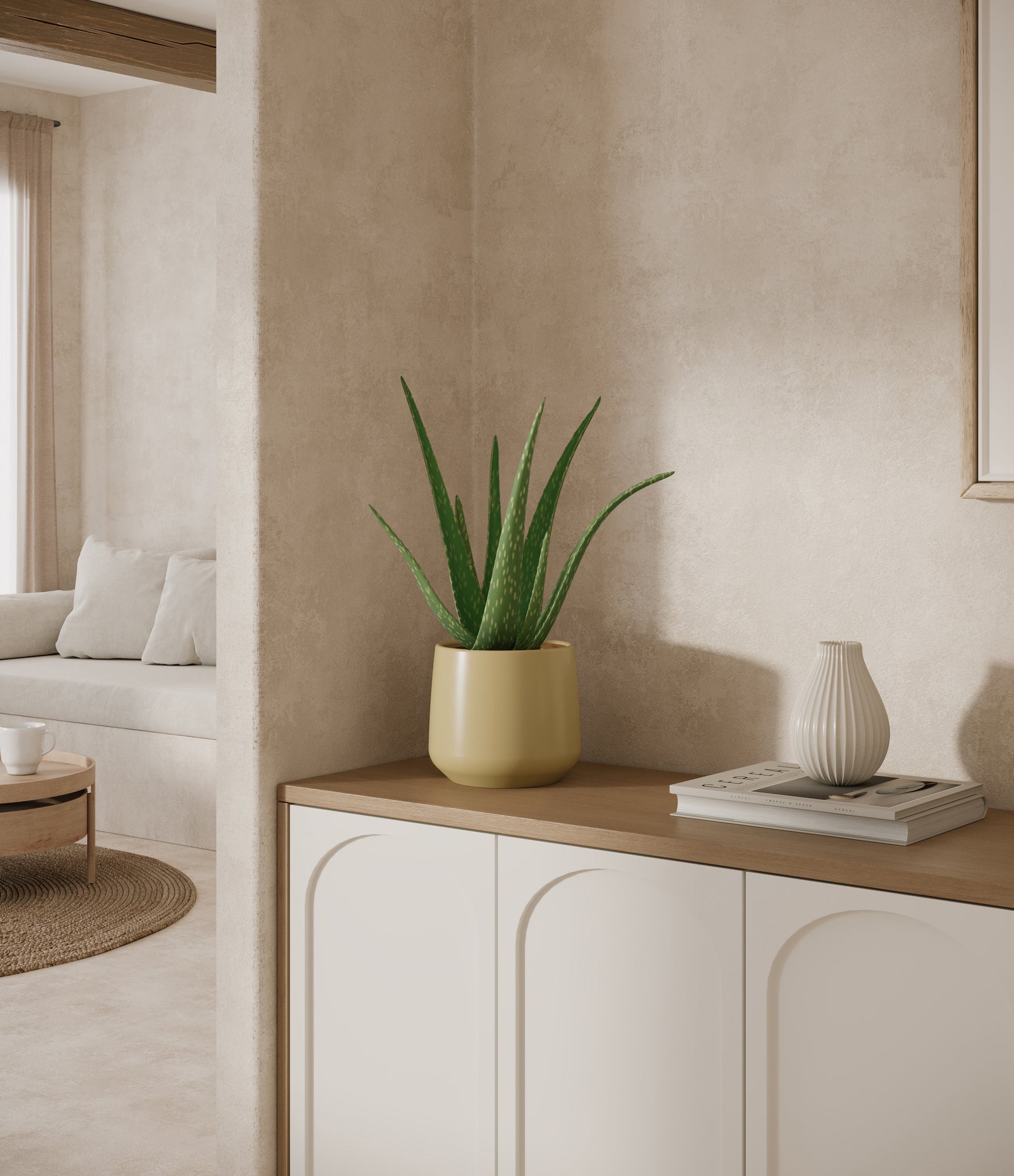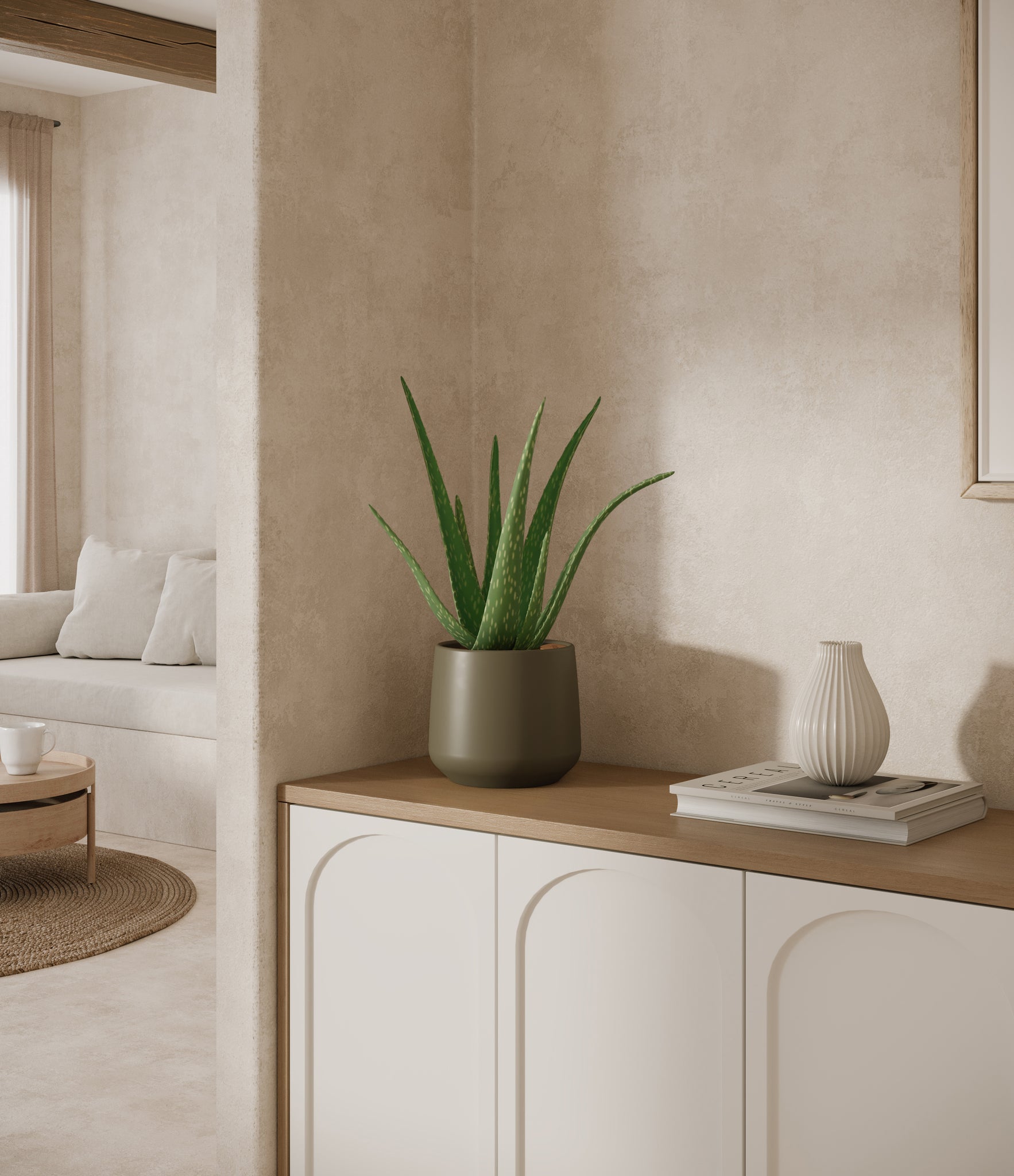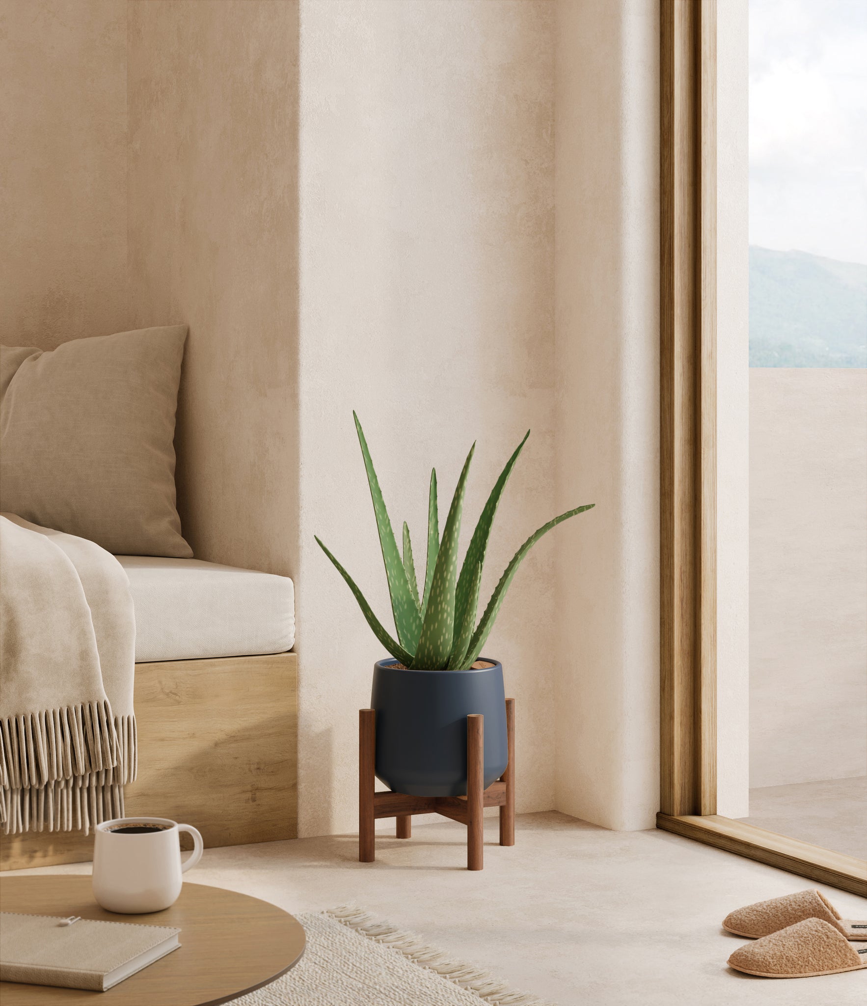 Native to the Arabian Peninsula and widely naturalized across tropical and arid regions, Aloe Vera is a timeless botanical known for its fleshy, upright leaves and soothing qualities. Its thick, lance-shaped foliage grows in a graceful rosette and stores a clear gel traditionally used for skin care and wellness rituals. With its sculptural shape and soft green hue, Aloe Vera adds calm presence and a sense of healing to any room. Subtle and self-contained, it’s a natural companion for spaces that call for both style and simplicity.