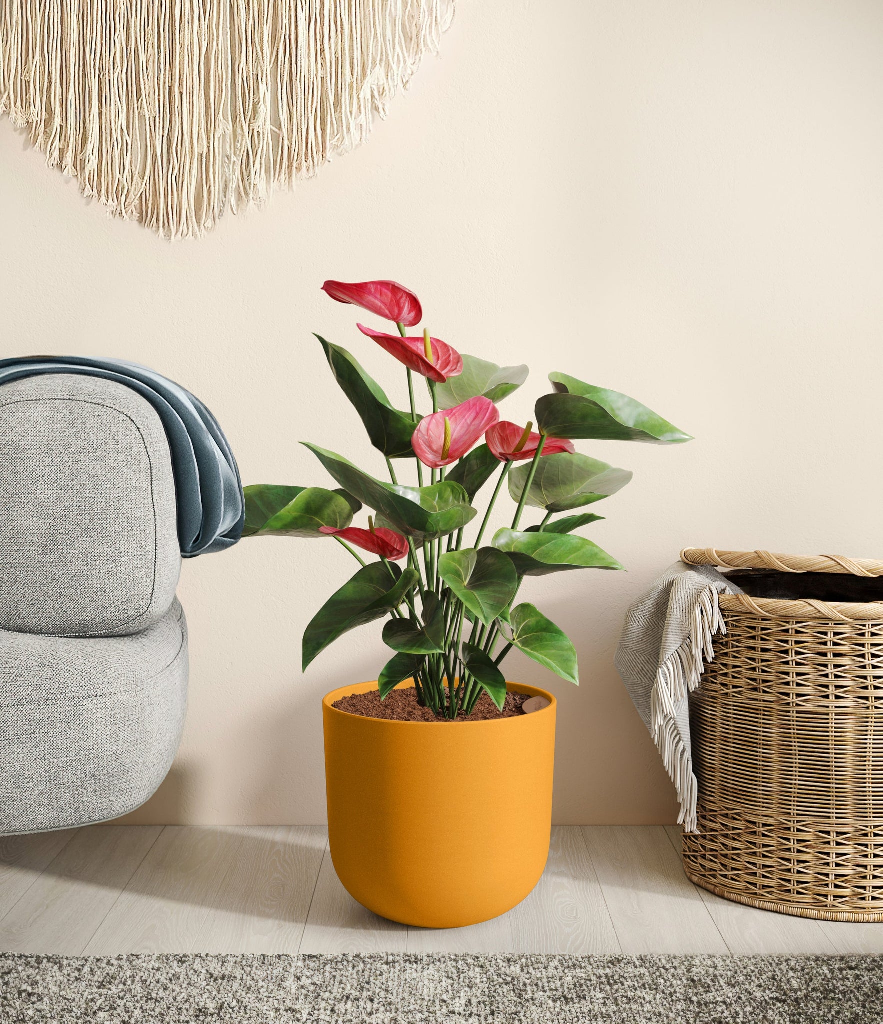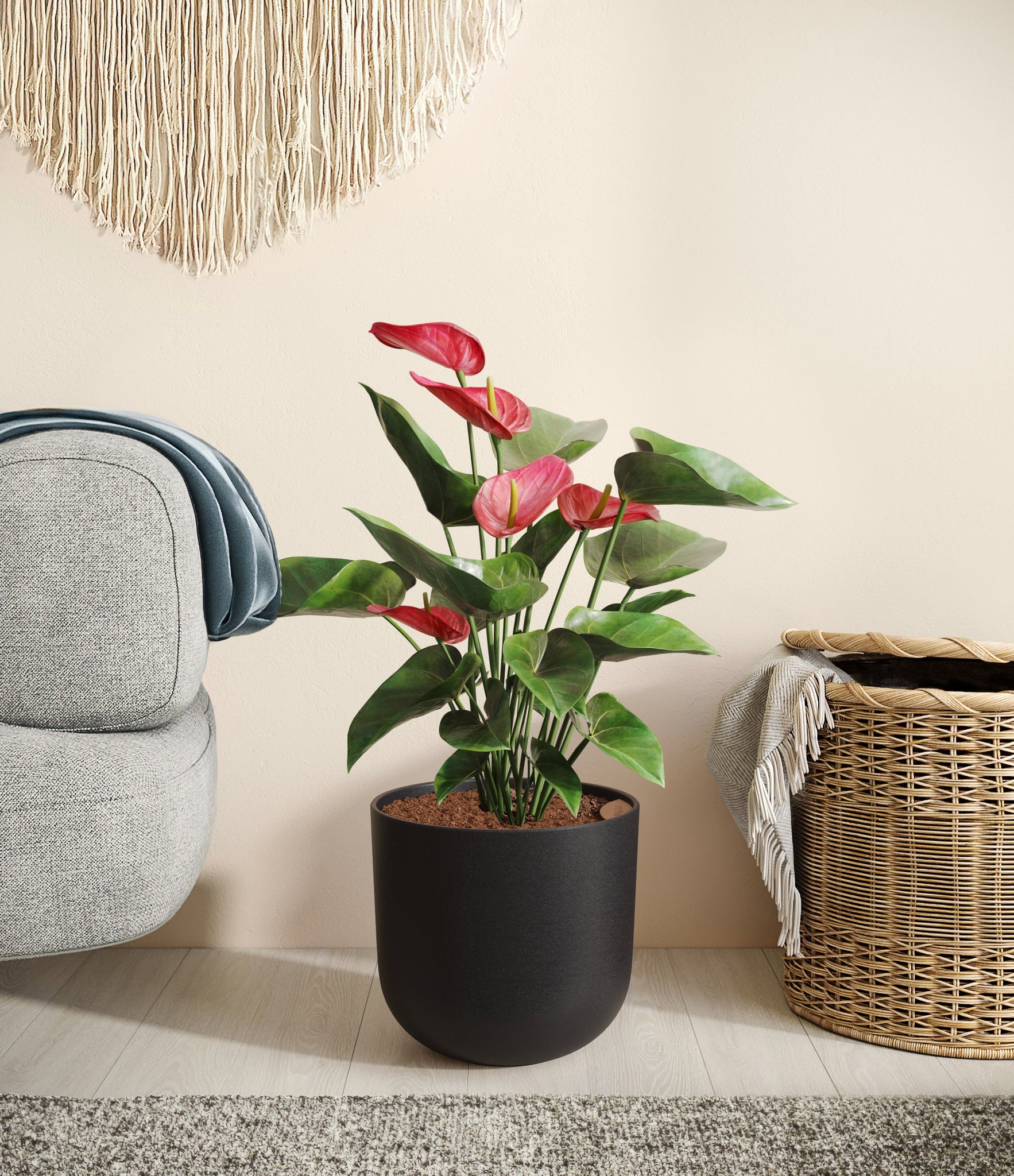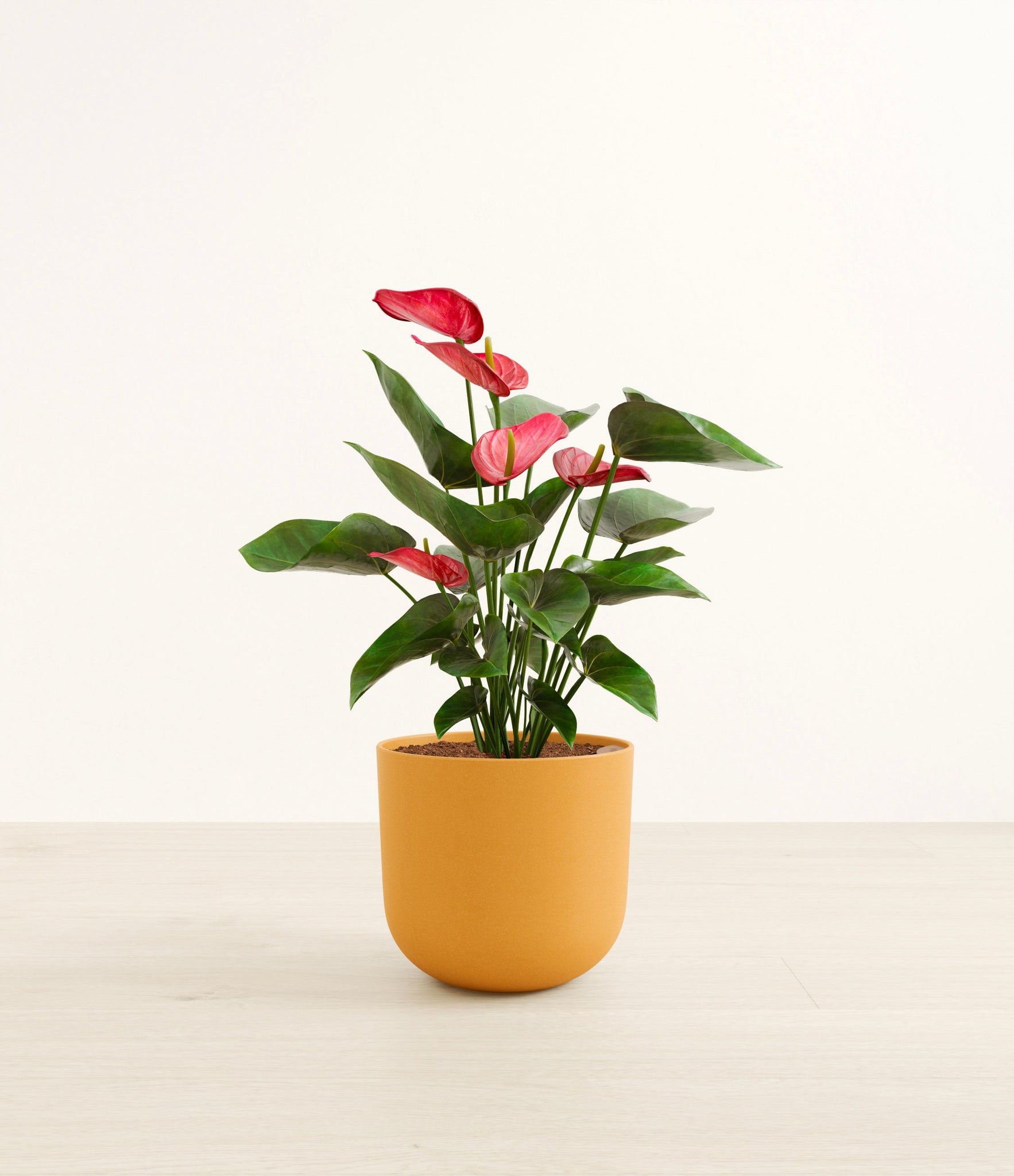 Native to the Americas and Caribbeans, this tropical evergreen beauty brings out the best and brightest in any space it inhabits. The colorful heart-shaped waxy leaves, called spathes, act as protectors for its straight spike, called spadix, where very small flowers grow in its bloom. As the plant matures, bloom colors may naturally vary or evolve, reflecting its dynamic beauty. Thanks to its long-lived, heart-opening charm, Anthurium is the quintessential symbol of generosity and kindness, making it a perfect gift for those you love the most. It is cherished for its long blooms, lasting anywhere from eight to twelve weeks.