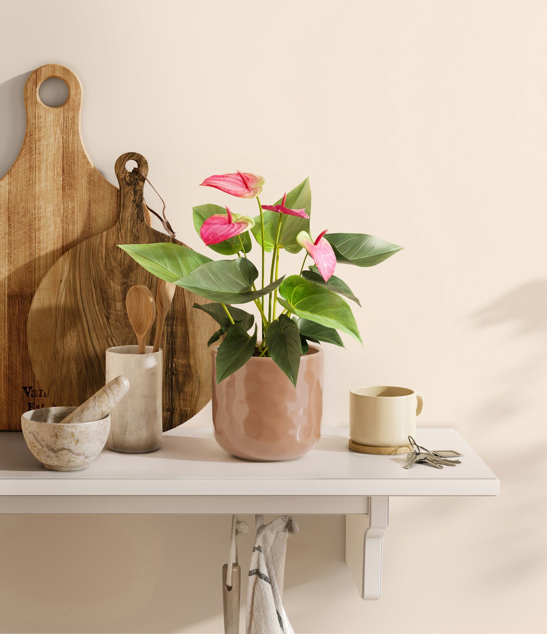 Native to the Americas and Caribbeans, Anthurium Sweet Dream enchants with pinkish-red spathes delicately accented by traces of green. These long-lasting blooms, which can last eight to twelve weeks, surround the straight spike, or spadix, where tiny flowers grow. Known for its dynamic charm, Anthurium Sweet Dream naturally evolves over time, with bloom colors subtly shifting as it matures. Symbolizing generosity and kindness, this captivating plant makes the perfect gift and brightens any space it inhabits.