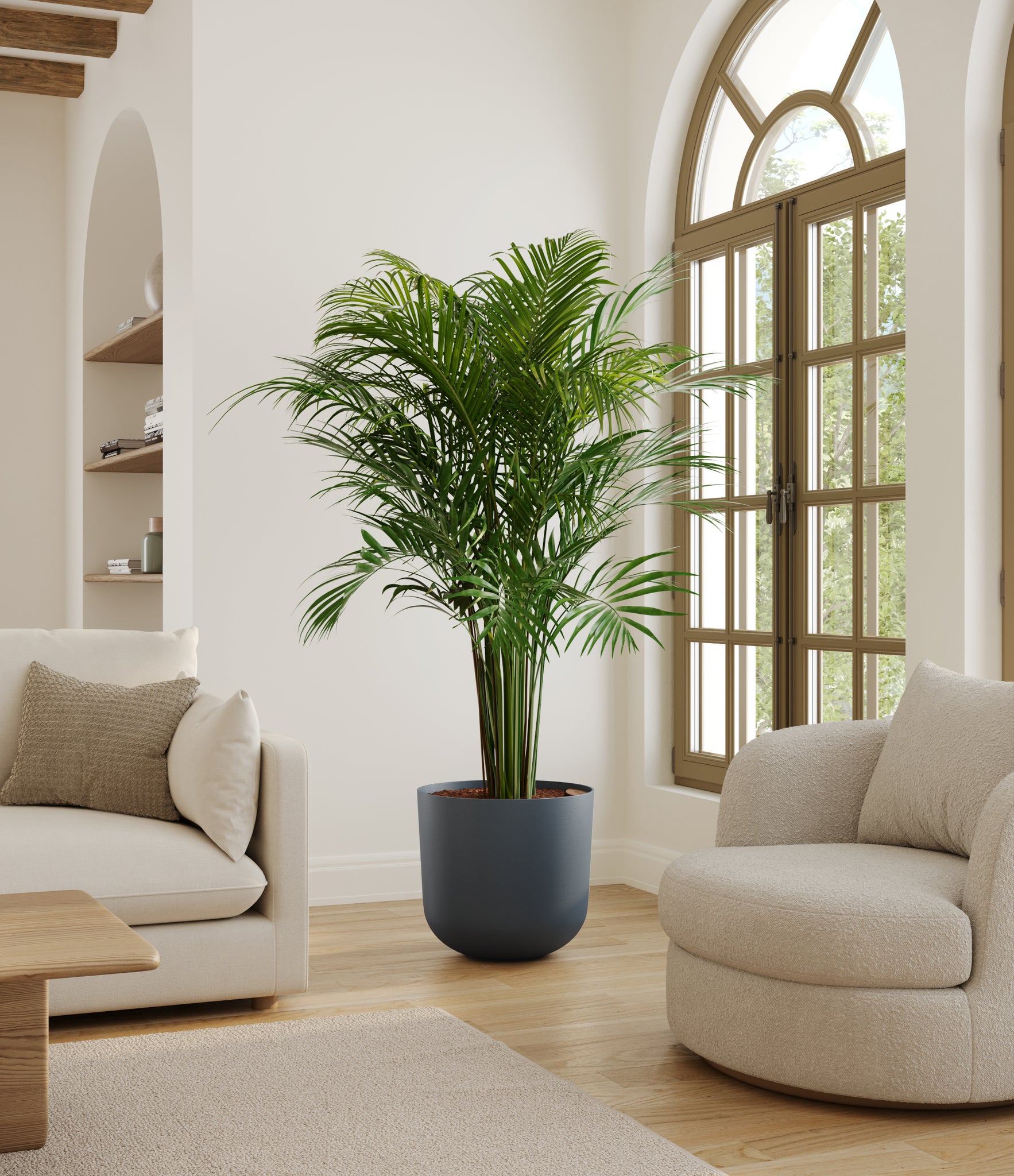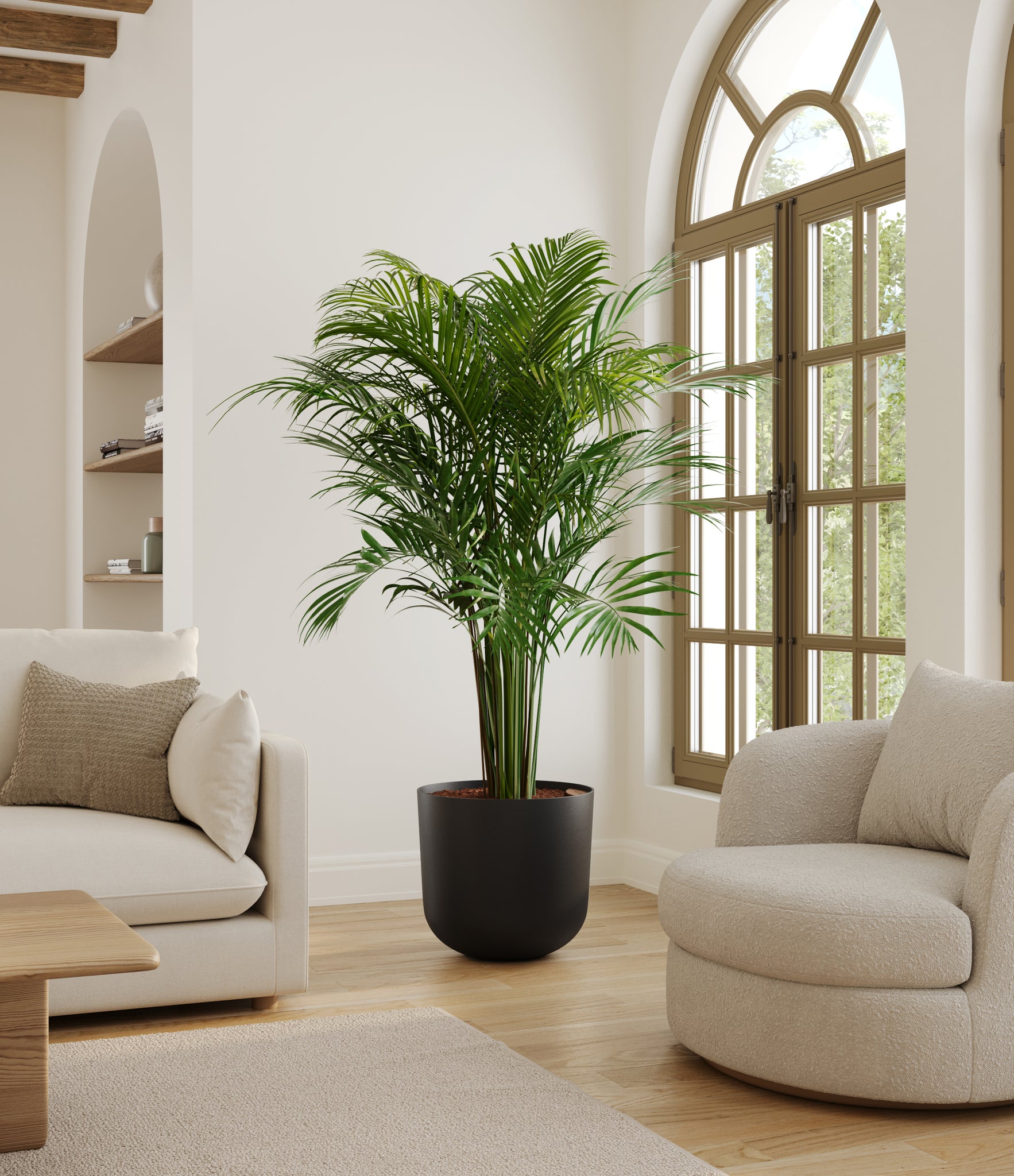 A Madagascar native, the Areca Palm is admired for its elegant, narrow green leaves and smooth golden trunks that often resemble bamboo. With tall, feathery fronds that grow in graceful clumps, this striking palm instantly elevates the look and feel of any space. Its lush, tropical presence brings a sense of vitality and warmth indoors, making it a long-standing favorite for brightening homes and offices alike.