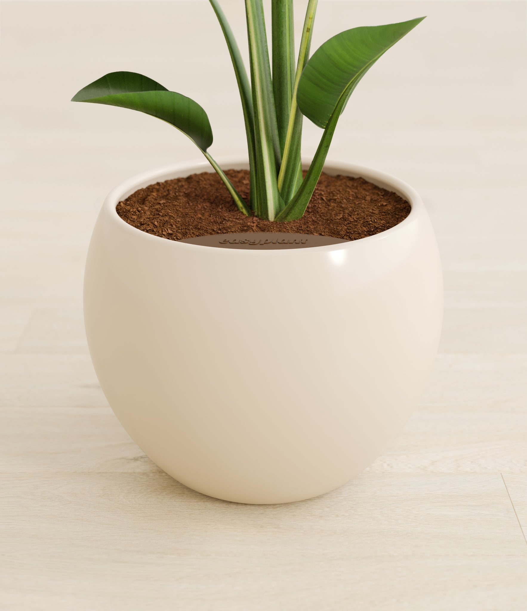 Native to tropical South Africa, White Bird of Paradise graces our spaces while towering to great heights.Playfully hanging like birds in flight, its long and broad leaves naturally split so to allow wind to pass through in the wild. A royal plant if there ever was one, it received its scientific name, Strelitzia nicolai, from Her Highness Queen Charlotte of Mecklenburg-Strelitz of England - lover of botany and the arts.