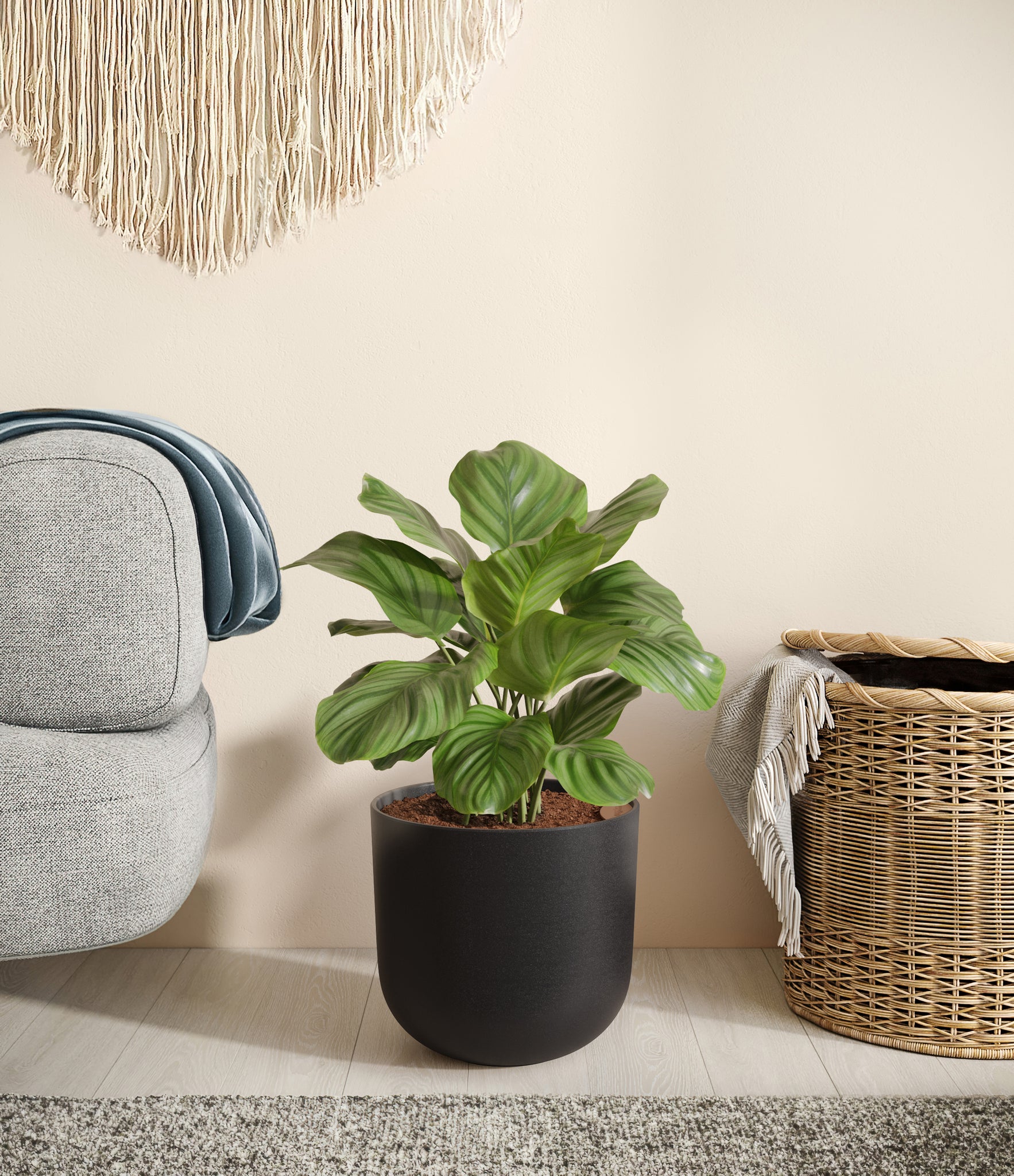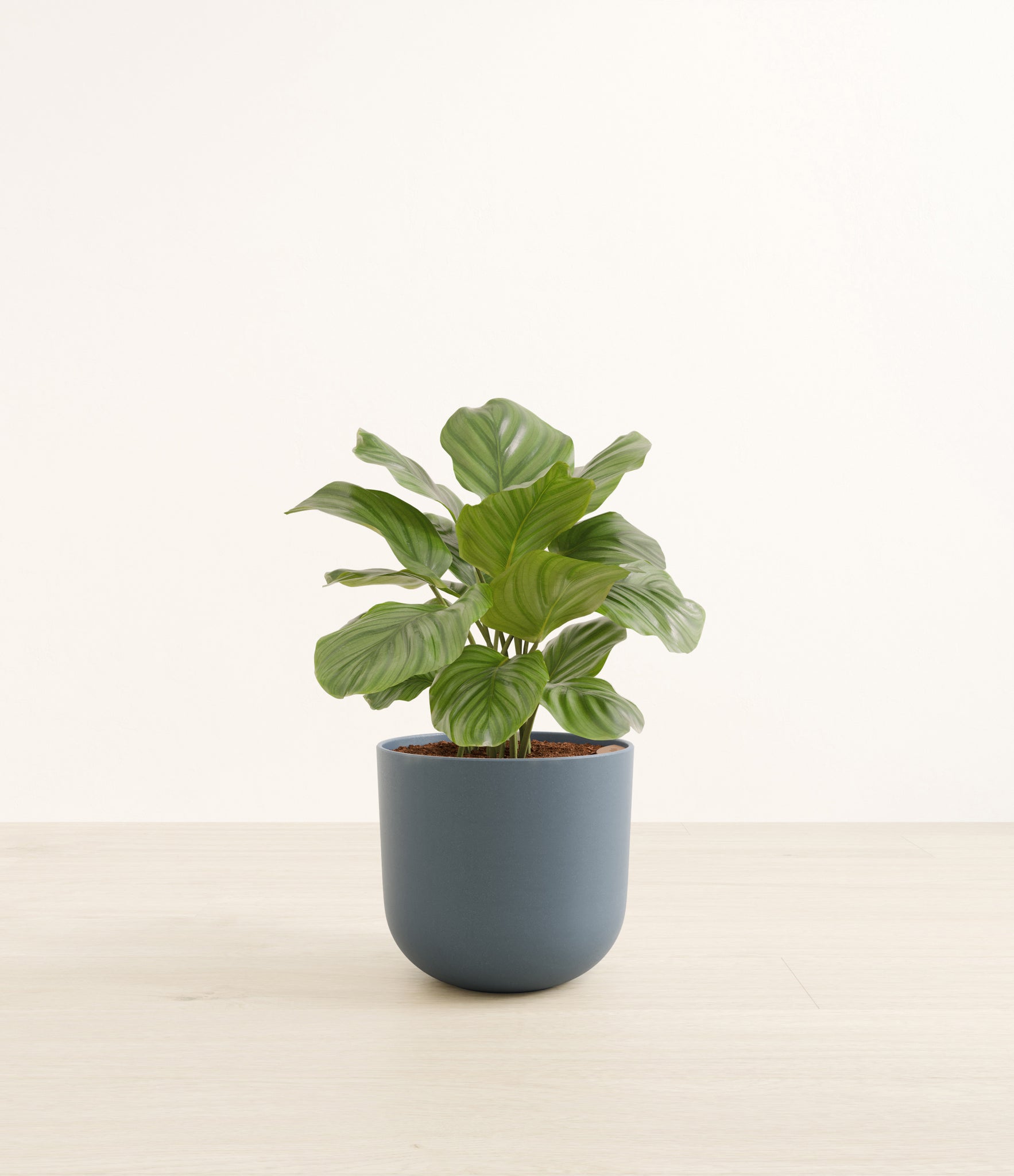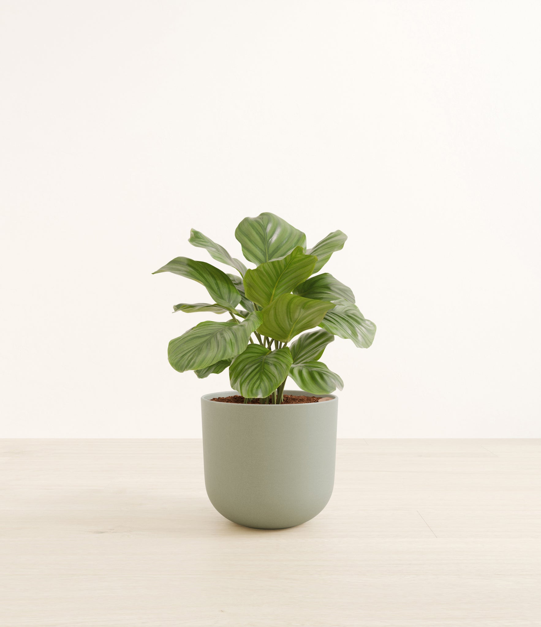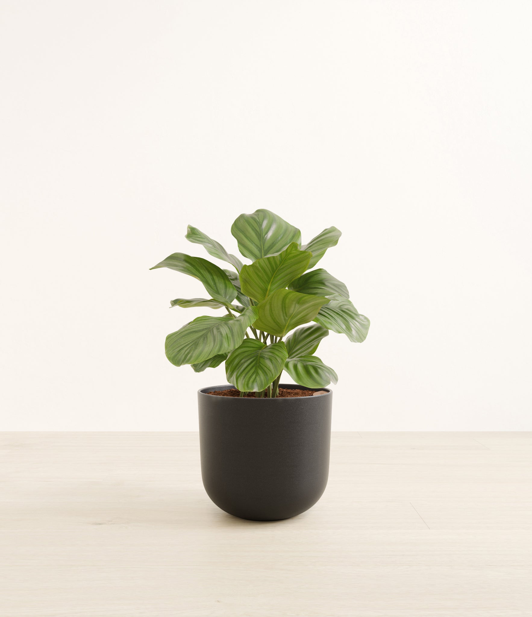 The Calathea Orbifolia is undoubtedly adored for its striking oblong foliage. With silver-green stripes on its large deep green leaves, this bold-statement plant instantly enhances any place. Potted in a premium quality self-watering pot with a soft matte finish, the Calathea Orbifolia is fast-growing, pet-friendly, and absolutely eye-catching. Native to tropical regions in South America, the Calathea Orbifolia prefers bright, warm, and humid conditions, so be sure to find it a cozy spot to help it feel at home.