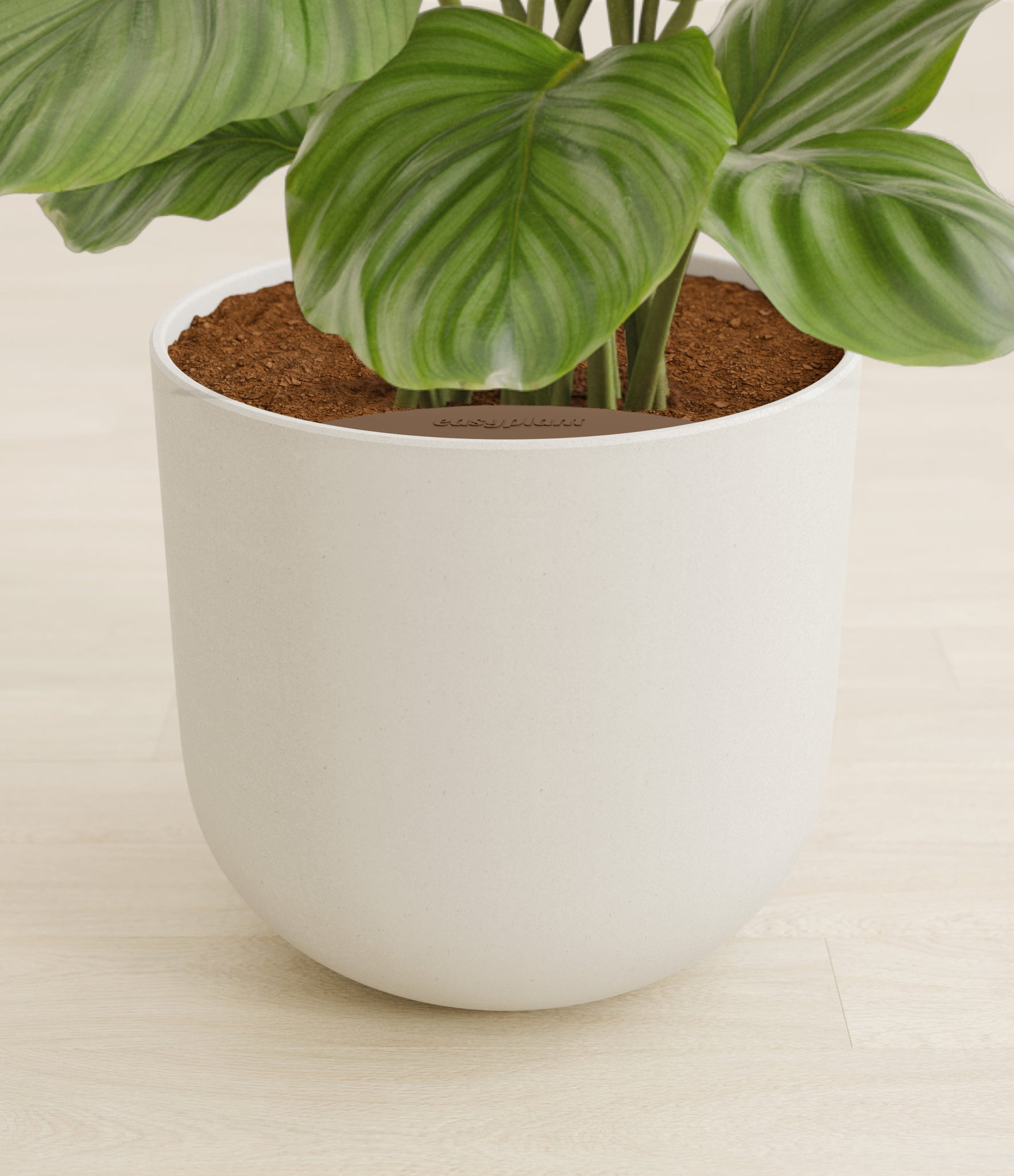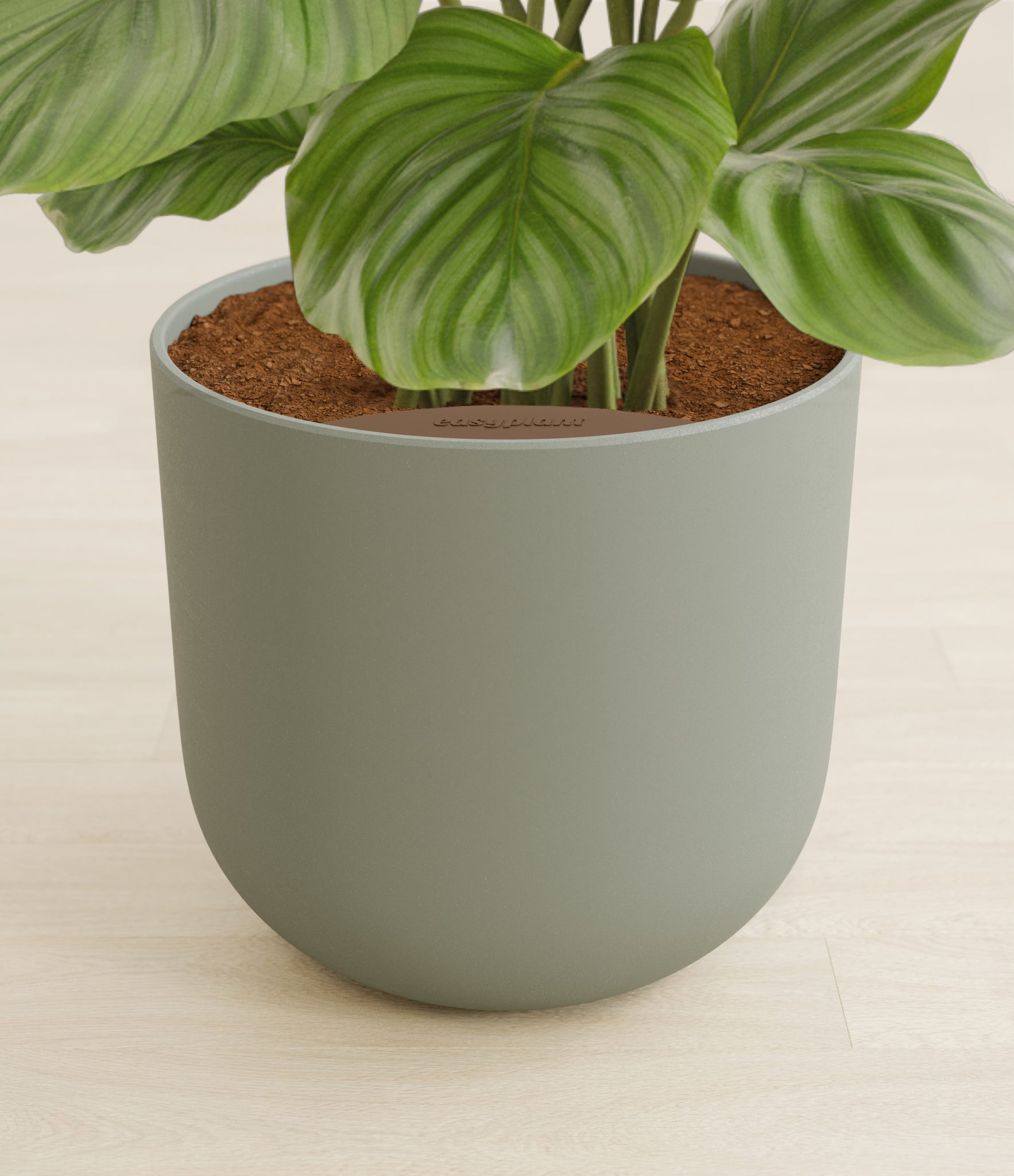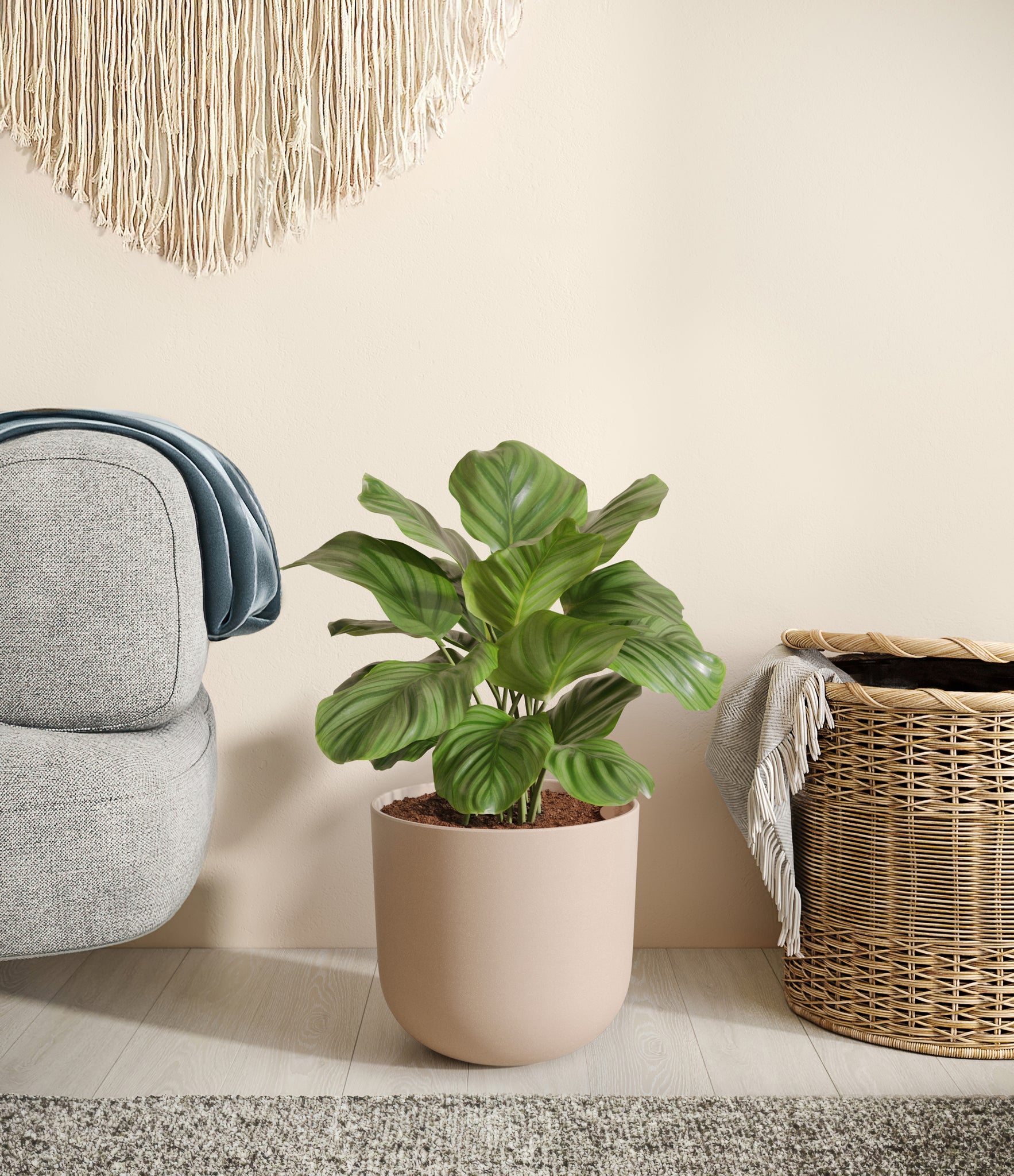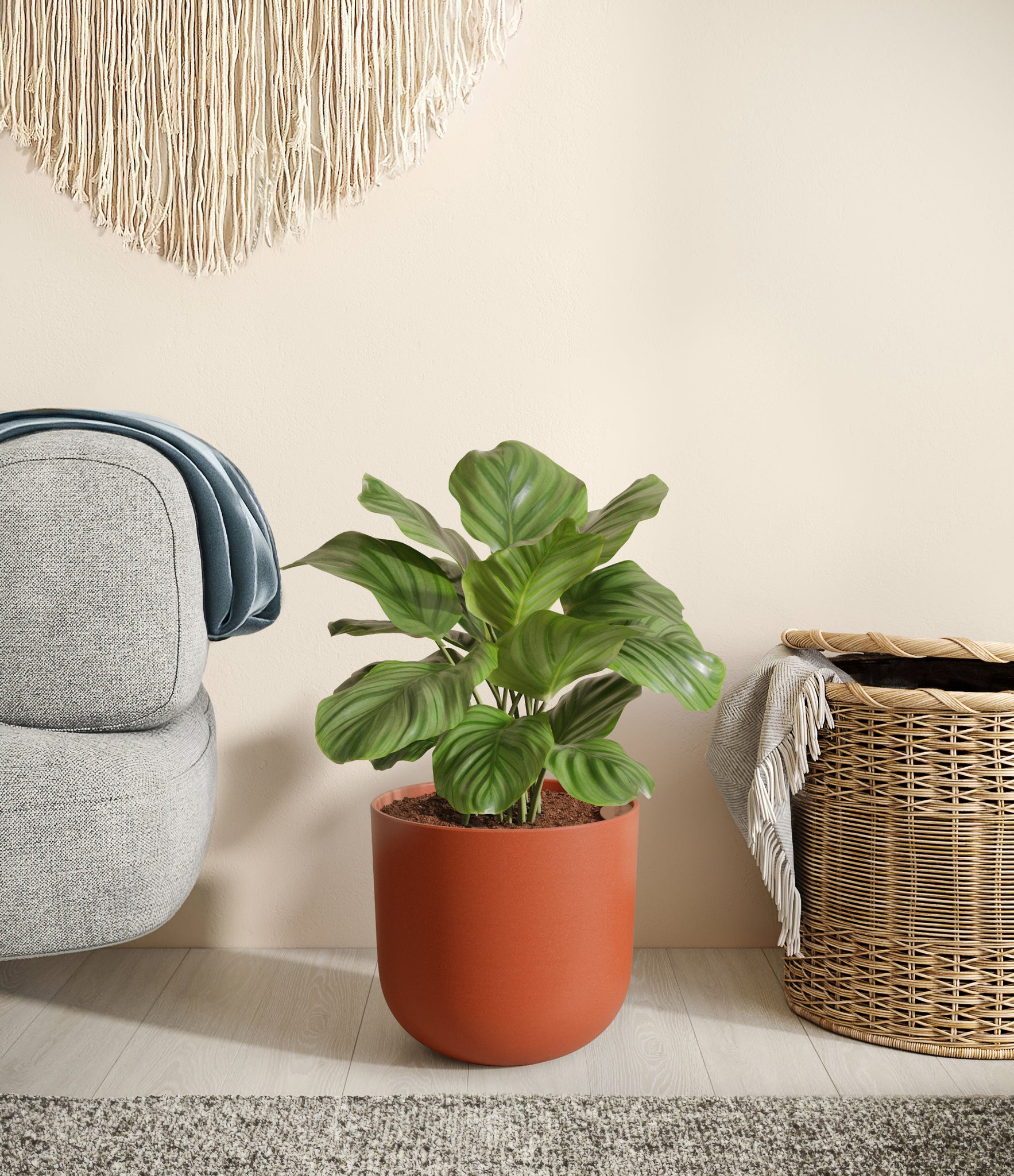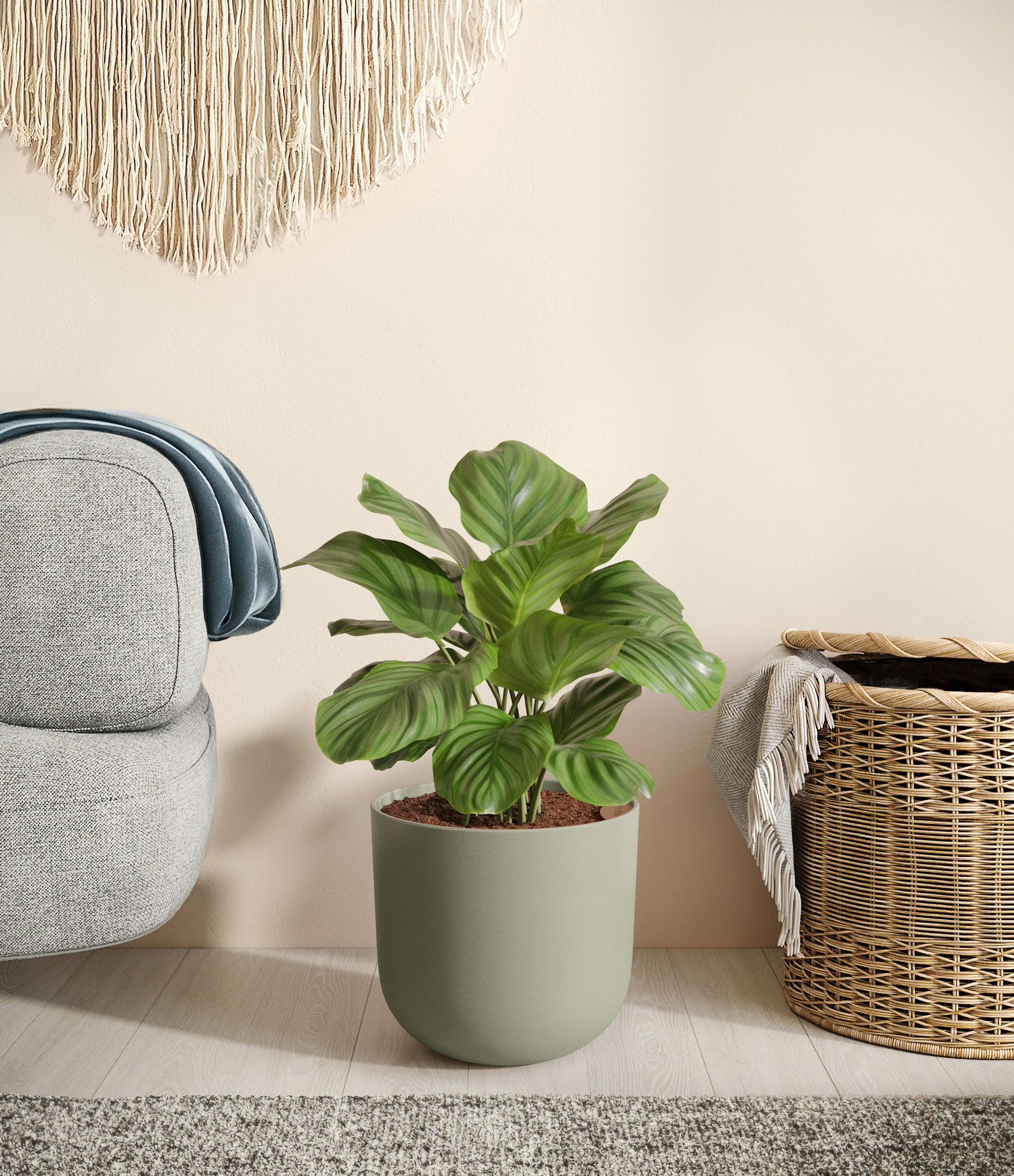 The Calathea Orbifolia is undoubtedly adored for its striking oblong foliage. With silver-green stripes on its large deep green leaves, this bold-statement plant instantly enhances any place. Potted in a premium quality self-watering pot with a soft matte finish, the Calathea Orbifolia is fast-growing, pet-friendly, and absolutely eye-catching. Native to tropical regions in South America, the Calathea Orbifolia prefers bright, warm, and humid conditions, so be sure to find it a cozy spot to help it feel at home.