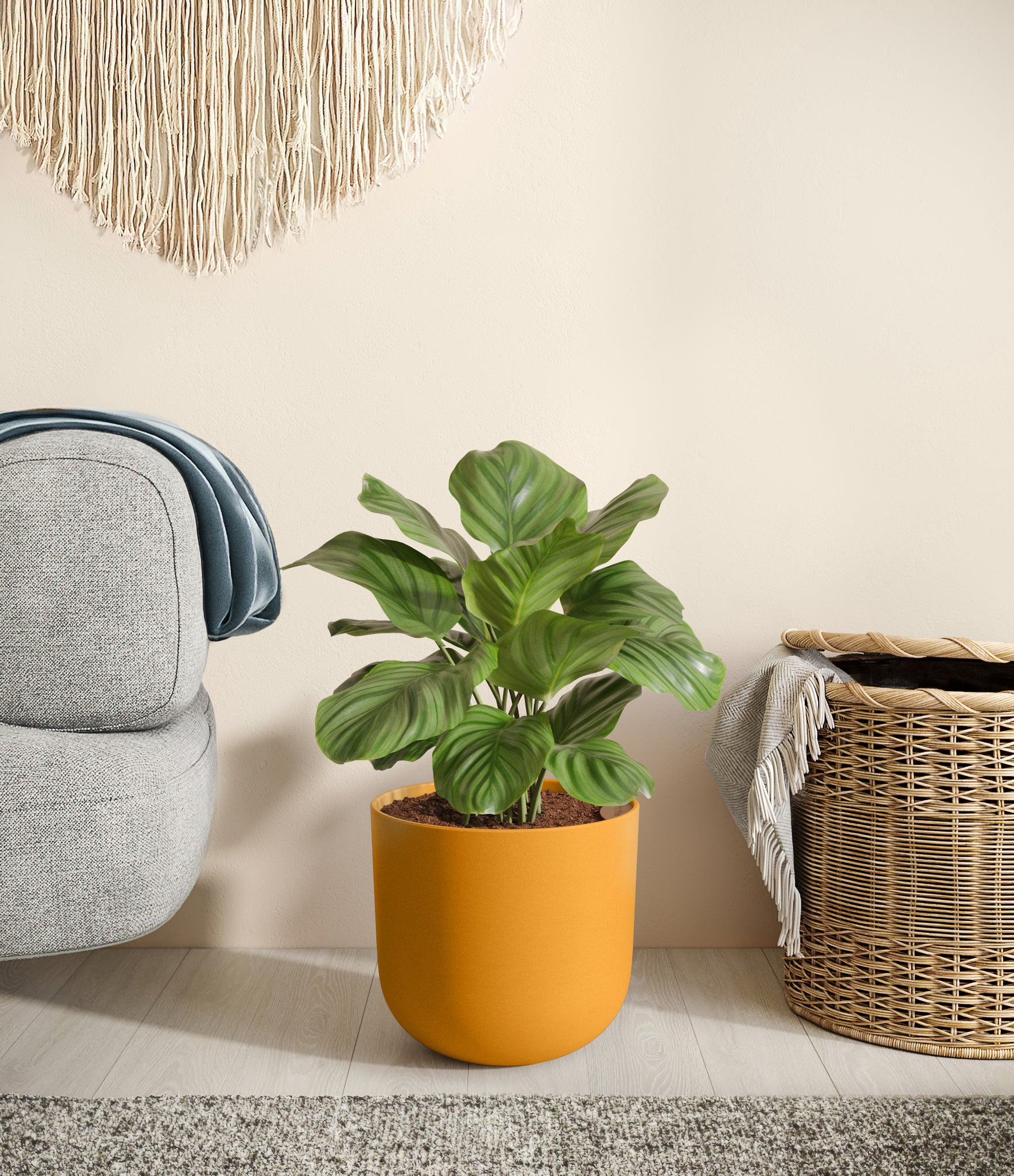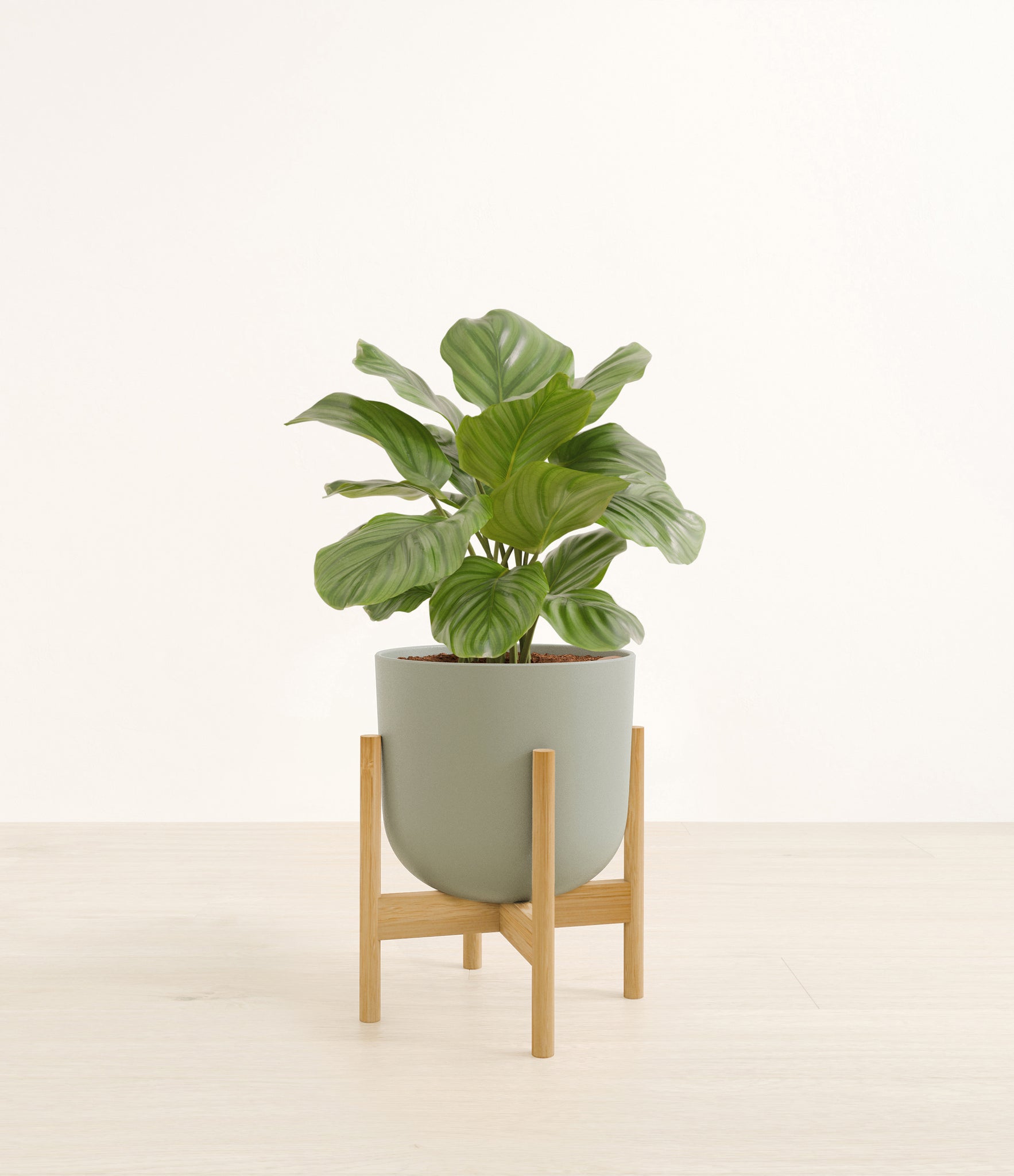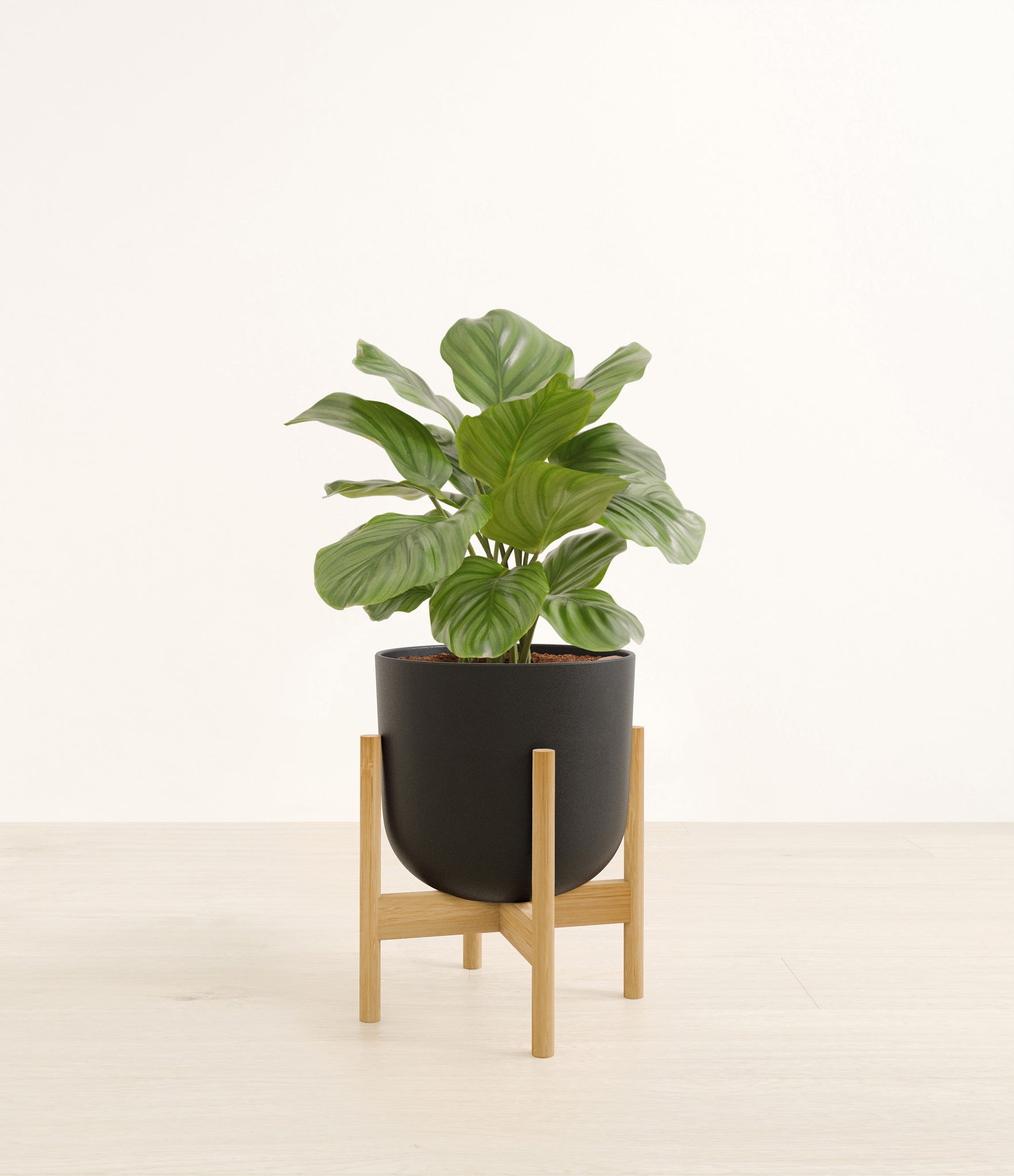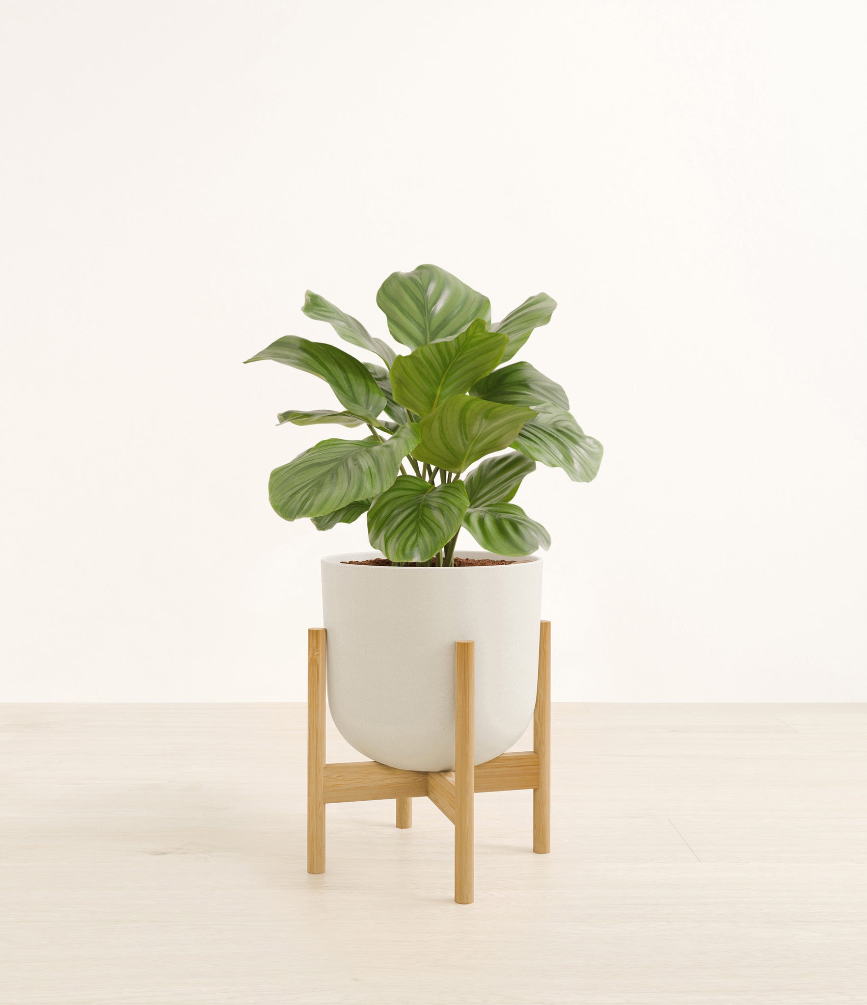 The Calathea Orbifolia is undoubtedly adored for its striking oblong foliage. With silver-green stripes on its large deep green leaves, this bold-statement plant instantly enhances any place. Potted in a premium quality self-watering pot with a soft matte finish, the Calathea Orbifolia is fast-growing, pet-friendly, and absolutely eye-catching. Native to tropical regions in South America, the Calathea Orbifolia prefers bright, warm, and humid conditions, so be sure to find it a cozy spot to help it feel at home.