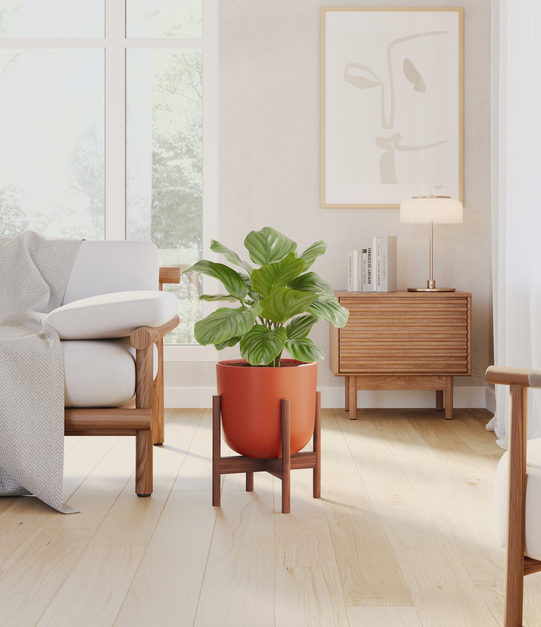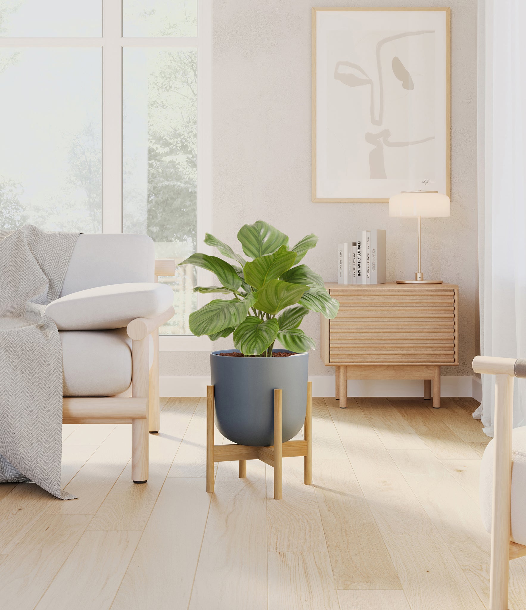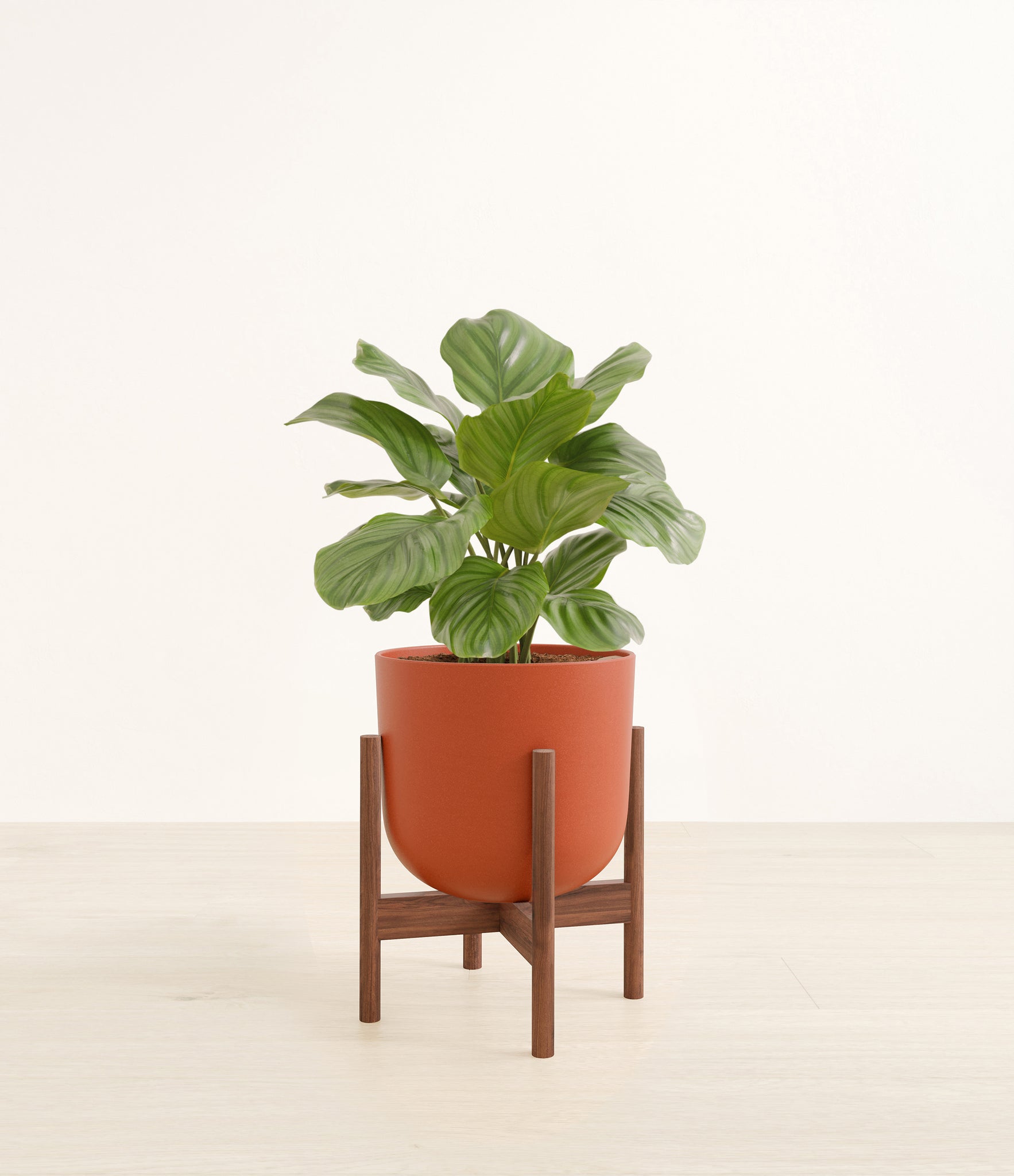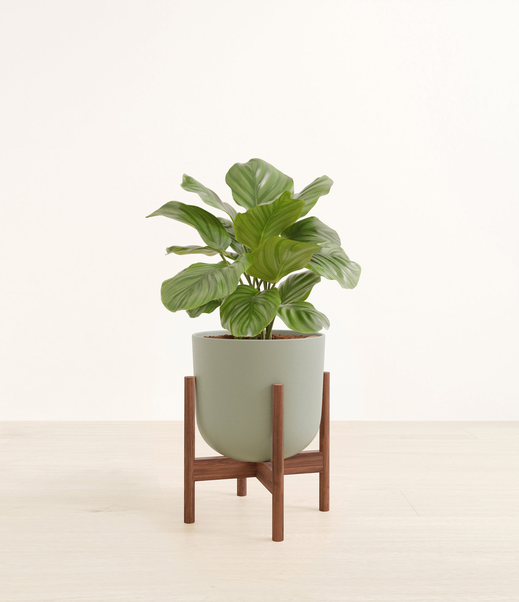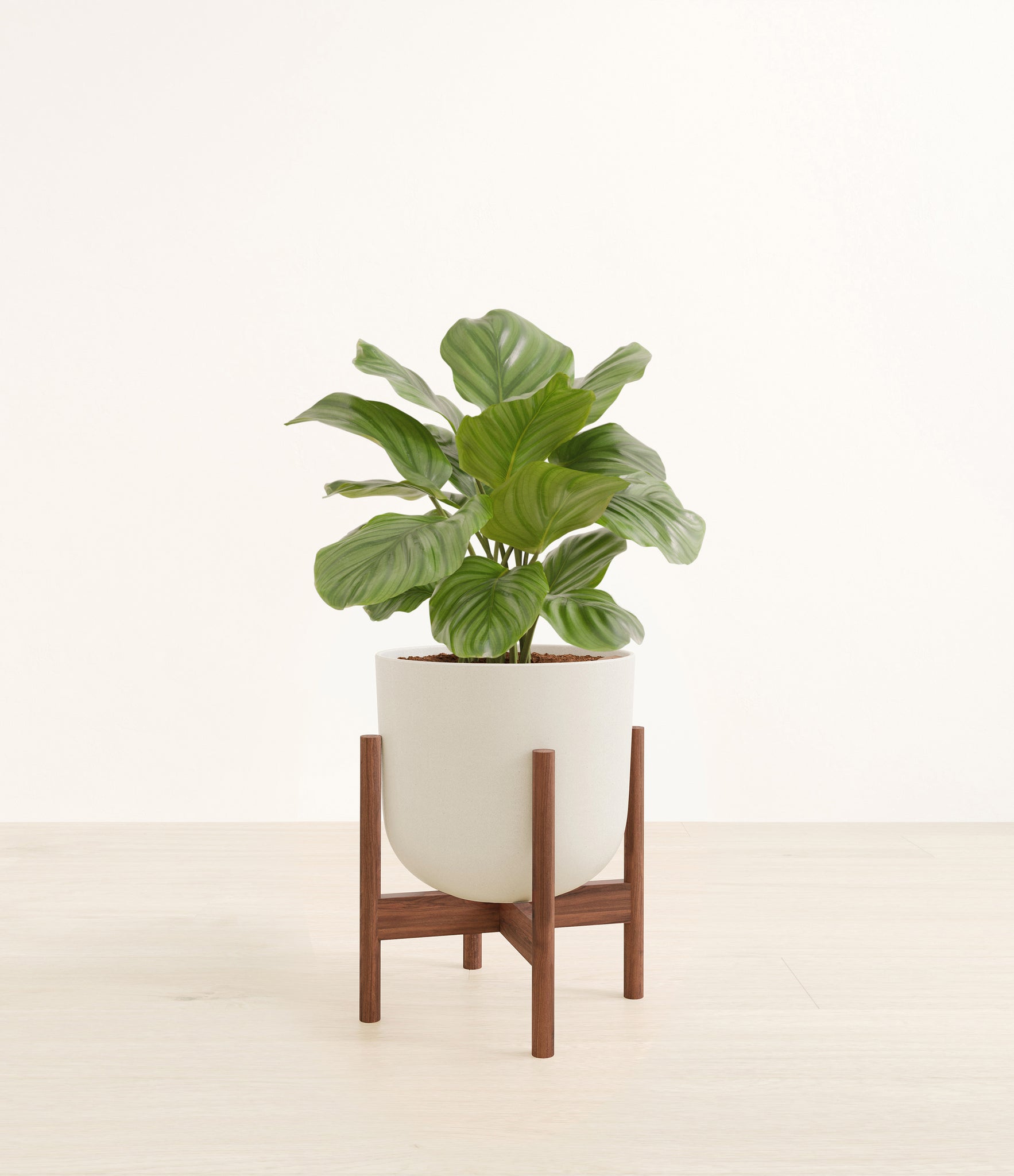 The Calathea Orbifolia is undoubtedly adored for its striking oblong foliage. With silver-green stripes on its large deep green leaves, this bold-statement plant instantly enhances any place. Potted in a premium quality self-watering pot with a soft matte finish, the Calathea Orbifolia is fast-growing, pet-friendly, and absolutely eye-catching. Native to tropical regions in South America, the Calathea Orbifolia prefers bright, warm, and humid conditions, so be sure to find it a cozy spot to help it feel at home.