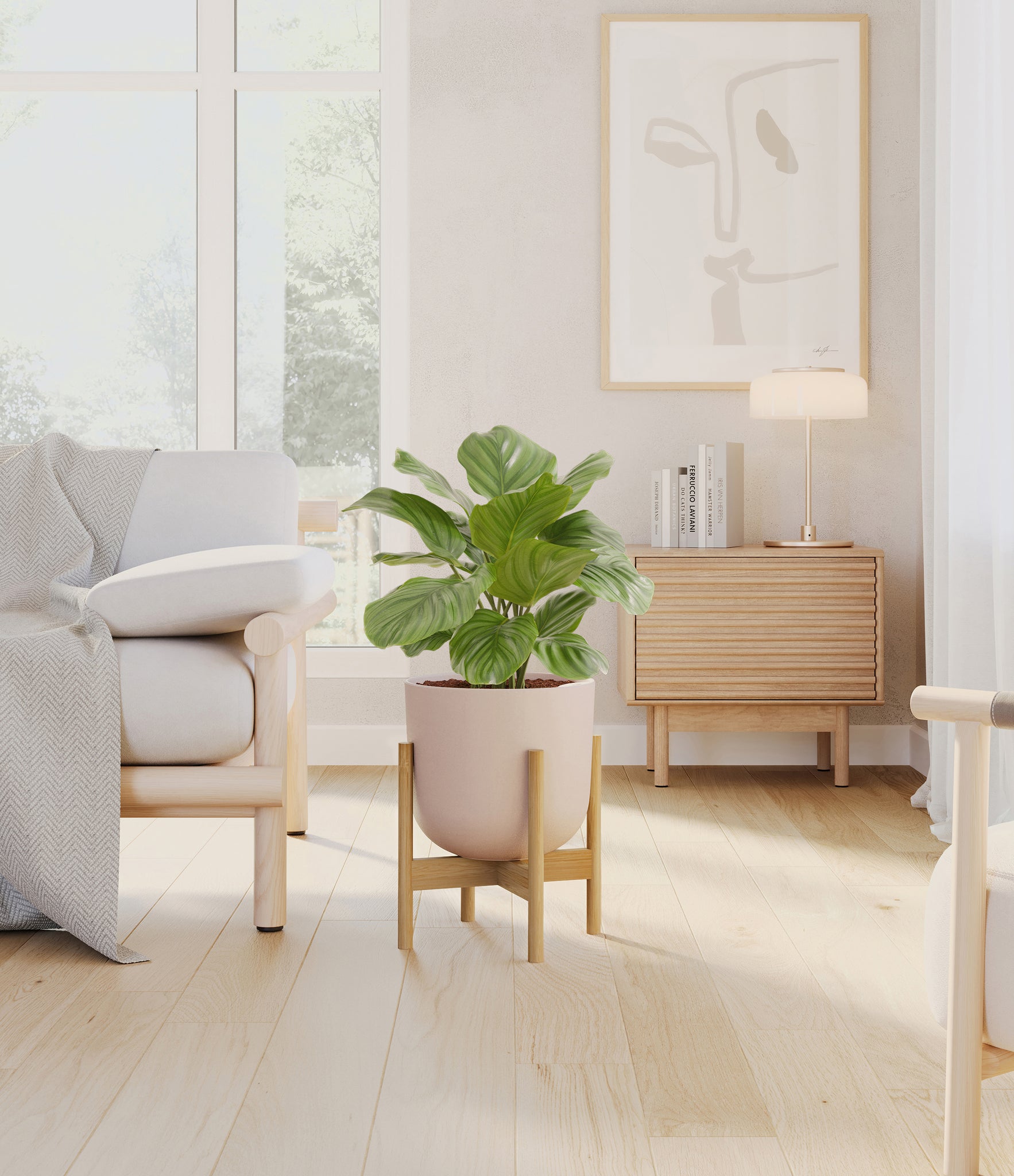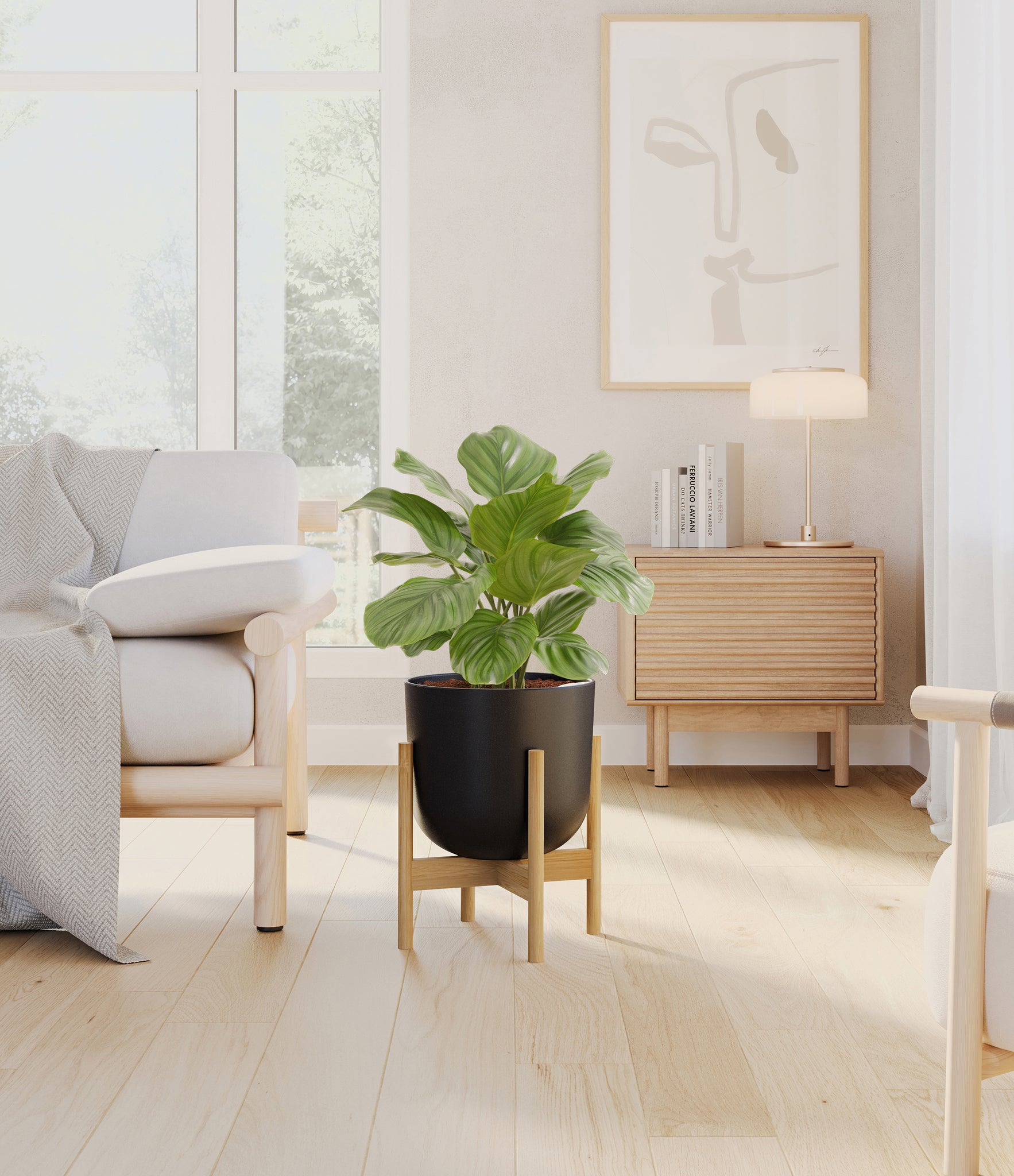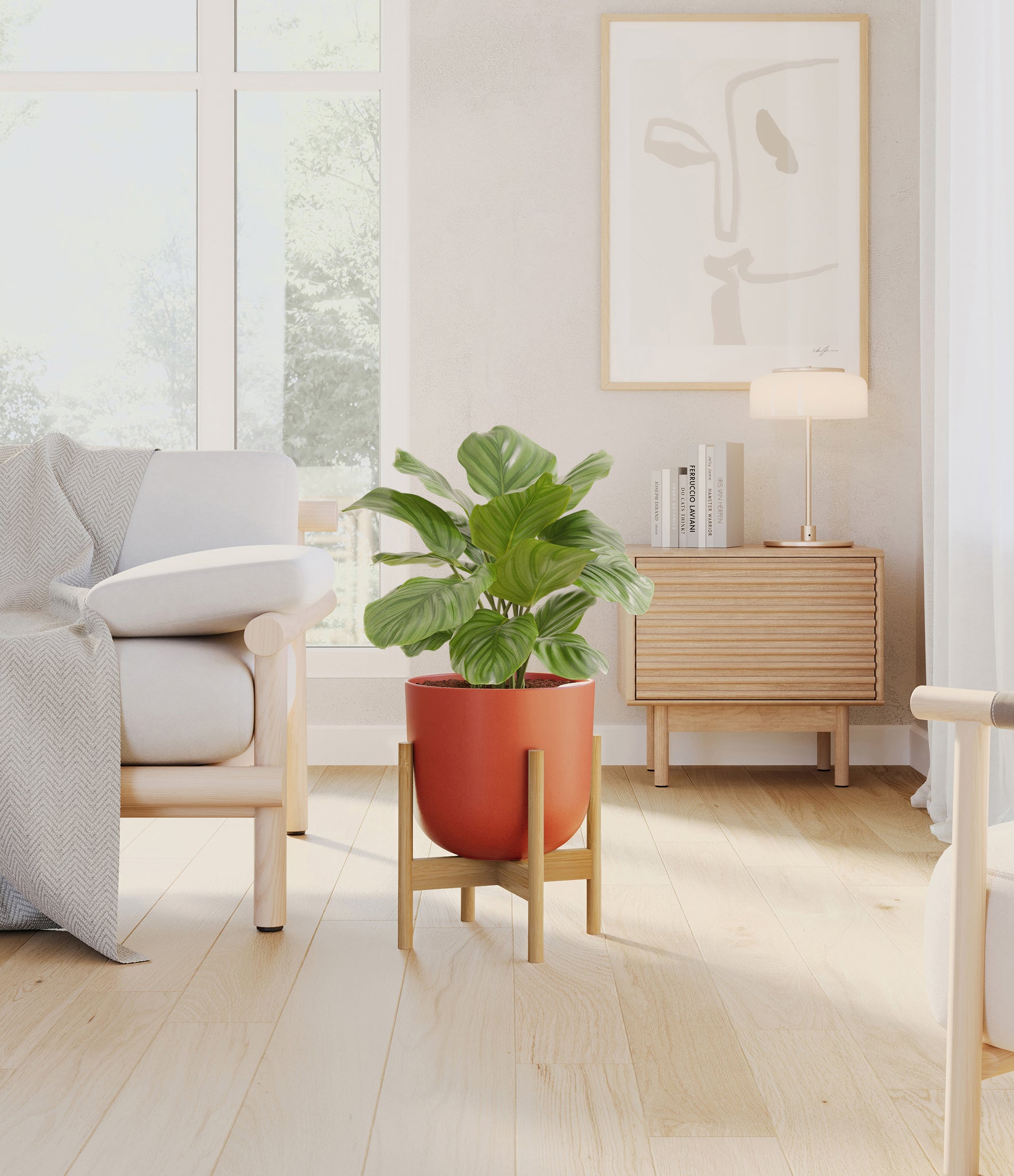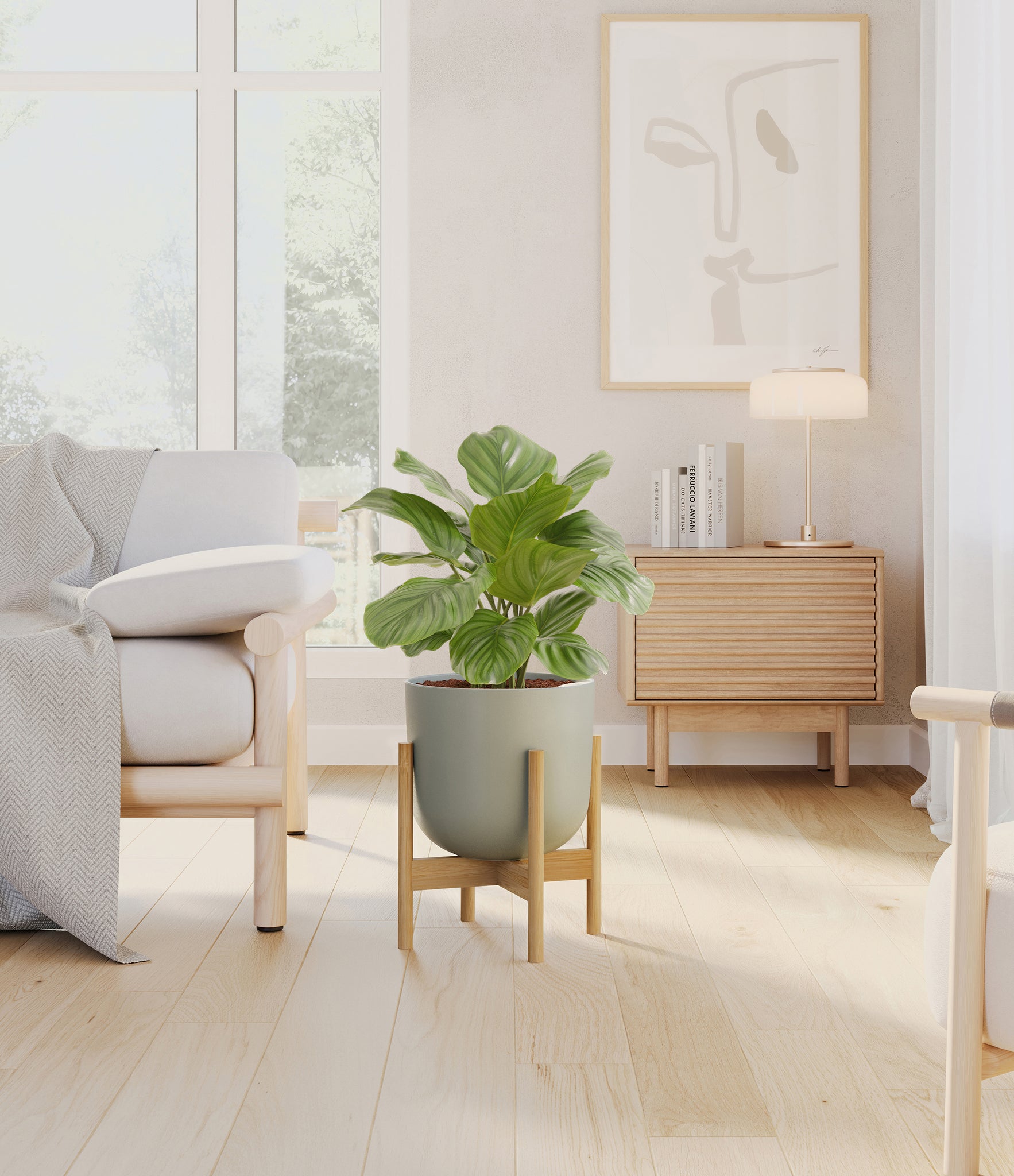 The Calathea Orbifolia is undoubtedly adored for its striking oblong foliage. With silver-green stripes on its large deep green leaves, this bold-statement plant instantly enhances any place. Potted in a premium quality self-watering pot with a soft matte finish, the Calathea Orbifolia is fast-growing, pet-friendly, and absolutely eye-catching. Native to tropical regions in South America, the Calathea Orbifolia prefers bright, warm, and humid conditions, so be sure to find it a cozy spot to help it feel at home.