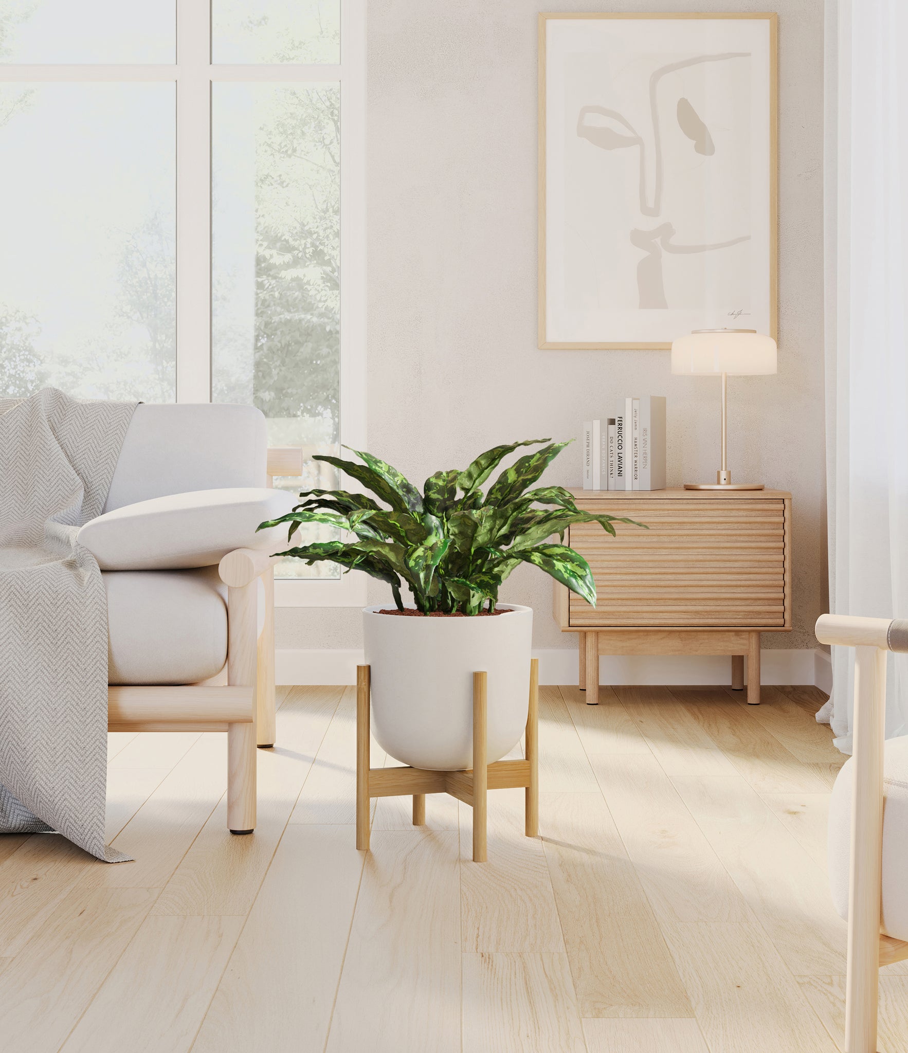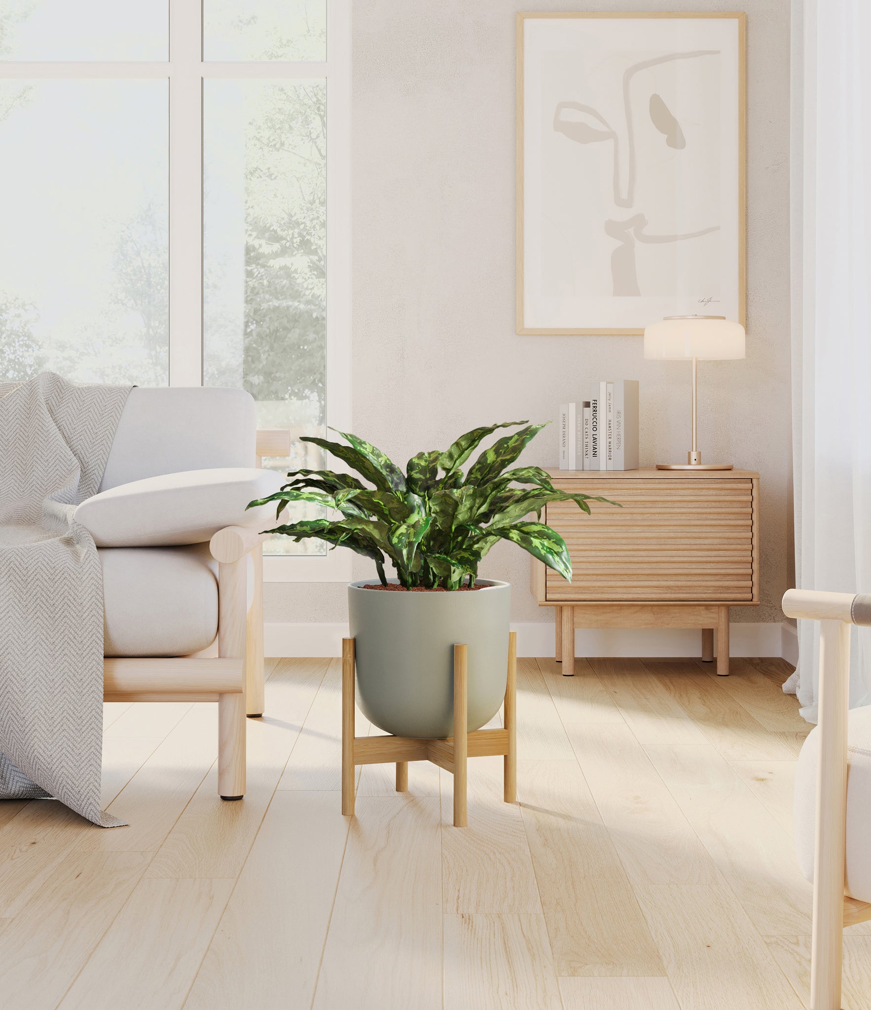 Native to the tropical and subtropical regions of Asia and New Guinea, Chinese Evergreen has been cultivated for centuries as a good luck charm. Known to live a long and healthy life, it is believed to bring wellbeing to the home and all its dwellers. Chinese Evergreen wears a luminant sage-green foliage that brings class and sophistication to any room.