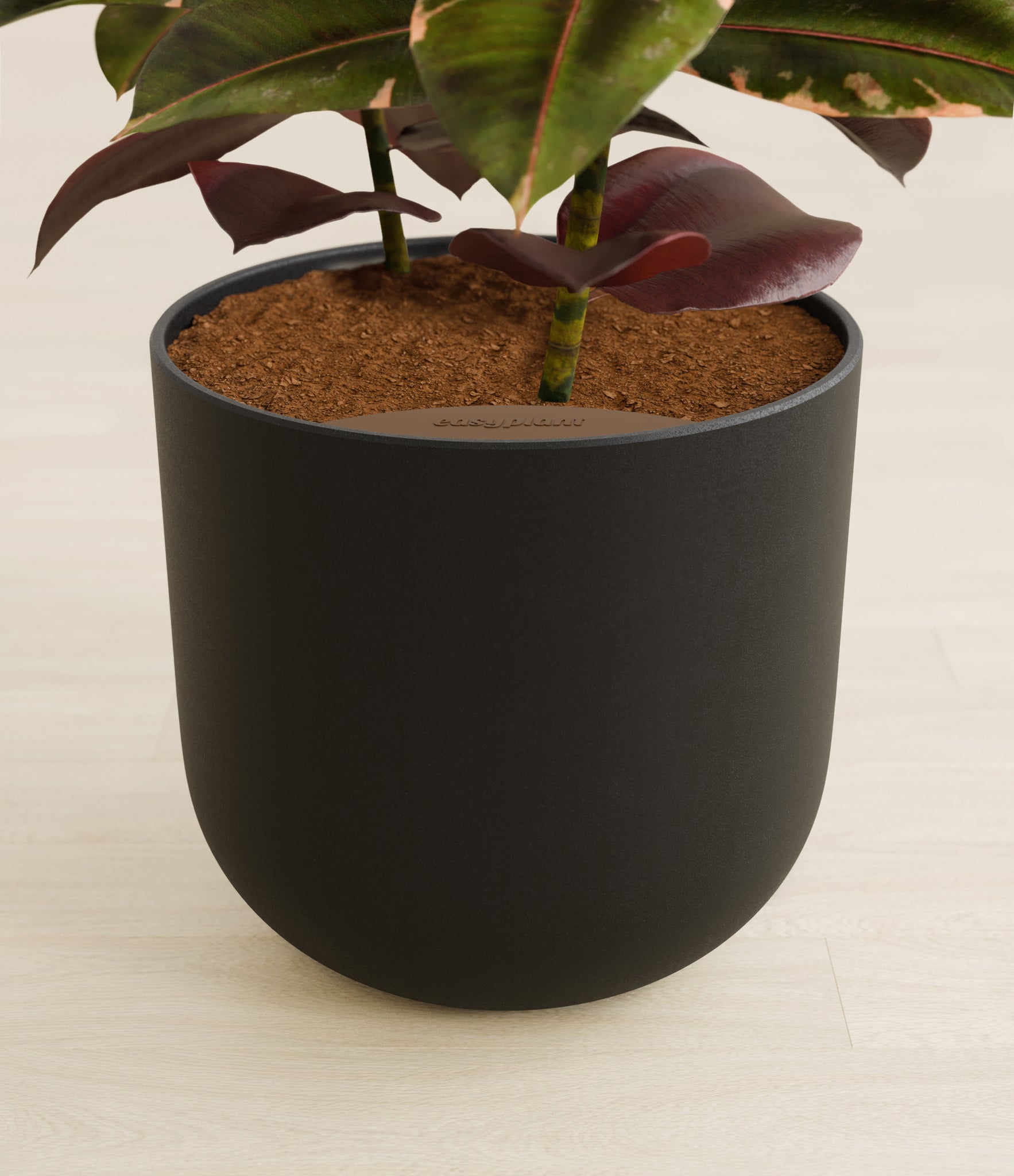 An exquisite plant with large rubbery leaves, the Ficus Ruby is best known for its extraordinary variegated foliage. Streaked with shades of pink and red against a vibrant dark green, it adds the perfect pop of color to any space. Potted in a premium quality self-watering pot with a soft matte finish, this stunning plant can reach up to 10 feet tall indoors. Native to the tropical zones of Malaysia and India, the Ficus Ruby thrives in warm, humid environments, so be sure to keep it somewhere cozy to make it feel at home.