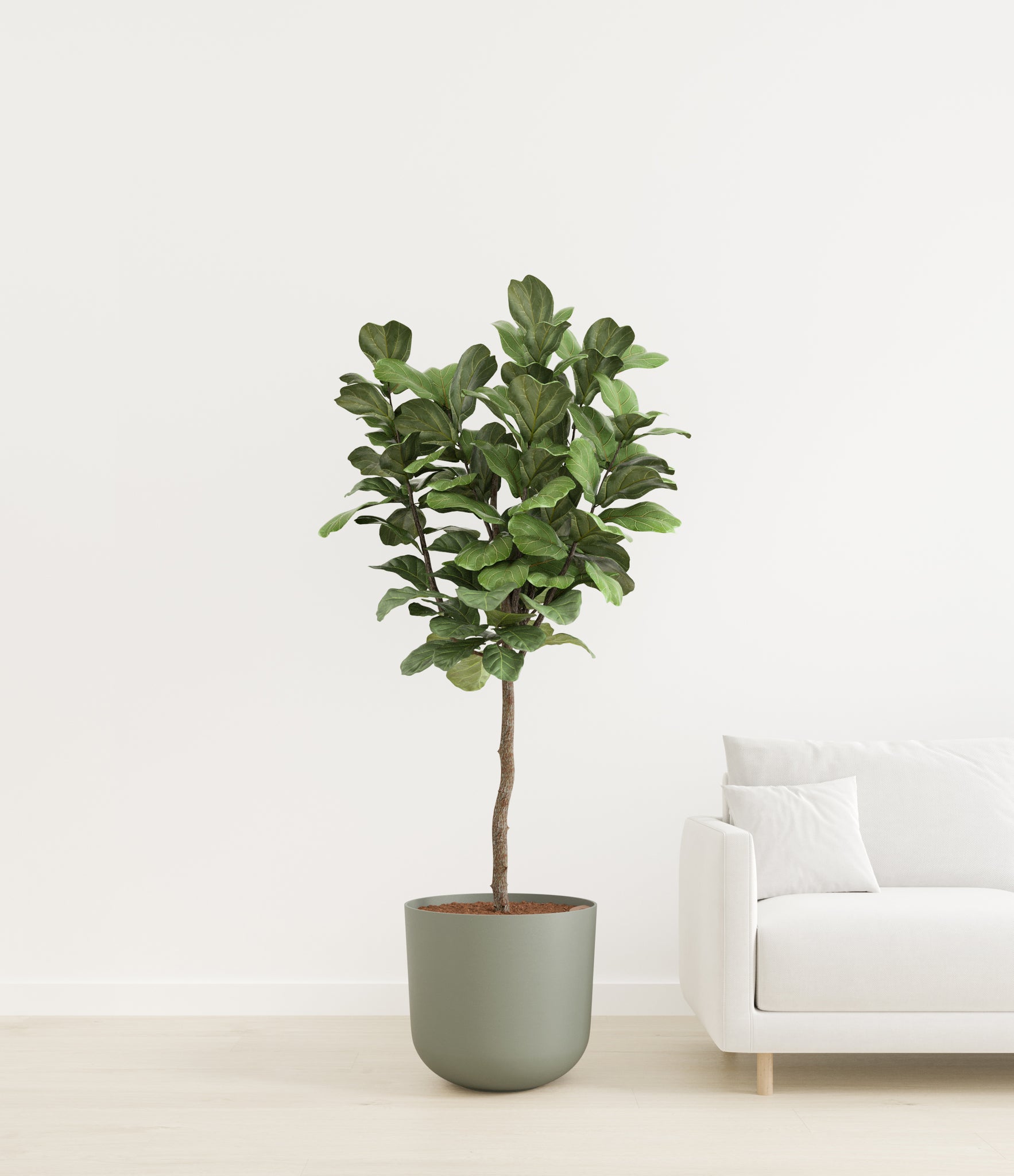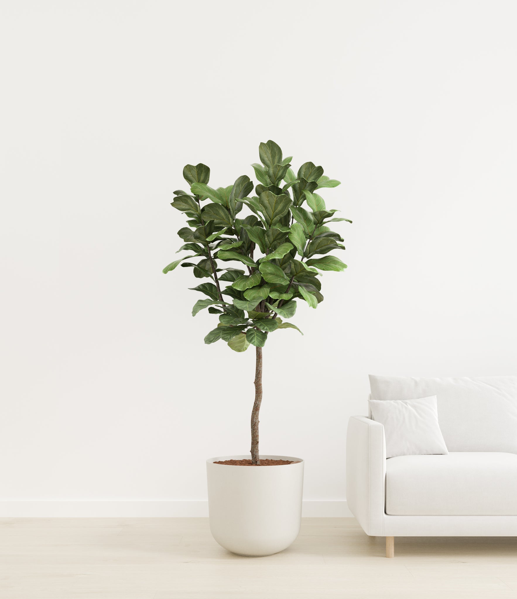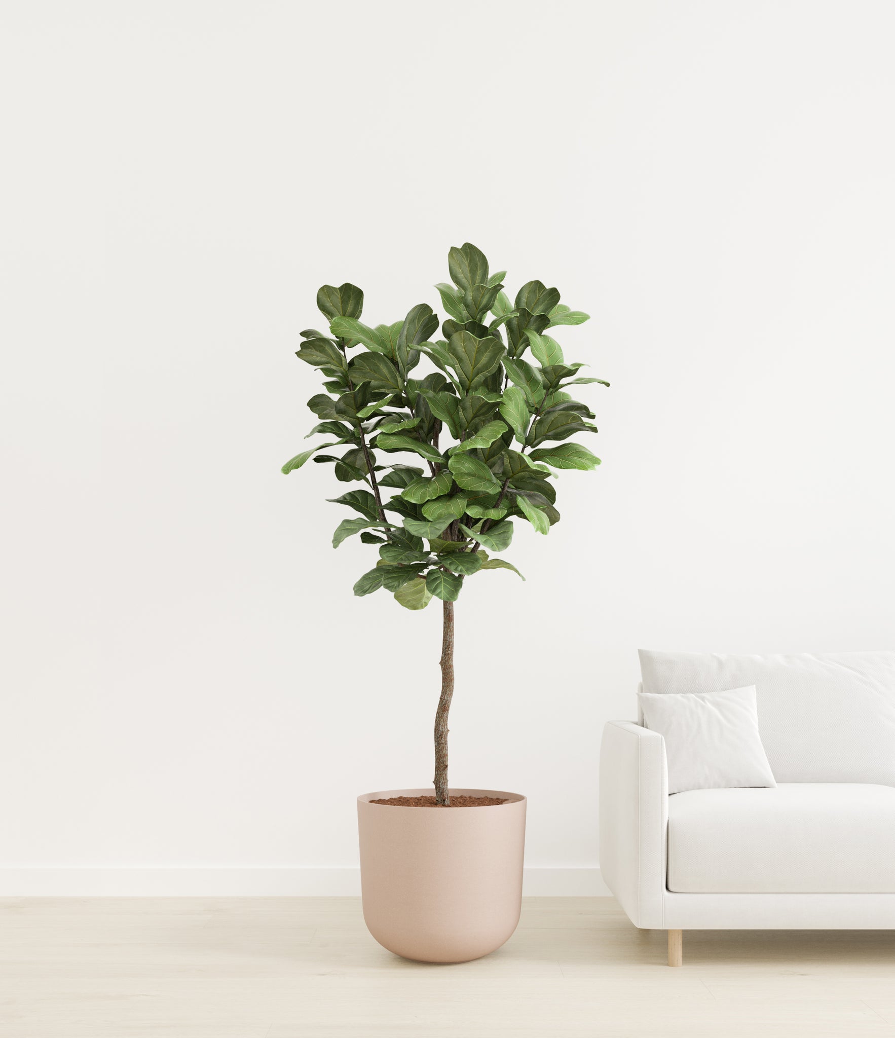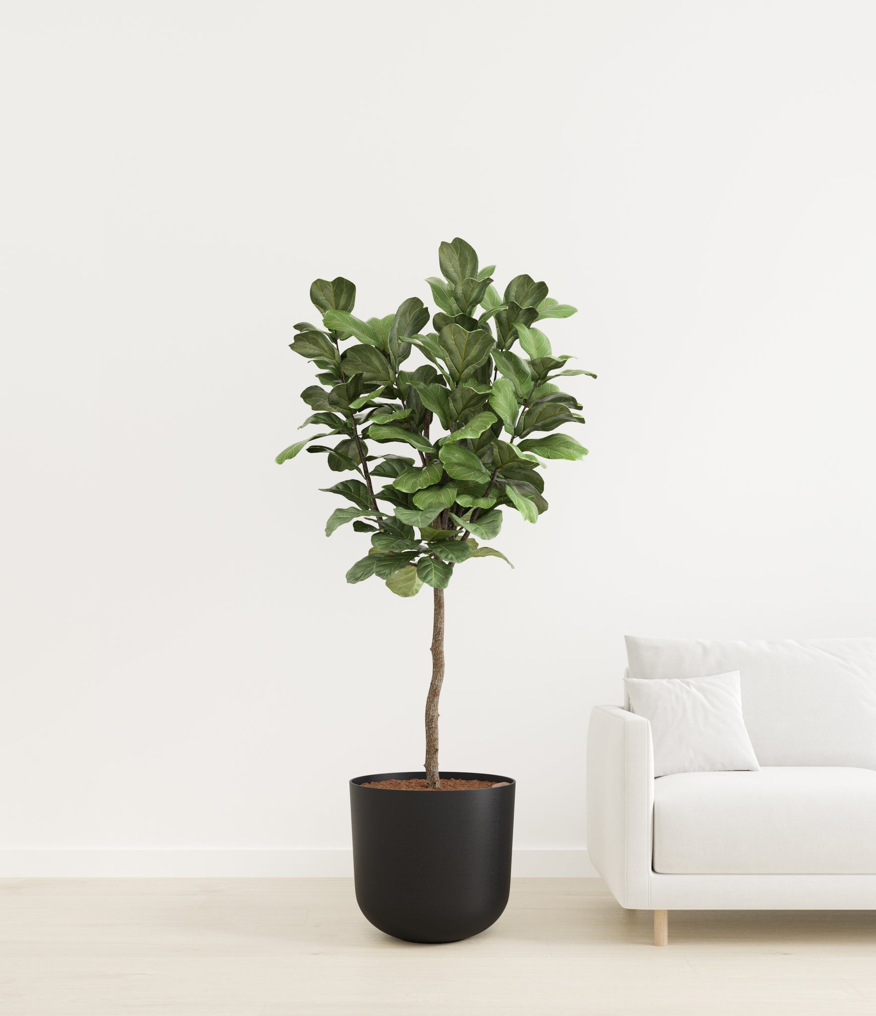 Native to the rainforests of Western and Central Africa, Fiddle Leaf Fig is a tropical fig tree reaching towering heights in the wild, and among the most known and coveted house plants. The vibrant green foliage full of lyre-shaped, larger-than-life leaves makes any space feel more unique and welcoming.