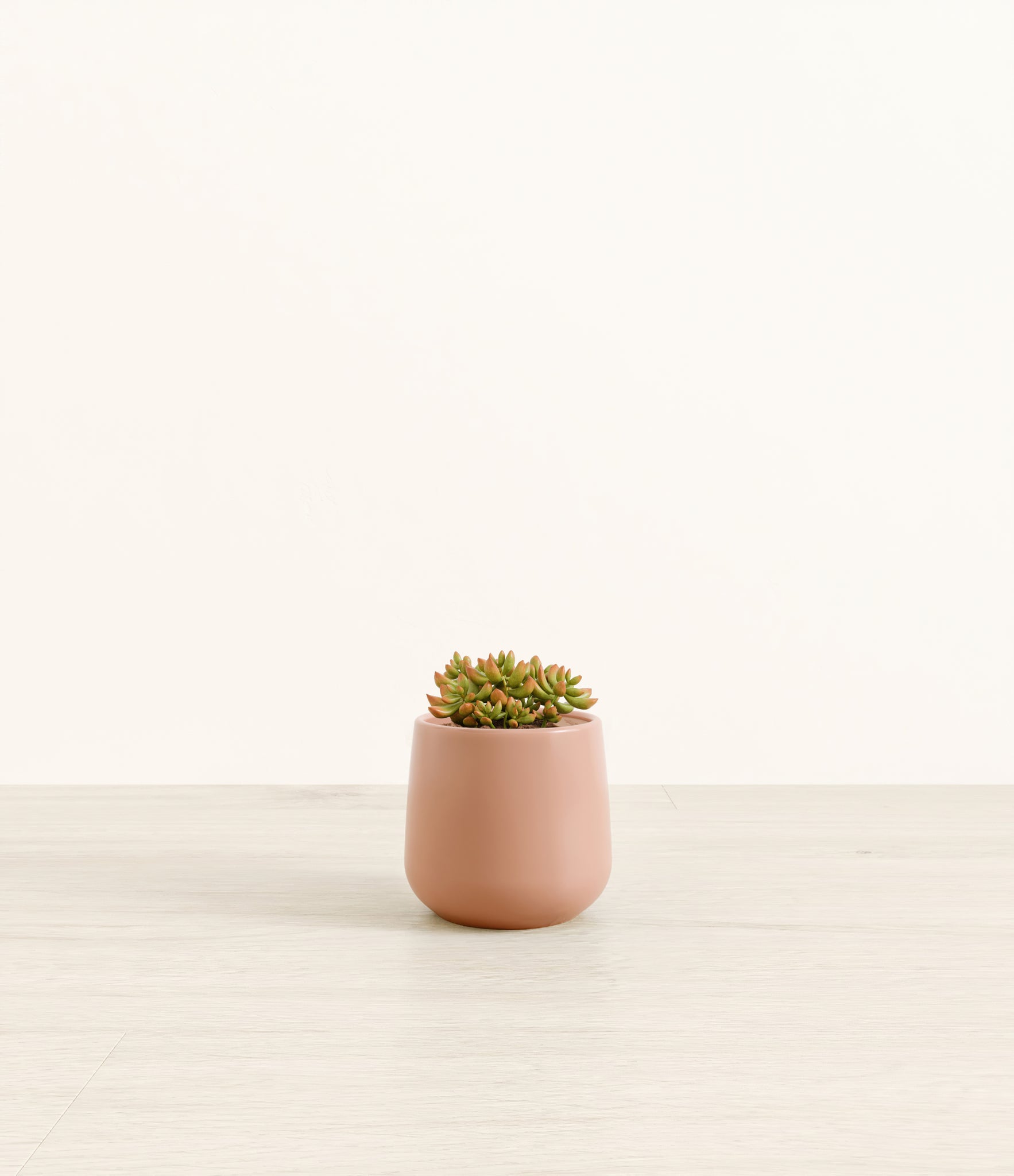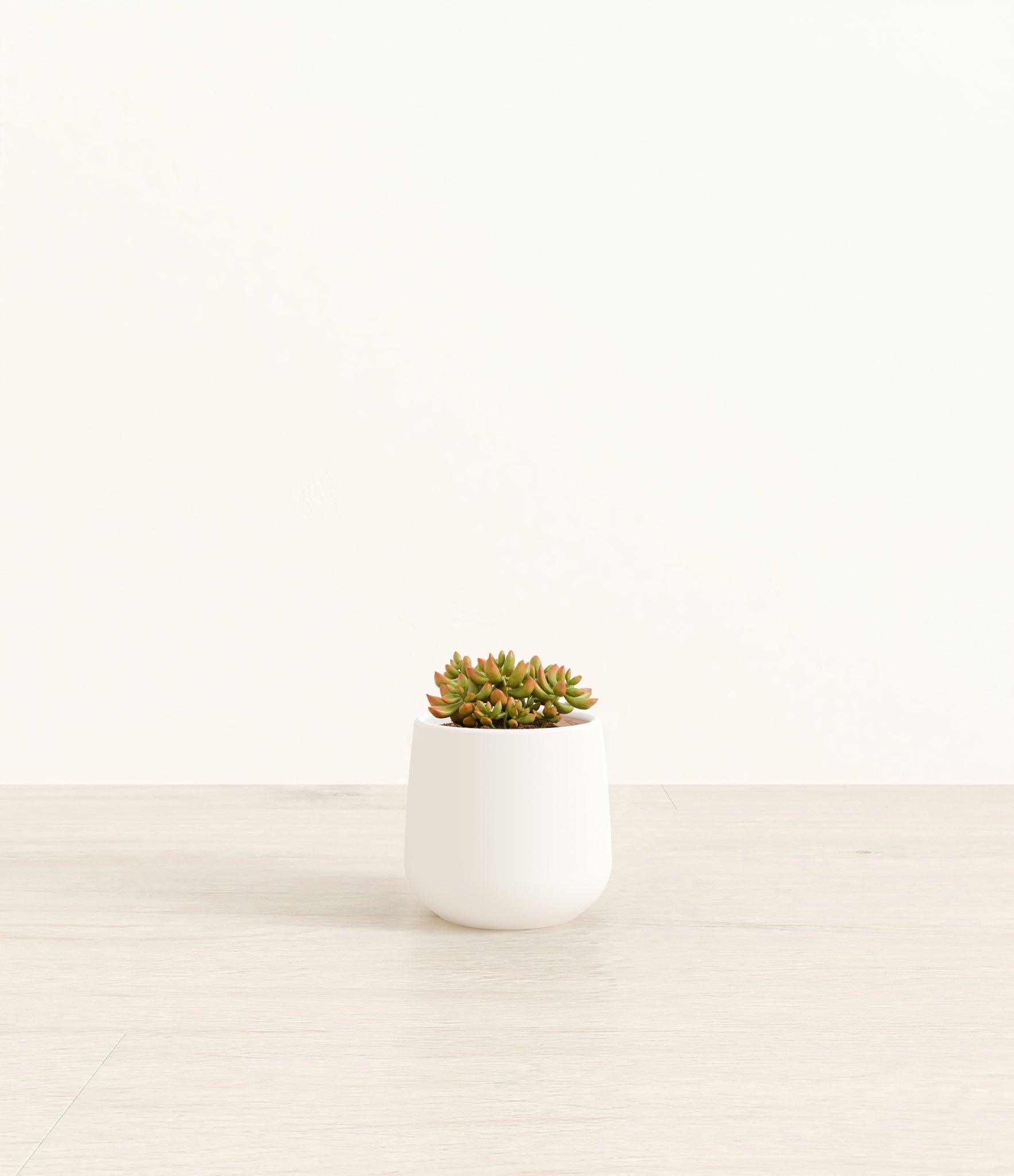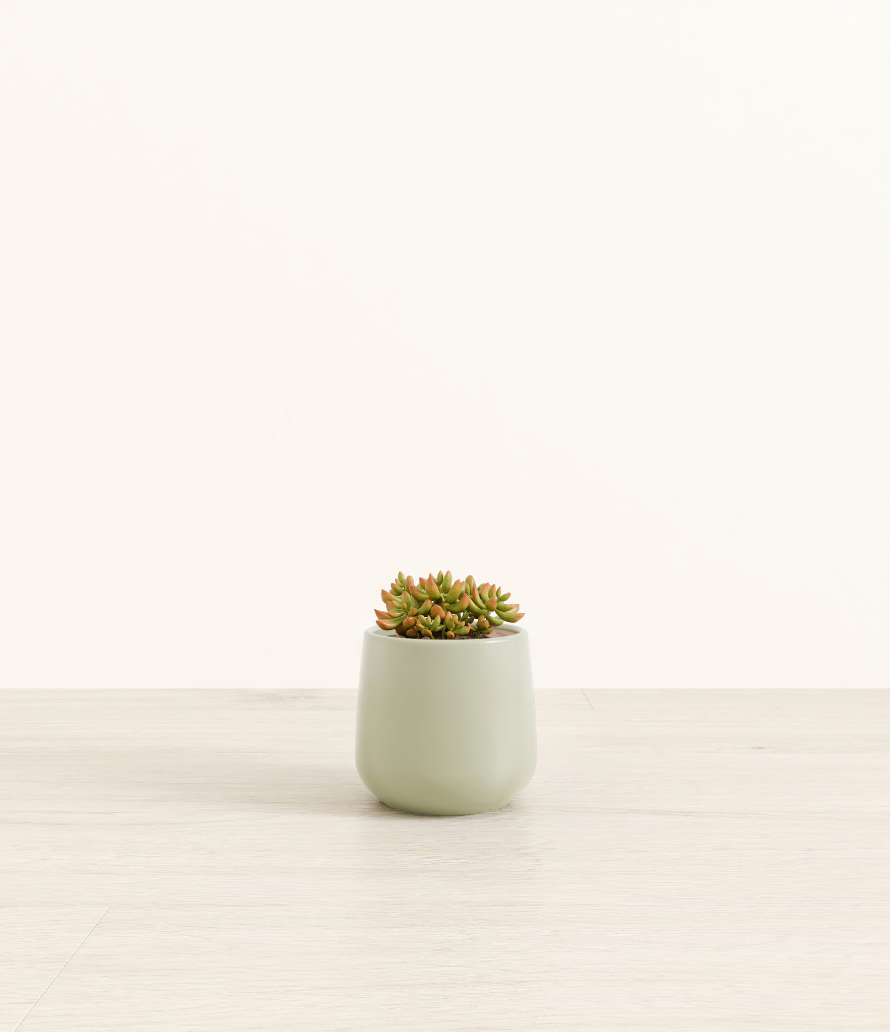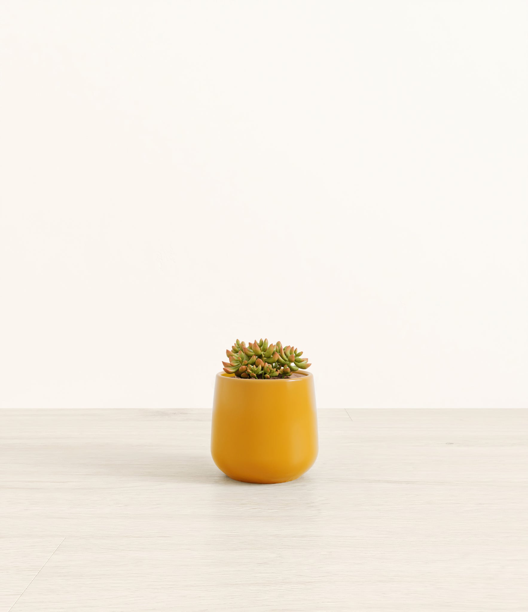 Native to the sun-soaked hillsides of Mexico, Firestorm Golden Sedum is a striking succulent that radiates with fiery charm. Its fleshy, spoon-shaped leaves glow in shades of gold and lime green, edged with brilliant red when exposed to bright light - creating a vibrant, flame-kissed effect. Compact and low-growing, this resilient plant forms tight rosettes that spread gently outward, making it ideal for decorative shelves or sunny windowsills.