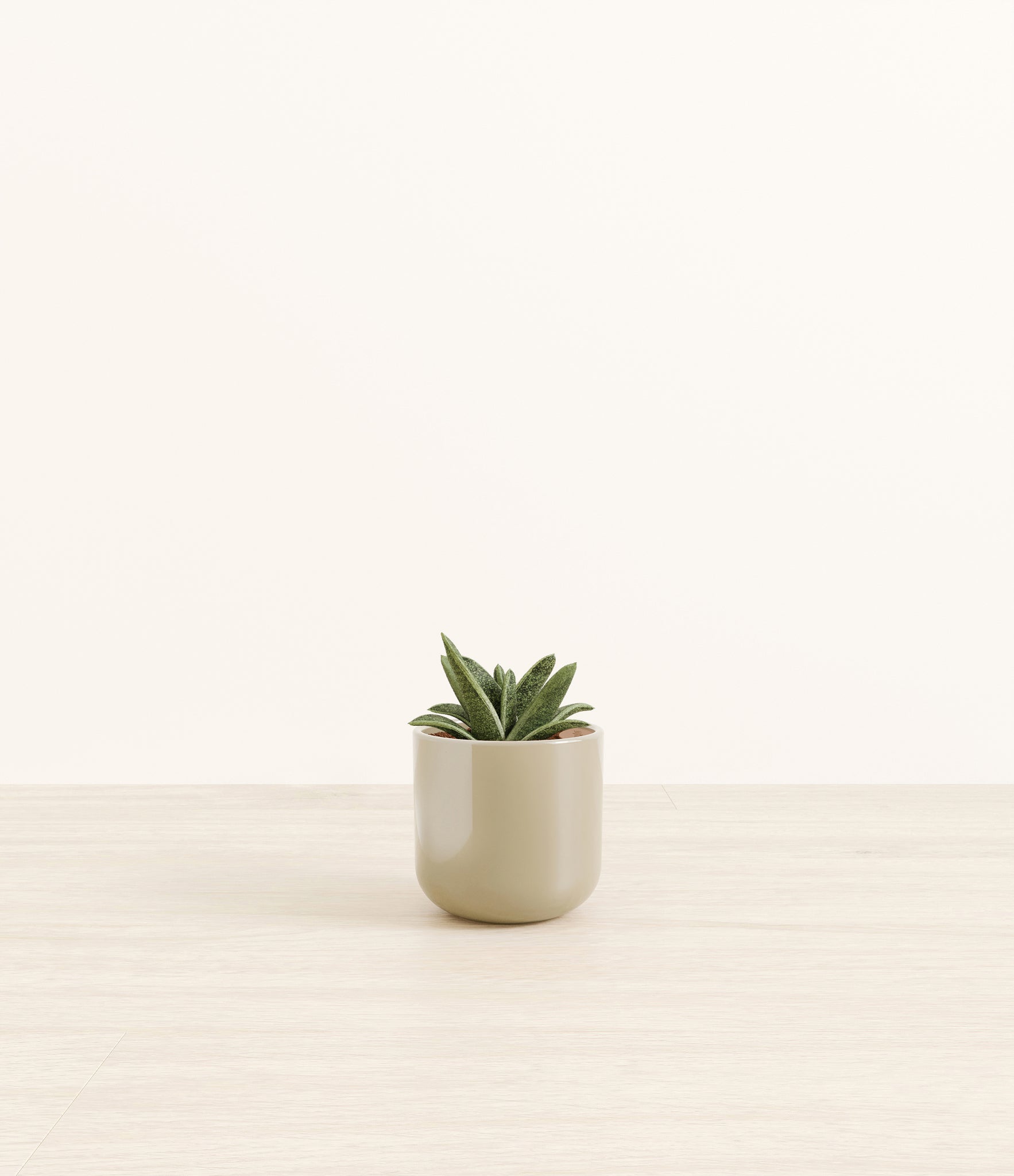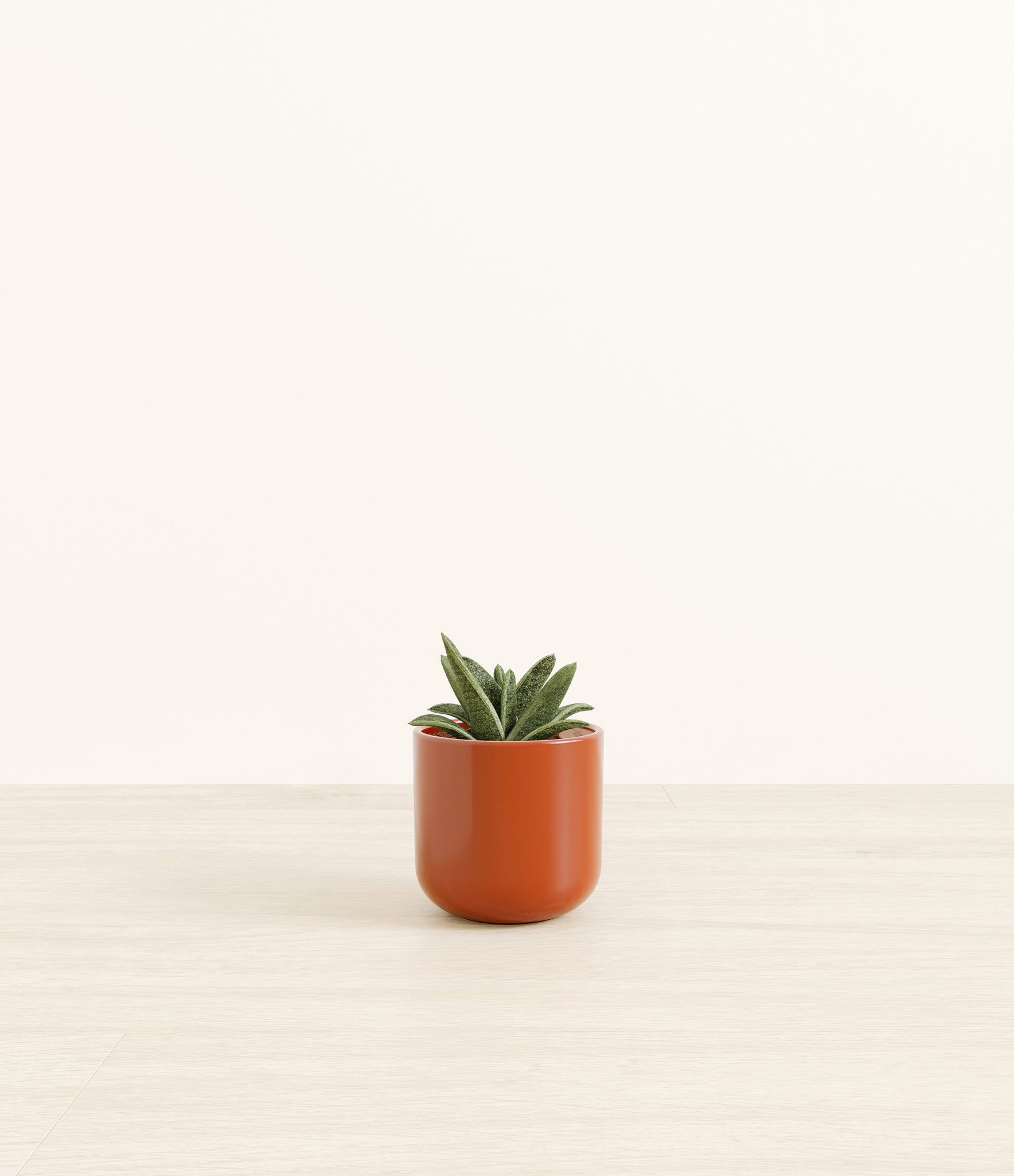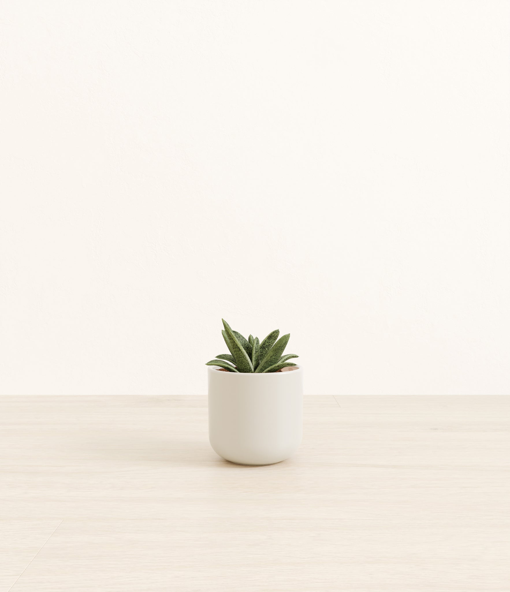 Originating from the rocky deserts of South Africa, Gasteria Retusa is a slow-growing succulent celebrated for its unique, architectural form and velvety texture. Its thick, tongue-shaped leaves grow in tight, symmetrical pairs, often adorned with speckles and soft ridges that shimmer under the light. Unlike most succulents, Gasteria prefers a bit of shade, making it especially well-suited for indoor environments. Its unusual shape and resilient nature have earned it a place in traditional medicine and folklore as a plant of quiet strength and protection.