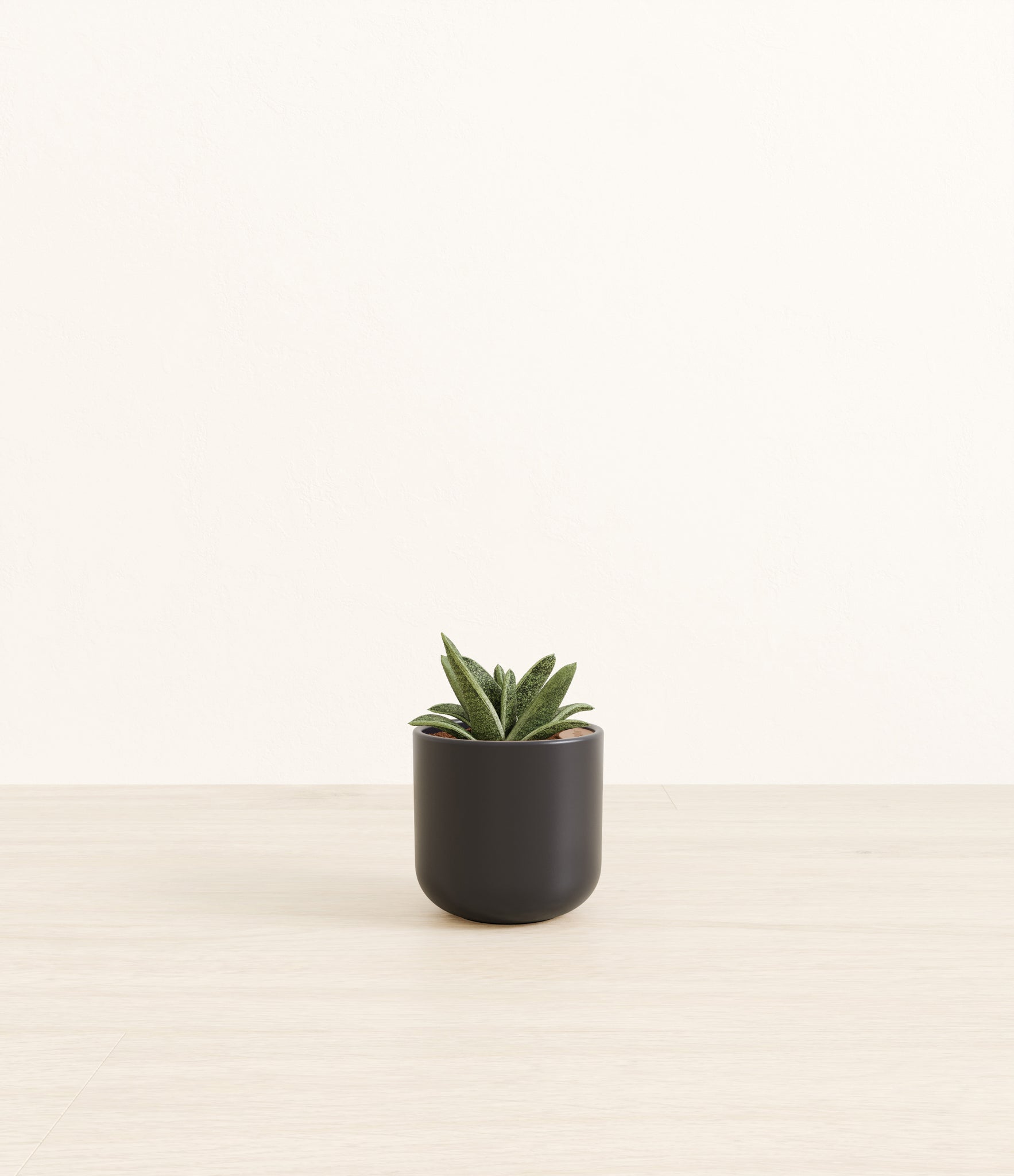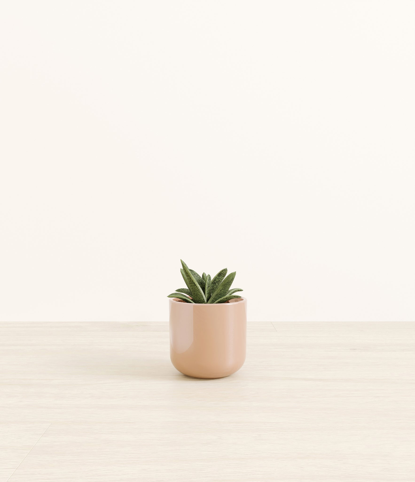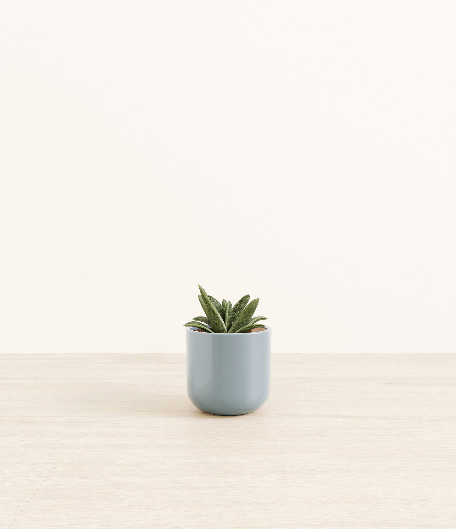 Originating from the rocky deserts of South Africa, Gasteria Retusa is a slow-growing succulent celebrated for its unique, architectural form and velvety texture. Its thick, tongue-shaped leaves grow in tight, symmetrical pairs, often adorned with speckles and soft ridges that shimmer under the light. Unlike most succulents, Gasteria prefers a bit of shade, making it especially well-suited for indoor environments. Its unusual shape and resilient nature have earned it a place in traditional medicine and folklore as a plant of quiet strength and protection.