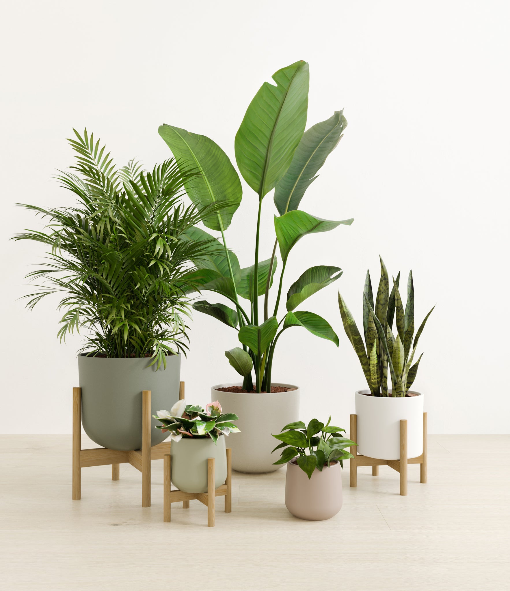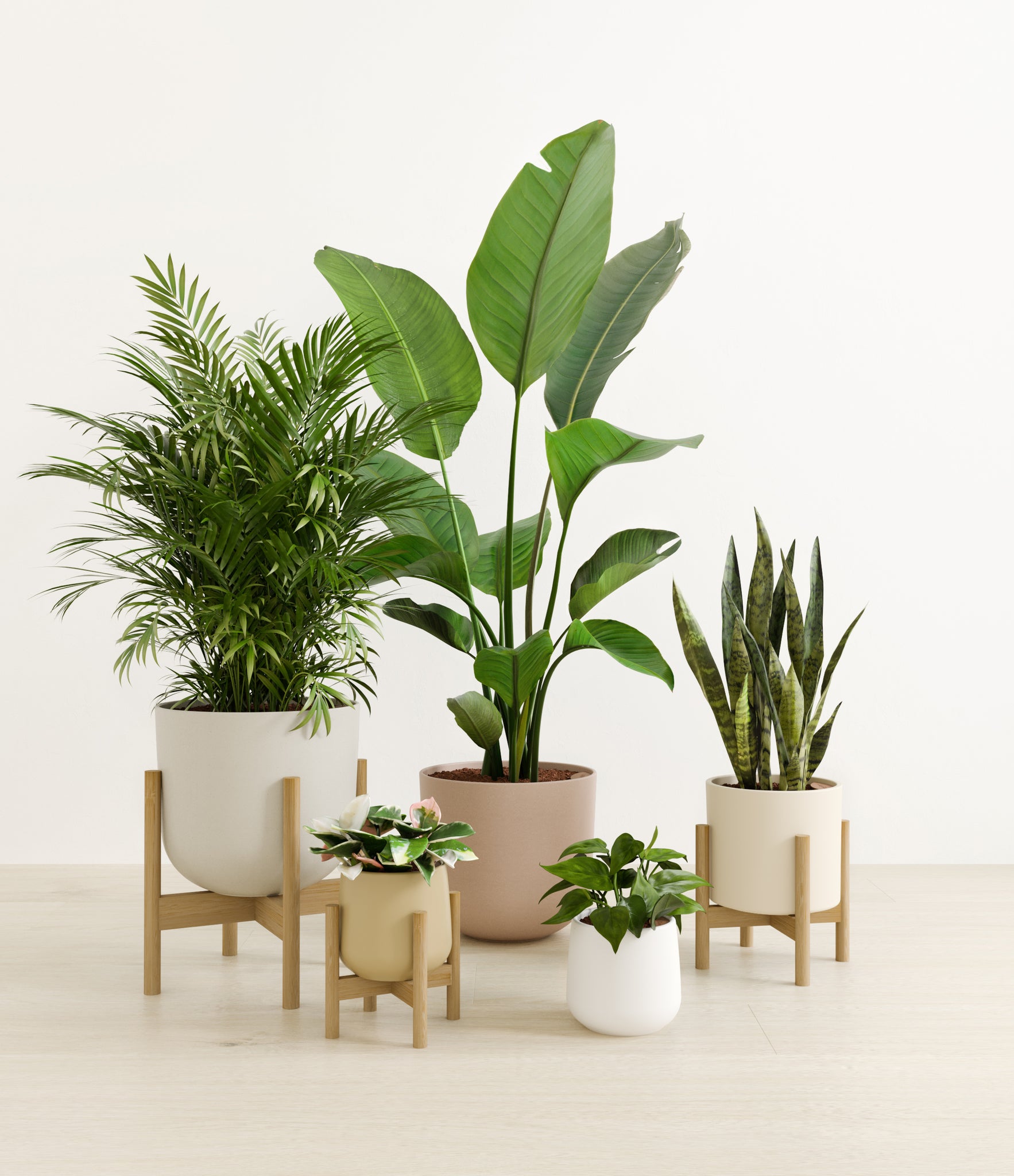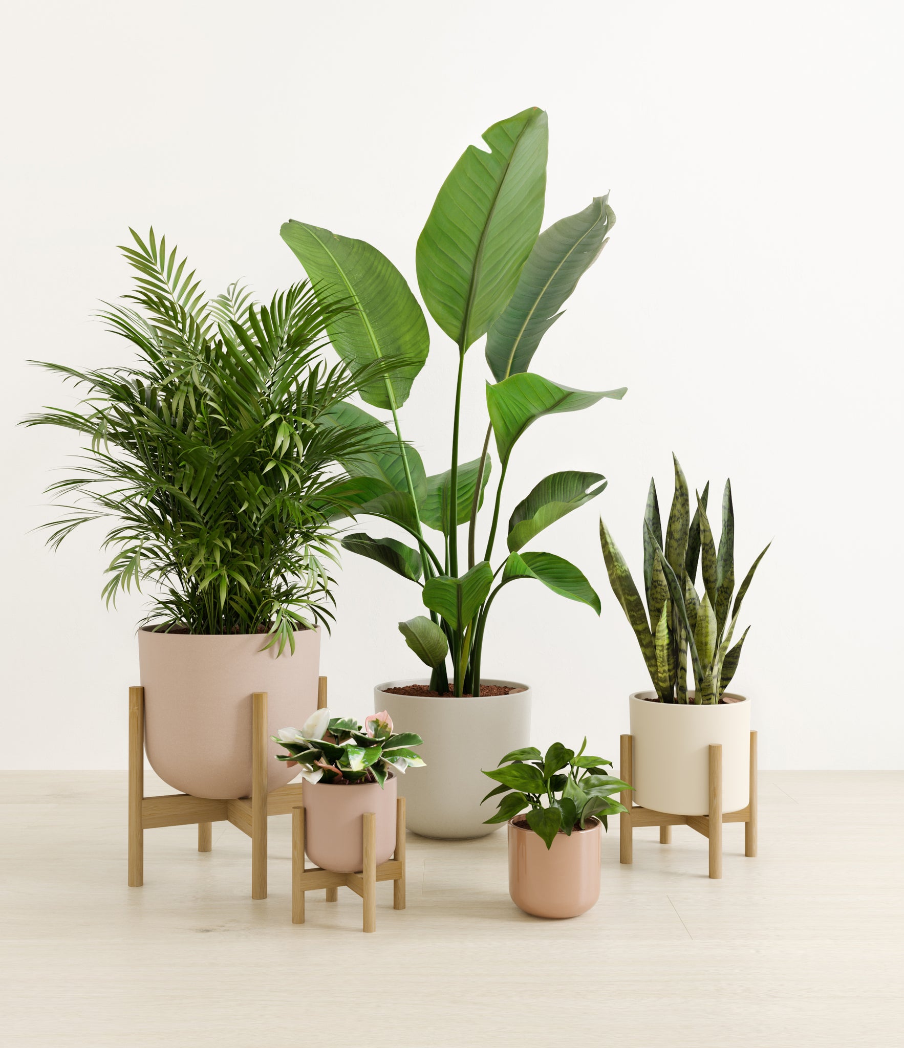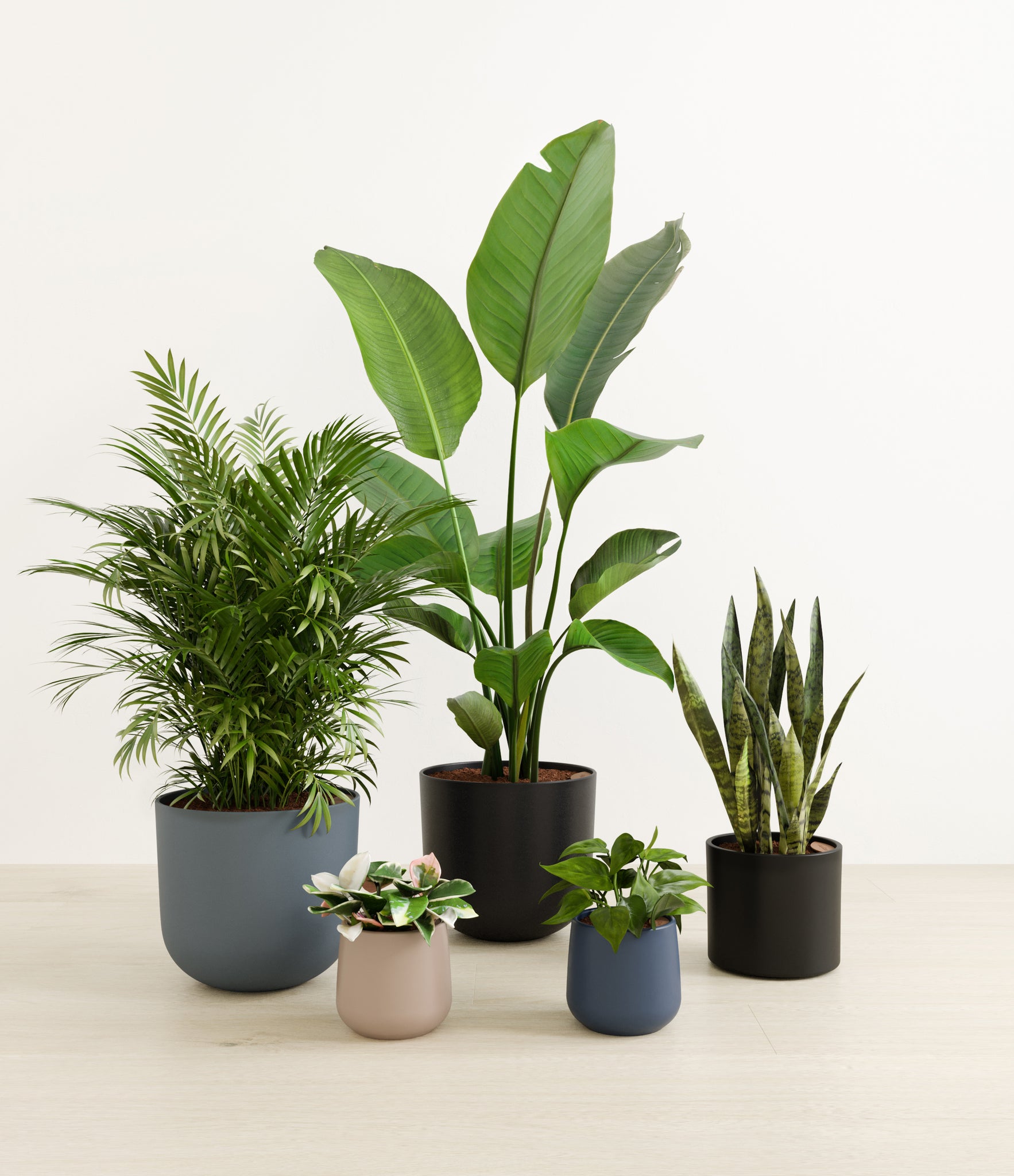 In this collection, you'll receive a carefully curated set of five unique houseplants that instantly make any space more lively and festive. The assortment includes a small Hoya Tri-Color, wearing variegations of pink and white on waxy, forest green leaves; a small Heartleaf Philodendron - one of the hardiest and most beautiful plants – with glossy, vibrant heart-shaped foliage; a medium Green Snake Plant with mesmerizing swatches of silver and sage; a large Parlor Palm, known as the traditional centerpiece of the most impressive room in the house; and a huge White Bird of Paradise that playfully hangs like birds in flight.