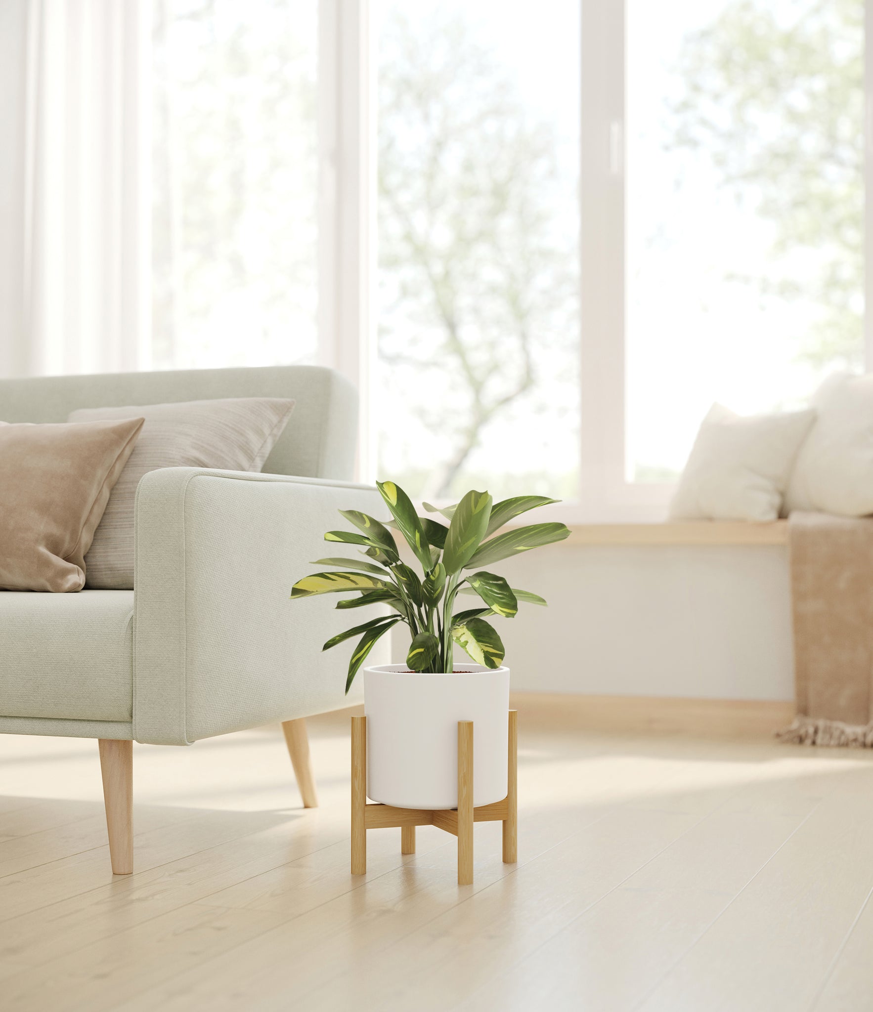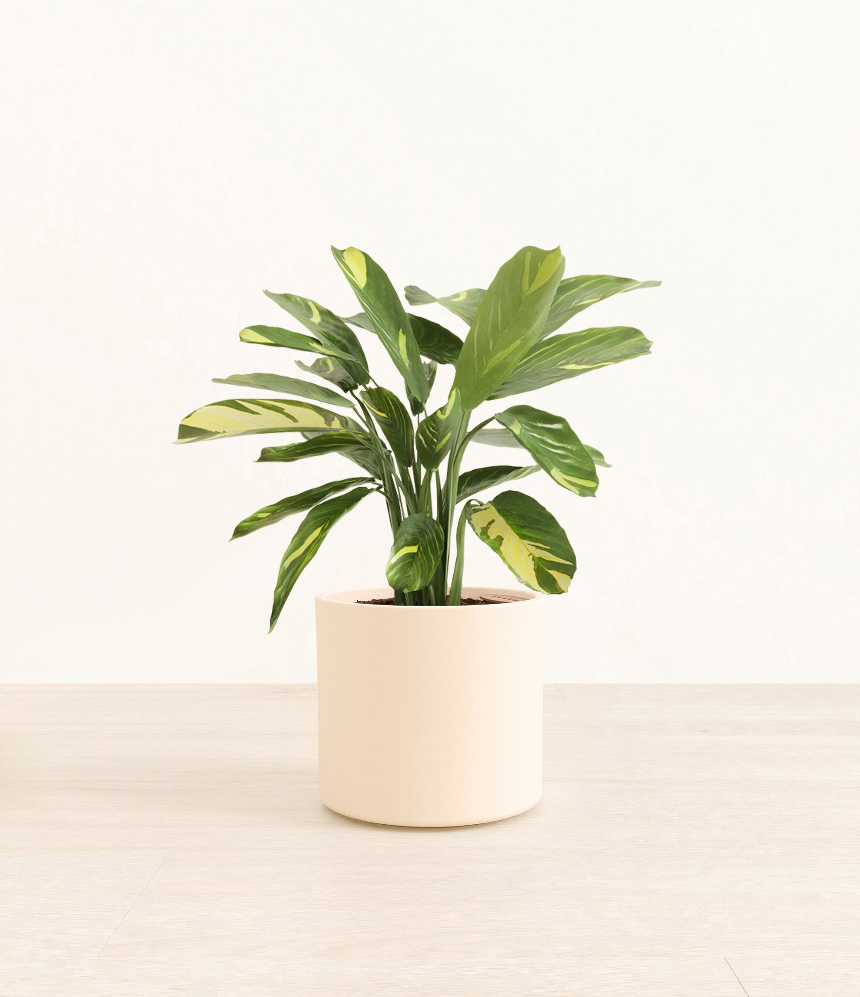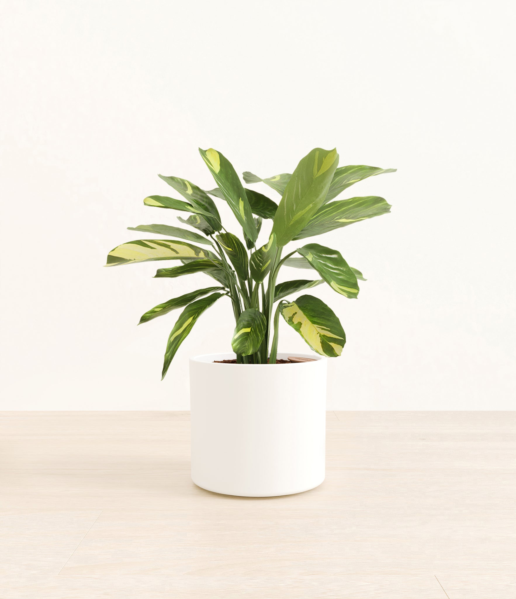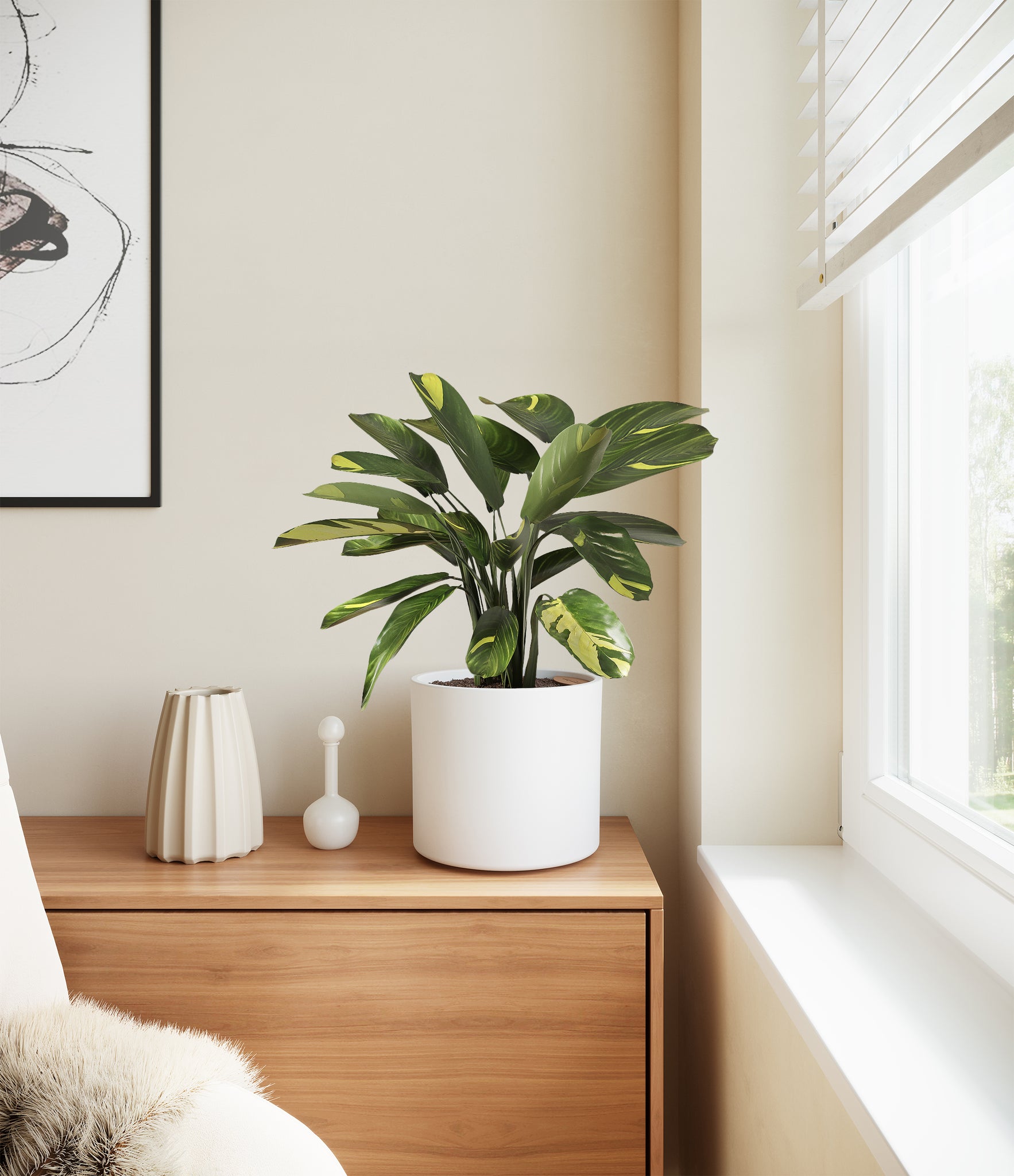Hailing from Brazil, the evergreen perennial Golden Mosaic is revered for the strikingly beautiful gold and cream variegations on its large, oval leaves. It belongs to the Marantaceae family, known as ‘Prayer Plants’, which much like humans and unlike most plants, have a wake-and-sleep cycle according to a circadian rhythm. This means the leaves move upwards during the night and downwards throughout the day in search of the sun.