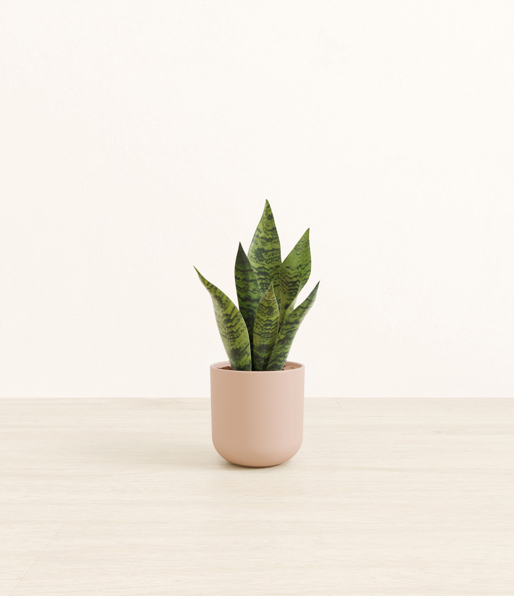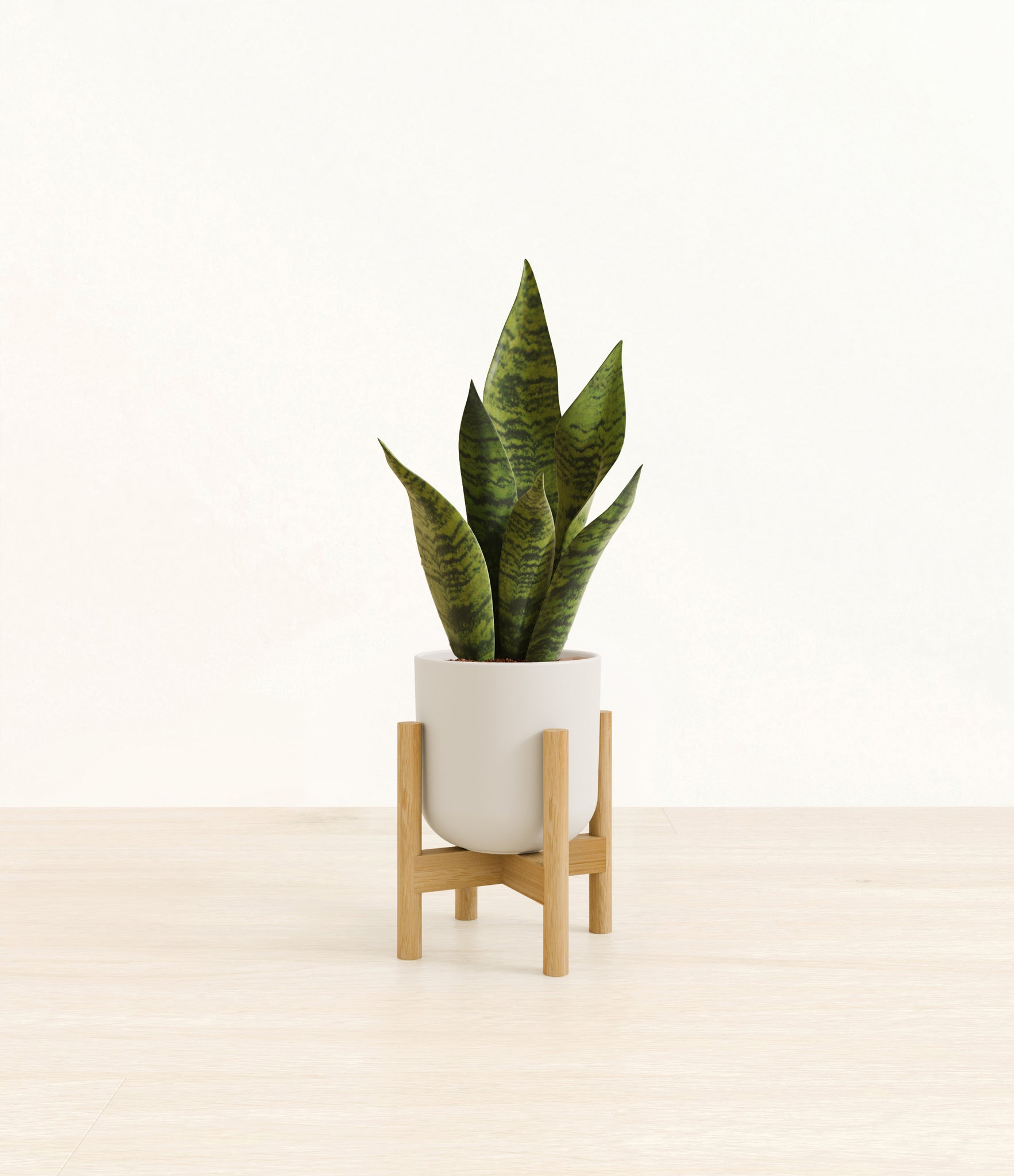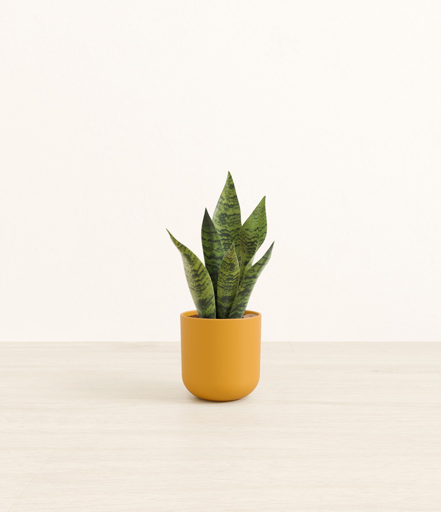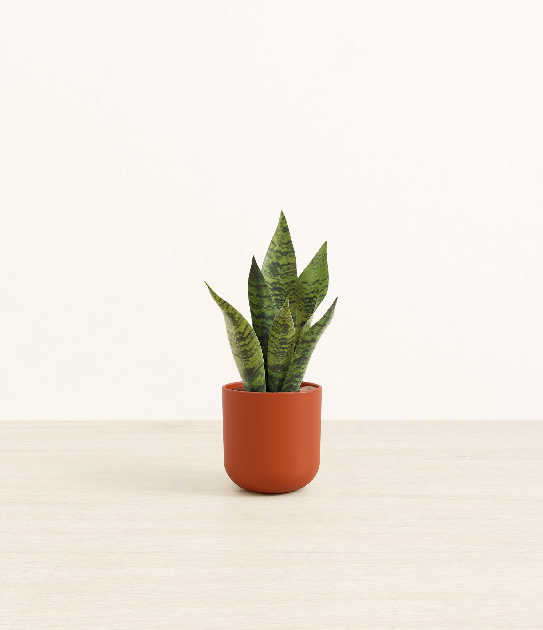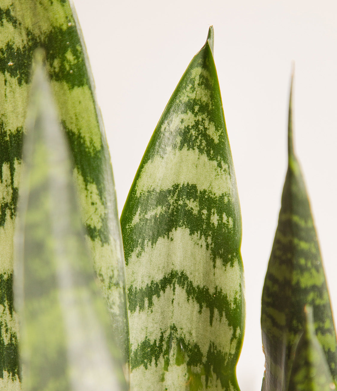 Originating from the desert lands of Africa, Asia, and Madagascar, Snake Plant is the most resilient of all houseplants and thrives under any condition - including the most forgetful of plant lovers. Its tall and narrow sword-shaped leaves wear mesmerizing swatches of silver and sage contrasting against a deep forest green, ever so elegantly stealing the show. Not only is it easy on the eyes, Green Snake Plant is a master air-purifier, removing allergens and toxins from the air we breathe, so keeping it goes a long way for our health.