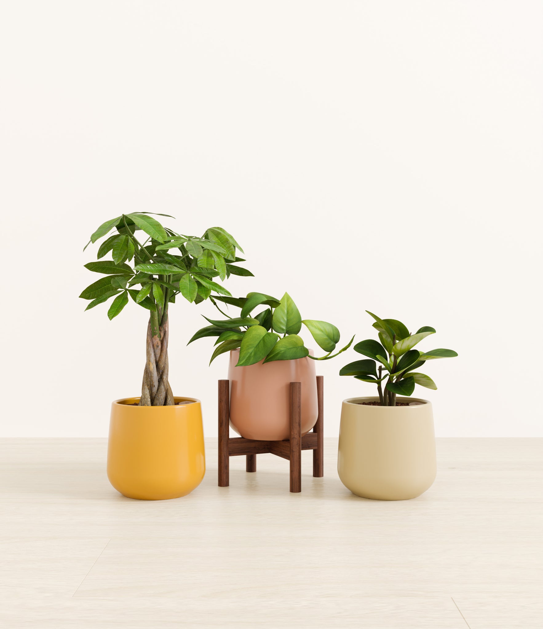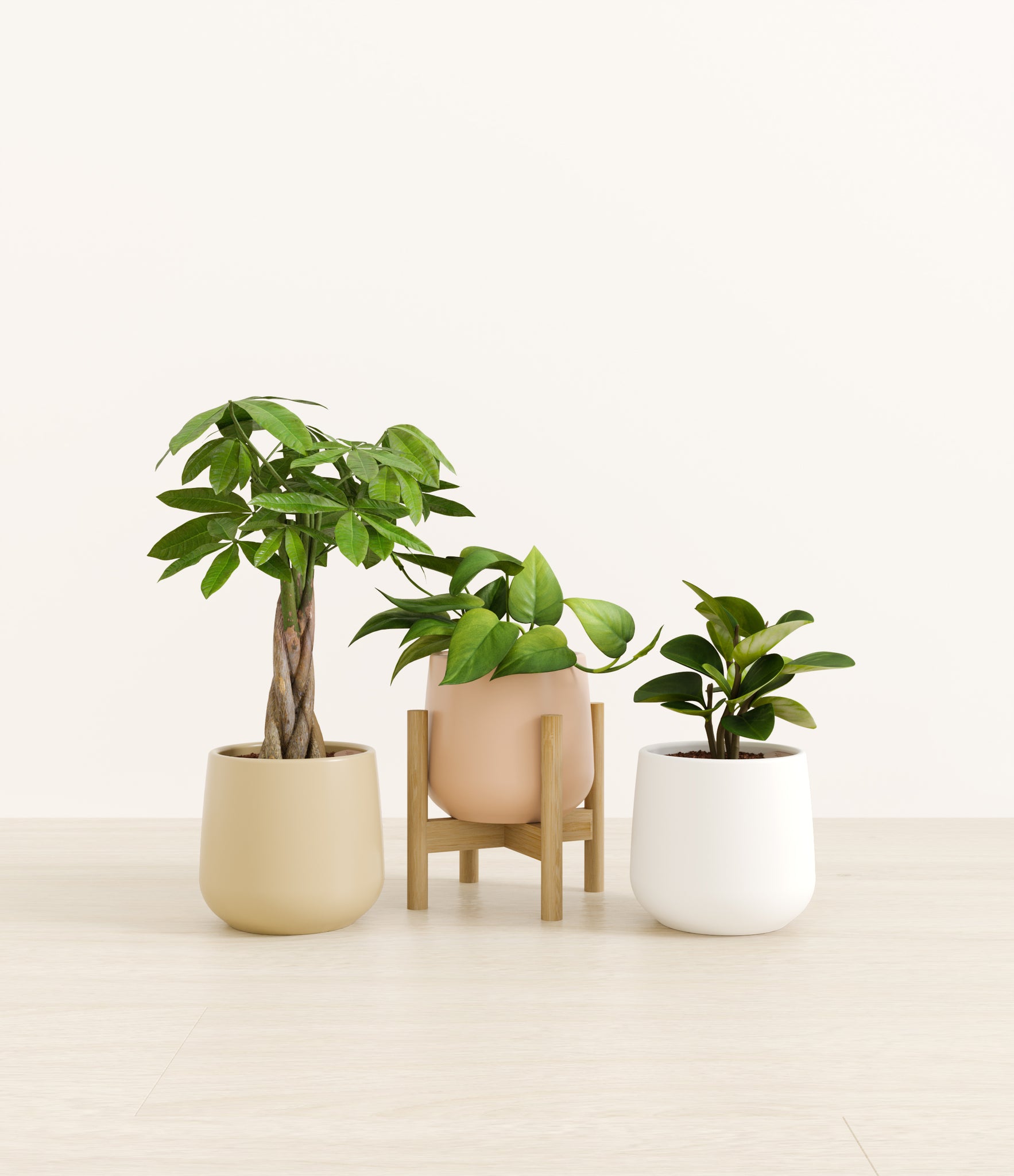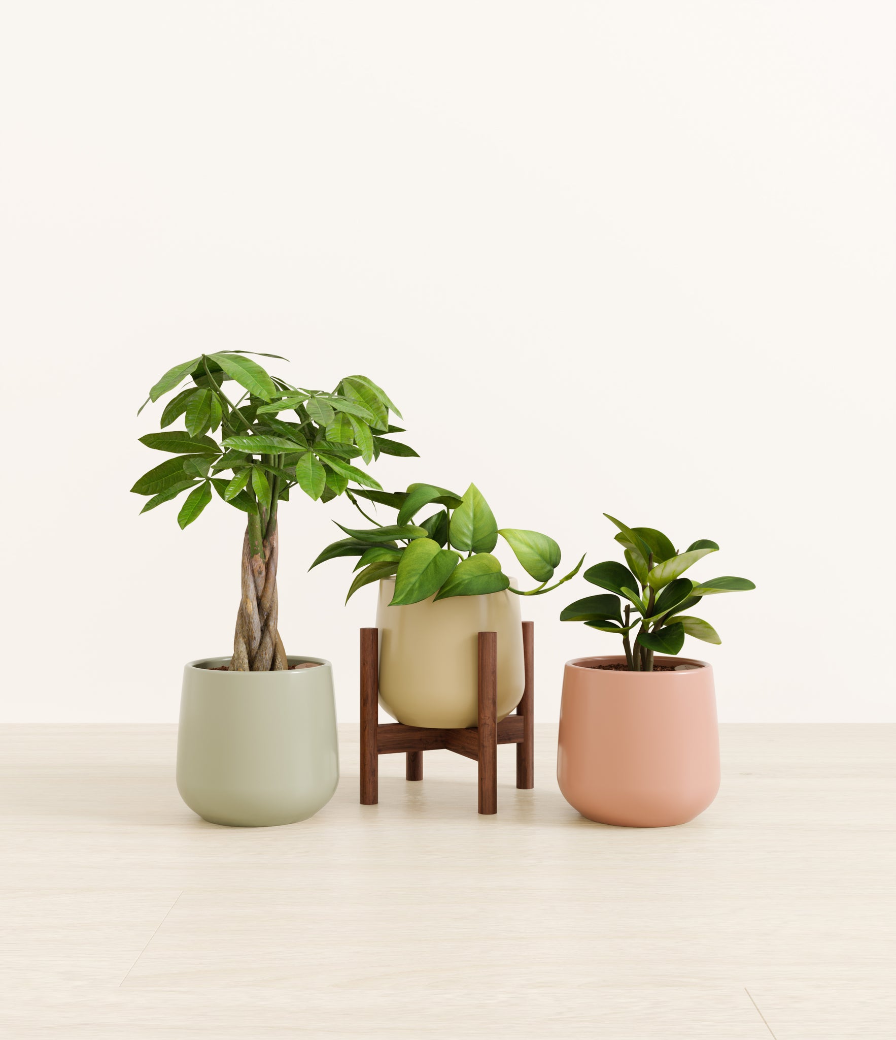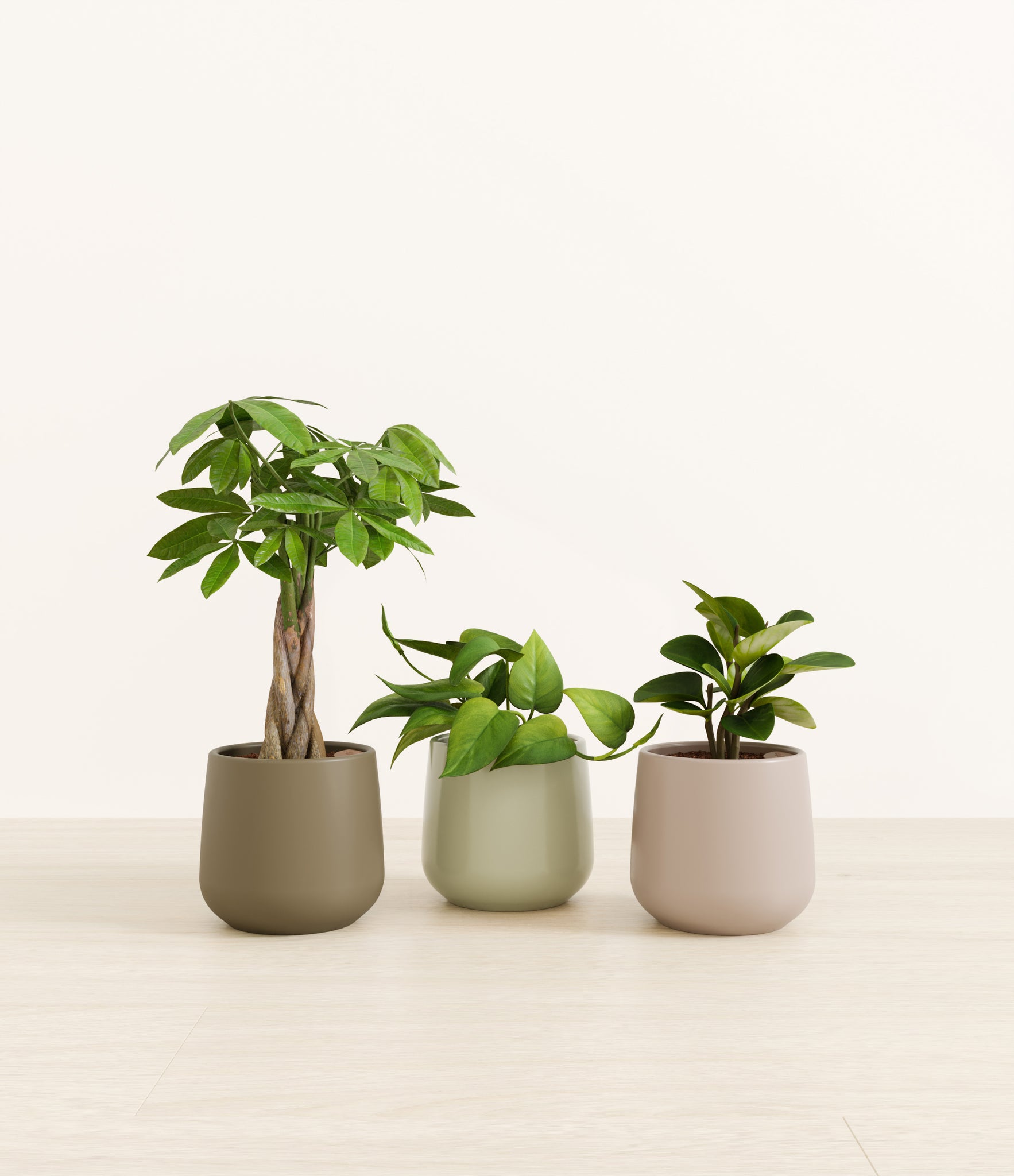 In this warm, inviting trio, you’ll receive three small houseplants that bring balance, texture, and vitality to any space. The set includes a small Money Tree, cherished for its braided trunk and lush green leaves that symbolize good fortune; a small Jade Pothos, admired for its cascading vines and rich, glossy foliage; and a small Peperomia, a compact beauty with textured leaves that add a soft touch of charm. Together, they create a harmonious display that radiates natural abundance and timeless appeal.