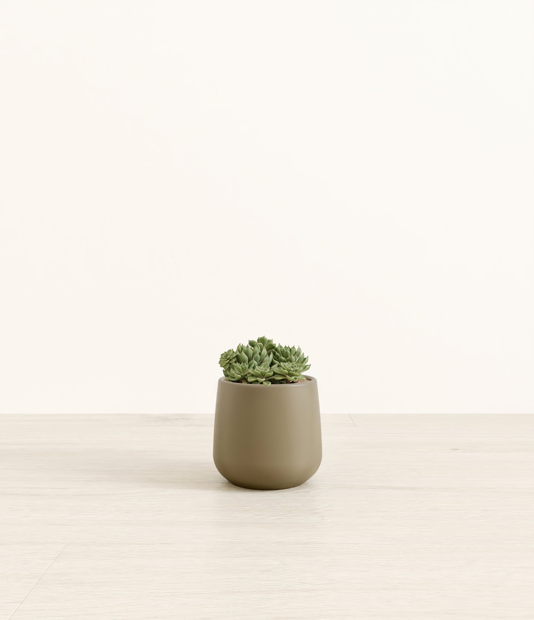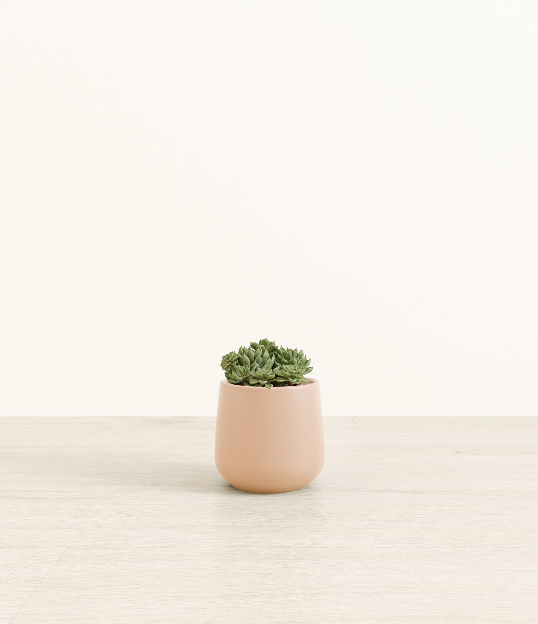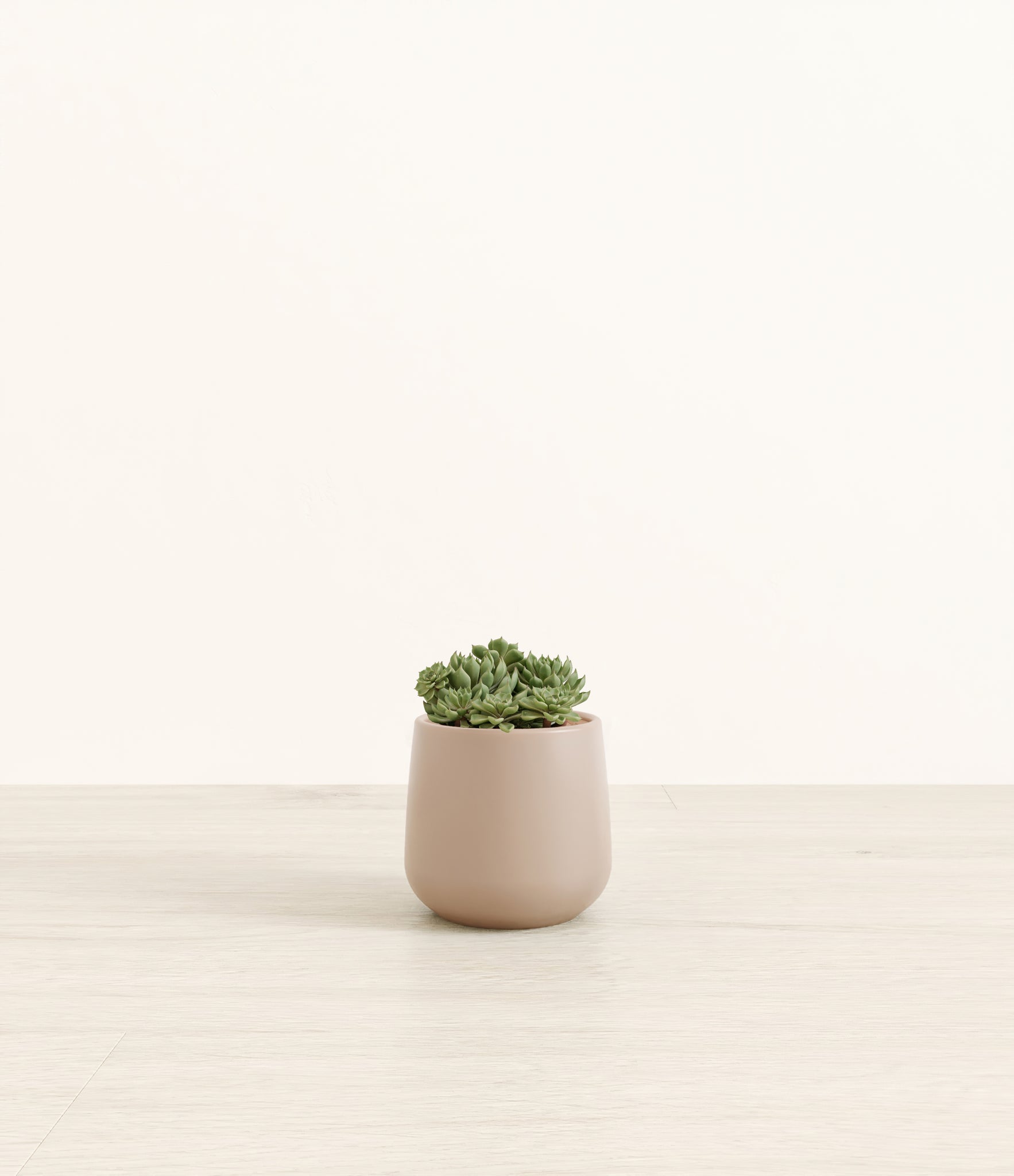 Native to the rocky mountains of southern Europe and North Africa, Hens and Chicks, also known as Sempervivum, is a charming succulent that symbolizes longevity, protection, and connection. Its name comes from the way the central “hen” produces baby rosettes, or “chicks,” that cluster around the mother plant, forming a living, growing family. The fleshy, geometric leaves come in a variety of colors ranging from dusty green to deep burgundy, and their rosette form makes them feel like miniature botanical sculptures. Hens and Chicks thrive on minimal care, making them perfect for busy plant lovers who want dependable charm with a touch of storybook whimsy.