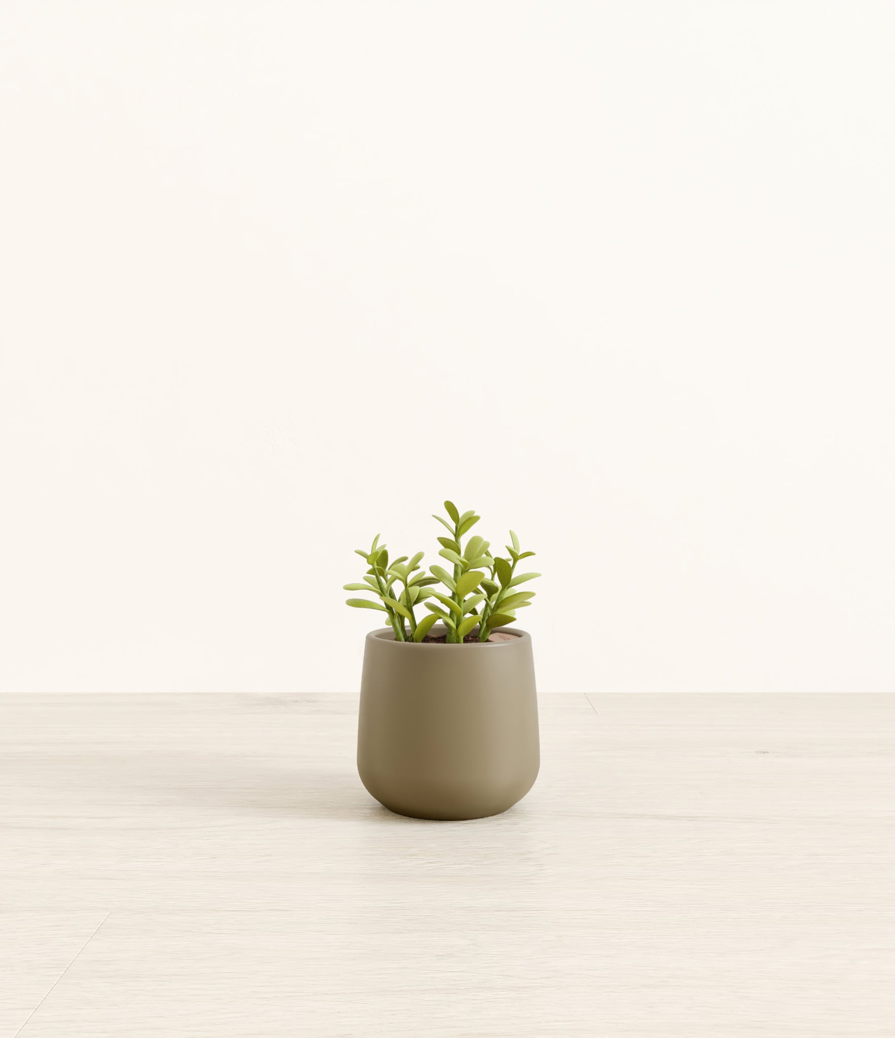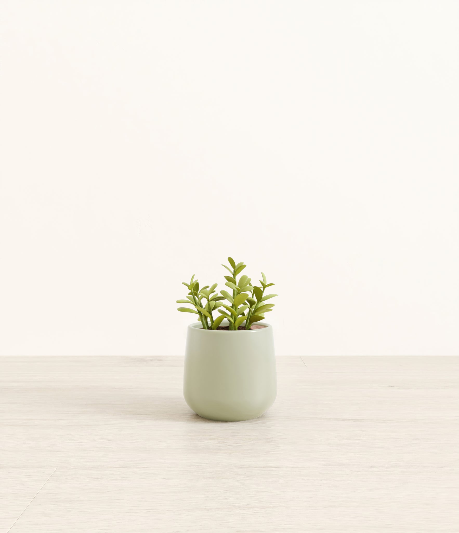 Native to the arid regions of South Africa and Mozambique, the Jade Plant, also known as Crassula ovata, is a timeless symbol of prosperity, luck, and renewal. With its plump, glossy, coin-shaped leaves and woody stems that thicken with age, the Jade Plant resembles a miniature tree and carries a quiet strength that deepens over time. In optimal conditions, mature plants may surprise with small, star-shaped white or pink blooms. Long adored in homes and offices alike, this resilient succulent has earned its reputation as a bringer of abundance and peace. Easy to care for and deeply meaningful, it’s the perfect companion for both new plant parents and long-time collectors.