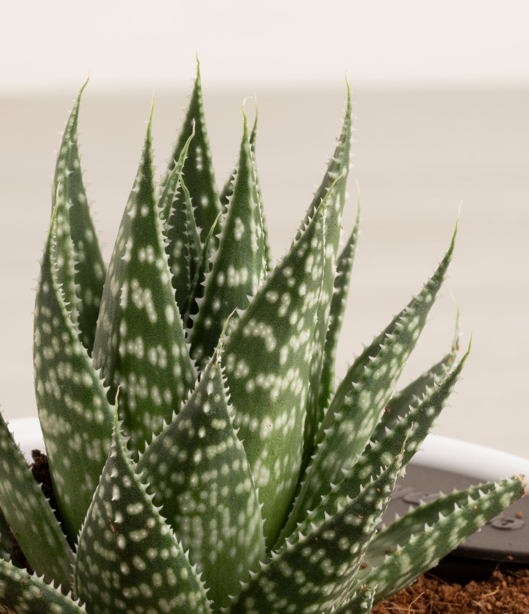 Native to the mountainous regions of South Africa and Lesotho, Lace Aloe, also known as Aristaloe aristata, is a compact succulent that combines wild texture with graceful detail. Its dark green, triangular leaves are lined with soft white cilia, forming a rosette that looks like it’s delicately laced by nature. Hardy and low-maintenance, Lace Aloe thrives in dry environments and can even produce vivid orange tubular blooms when mature. Unlike many aloes, it prefers bright indirect light and tolerates cooler temperatures, making it a versatile choice for indoor life. Symbolizing healing and protection, this little aloe brings both resilience and refinement to your space.