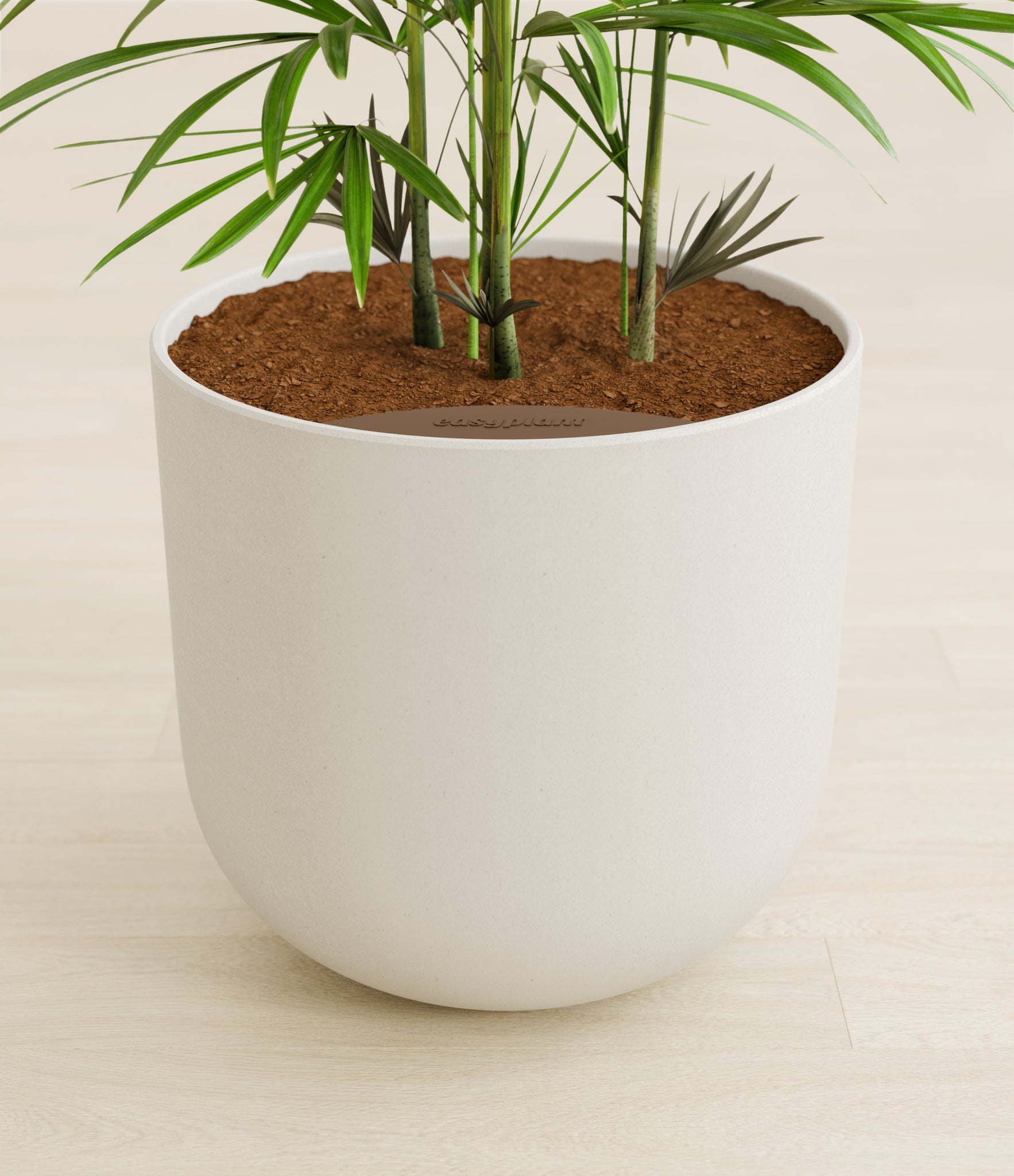 Native to the lush, shaded forests of Asia, the Lady Palm (Rhapis excelsa) is distinguished by its broad, fan-shaped foliage. Celebrated for its adaptability to various indoor environments and its exceptional air-purifying qualities, this palm introduces natural sophistication to home and office settings. Its broad, fan-shaped leaves elegantly adapt to any home or office settings. Each frond is divided into wide, glossy segments that emerge from multiple sturdy canes, creating a dense, lush appearance. This palm not only enhances indoor air quality but also adds a structural element to its surroundings, making it a favored plant among those who appreciate both its beauty and its functional benefits.