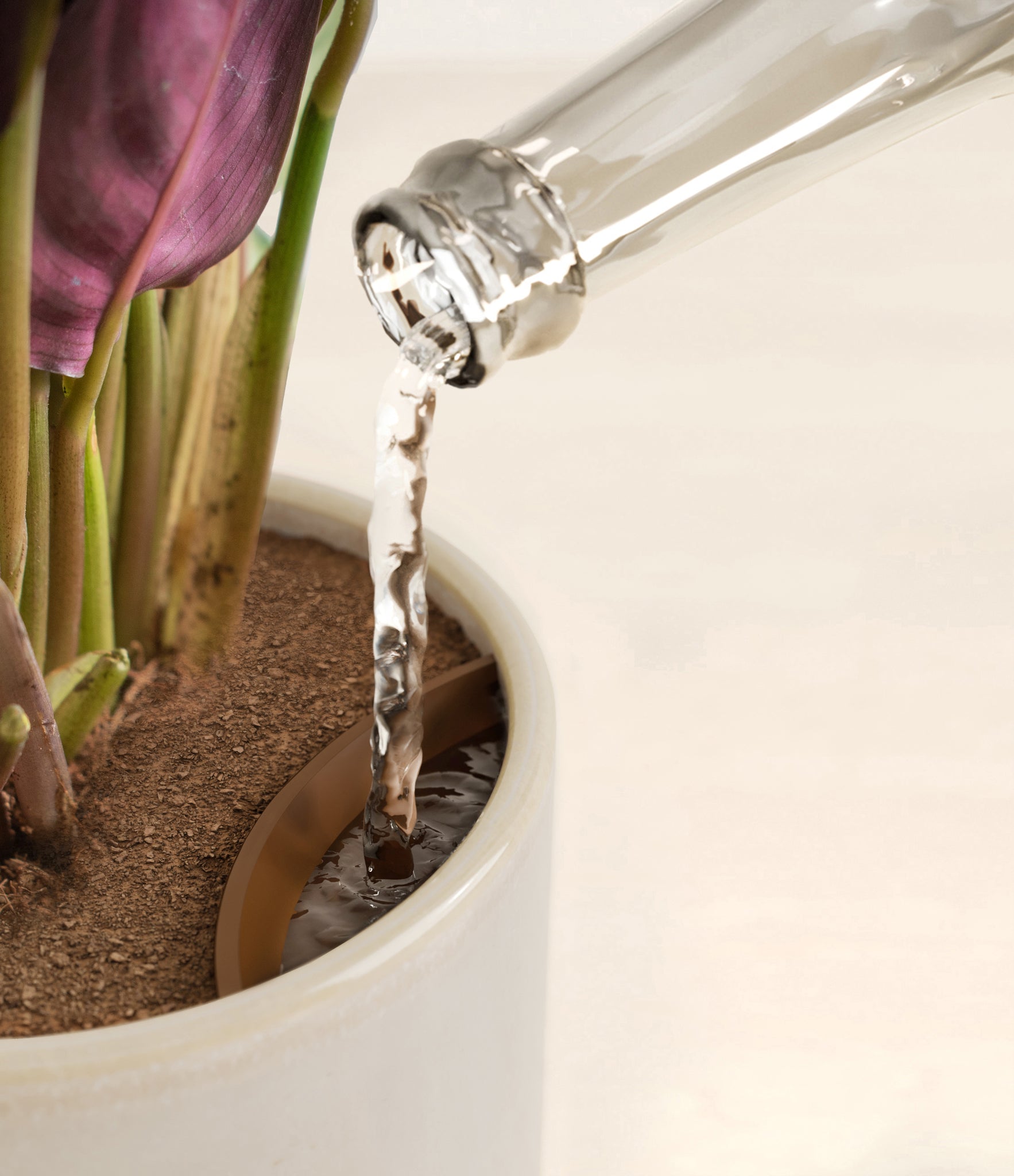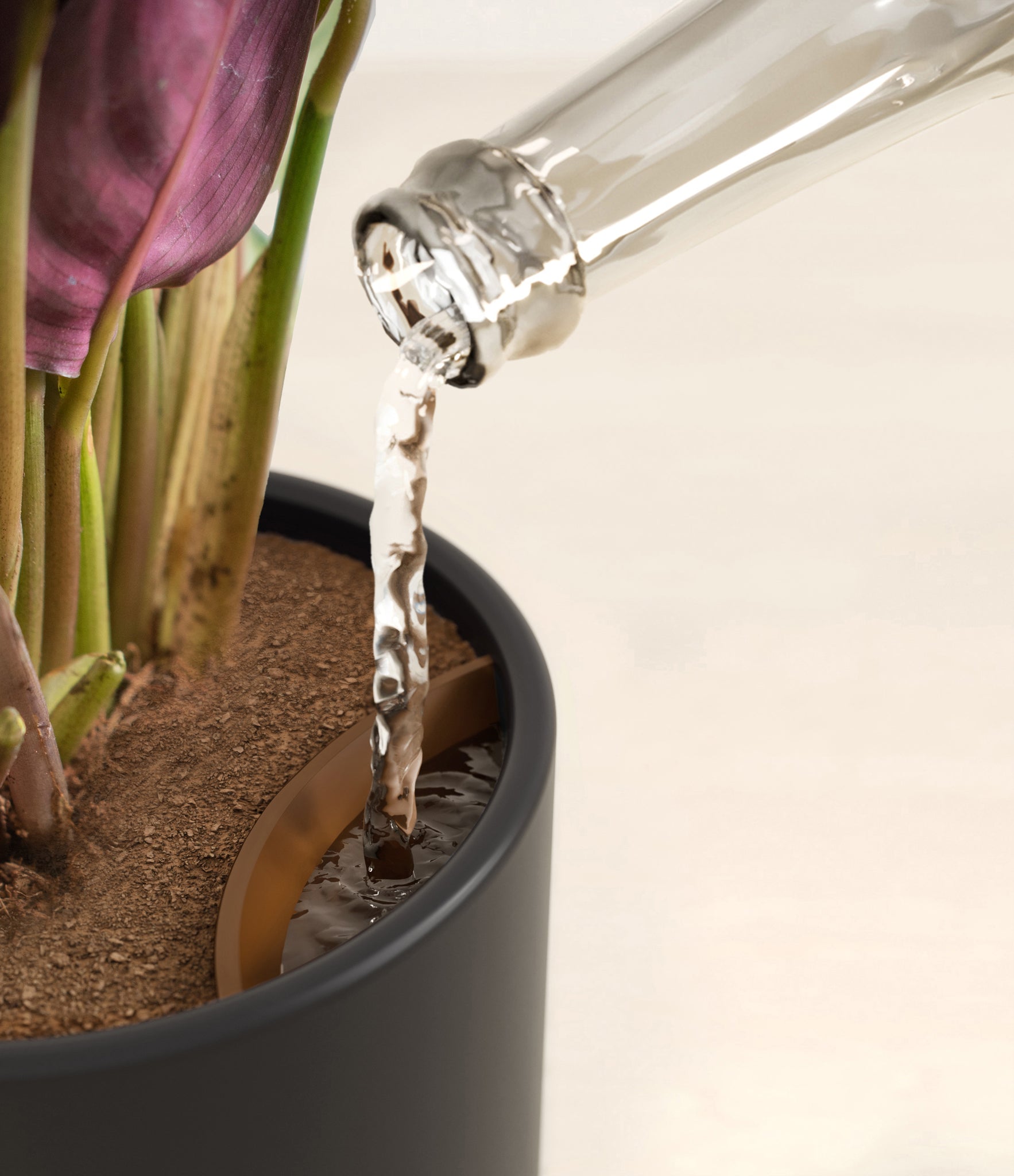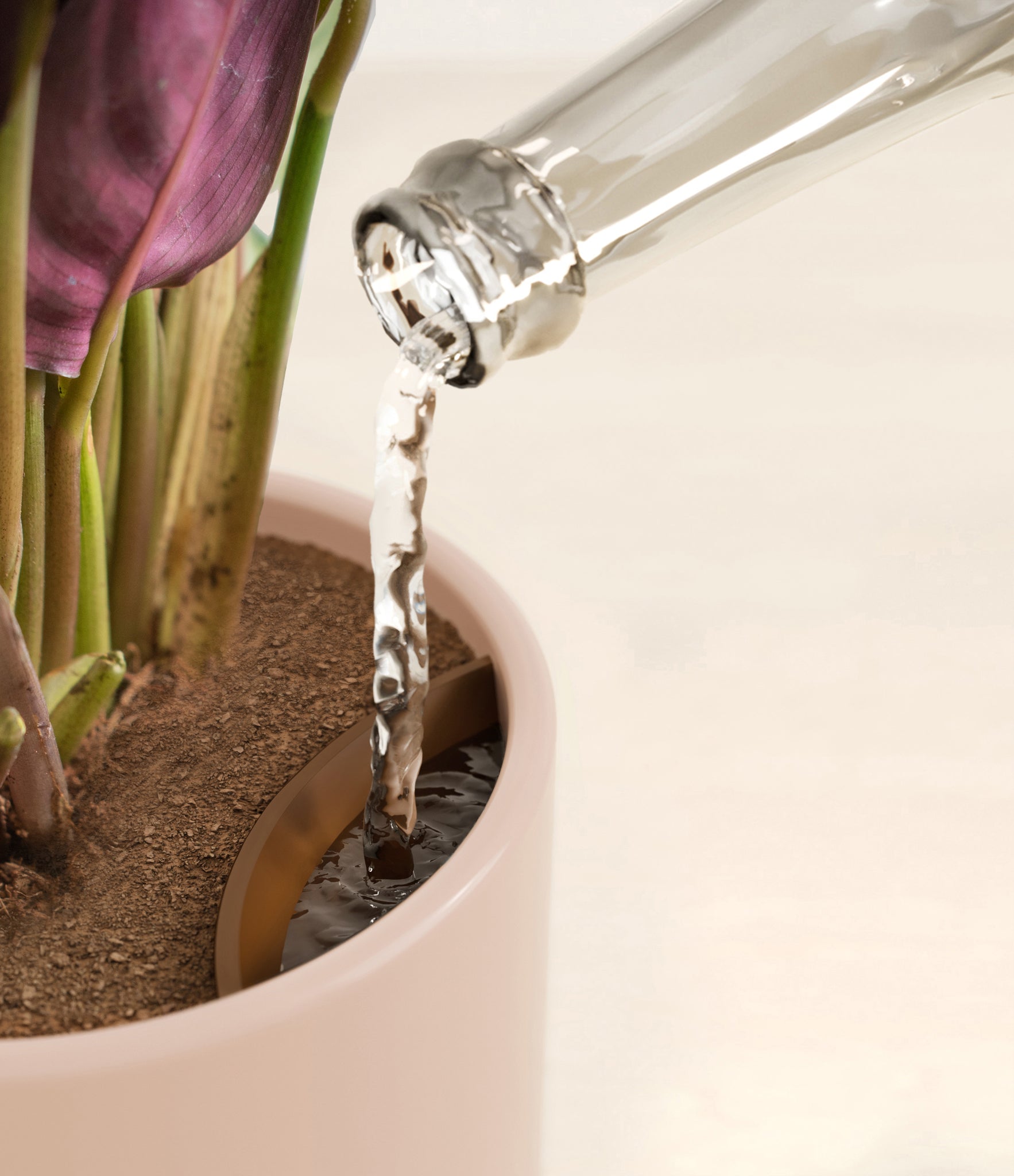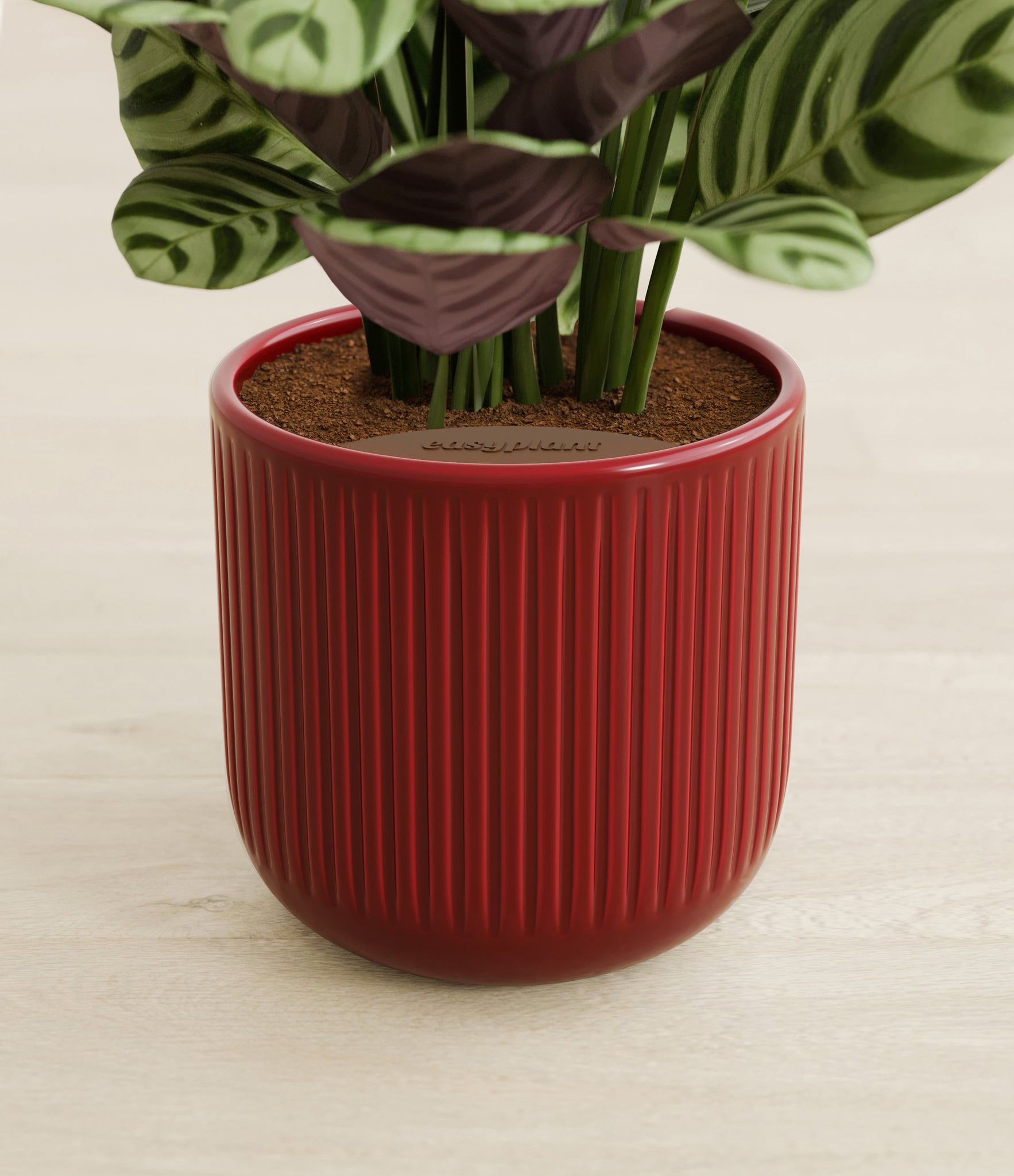 Native to the Amazonian jungles of South America, Calathea Marxii wears large emblem-shaped leaves, with bold strokes of forest green atop a deep burgundy underside. It belongs to the Marantaceae family, known as ‘Prayer Plants’, which much like humans and unlike most plants, have a wake-and-sleep cycle according to a circadian rhythm. This means the leaves move upwards during the night and downwards throughout the day in search of the sun.
