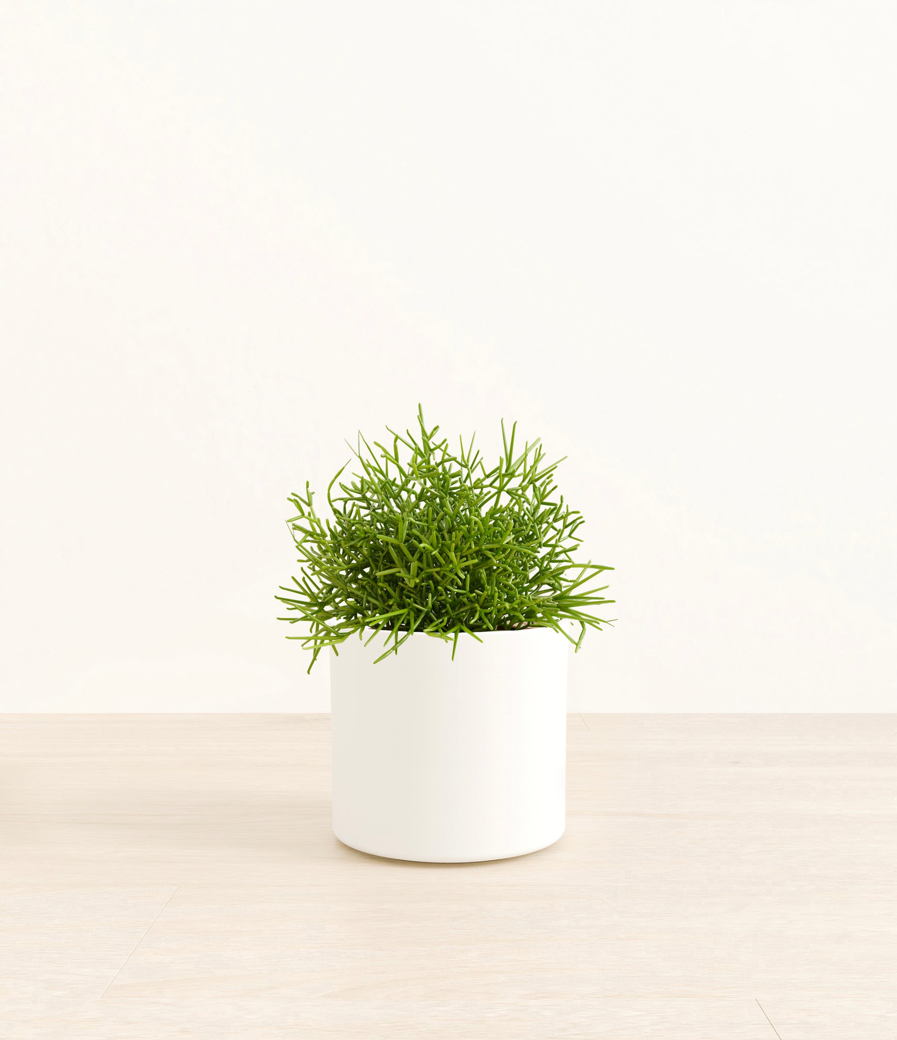 A magnificent plant with an extraordinary leaf structure, the Mistletoe Cactus is admired for its bright green pencil-thin foliage that effortlessly trails. Native to tropical and subtropical regions in South America, Central America, and Africa, the Mistletoe Cactus thrives in warm, humid environments, so be sure to keep it somewhere cozy to make it feel at home.