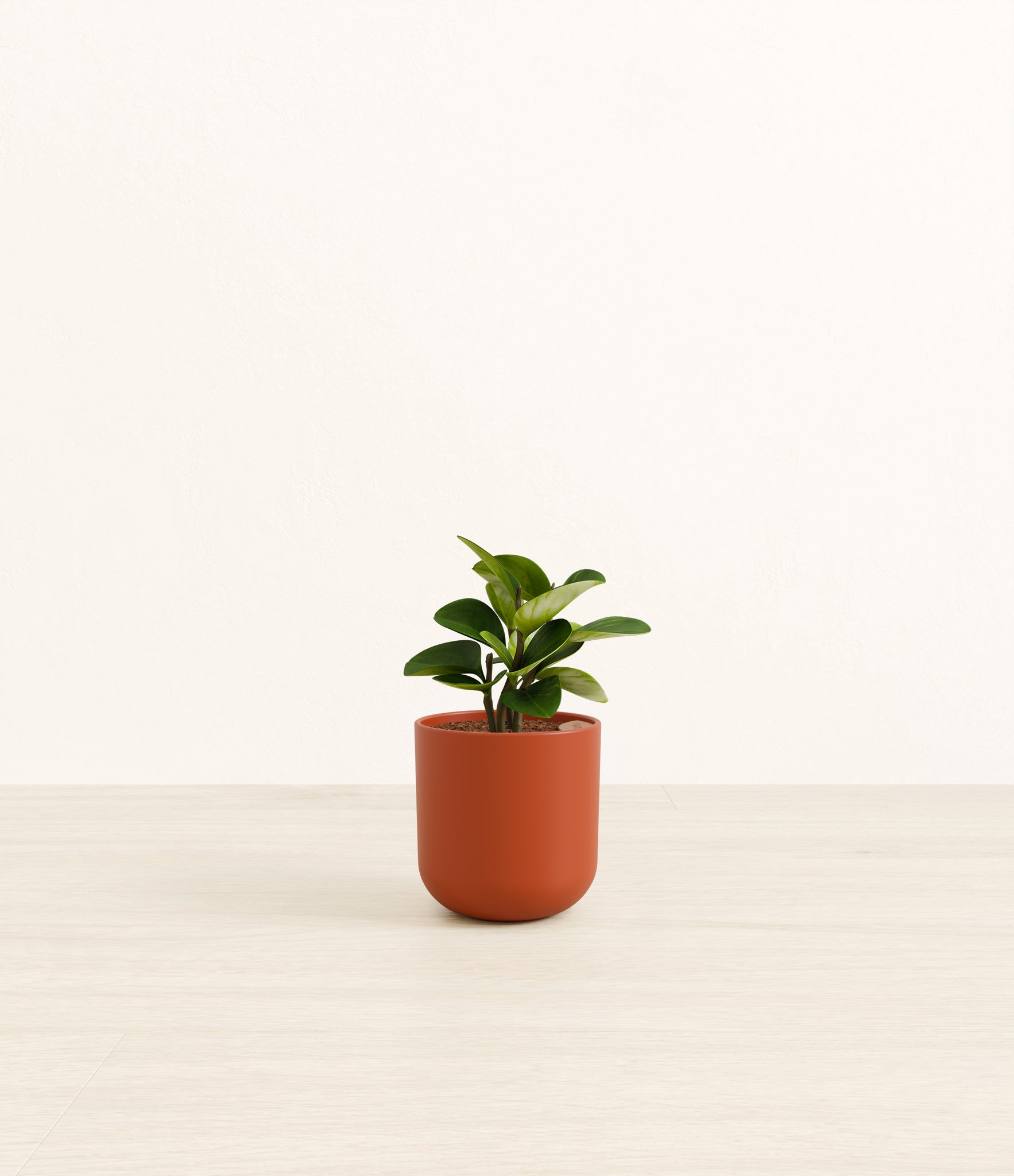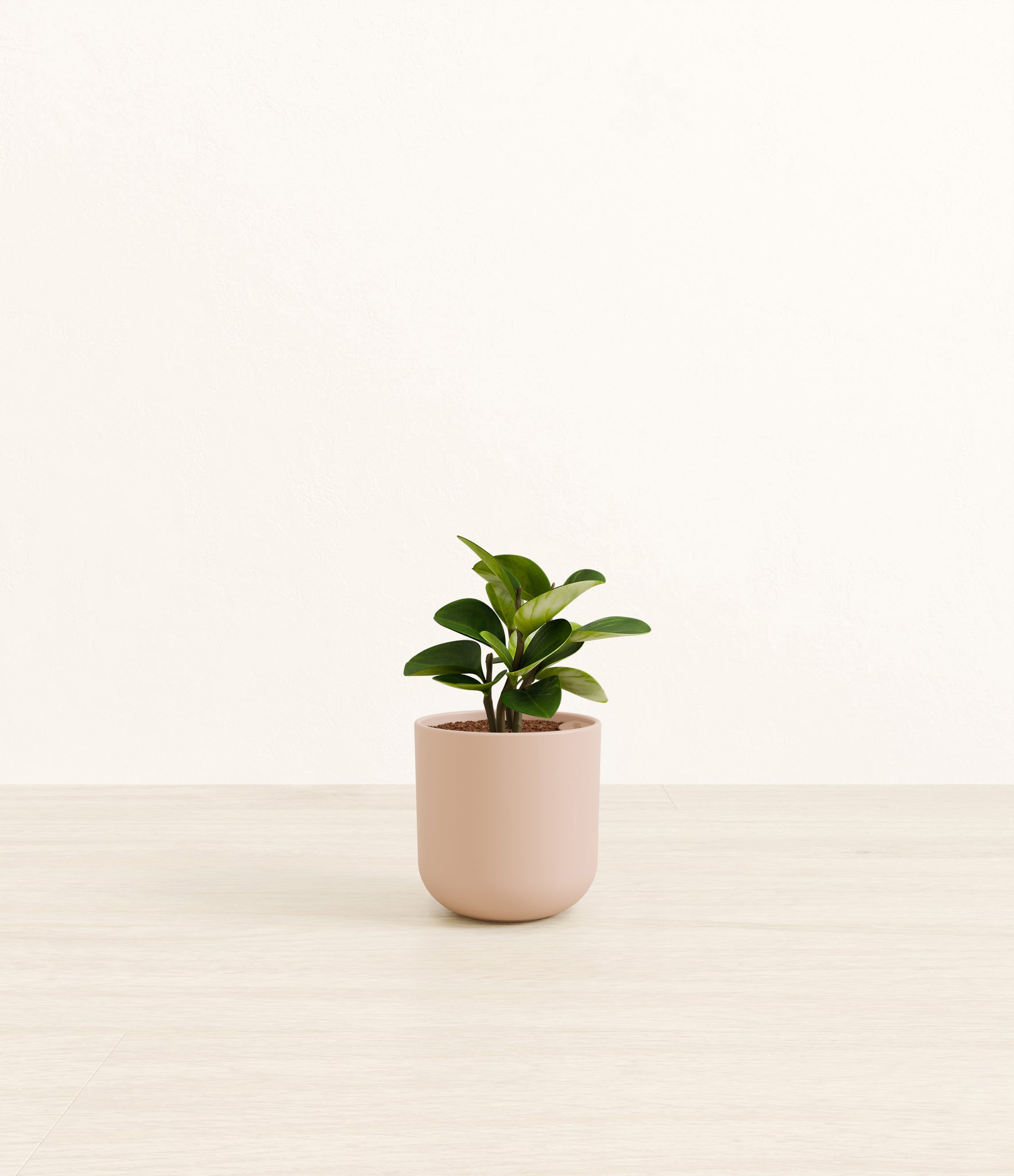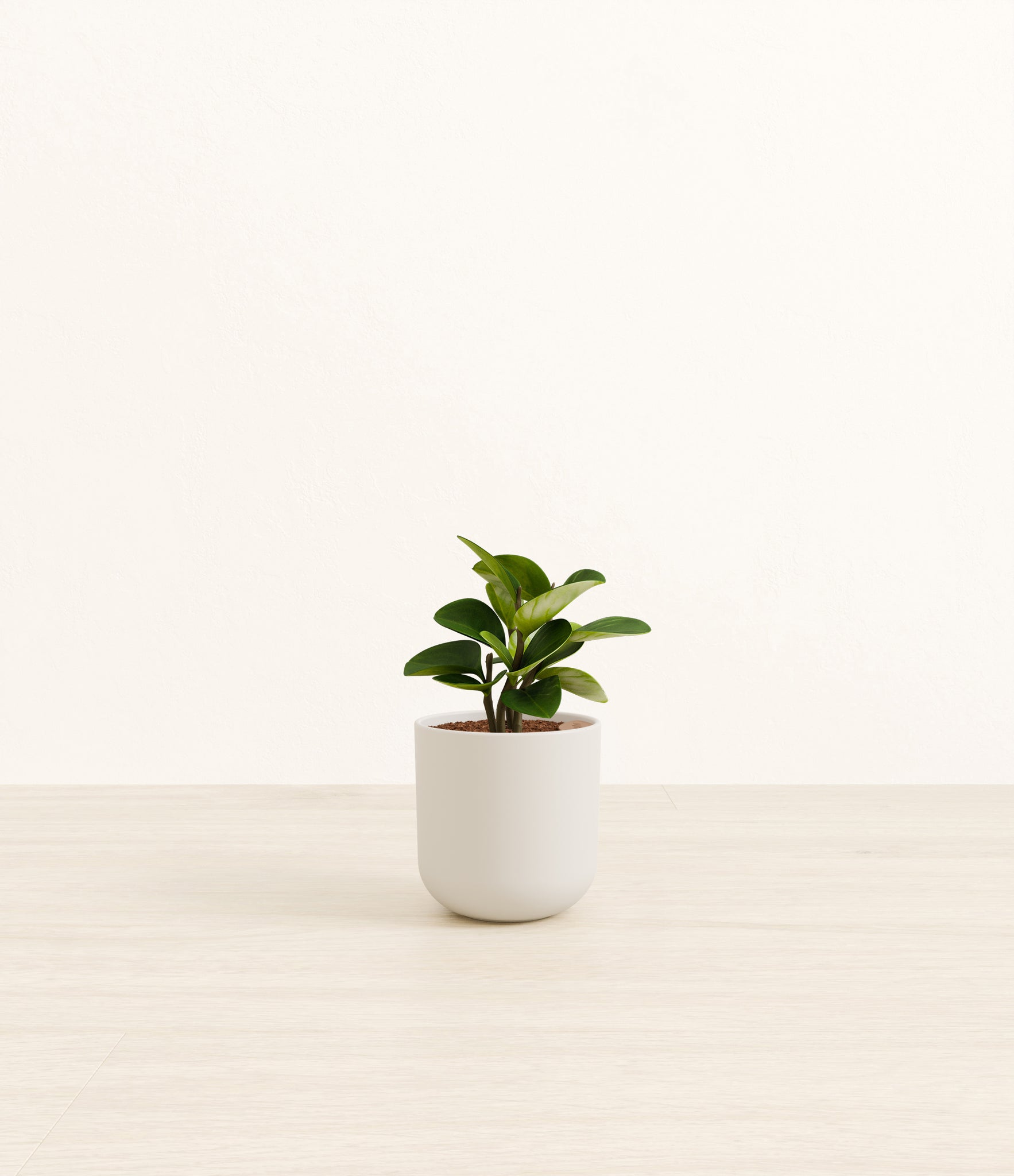 Peperomia is a jovial master of adaptation, wearing large and rounded leaves colored in a forest green. In its native home of the South American rainforests, Peperomia is an epiphyte - growing on the trunks of trees. Used to thriving under any condition, it learned to store water and naturally adapt to its environment, making it an ideal houseplant for novice and experienced plant parents alike. Peperomia grows best in a well-lit space, and can adapt to spaces without natural light as well. Avoid placing it in direct sunlight.