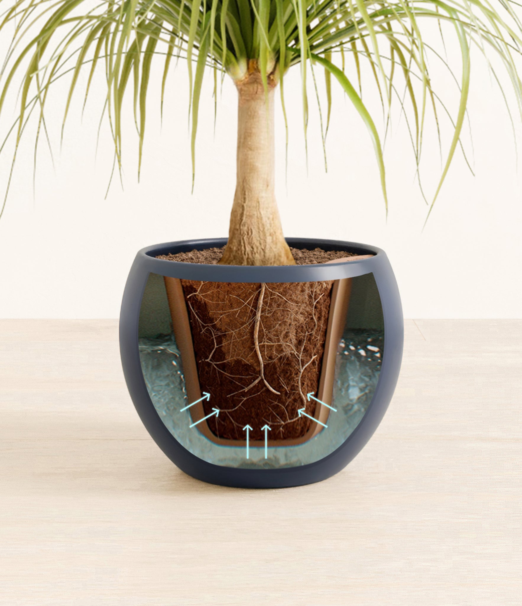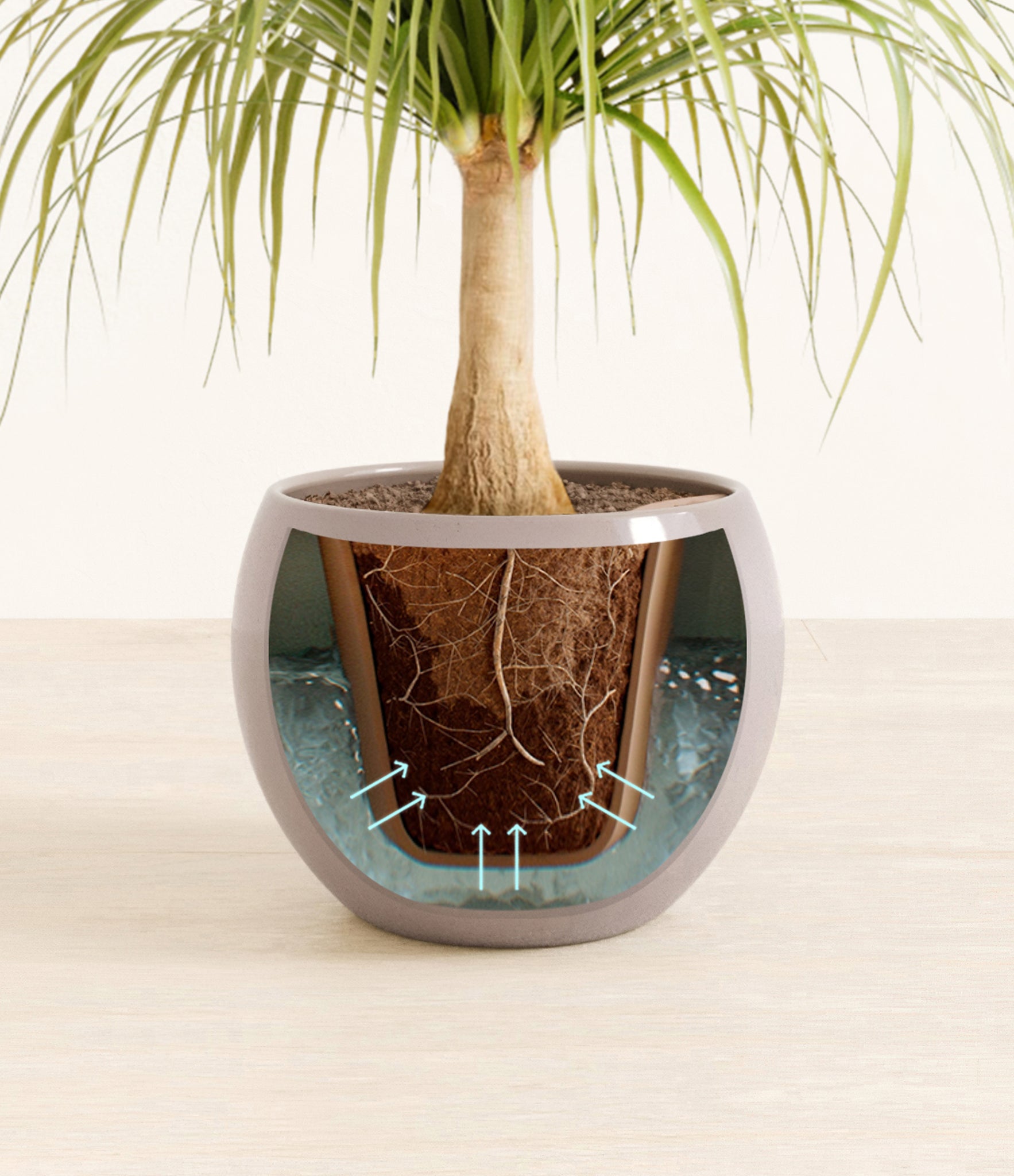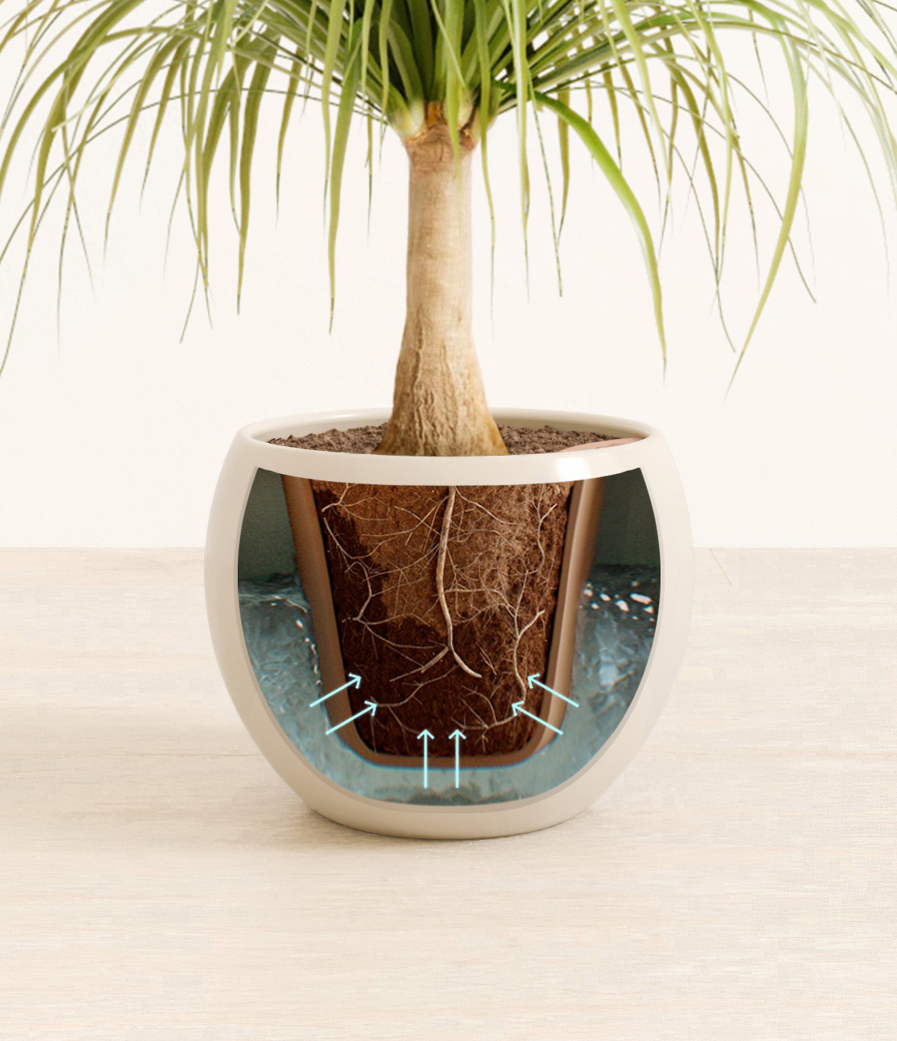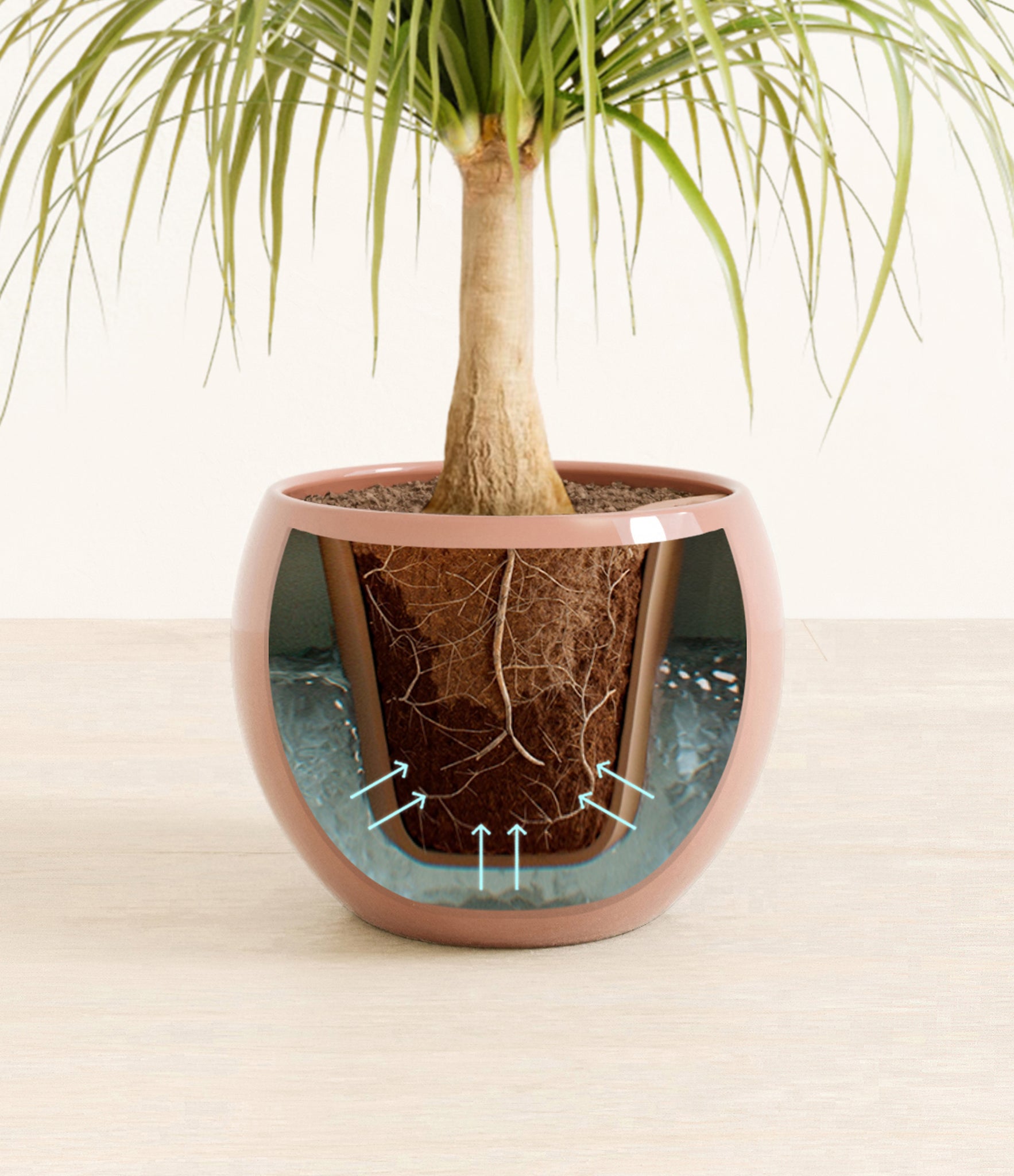 Native to Mexico, the desert-dwelling Ponytail Palm is gentle and beautiful as it is resilient and easy to keep around. Neither a palm nor a tree, Ponytail Palm is actually a succulent. With its gracefully flowing mane of leaves curving down its hardy trunk, this sun-lover has learned to store water within its base and roots and miraculously thrive under any condition.