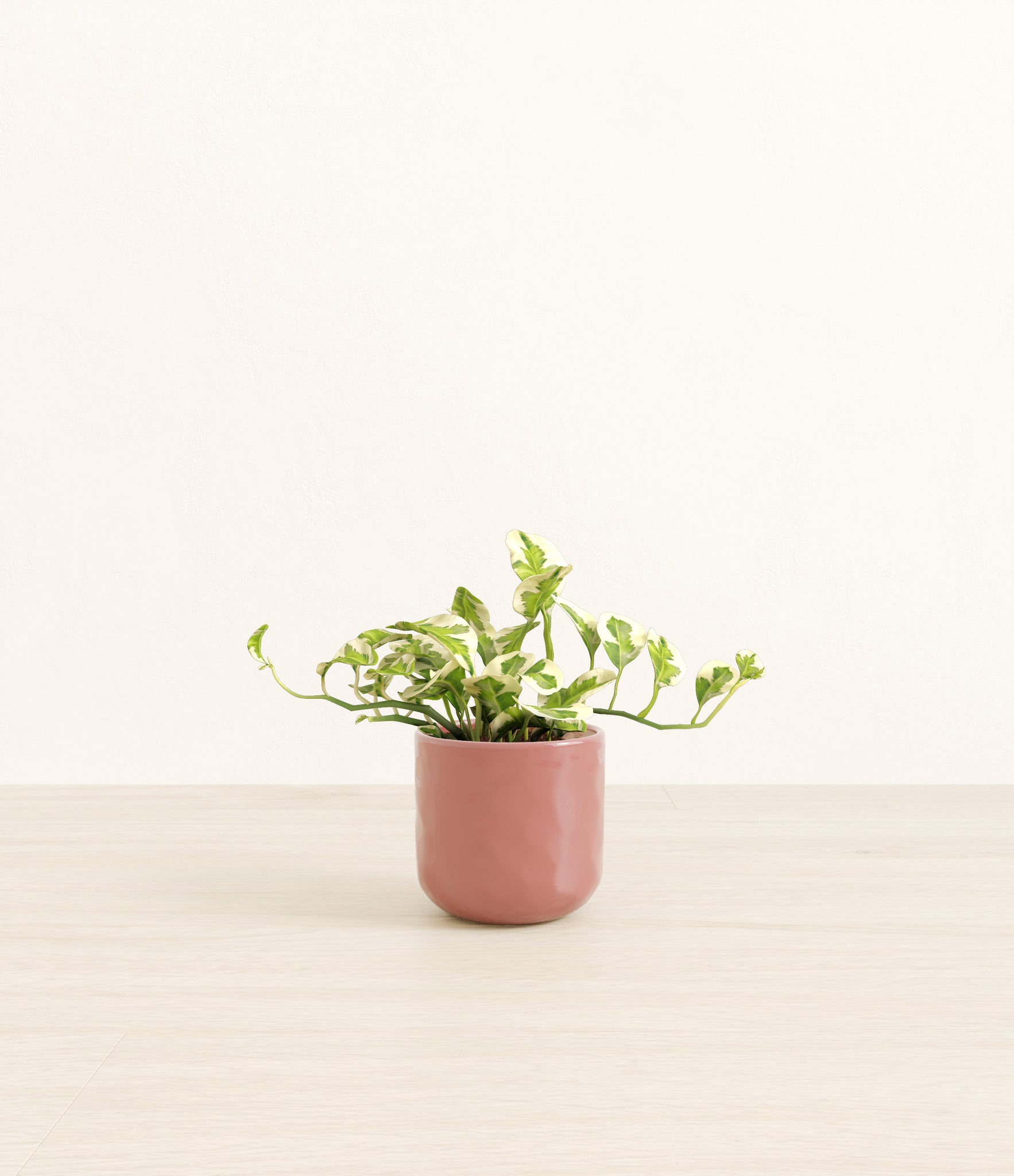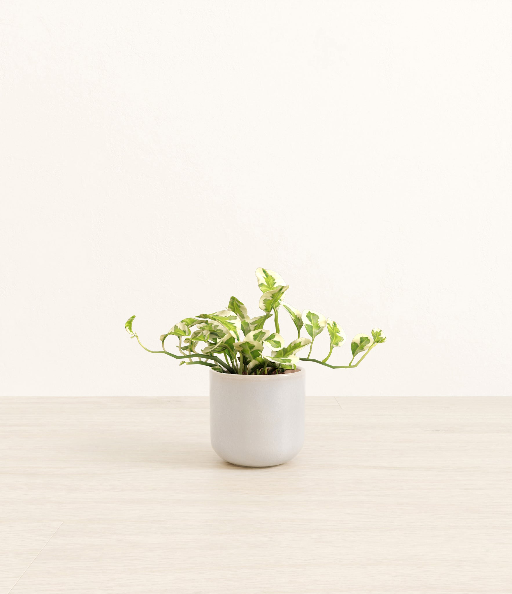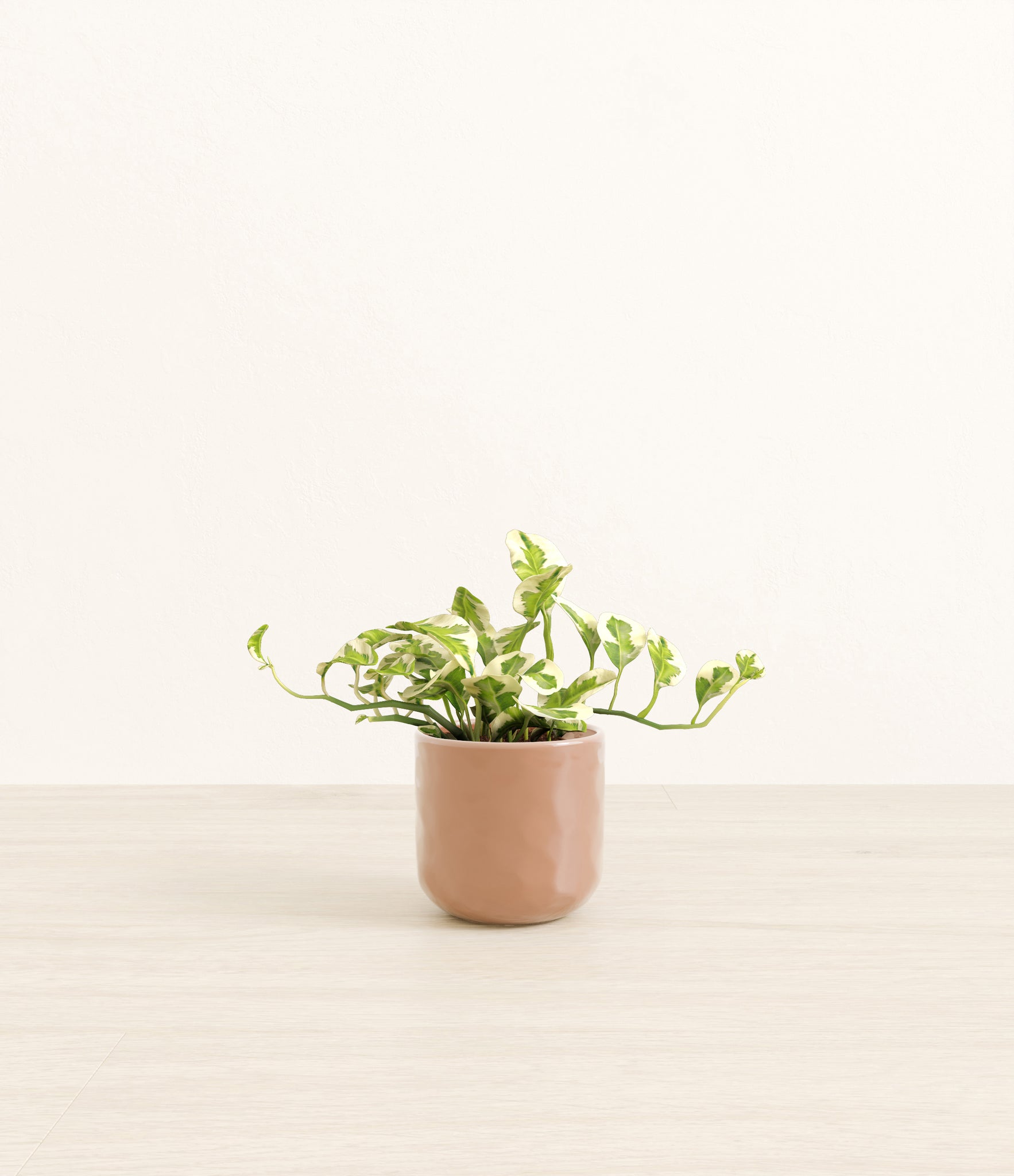 Native to the Solomon Islands, the Pothos N'Joy is a variegated beauty that adds a fresh, lively feel to any space. Its heart-shaped leaves are adorned with striking patterns of cream and green, creating an irresistible visual contrast. As a low-maintenance, adaptable plant, the Pothos N'Joy is perfect for both experienced plant enthusiasts and newcomers. Its trailing growth habit makes it perfect for hanging or draping, effortlessly infusing any room with a touch of verdant elegance.