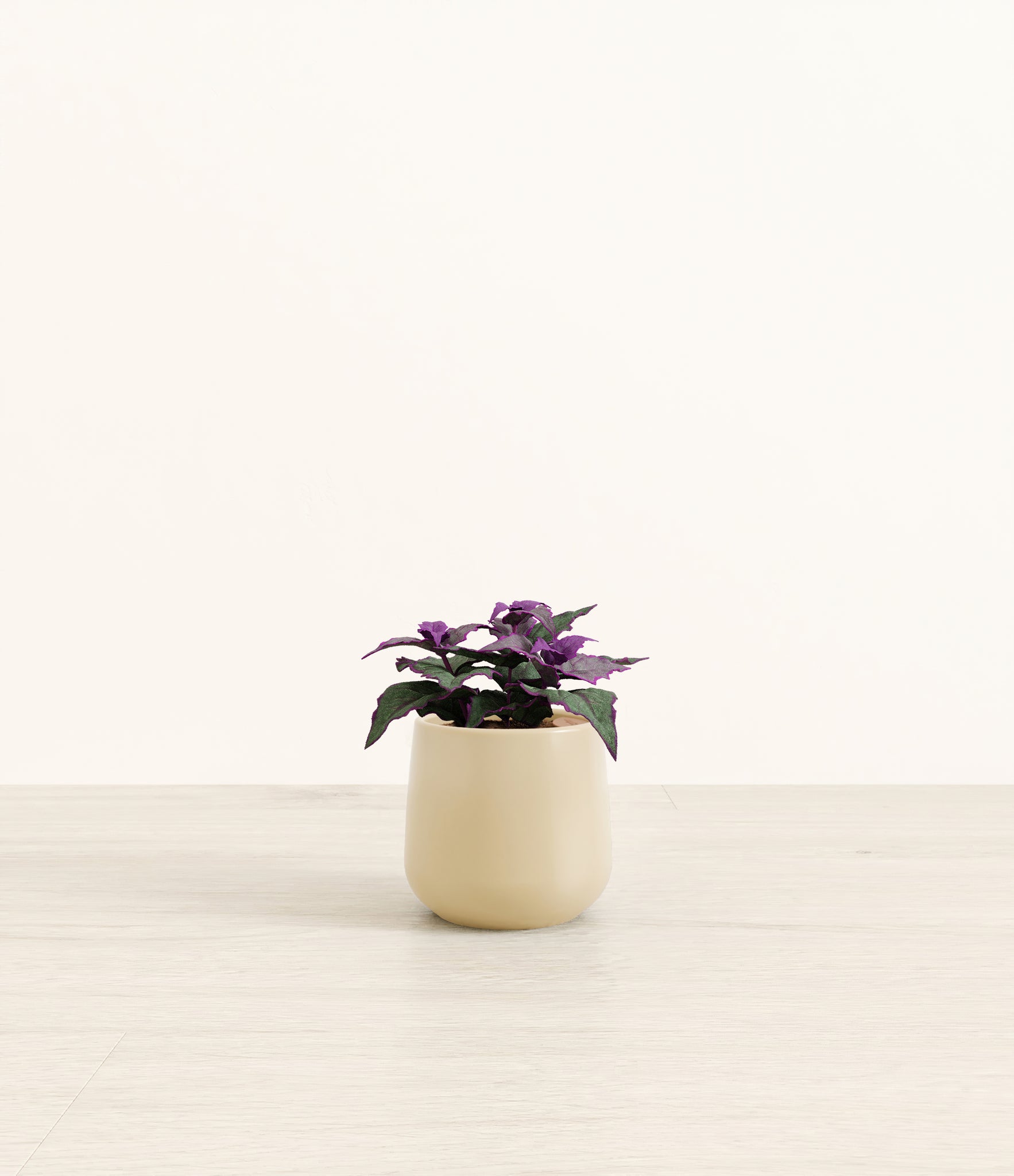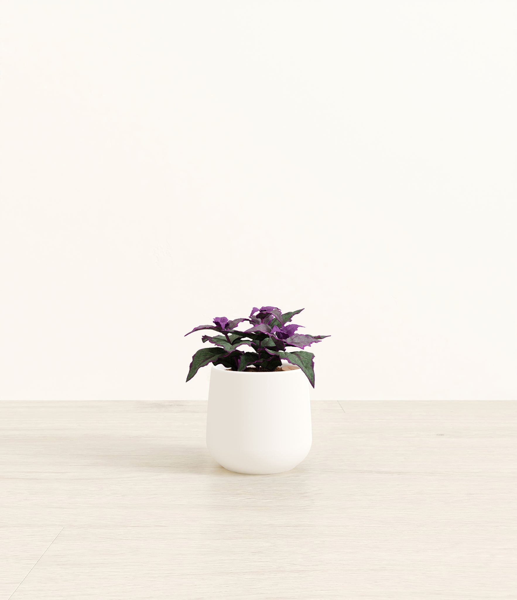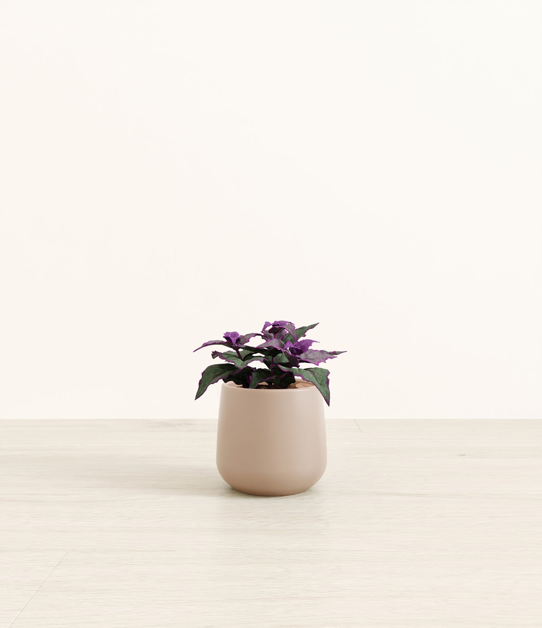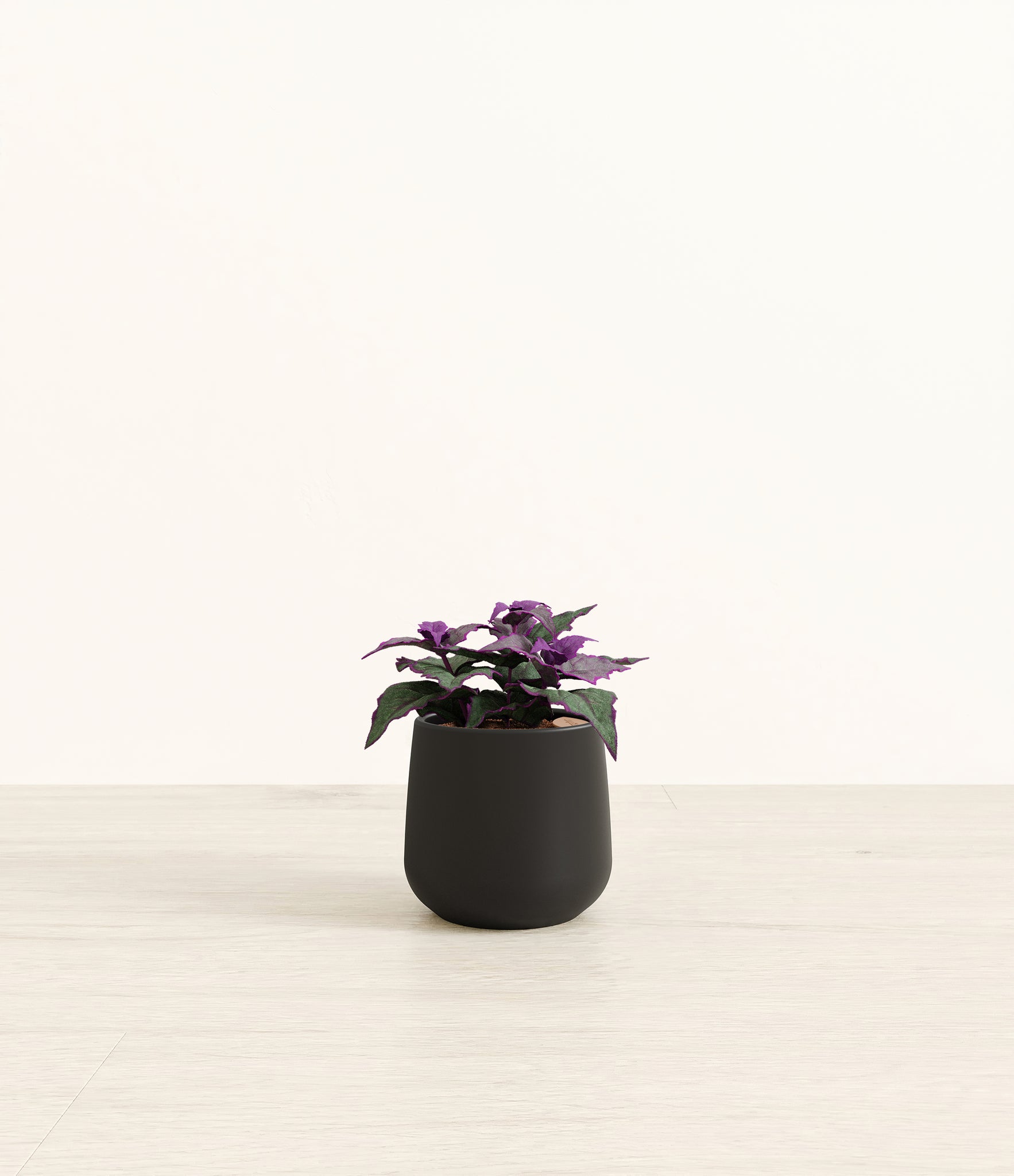 Native to the tropical regions of Java, the Purple Passion Plant, or Gynura aurantiaca, is celebrated for its unique, velvety leaves that shimmer with a deep purple hue. Known for its striking appearance, this plant adds a touch of the exotic to any indoor setting. The leaves are covered in tiny hairs that give them a surreal, iridescent look, making it a visual spectacle. While its deep hues remain a focal point, slight variations in color may occur as the plant matures, offering a continuous display of its passionate purple throughout the year.
