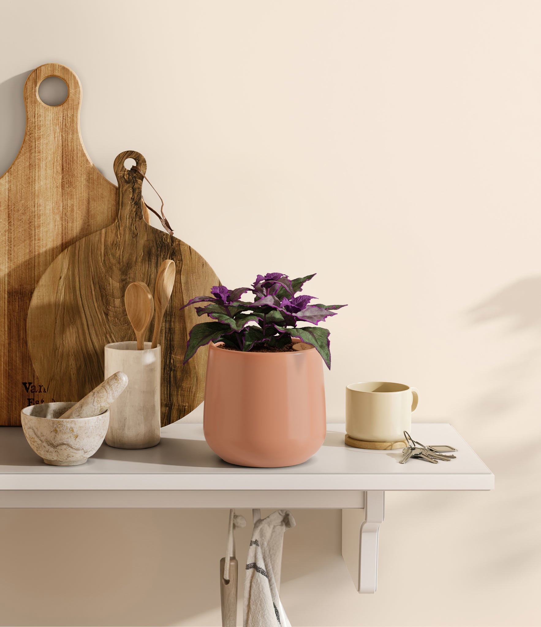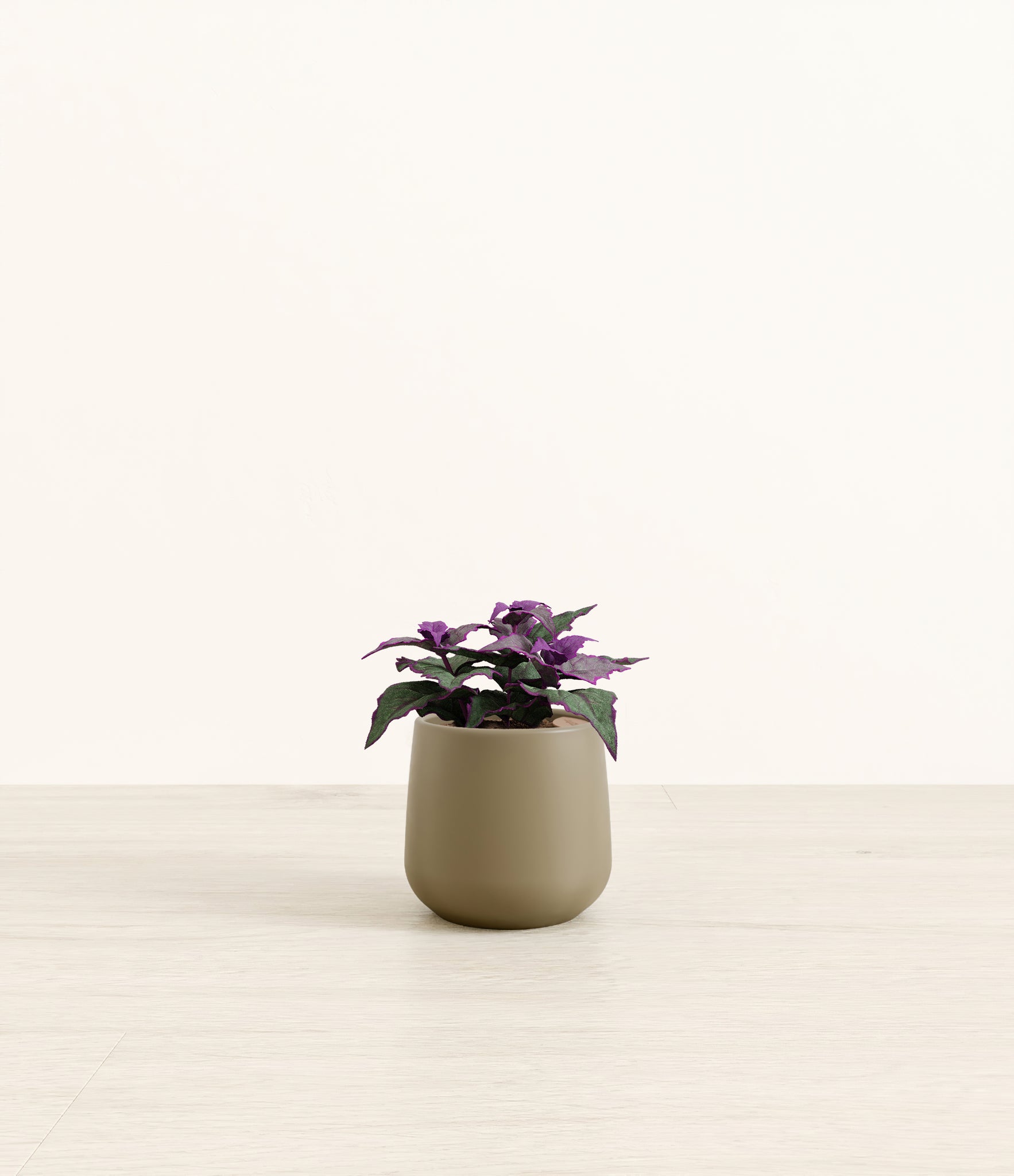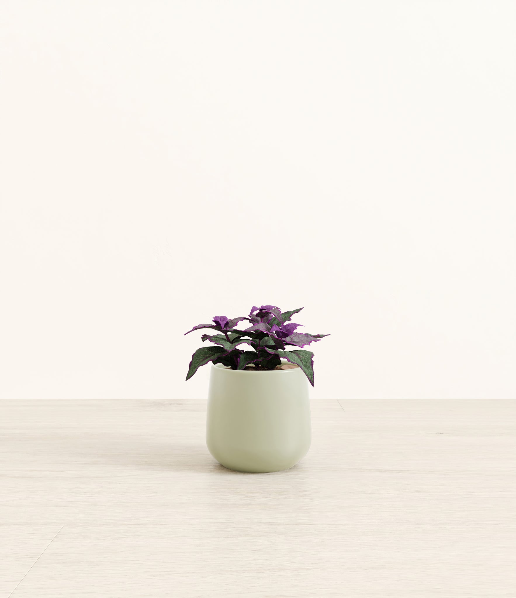 Native to the tropical regions of Java, the Purple Passion Plant, or Gynura aurantiaca, is celebrated for its unique, velvety leaves that shimmer with a deep purple hue. Known for its striking appearance, this plant adds a touch of the exotic to any indoor setting. The leaves are covered in tiny hairs that give them a surreal, iridescent look, making it a visual spectacle. While its deep hues remain a focal point, slight variations in color may occur as the plant matures, offering a continuous display of its passionate purple throughout the year.