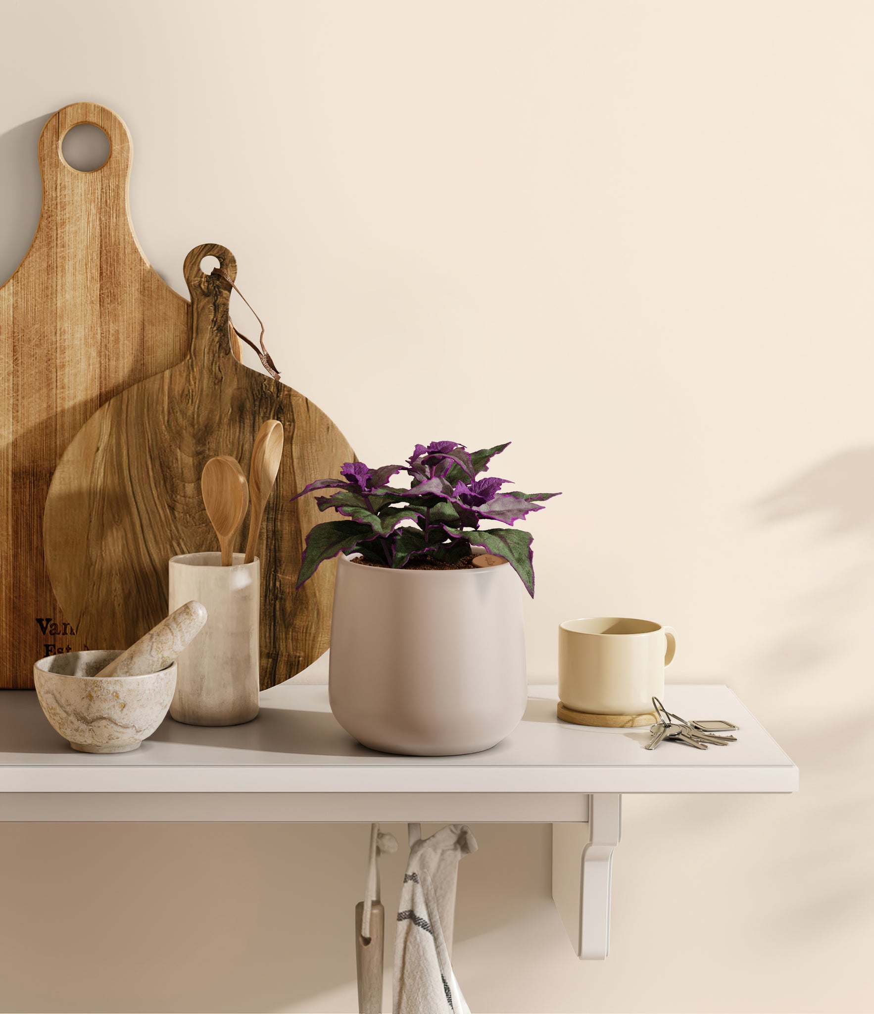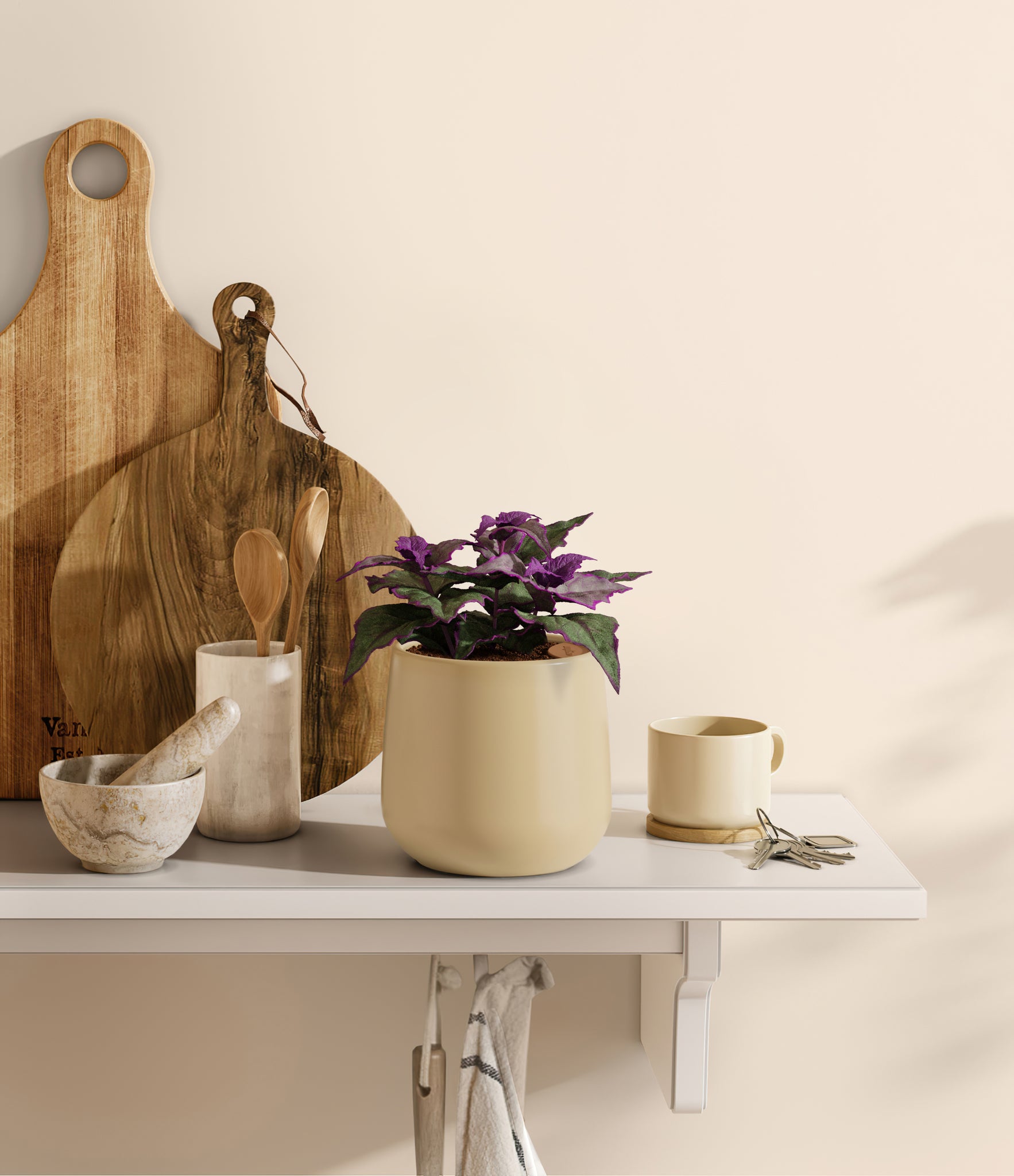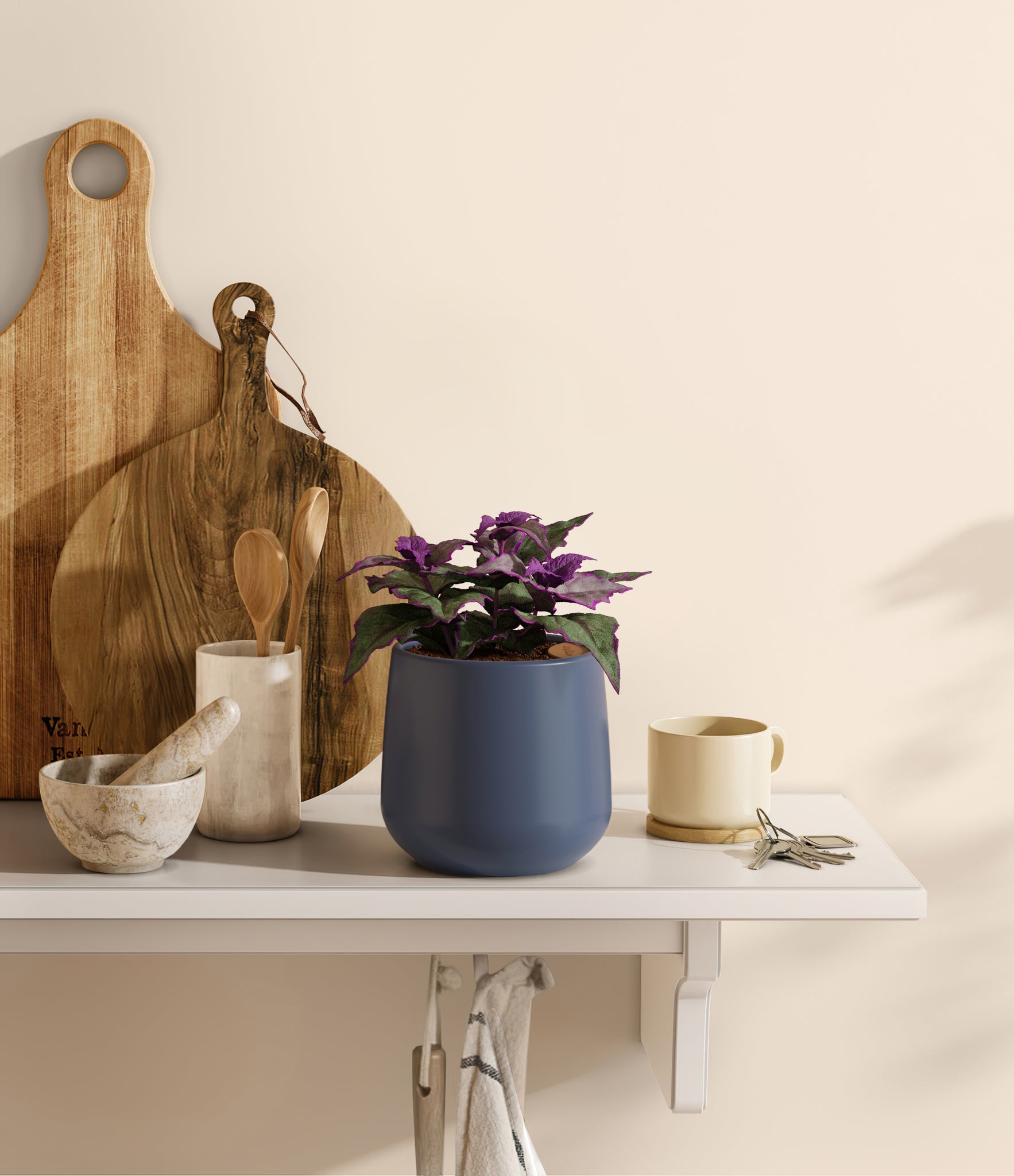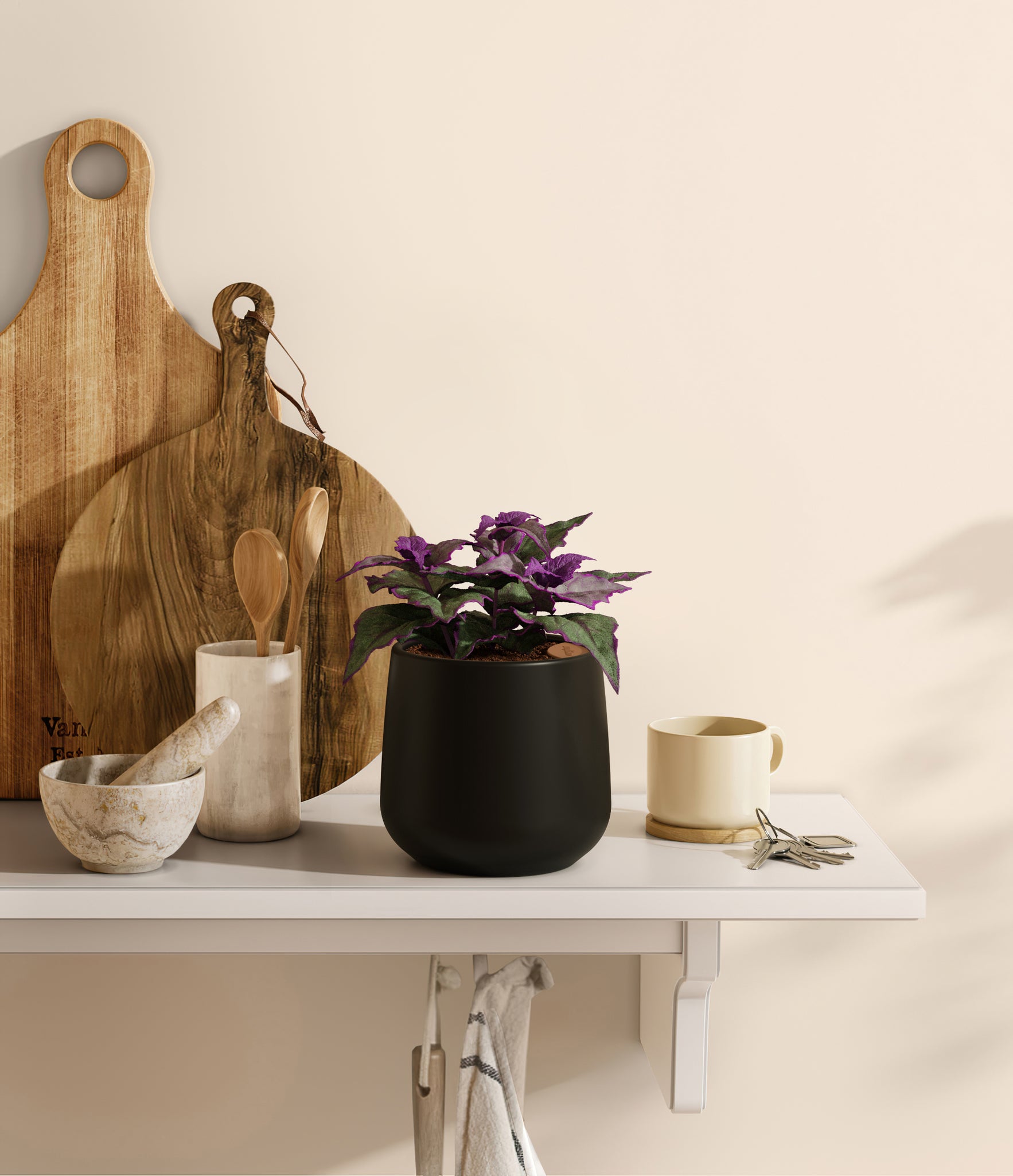 Native to the tropical regions of Java, the Purple Passion Plant, or Gynura aurantiaca, is celebrated for its unique, velvety leaves that shimmer with a deep purple hue. Known for its striking appearance, this plant adds a touch of the exotic to any indoor setting. The leaves are covered in tiny hairs that give them a surreal, iridescent look, making it a visual spectacle. While its deep hues remain a focal point, slight variations in color may occur as the plant matures, offering a continuous display of its passionate purple throughout the year.