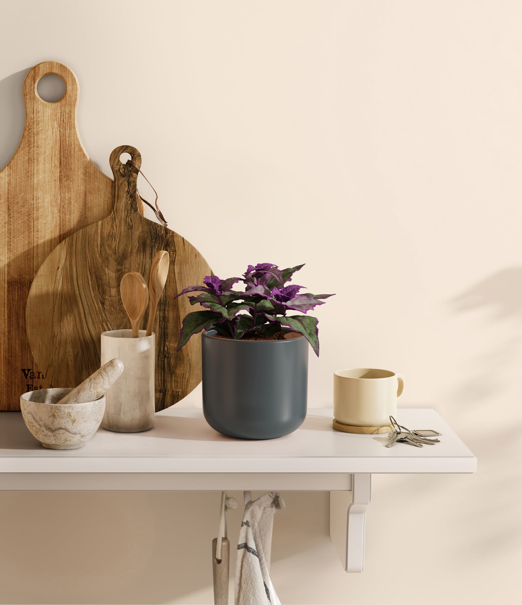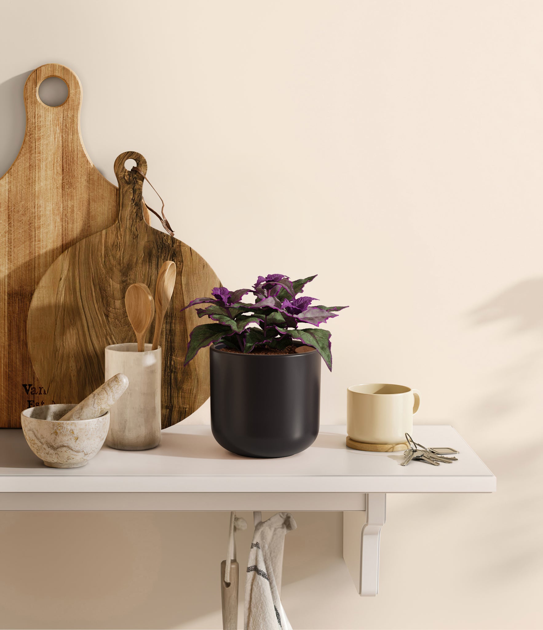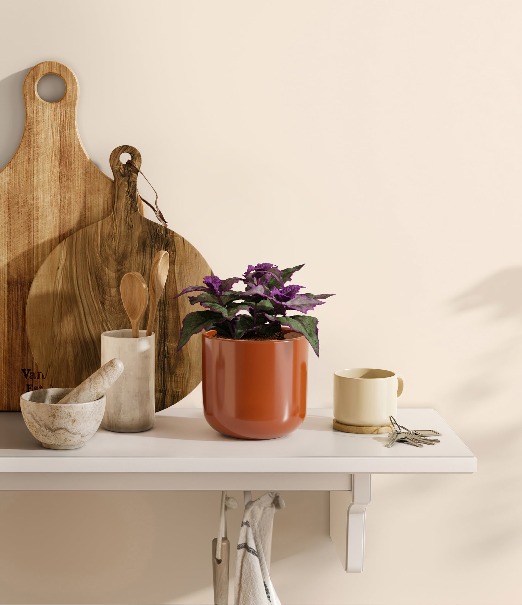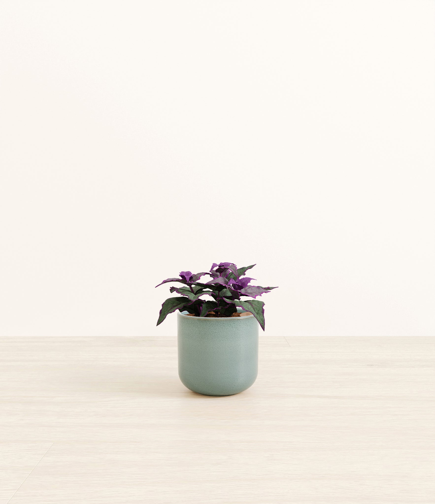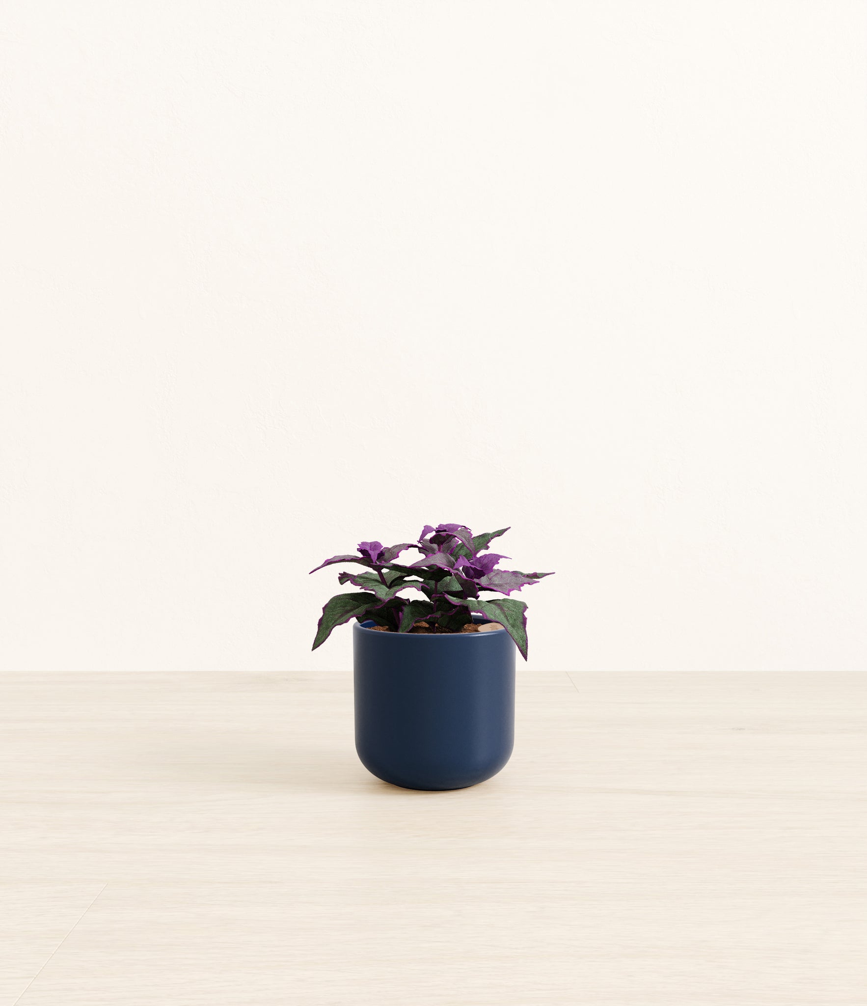 Native to the tropical regions of Java, the Purple Passion Plant, or Gynura aurantiaca, is celebrated for its unique, velvety leaves that shimmer with a deep purple hue. Known for its striking appearance, this plant adds a touch of the exotic to any indoor setting. The leaves are covered in tiny hairs that give them a surreal, iridescent look, making it a visual spectacle. While its deep hues remain a focal point, slight variations in color may occur as the plant matures, offering a continuous display of its passionate purple throughout the year.